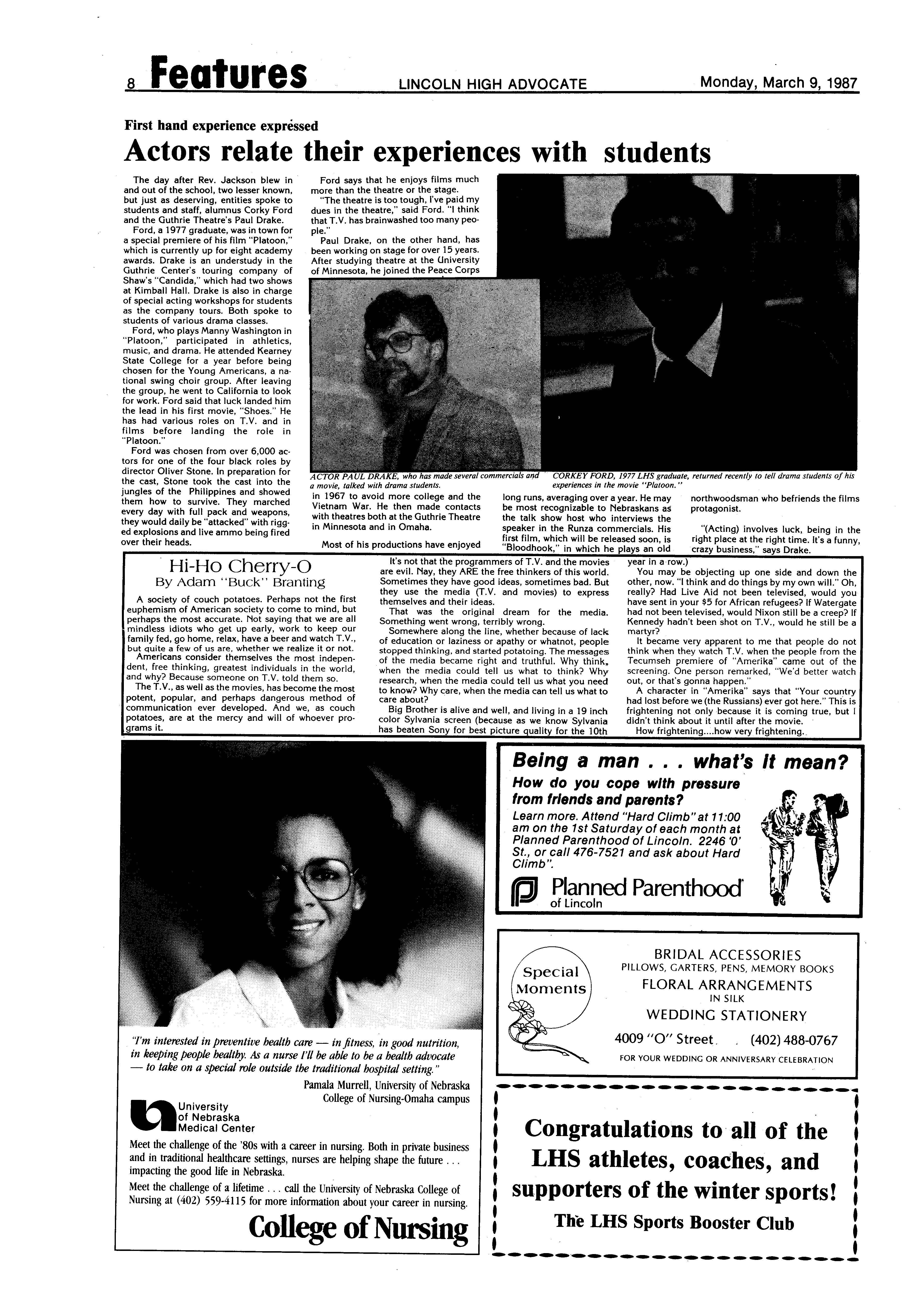 "I learned how to work and communicate with lots of different people," said Brad, "including administration, faculty and the community. Next year I am going to the college of business at UNL and in business, and in real life, you're always dealing with people."