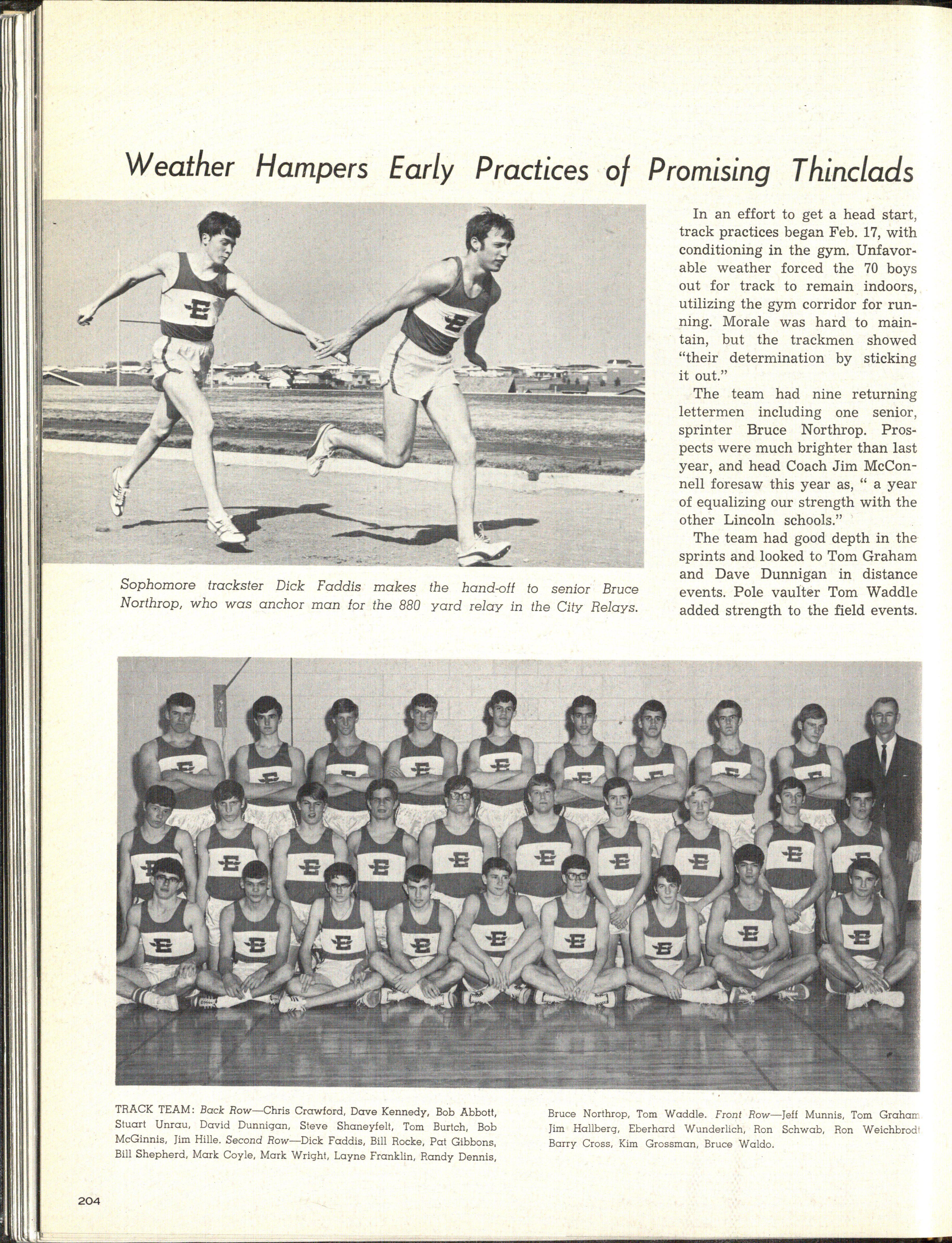 Supported by the foundations constructed last year, a school becomes firmly established. Its influence, like a tiny ripple, appears in ever widening circles, spreading through the community. Experience, a primary ingredient for success, is present for the first time, if only in small quantities, allowing Lincoln East to emerge as a leader. With continued hope for the future, the school enters its second year of