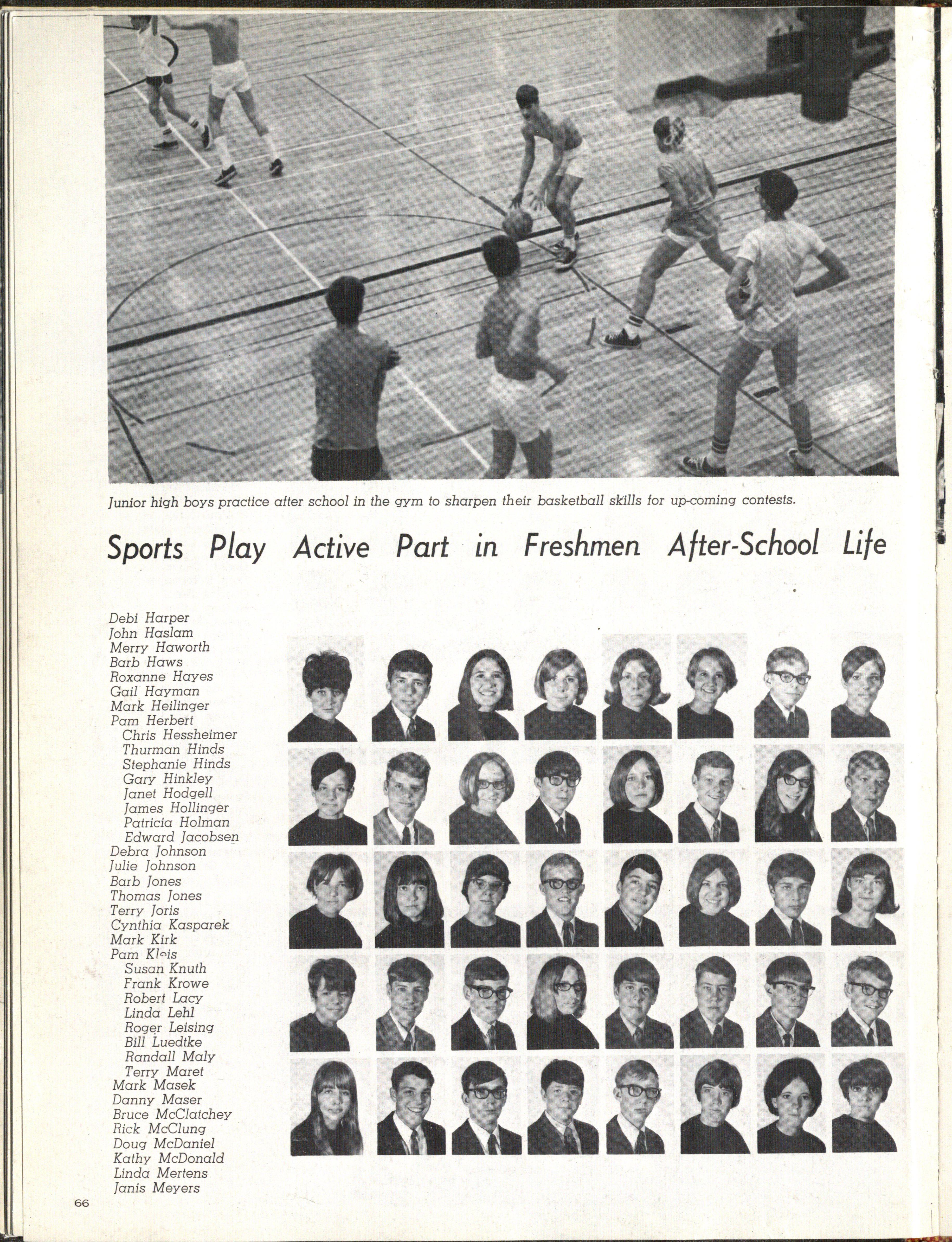 "Growing up together" - a common expression but often inaccurate. Few individuals grow at the same rate. Teams, clubs and crowds are mixtures of people at different pain ts of experience and maturity, working toward a common goal. Not conforming, but comparing their ideas, they strengthen themselves and the group. The big .victory, a money making project, a special da!Jce; all are important aspects of high school life.
