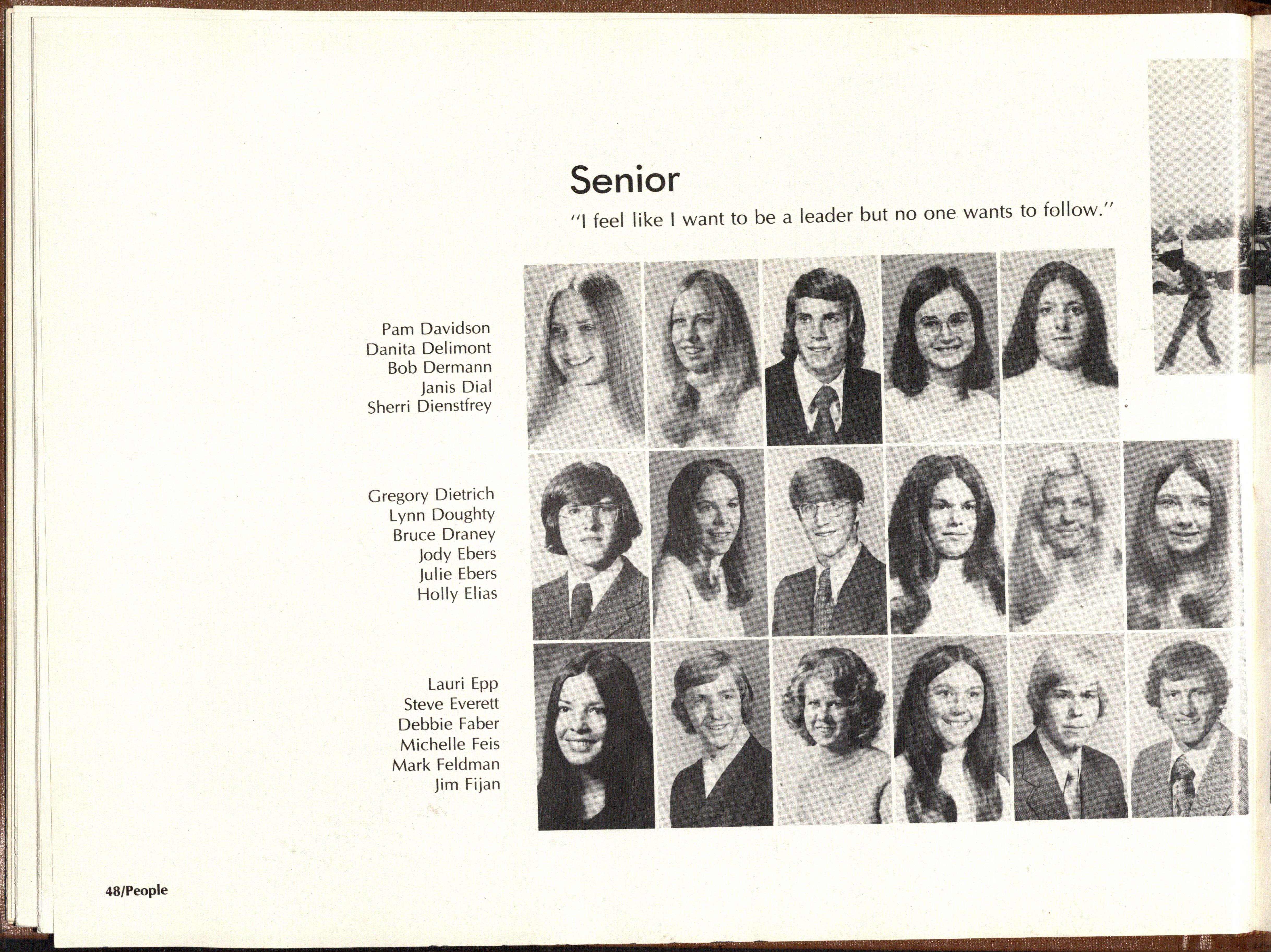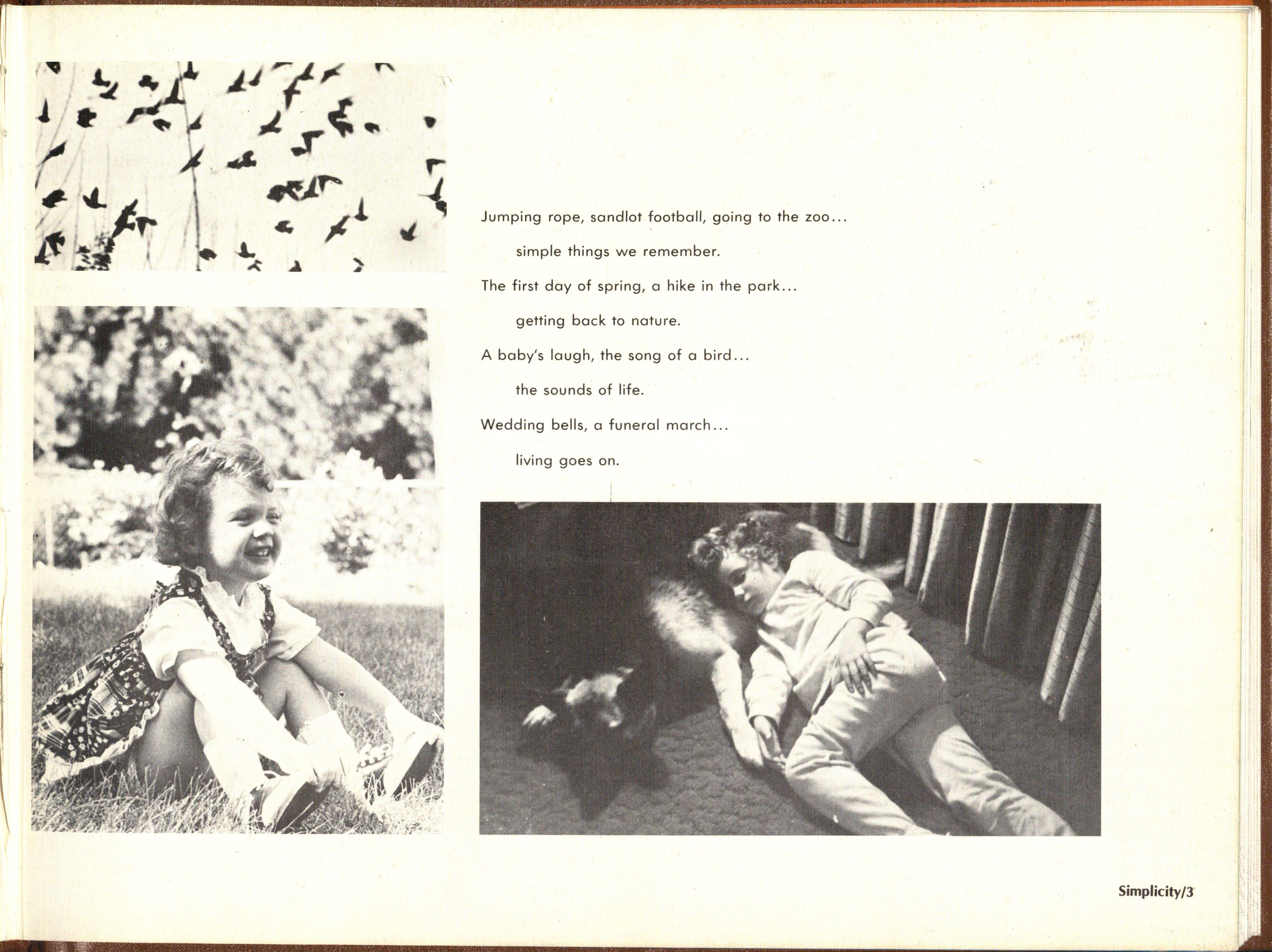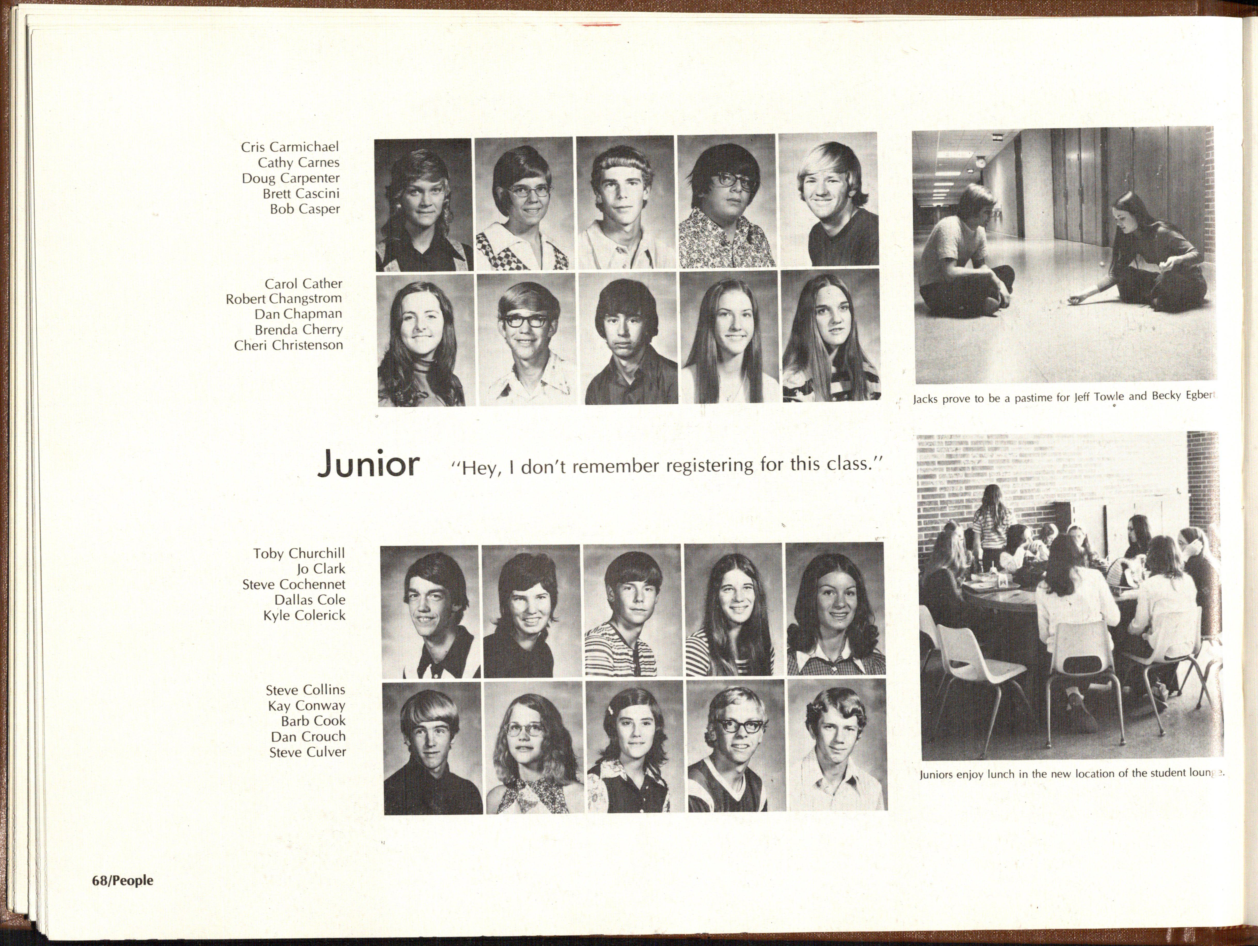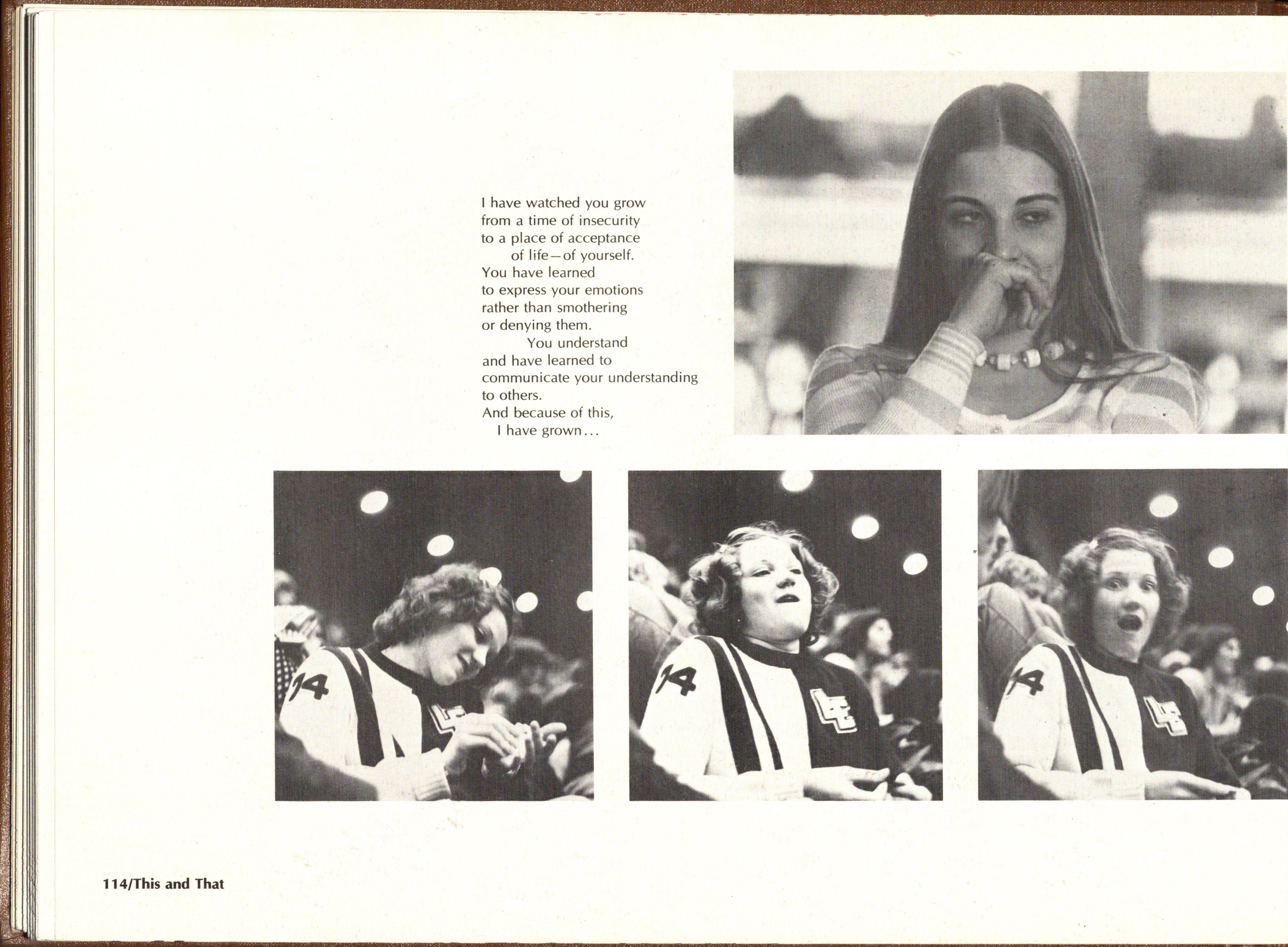 "This is the day that I am going to blow up the world, because it just is not going right, especially today ... I feel really great right now, man, my whole day is going great ... amazing how moods can change so quickly ... life is such a strange game, everybody has his own set of roles ... no hassles now that it is the weekend, games to go to, after game parties, early morning bike rides, and being able to sleep late ... hey, waddaya say we skip tomorrow? ... I have the third quarter slump in the middle of the first. .. does anybody have an aspirin, my head is aching ... I haven't been to all my classes as usual, but that's the whole fun of going to school. .. can't think of it and it was on the tip of my tongue, it won't come truckin' around in your jeep, really getting into ·life and all the things that make it interesting ... the neat experiences I've had with all the people I've met the past few years I like snow very much, but it does present problems ... the snow is all melting away and getting mushy ... weather definitely plays a part on human emotions ... I can't wait 'til this day is over, it's so hard to stay awake and alert ... such trivial n ;atters can upset everyone ... if we could all accept the fact that we do make mistakes ... tny cla~s~s have been terrifically boring, especially fourth: . hour ... if there wasn't open campus here, I would still skip class because that's why there is school ... a long lost sou I who hasn't been found yet ... you can be a good kid, when you don't do those idiot things life is like going for a picnic or a drive in the • country just for the fun of it ... I dig those things myself, I am just a plain old country person ... I wouldn't trade this time in my life for any other time because I'm enjoying it too much ... how has your day gone?"