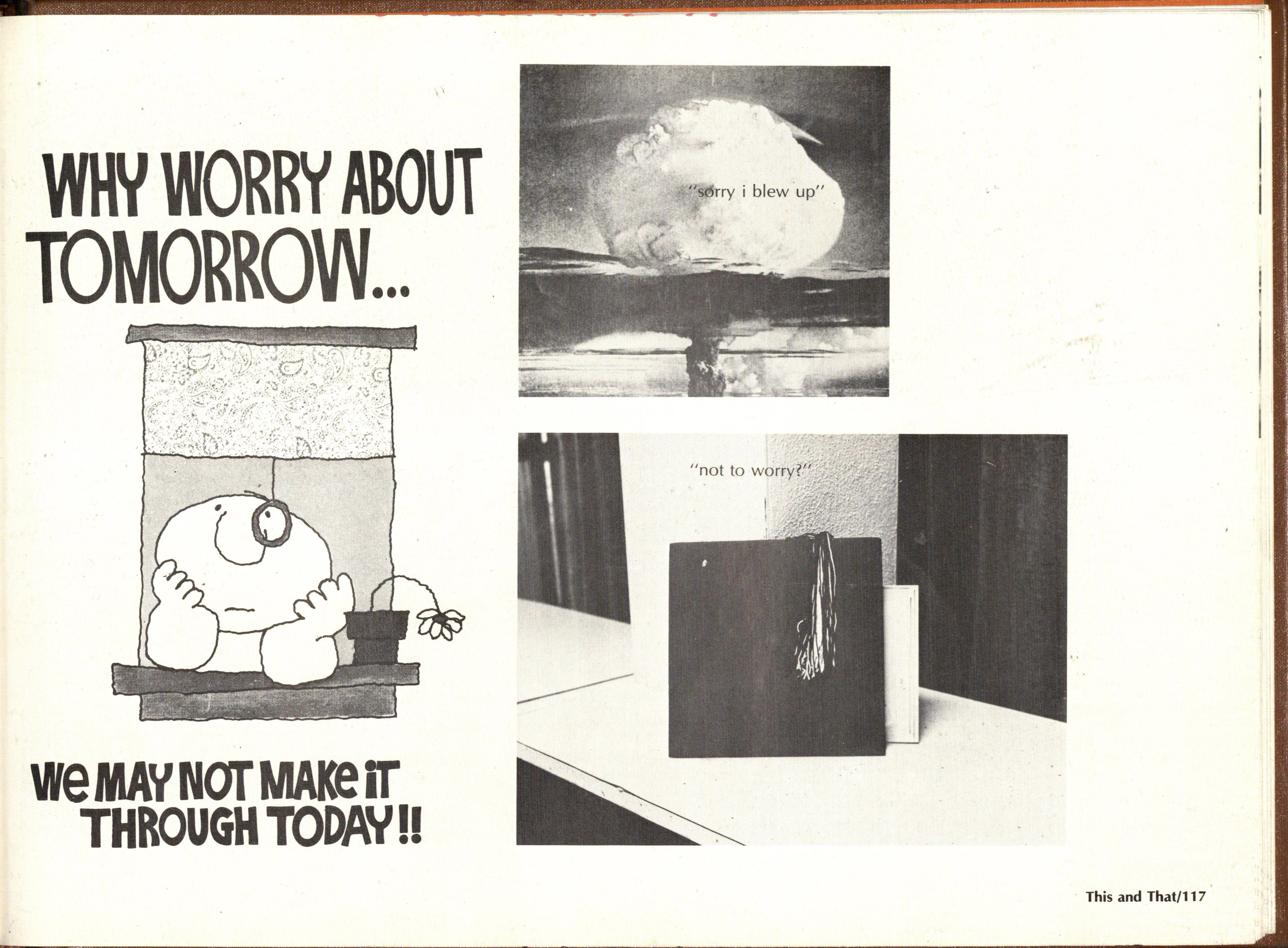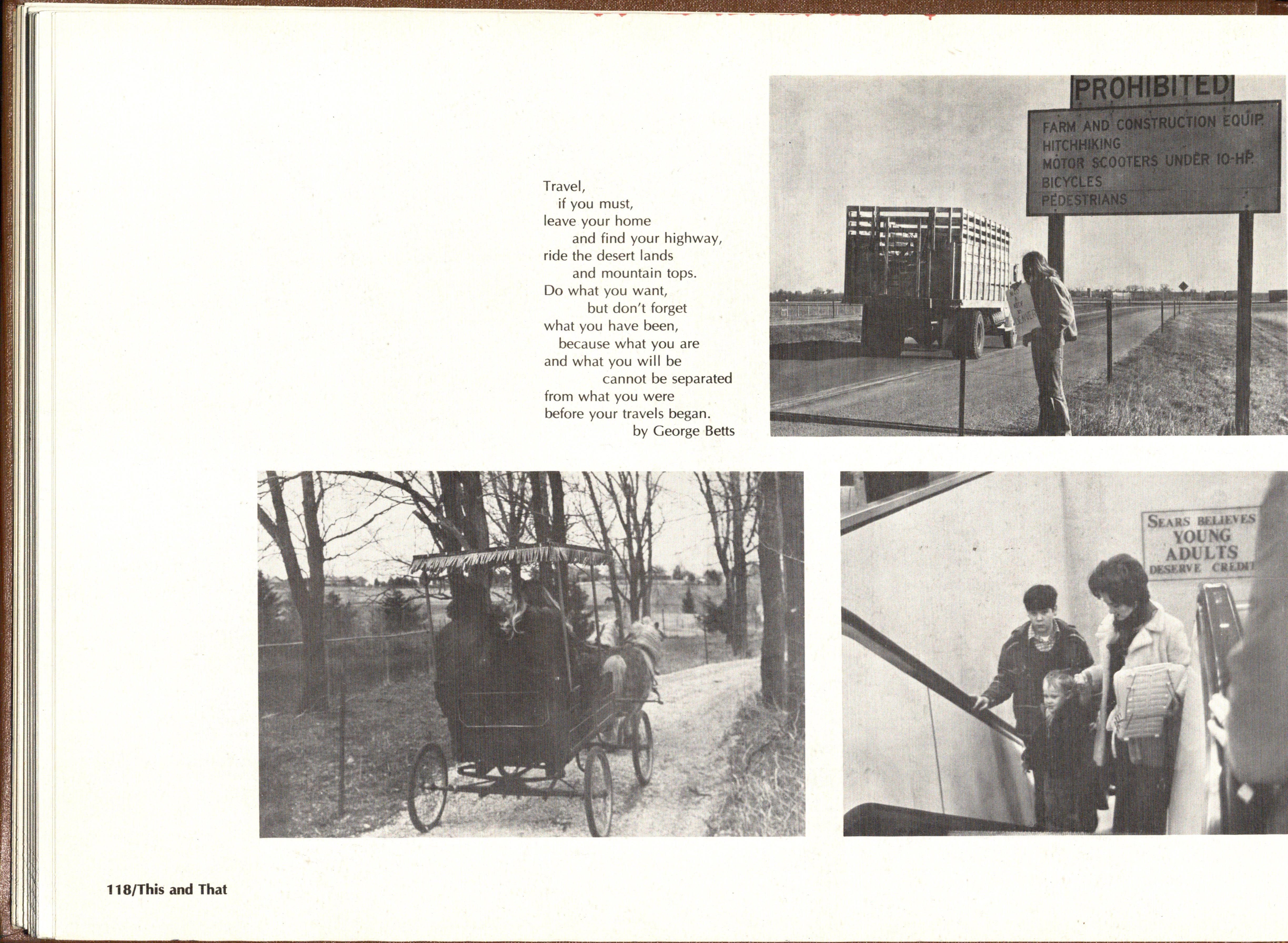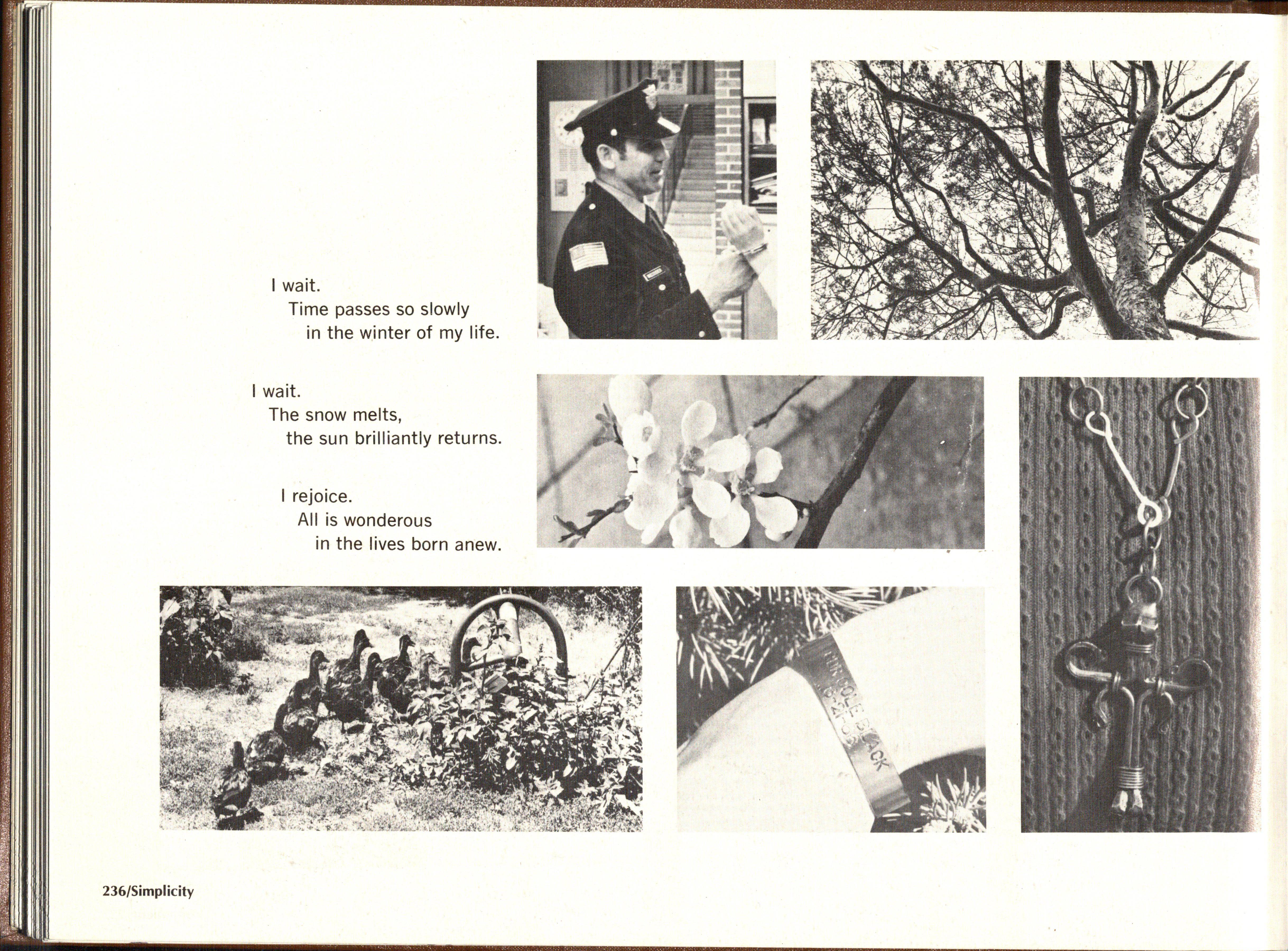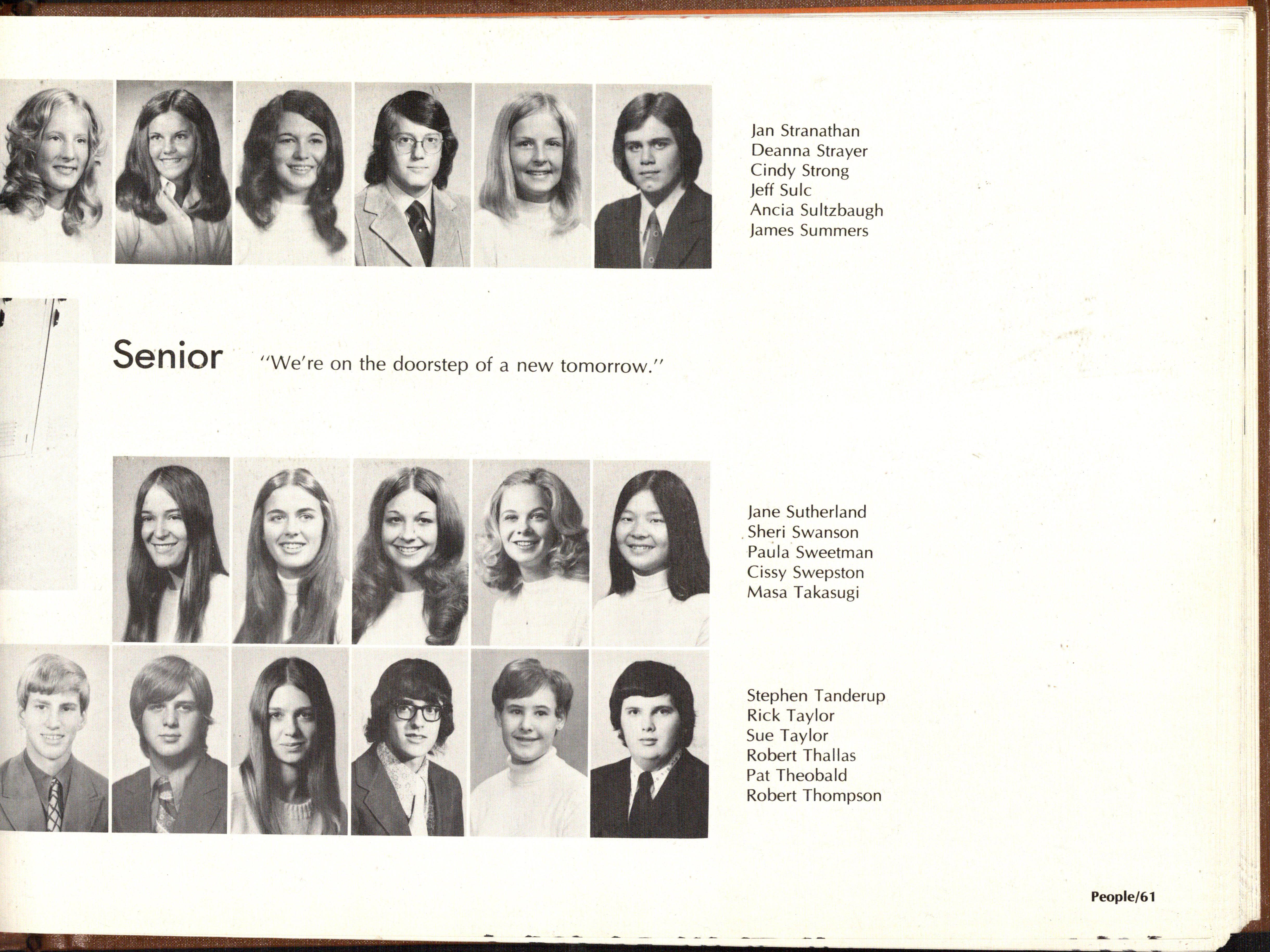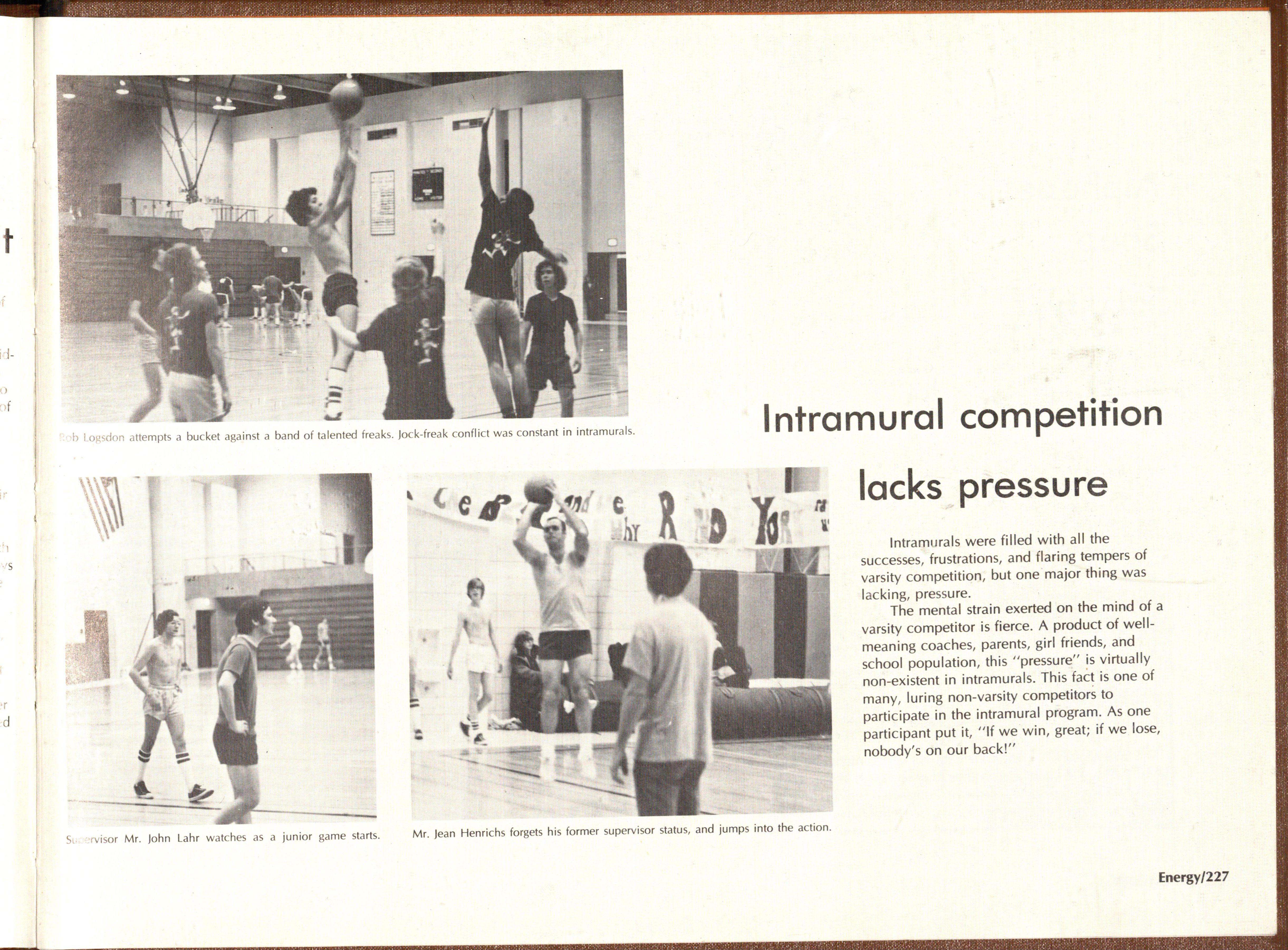 "This is the day that I am going to blow up the world, because it just is not going right, especially today ... I feel really great right now, man, my whole day is going great ... amazing how moods can change so quickly ... life is such a strange game, everybody has his own set of roles ... no hassles now that it is the weekend, games to go to, after game parties, early morning bike rides, and being able to sleep late ... hey, waddaya say we skip tomorrow? ... I have the third quarter slump in the middle of the first. .. does anybody have an aspirin, my head is aching ... I haven't been to all my classes as usual, but that's the whole fun of going to school. .. can't think of it and it was on the tip of my tongue, it won't come truckin' around in your jeep, really getting into ·life and all the things that make it interesting ... the neat experiences I've had with all the people I've met the past few years I like snow very much, but it does present problems ... the snow is all melting away and getting mushy ... weather definitely plays a part on human emotions ... I can't wait 'til this day is over, it's so hard to stay awake and alert ... such trivial n ;atters can upset everyone ... if we could all accept the fact that we do make mistakes ... tny cla~s~s have been terrifically boring, especially fourth: . hour ... if there wasn't open campus here, I would still skip class because that's why there is school ... a long lost sou I who hasn't been found yet ... you can be a good kid, when you don't do those idiot things life is like going for a picnic or a drive in the • country just for the fun of it ... I dig those things myself, I am just a plain old country person ... I wouldn't trade this time in my life for any other time because I'm enjoying it too much ... how has your day gone?"