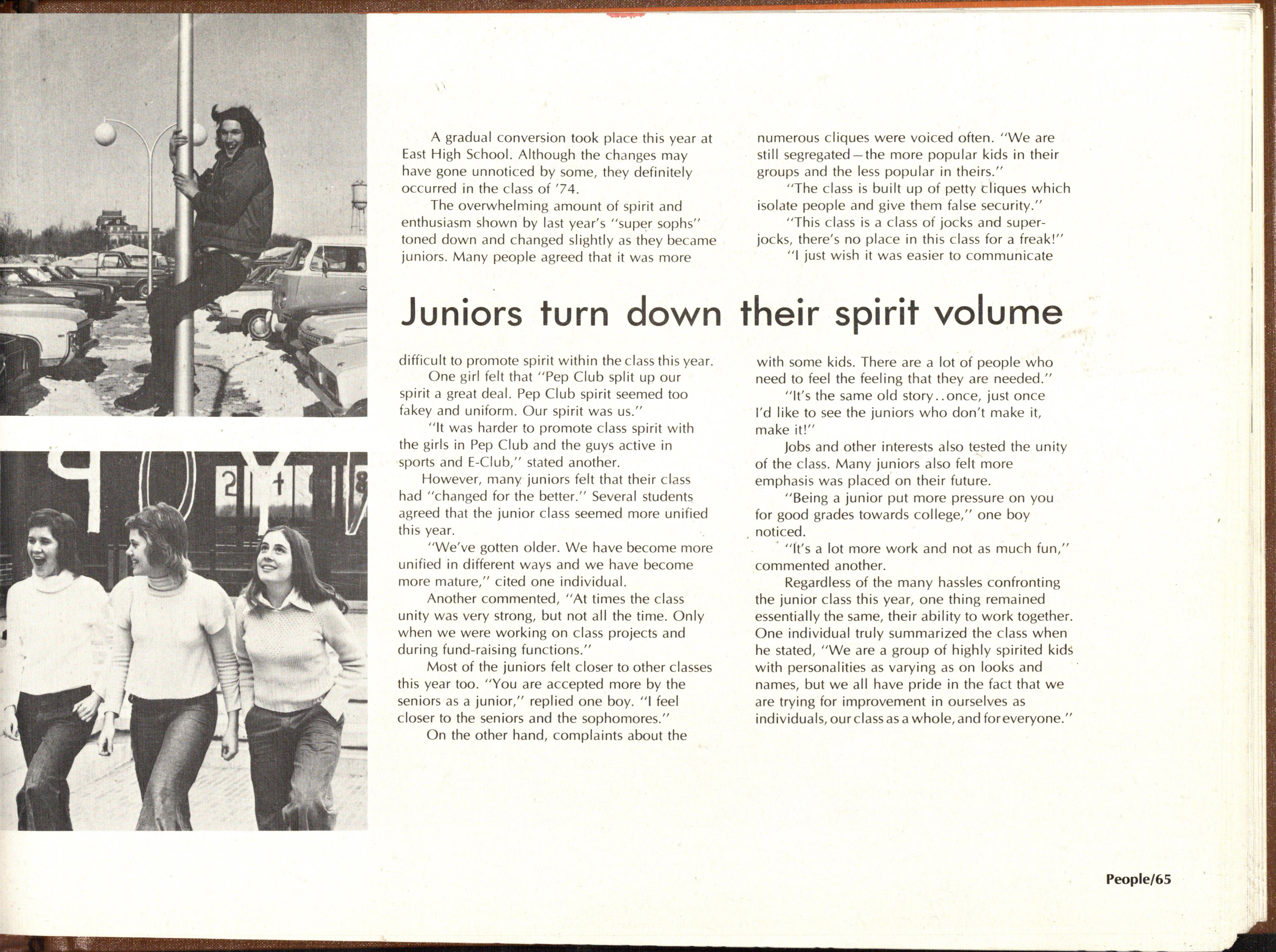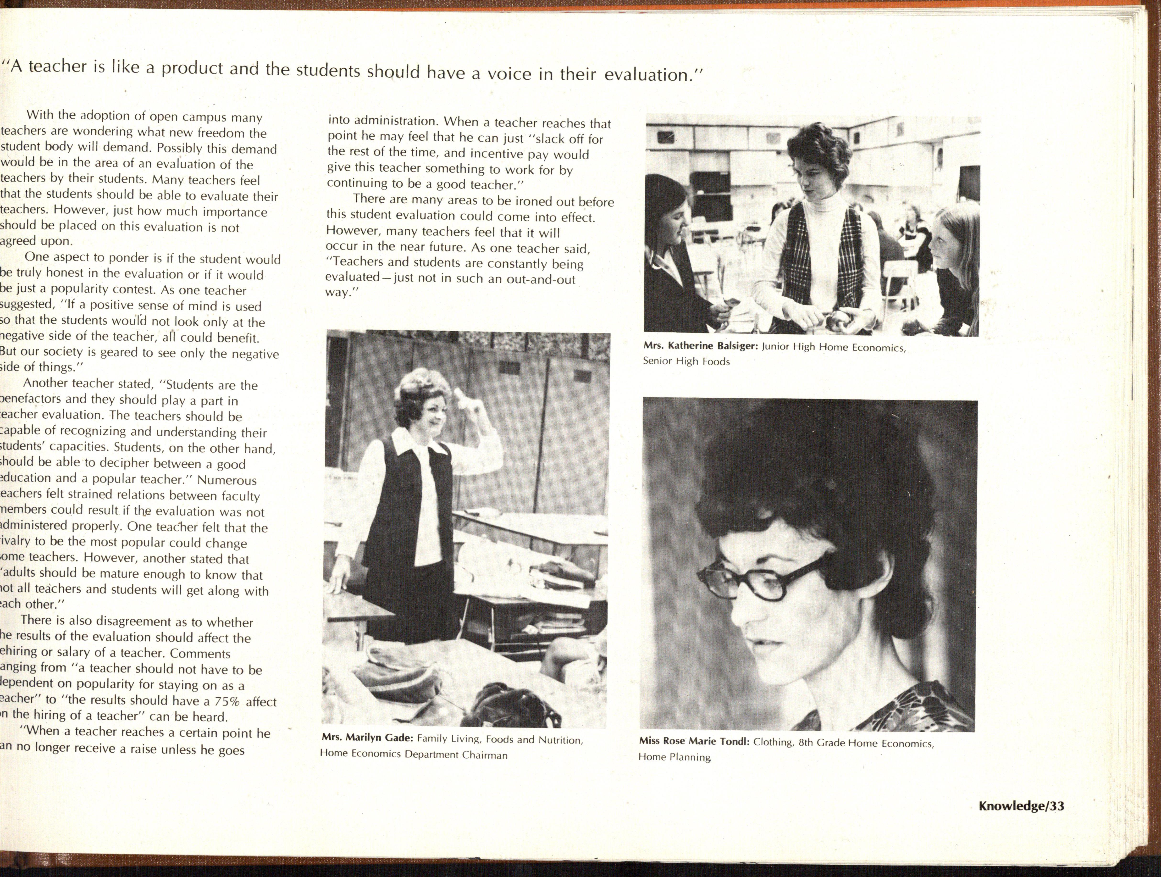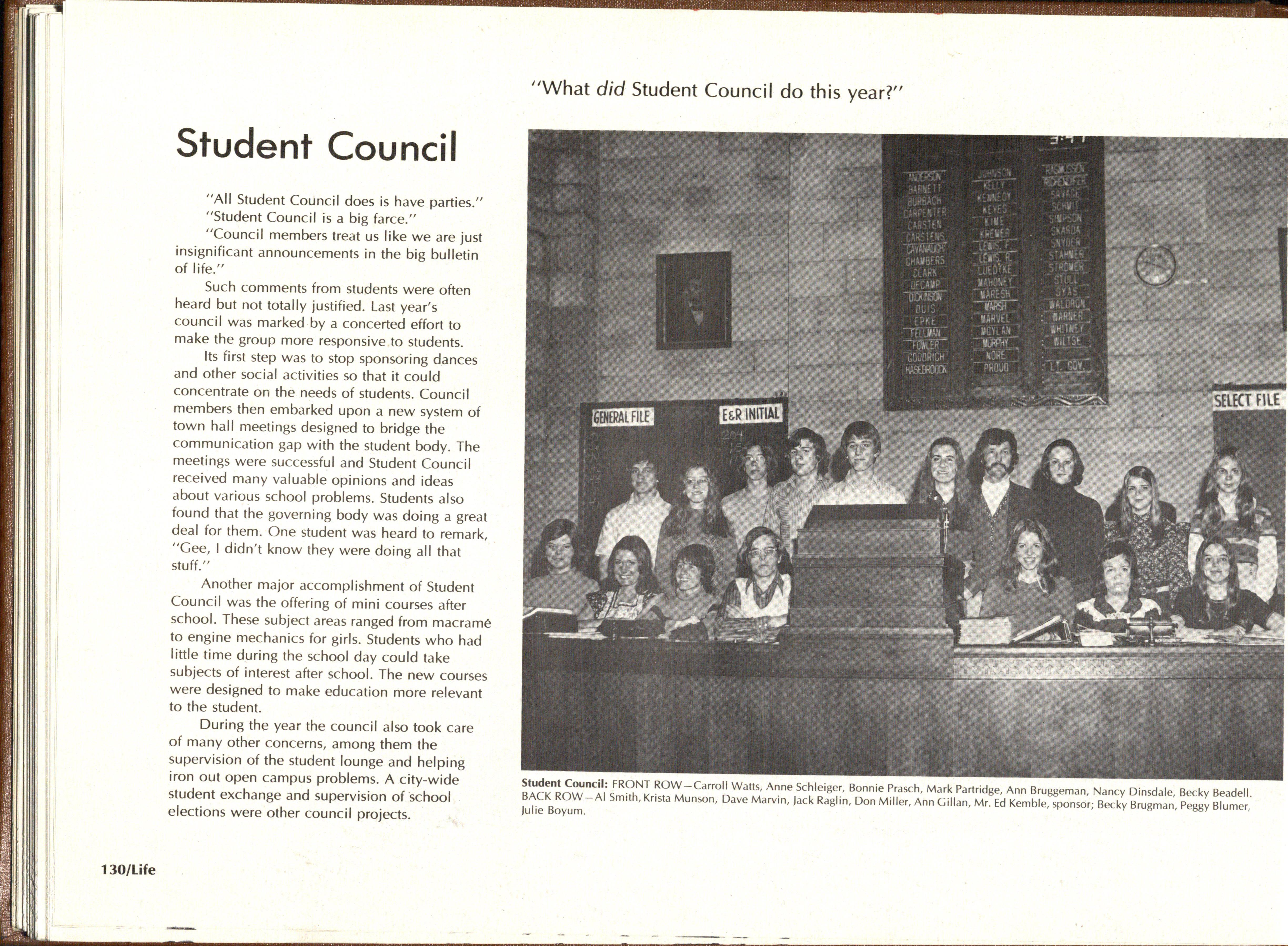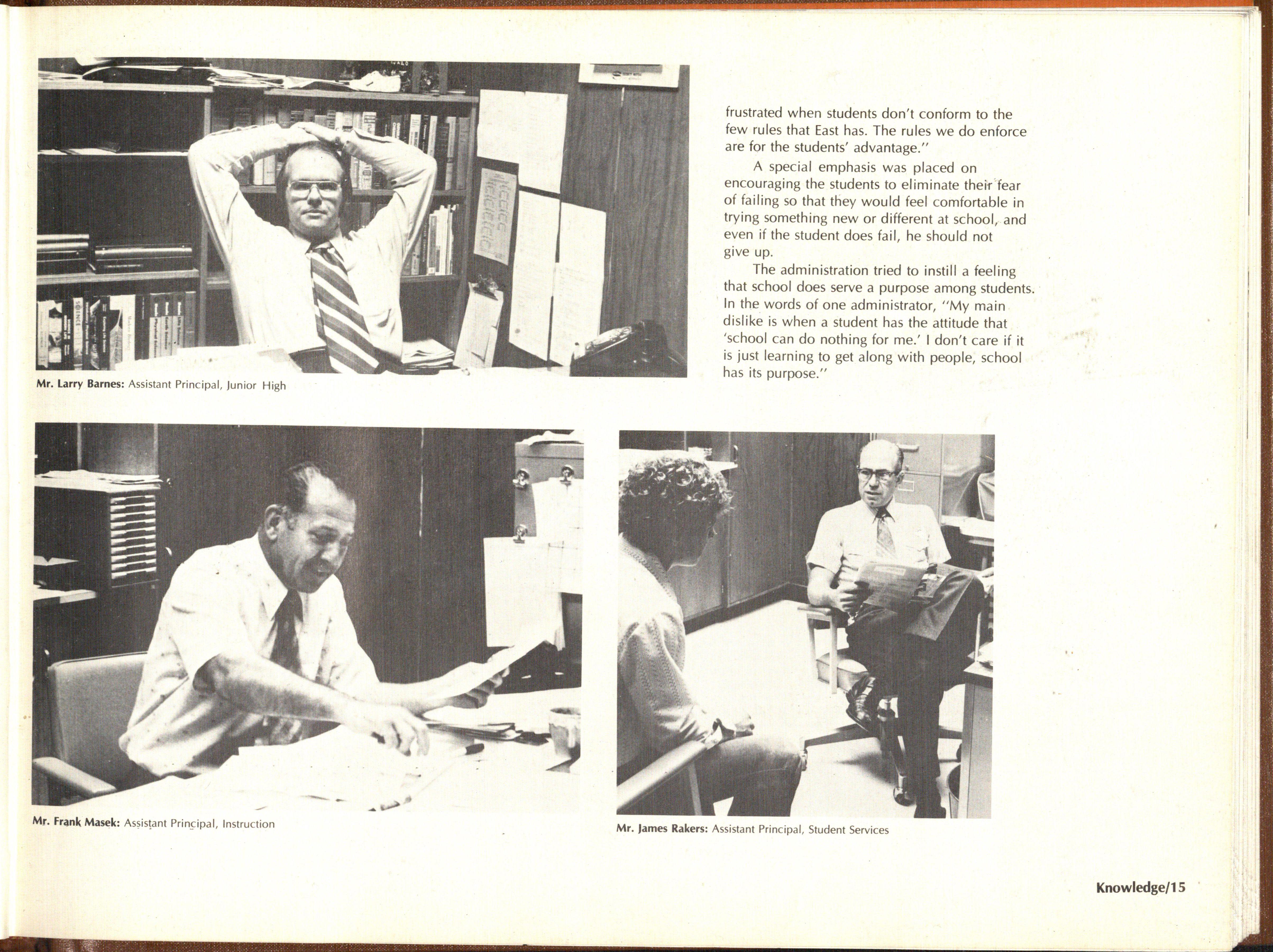 The administration tried to instill a feeling that school does serve a purpose among students. · In the words of one administrator, "My main dislike is when a student has the attitude that ' school can do nothing for me.' I don't care if it is just learning to get along with people, school has its purpose."