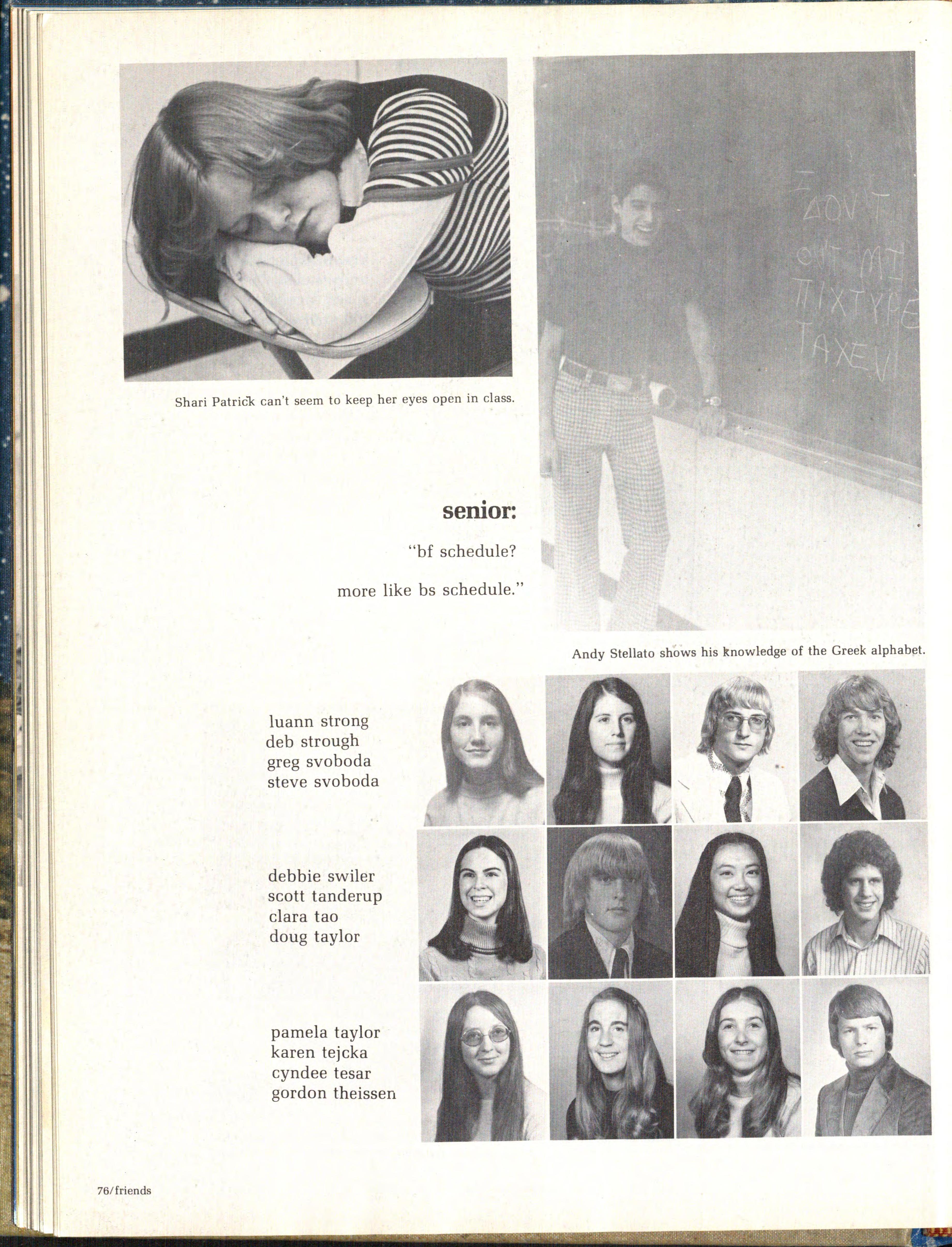tejcka, karen 46, 132, 143, 153, 164, 166, 175 tejcka, kathy 117, 149 terry, cynthia 110, 180 terry, marianne 127 terry, william 94 tesar, cyndee 76 teters, kirk 94 tharp, daniel 94 thew, deborah 94 thew, john 136, 157 thiessen, gordon 76, 192, 193, 212 thierstein, lorie 110, 180 thiessen, christine 110 thomas, amy 94 thomas, douglas 97 thomas, richard 110 thomas , william 77, 155, 223 thompson, sherry 118 thompson steven 94 thompson, wendy 110, 180 thomsen, kurt 77, 154, 157 thompson, rhonda 123 throop, Ion 123 thursby, clara 110, 180 thursby , robert 94, 167, 169 tiangco , michele 77 tingle , eric 94, 169 tische, kirk 94 titterington, scott 118 trimble christopher 127 tsurunaga, malie 123 todd, gary 118 todd , joe 110 tomhave , jeffrey 118 tommeraasen, miles 118 towle, randall 94 traudt, kathryn 110, 173, 180 trimble, jerry 118 tunell , bruce 110 tunell, david 127 turek, cynthia 110, 181 turek, debra 110 turek, vicki 118 turner, kristine 110, 181, 185 turner, tracy 150, 164, 166, 205 tyler, bradly 123 tyler, douglas 123 tyler, patricia 110, 169, 181 tyrrell, david u upright, kelly 127 uribe, julie 127 urbom, randall 77