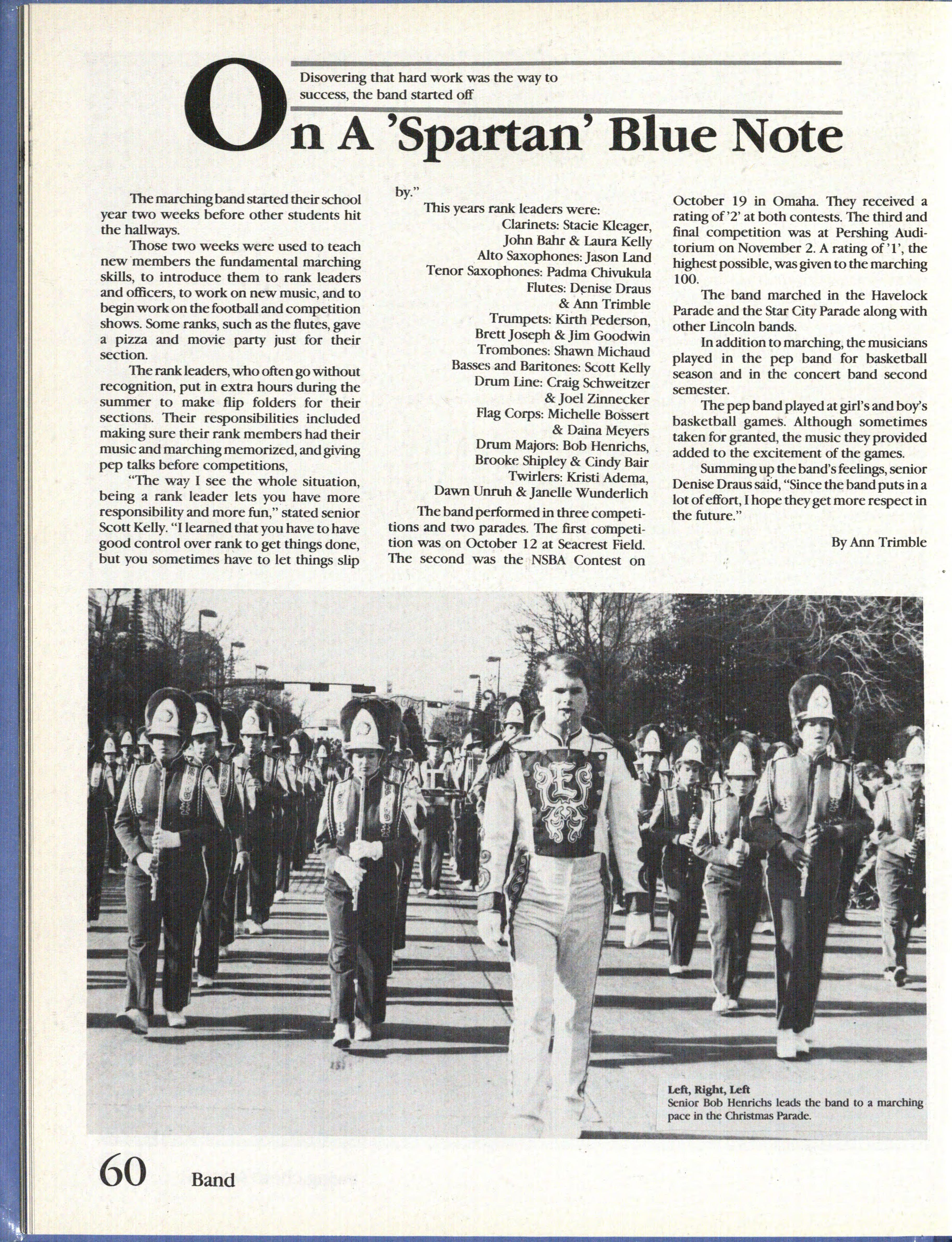 It would have been easy for Spartans to get the 'blues' and cut down on activities and therefore on accomplishments. But the 'true blue' Spartans succeeded in athletic, musical, journalistic, and artistic competition. Individuals, too, achieved in various areas.