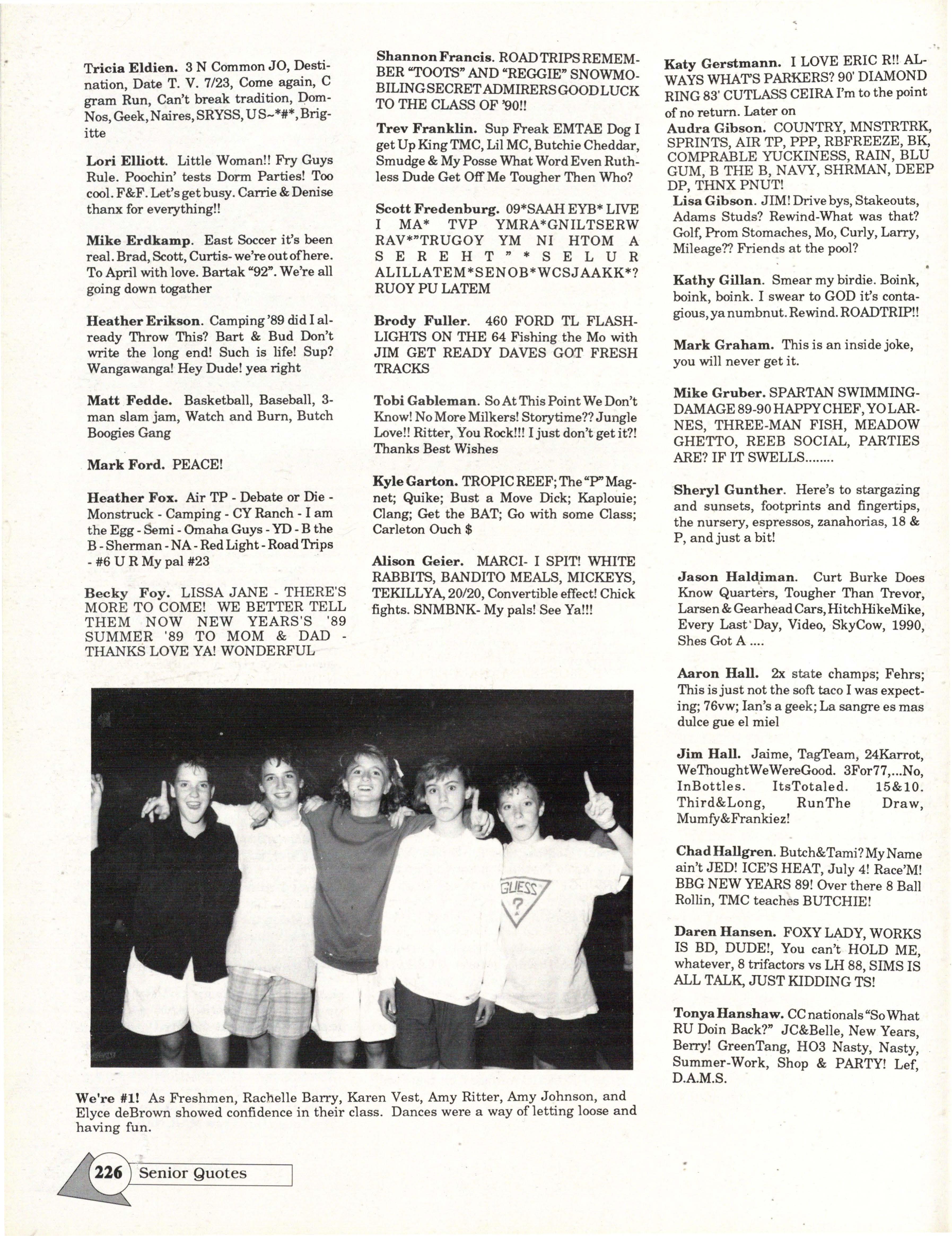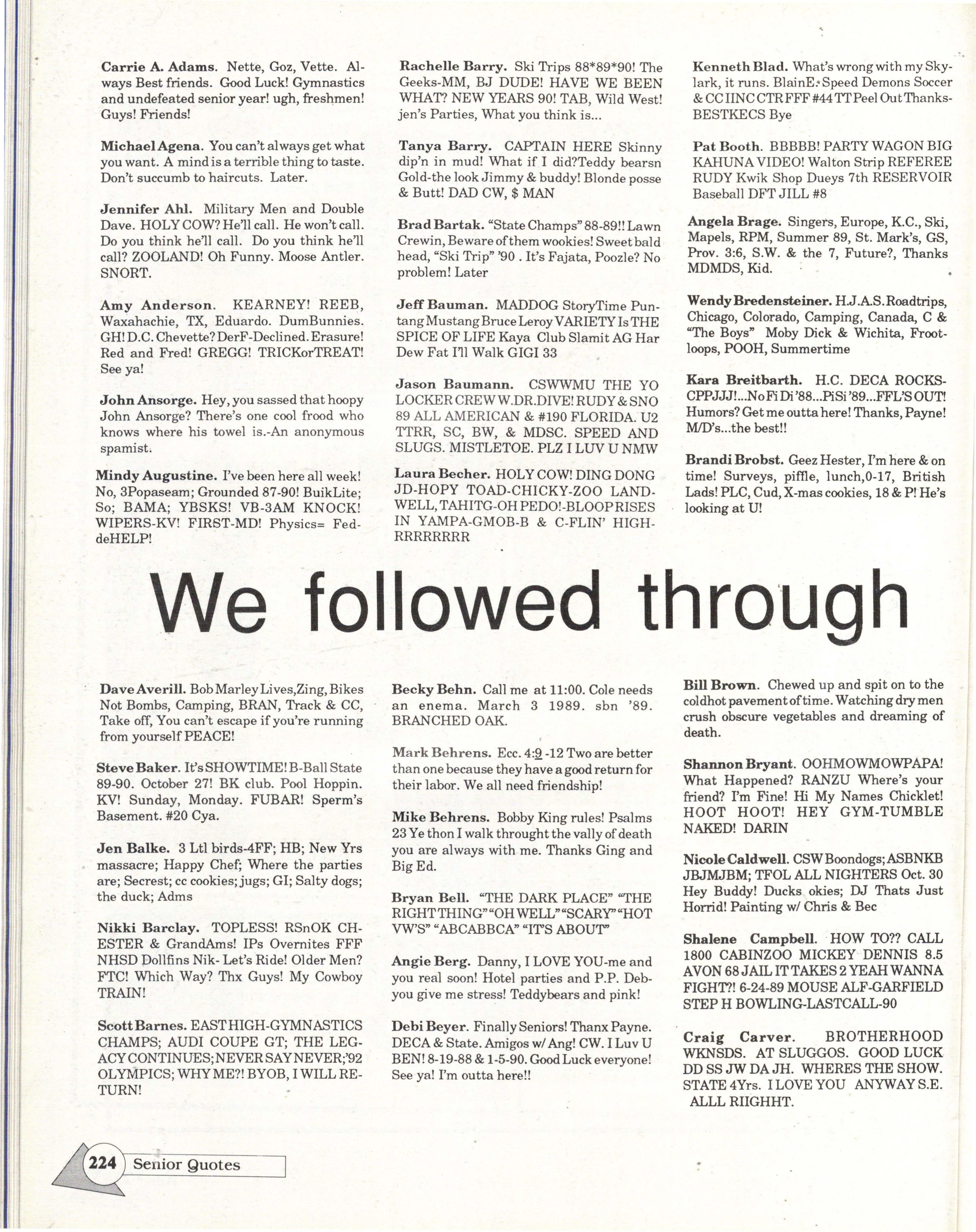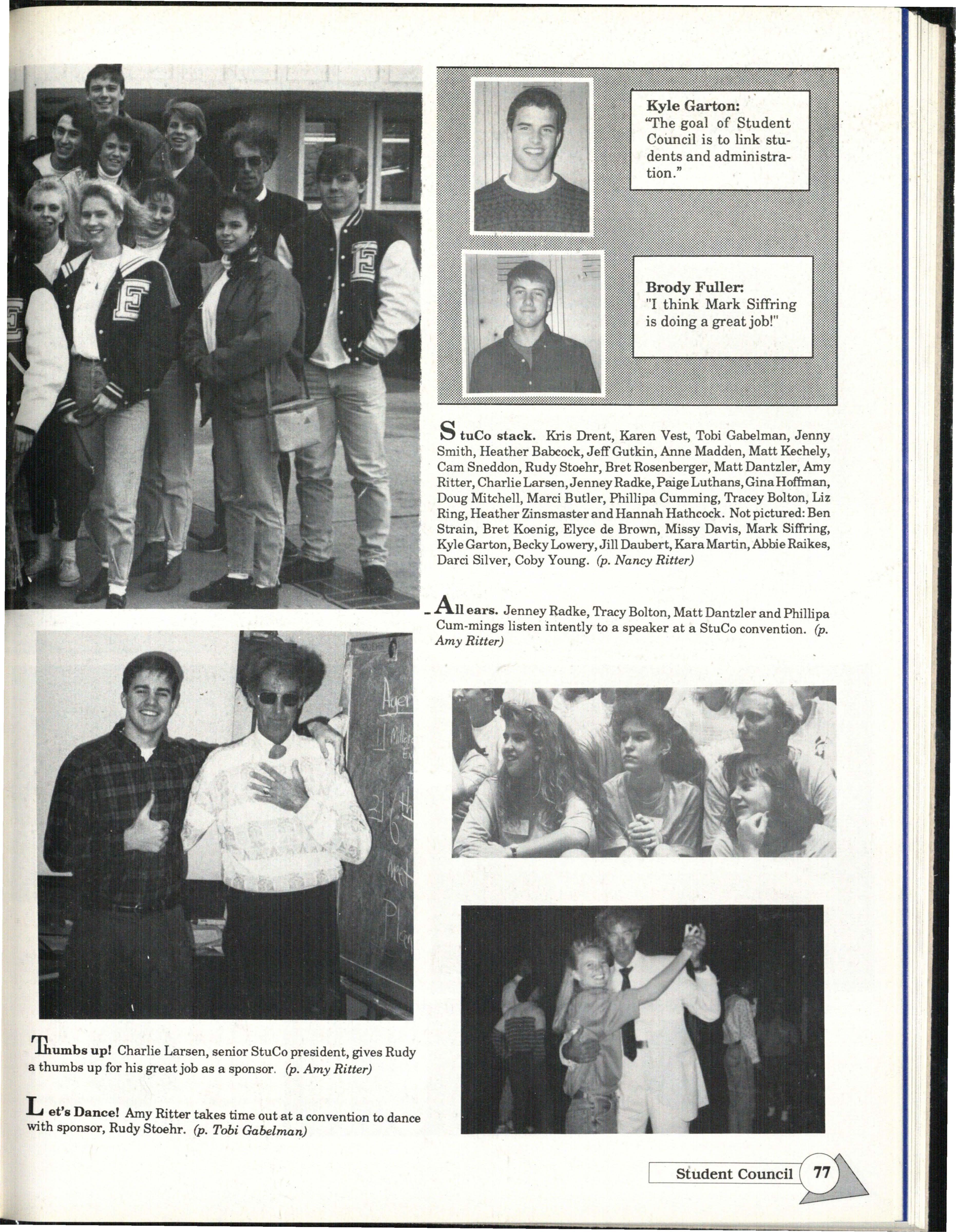 "I thought that all the class became really bonded. It was neat that we finally felt like a group and not like a whole bunch of individuals. My intent as president of the senior class was to get everyone involved and together," said Mark 1 Siffring.