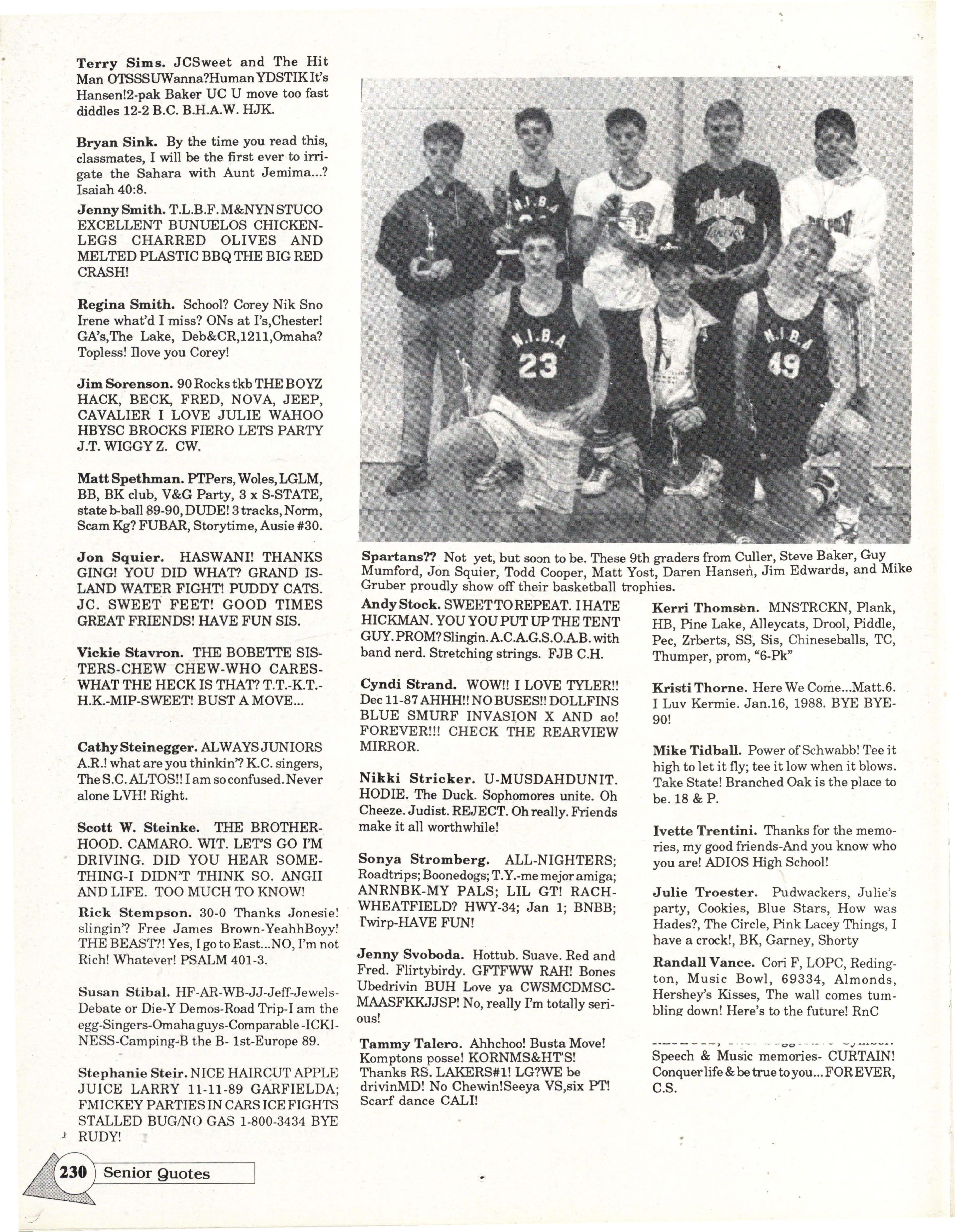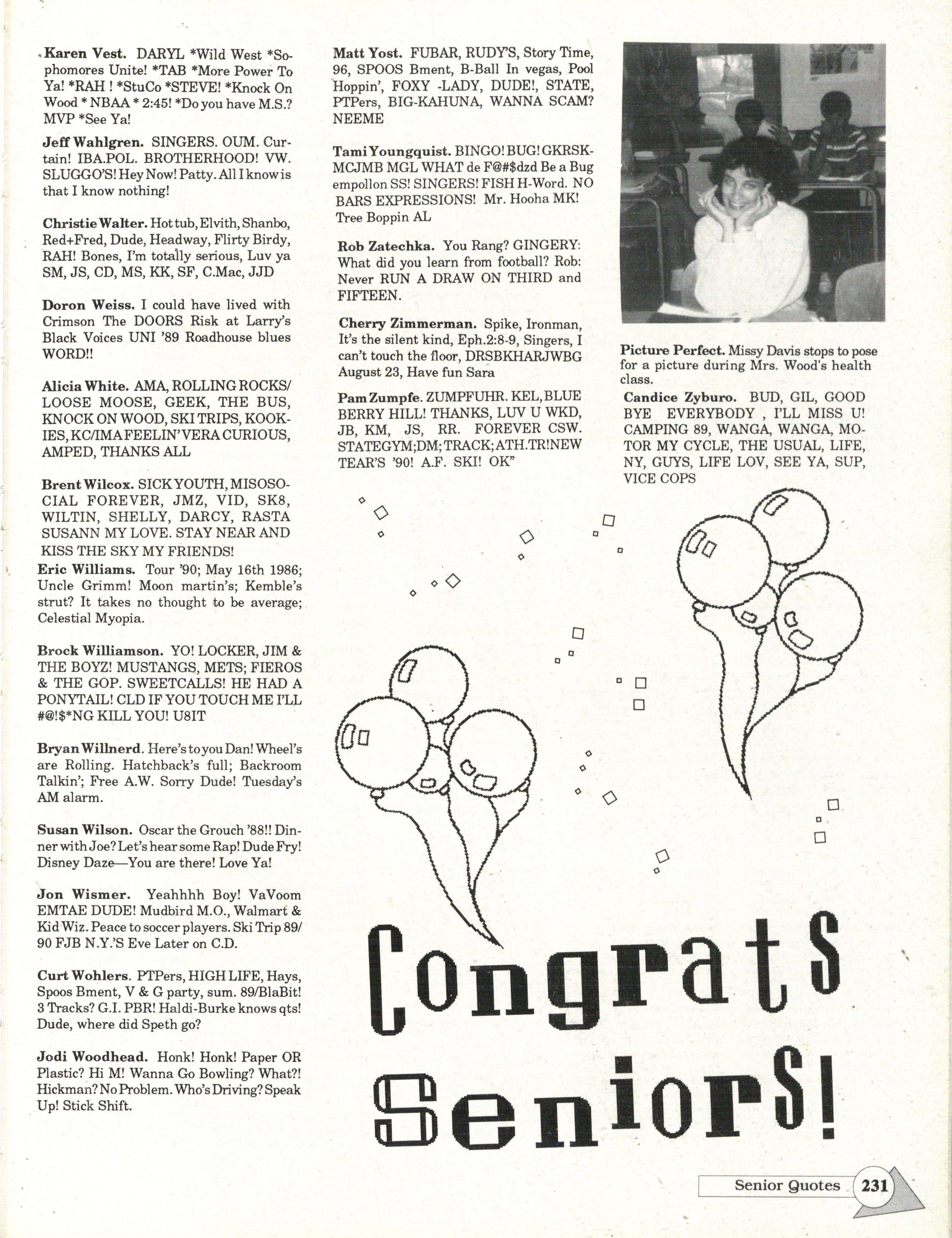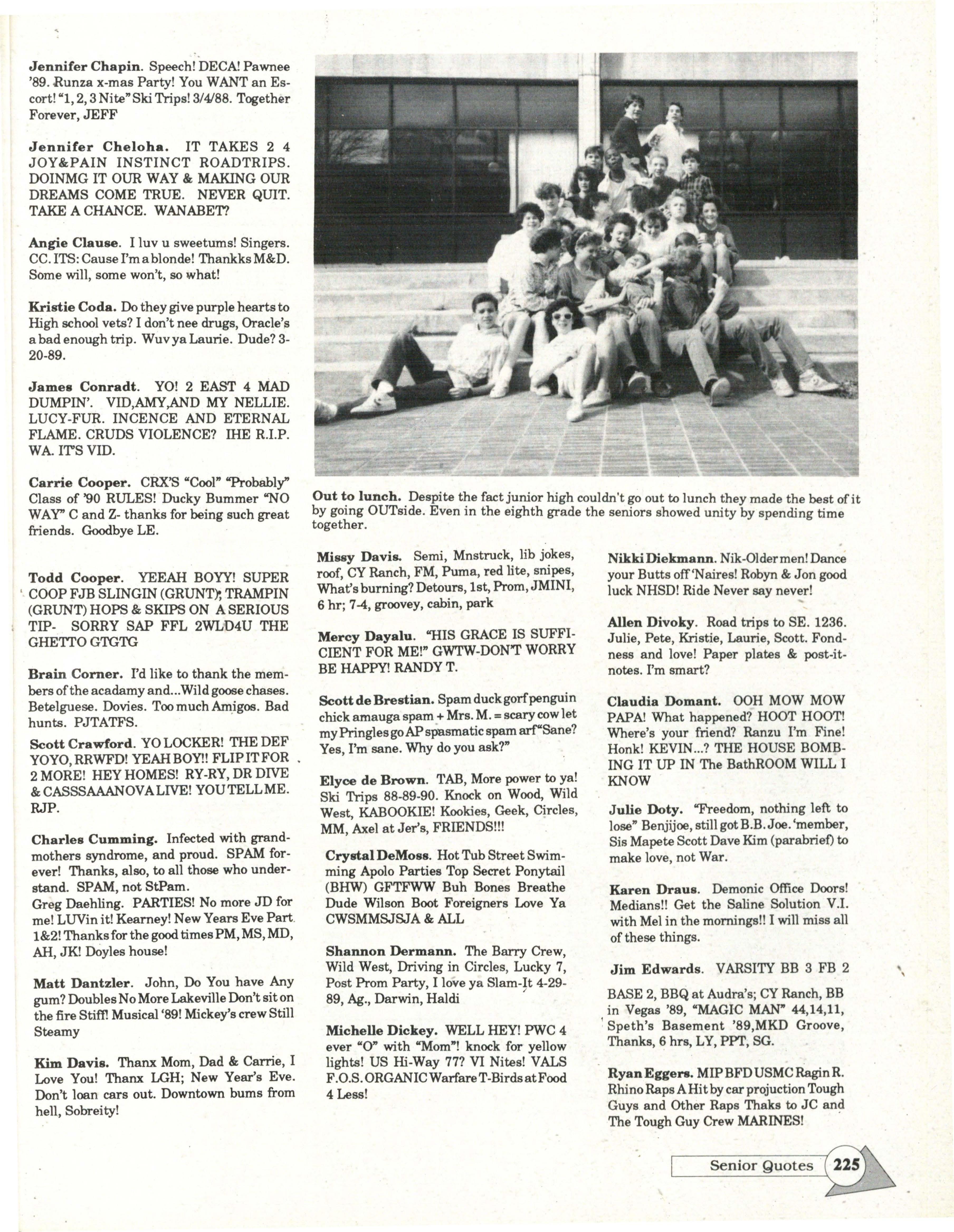 "I thought that all the class became really bonded. It was neat that we finally felt like a group and not like a whole bunch of individuals. My intent as president of the senior class was to get everyone involved and together," said Mark 1 Siffring.