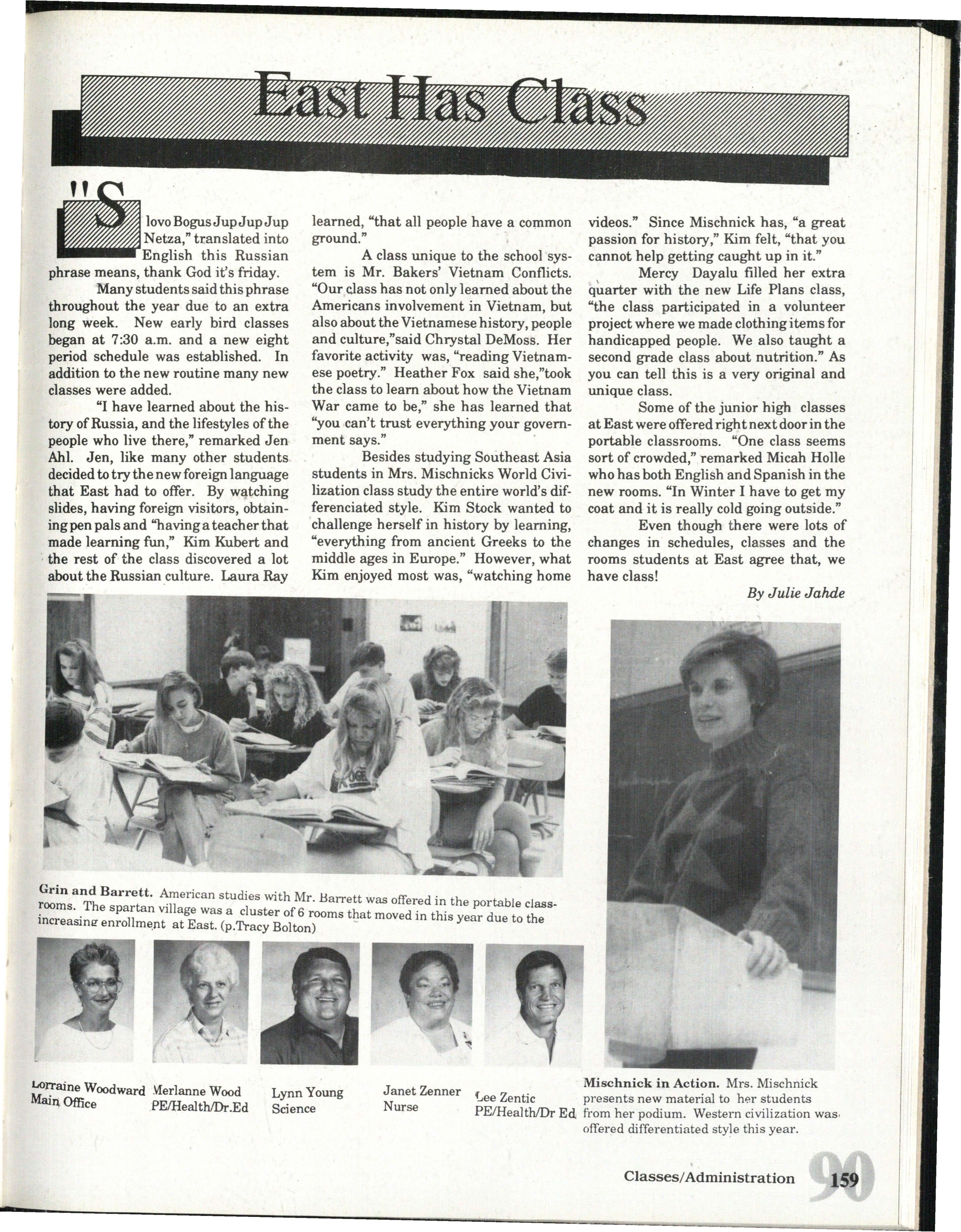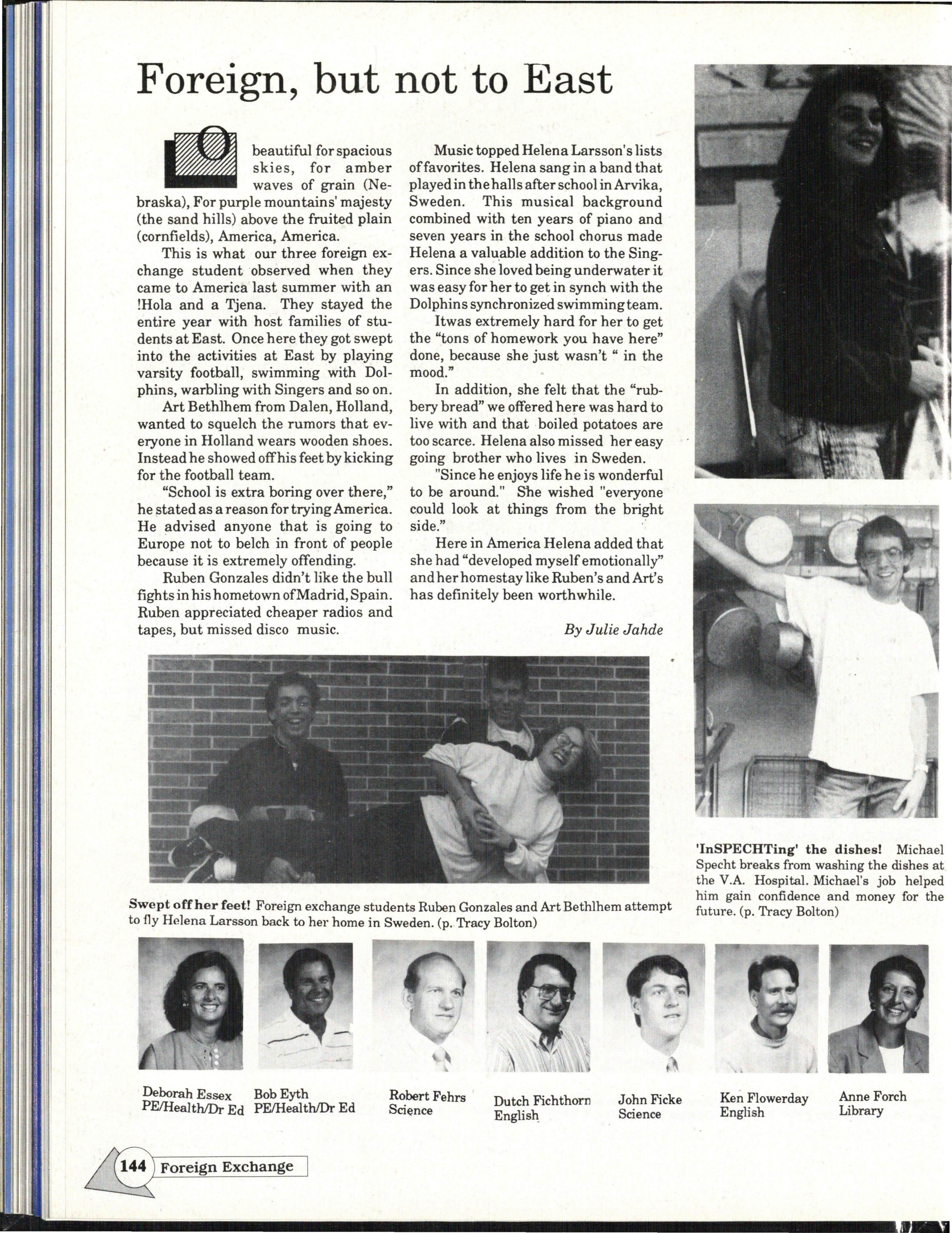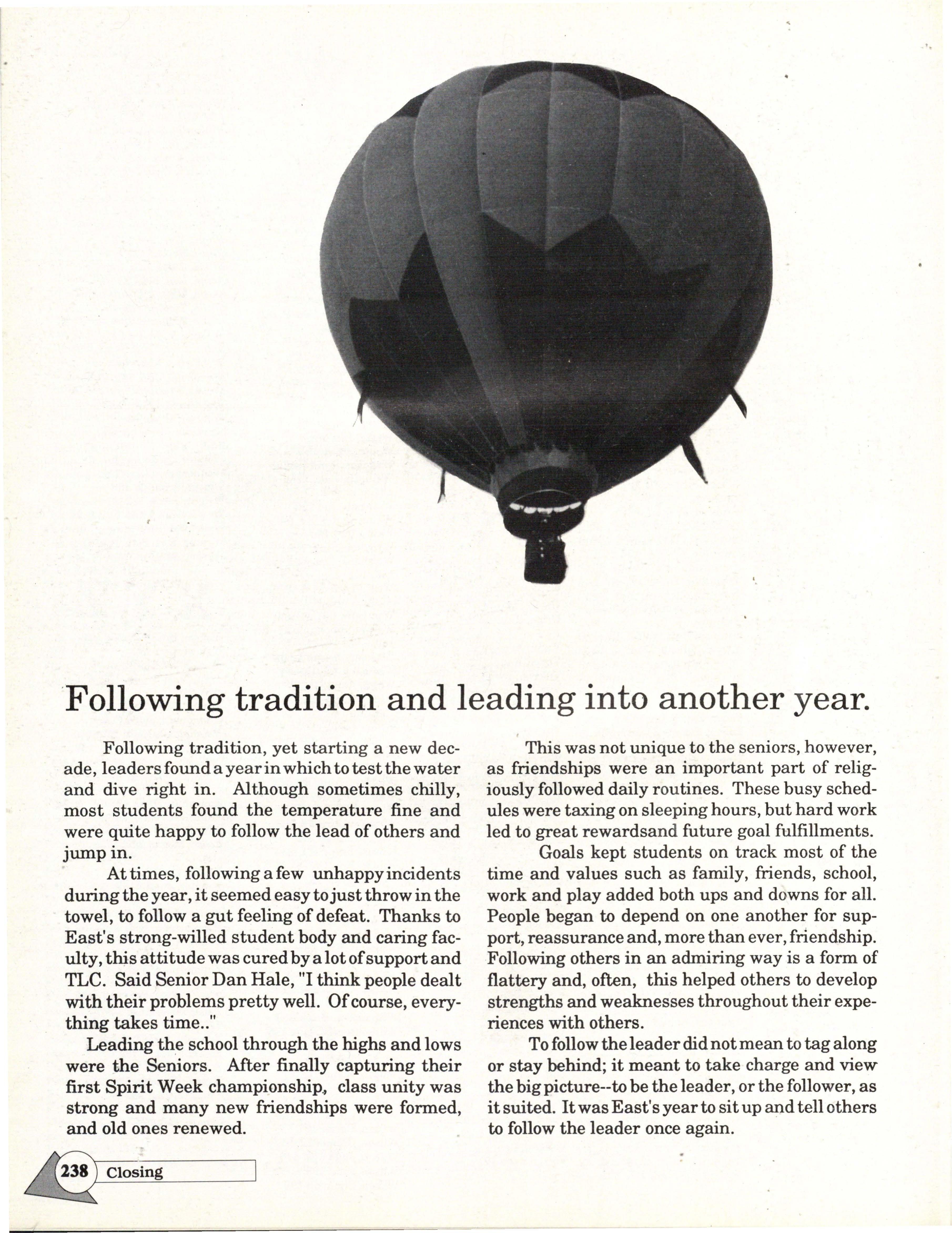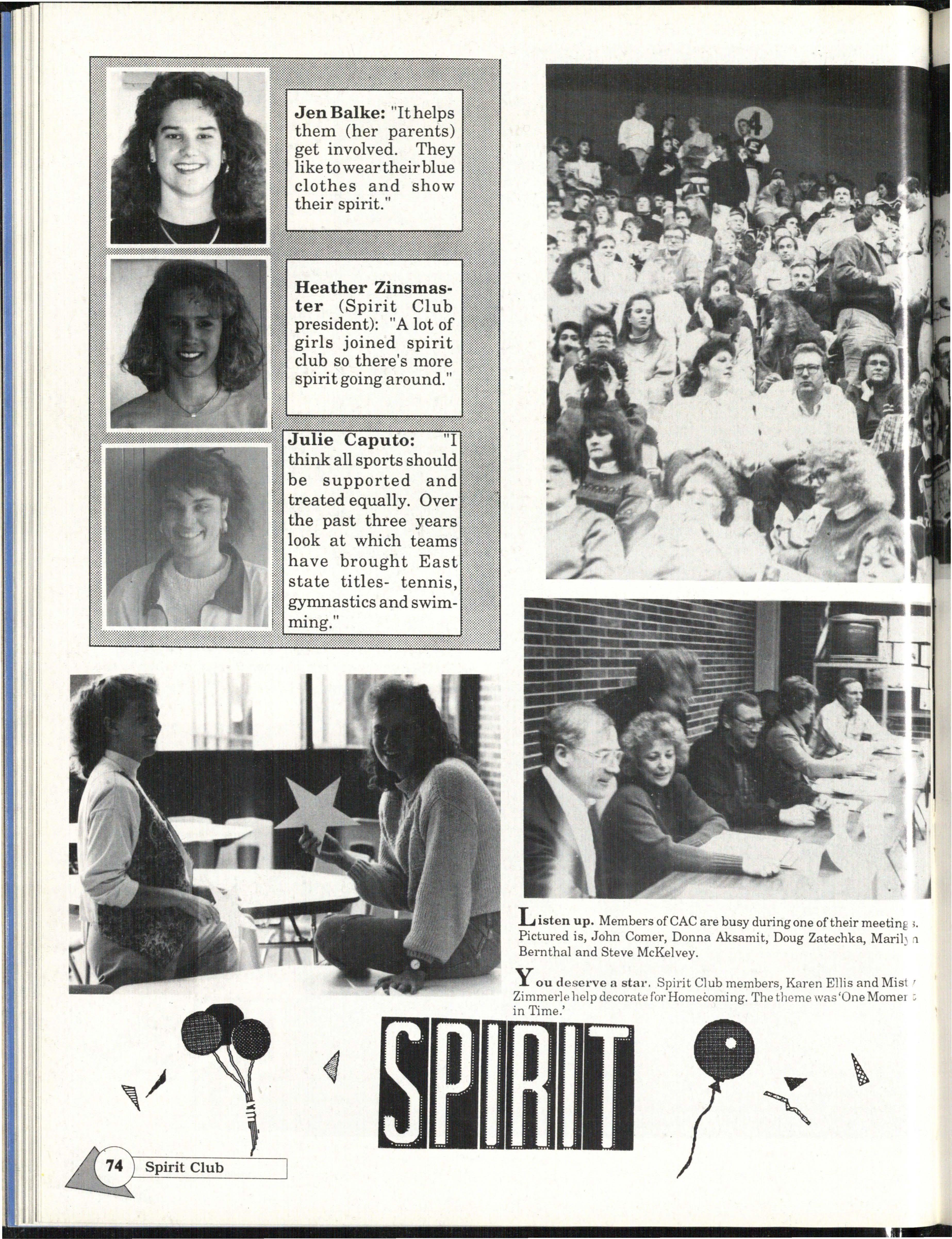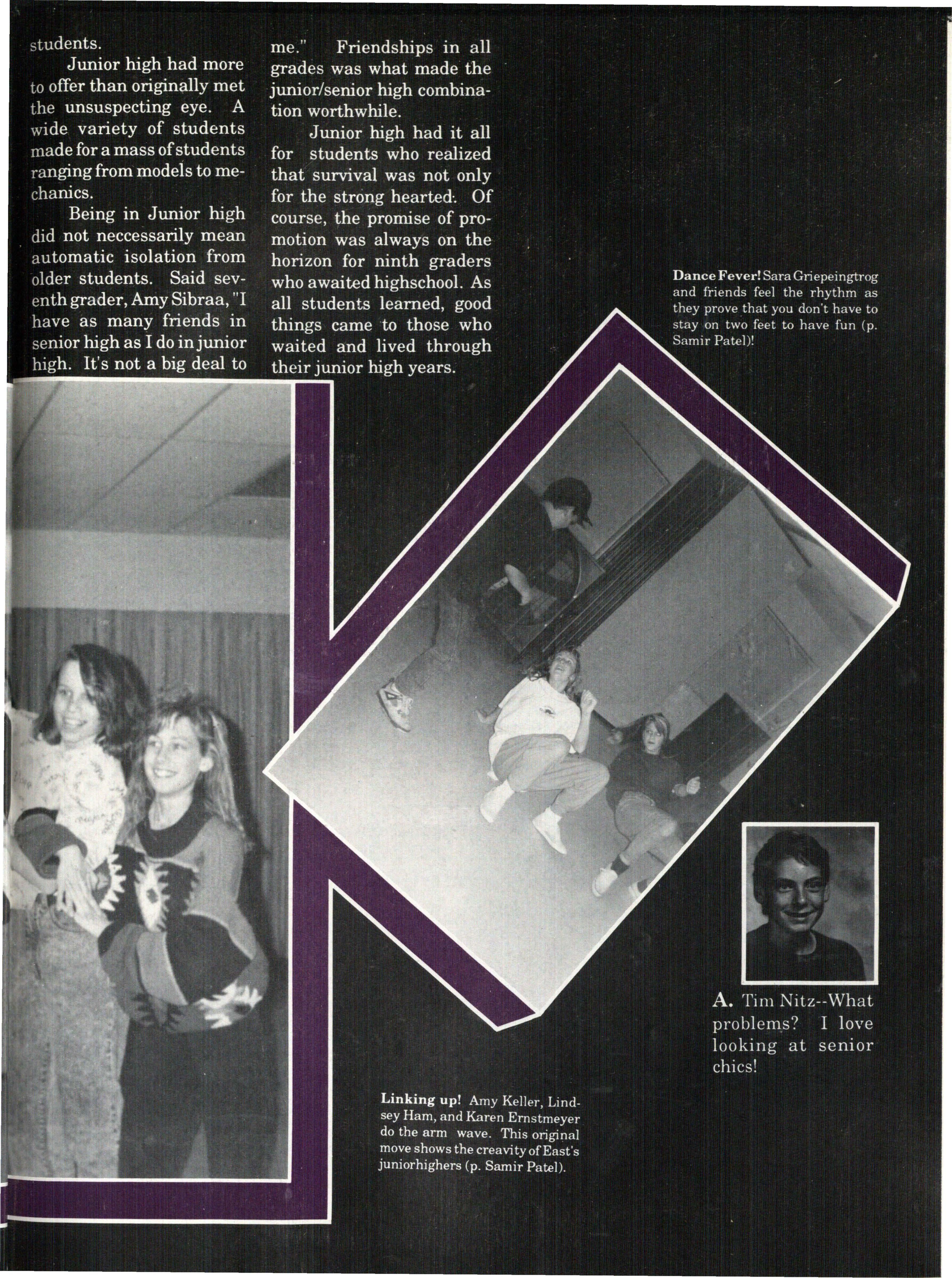 At times, following a few unhappy incidents during the year, it seemed easy to just throw in the towel, to follow a gut feeling of defeat. Thanks to East's strong-willed student body and caring faculty, this attitude was cured by a lot of support and TLC. Said Senior Dan Hale, "I think people dealt with their problems pretty well. Of course, everything takes time .. "