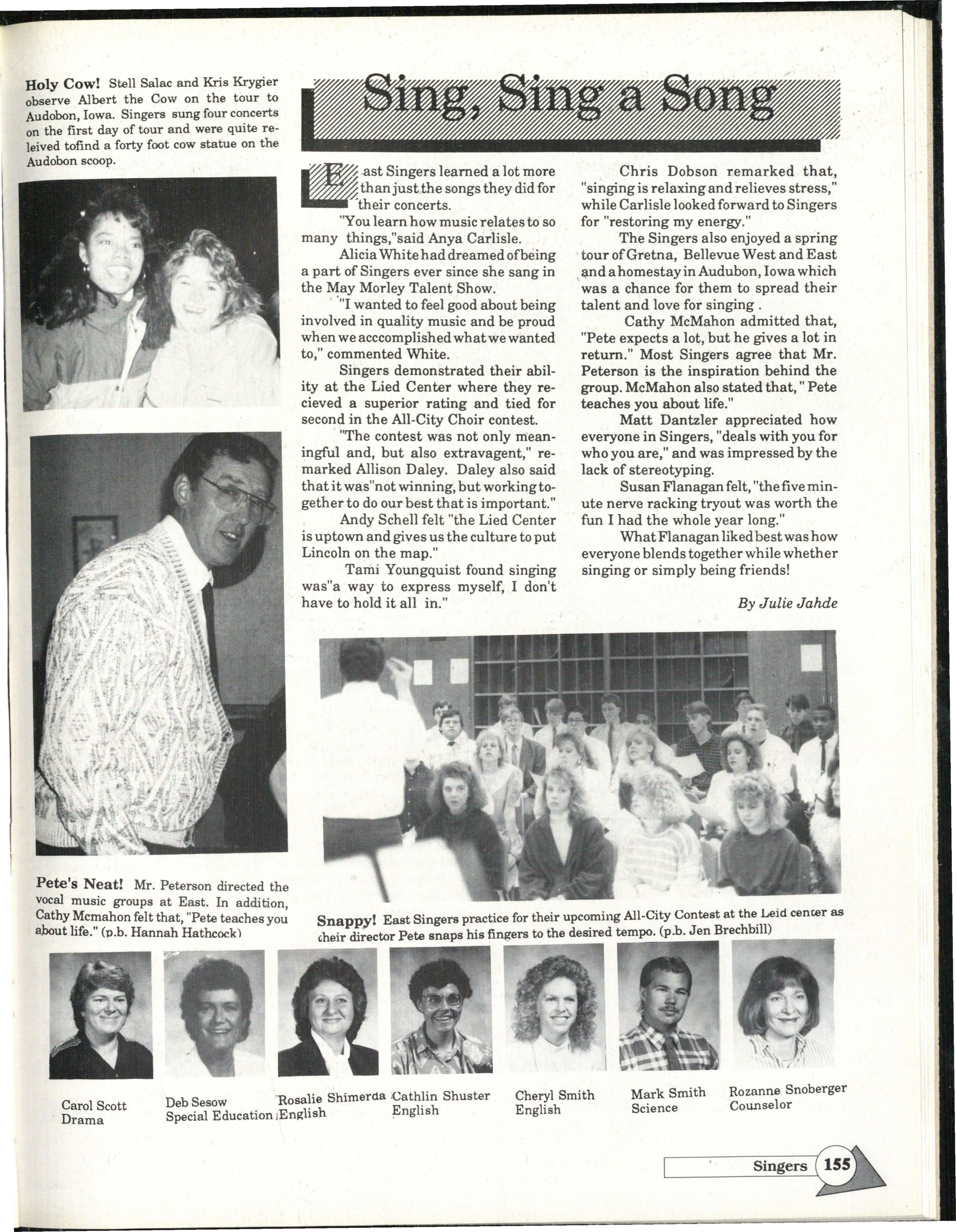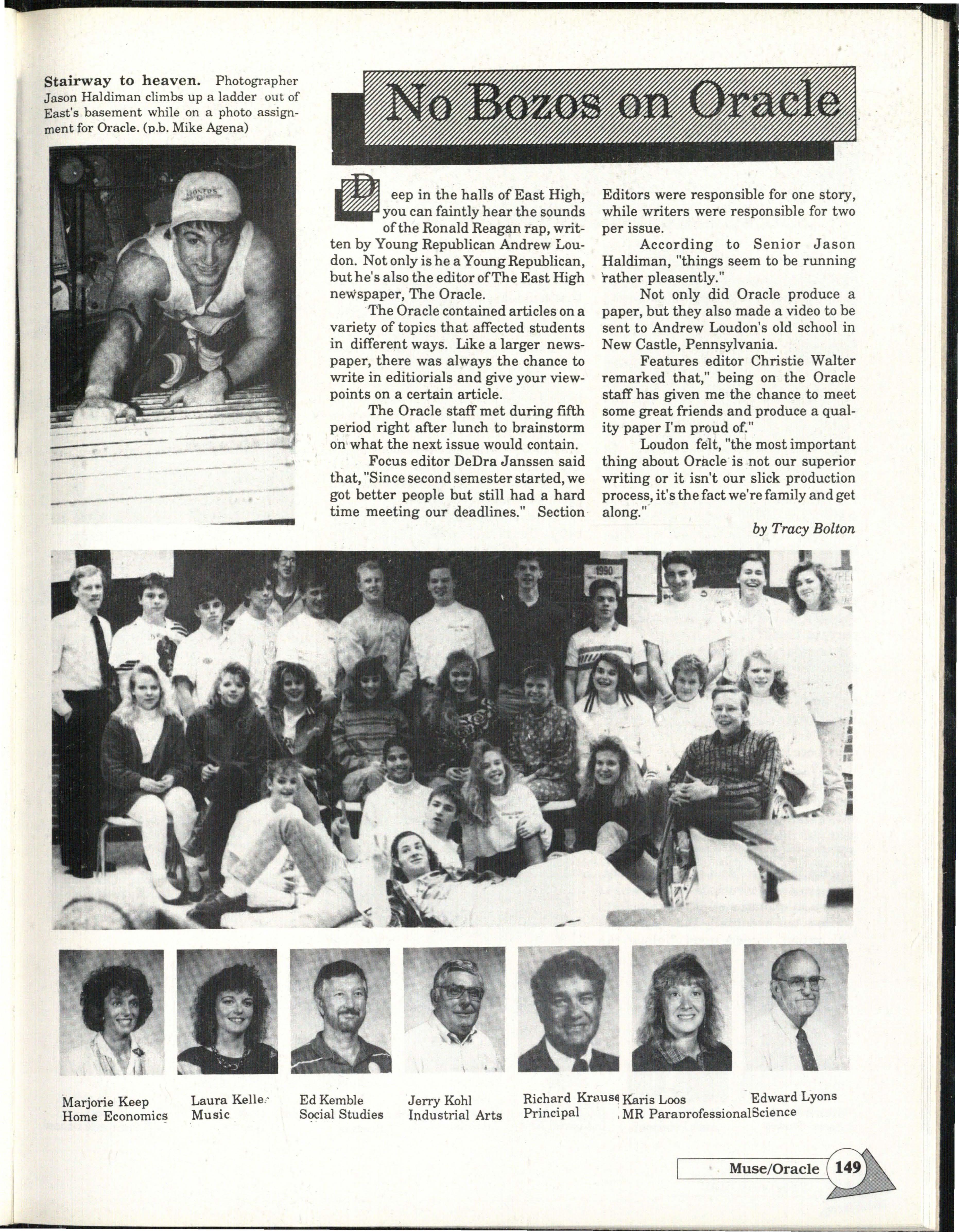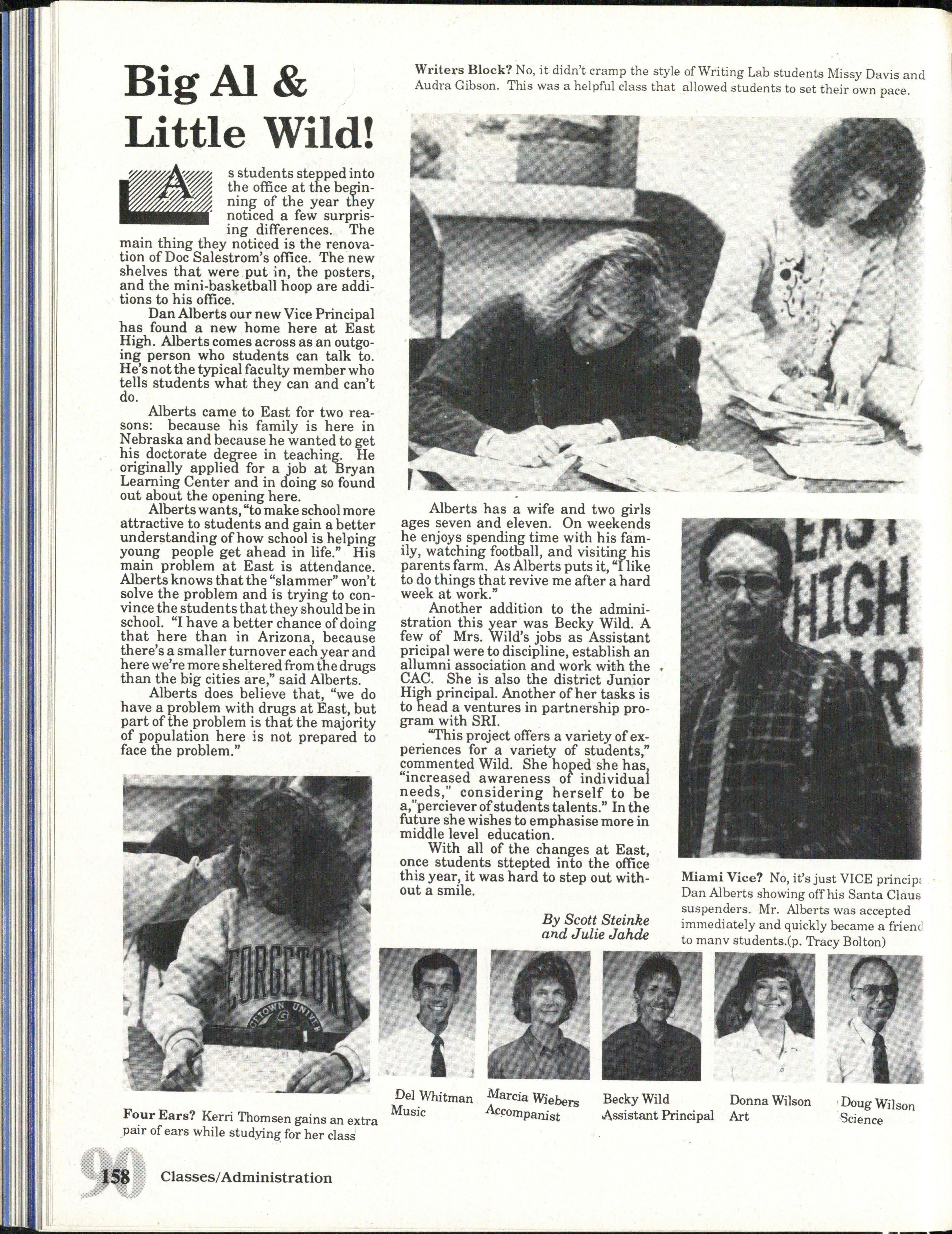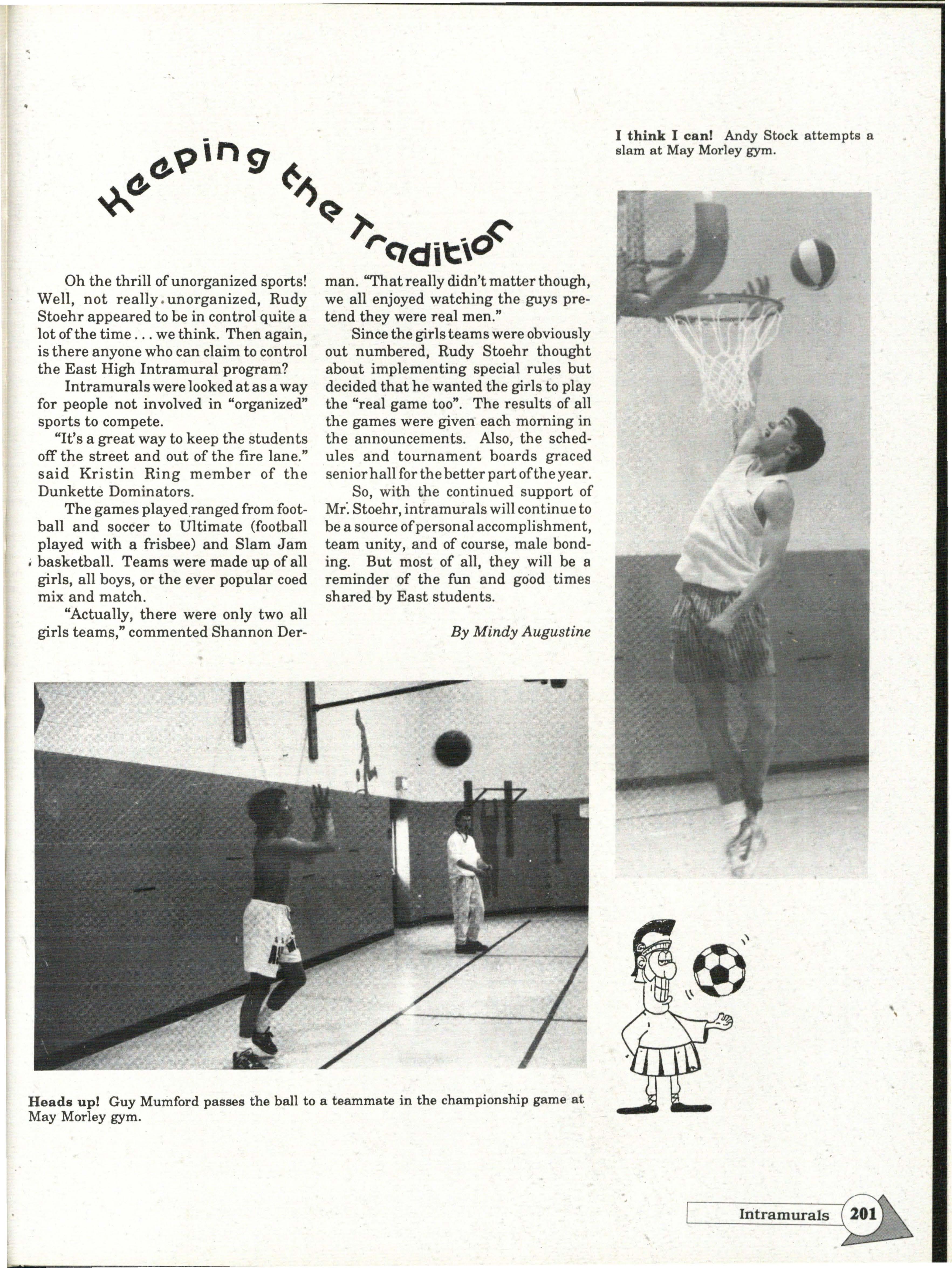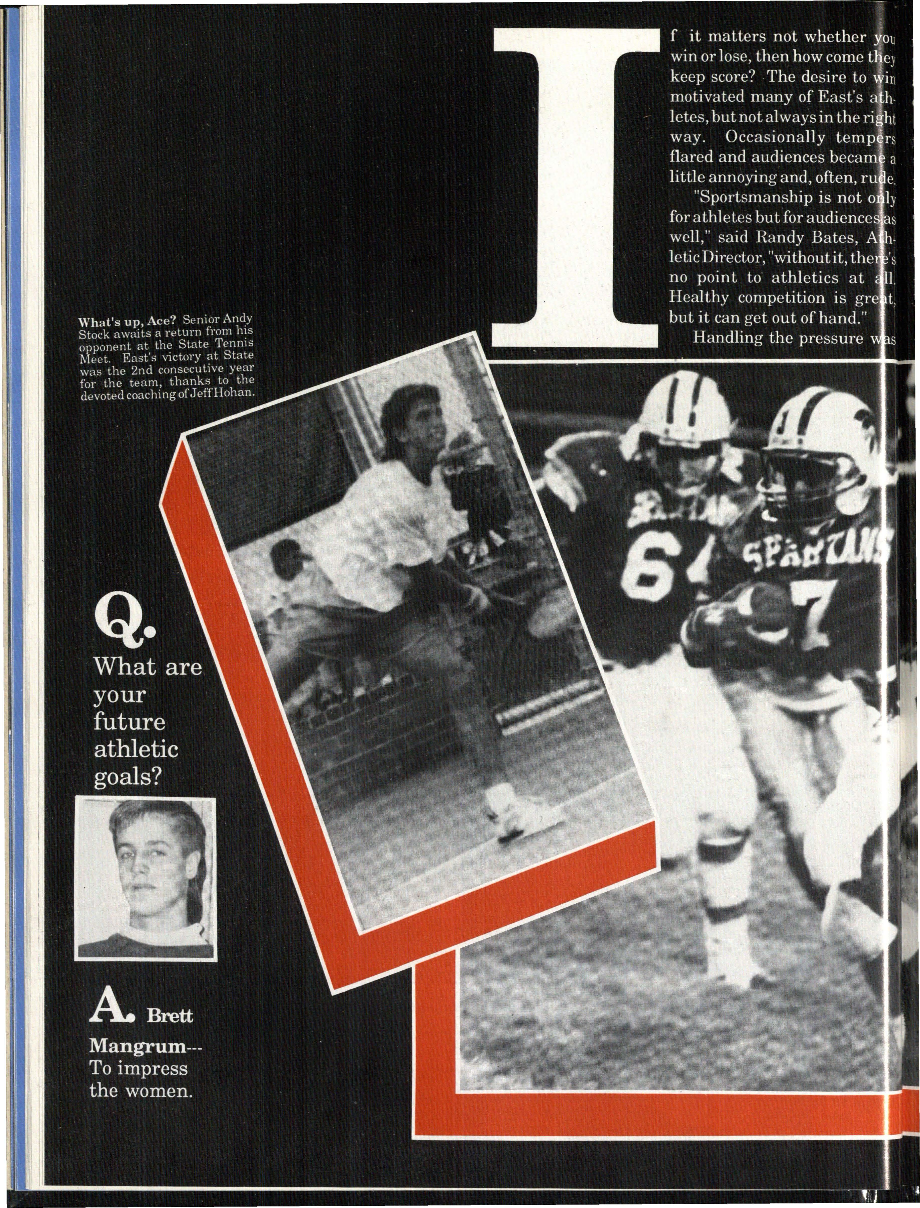 At times, following a few unhappy incidents during the year, it seemed easy to just throw in the towel, to follow a gut feeling of defeat. Thanks to East's strong-willed student body and caring faculty, this attitude was cured by a lot of support and TLC. Said Senior Dan Hale, "I think people dealt with their problems pretty well. Of course, everything takes time .. "
