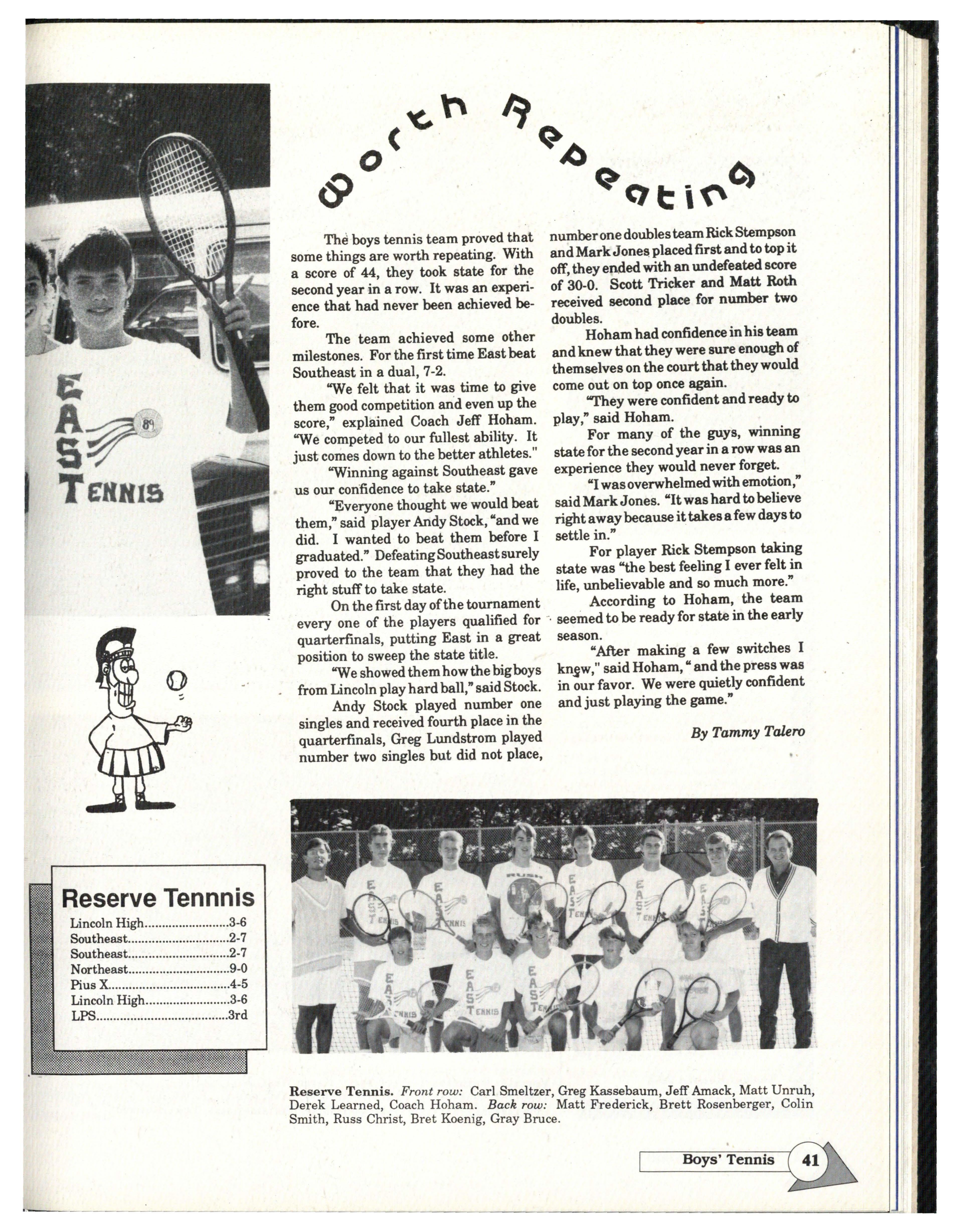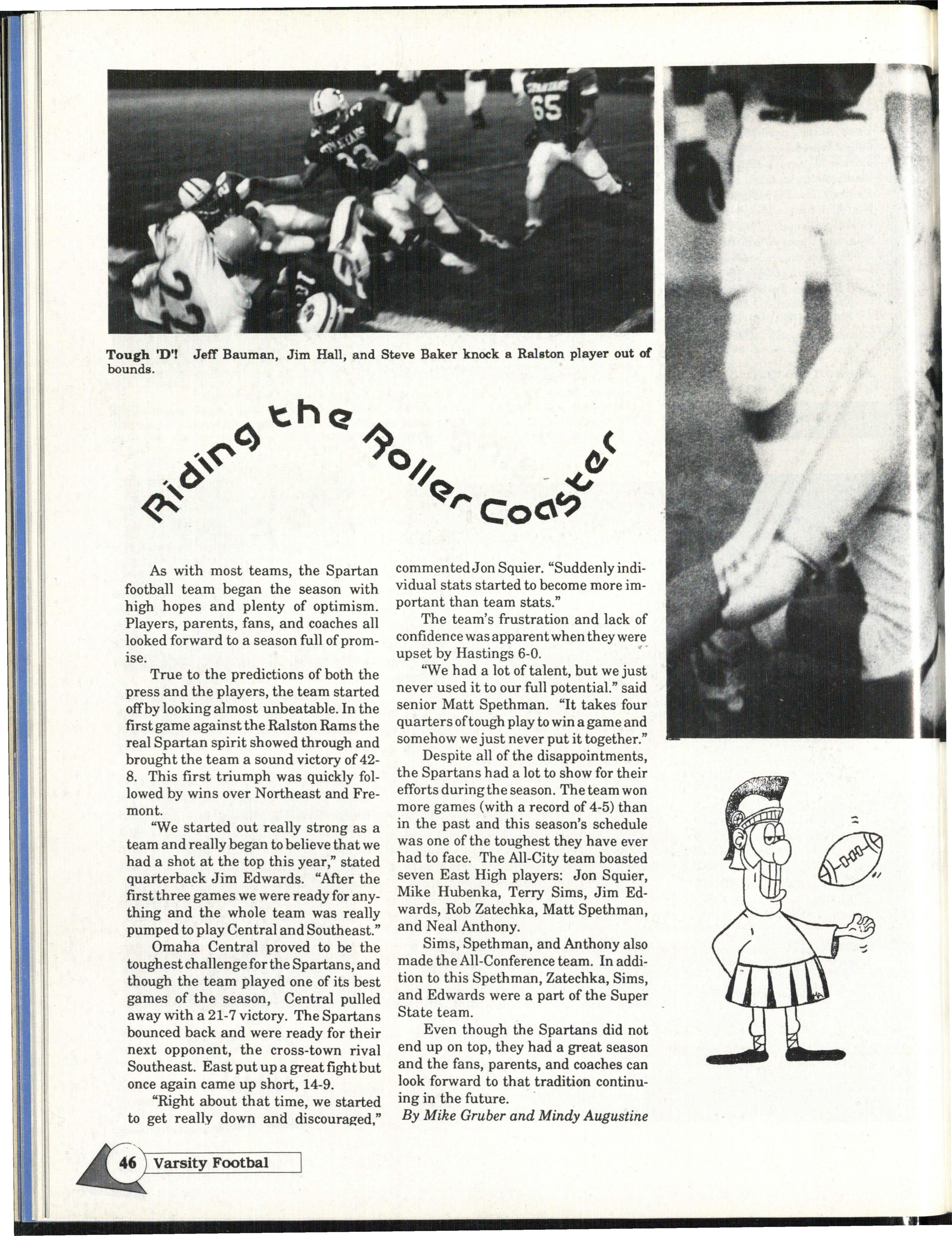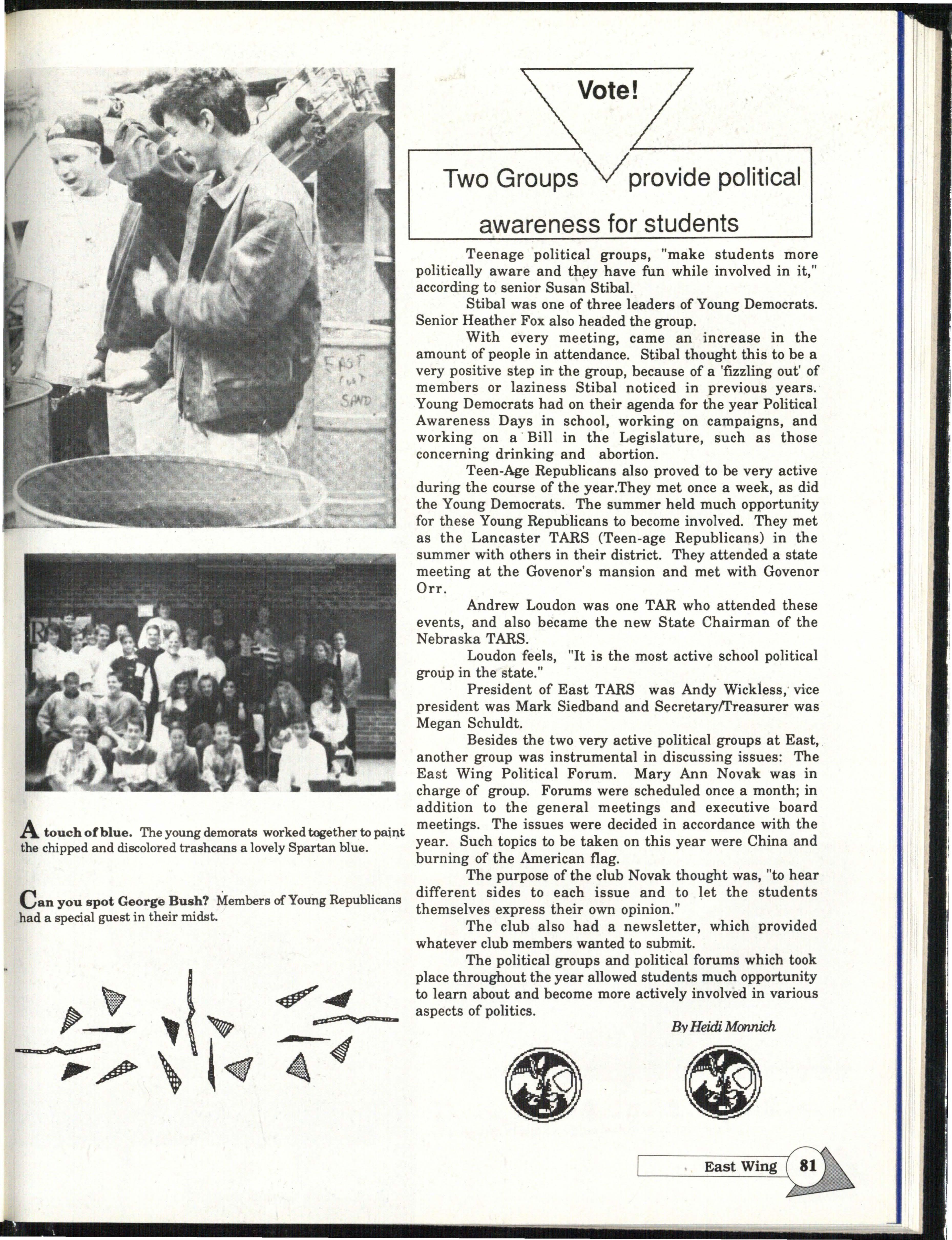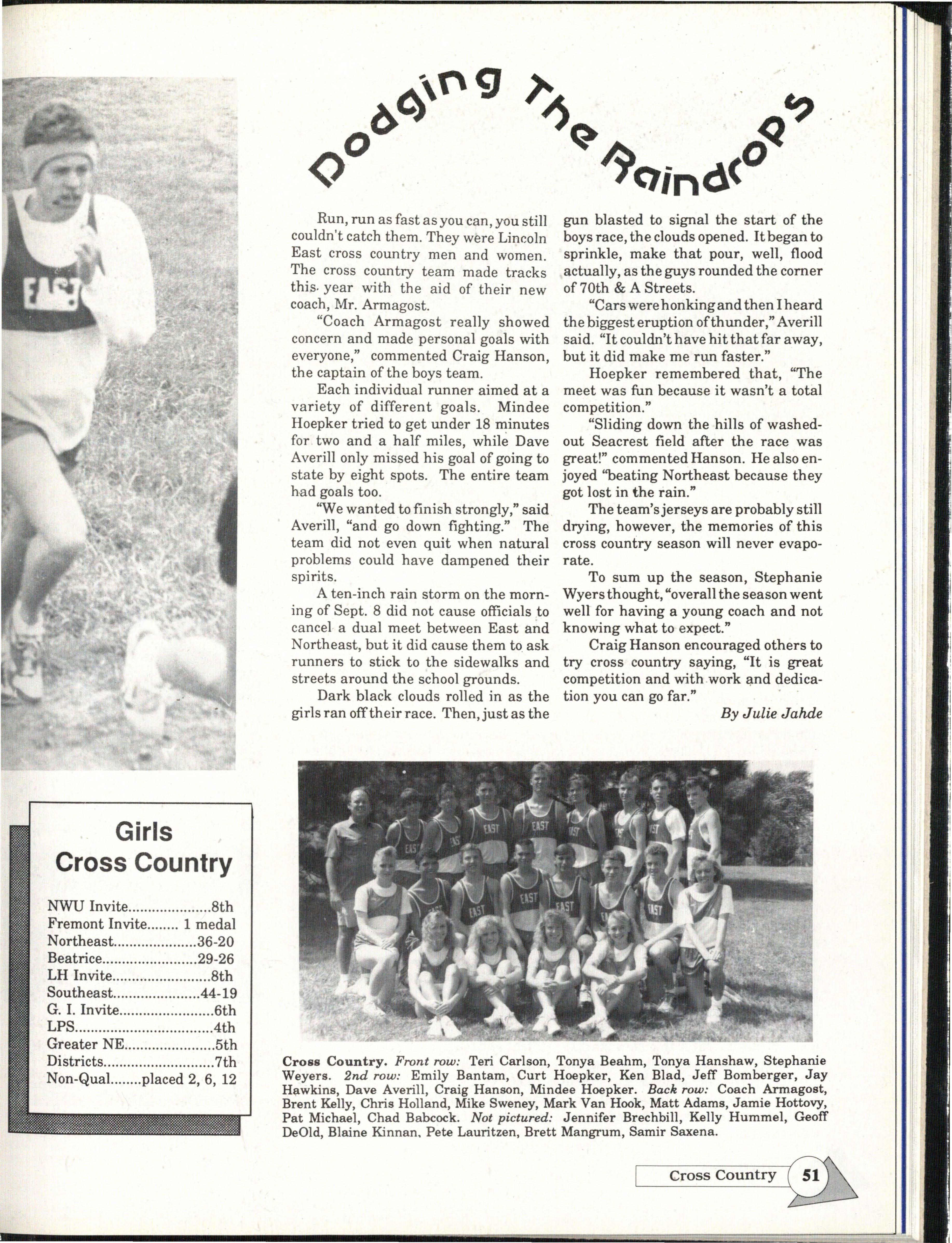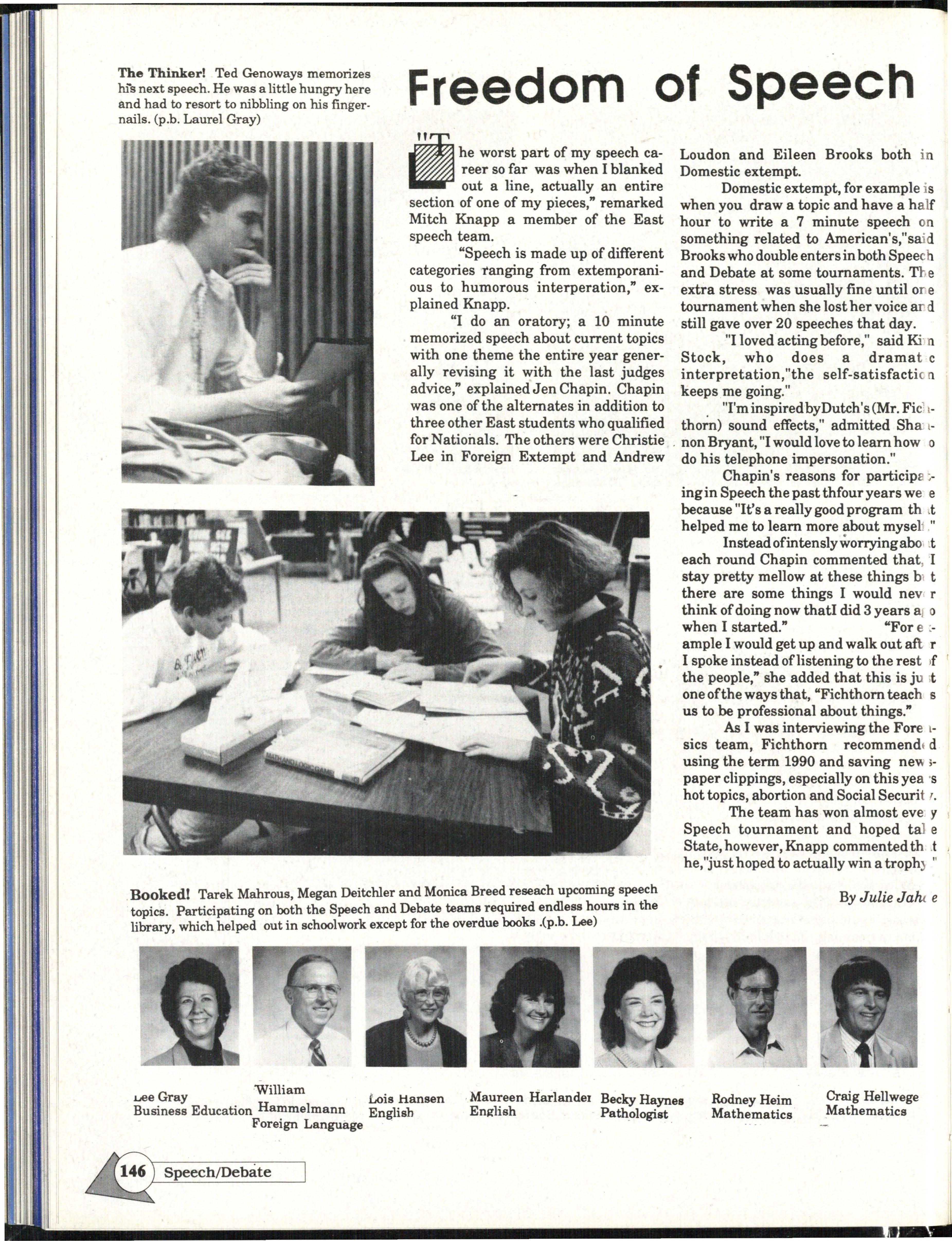 At times, following a few unhappy incidents during the year, it seemed easy to just throw in the towel, to follow a gut feeling of defeat. Thanks to East's strong-willed student body and caring faculty, this attitude was cured by a lot of support and TLC. Said Senior Dan Hale, "I think people dealt with their problems pretty well. Of course, everything takes time .. "