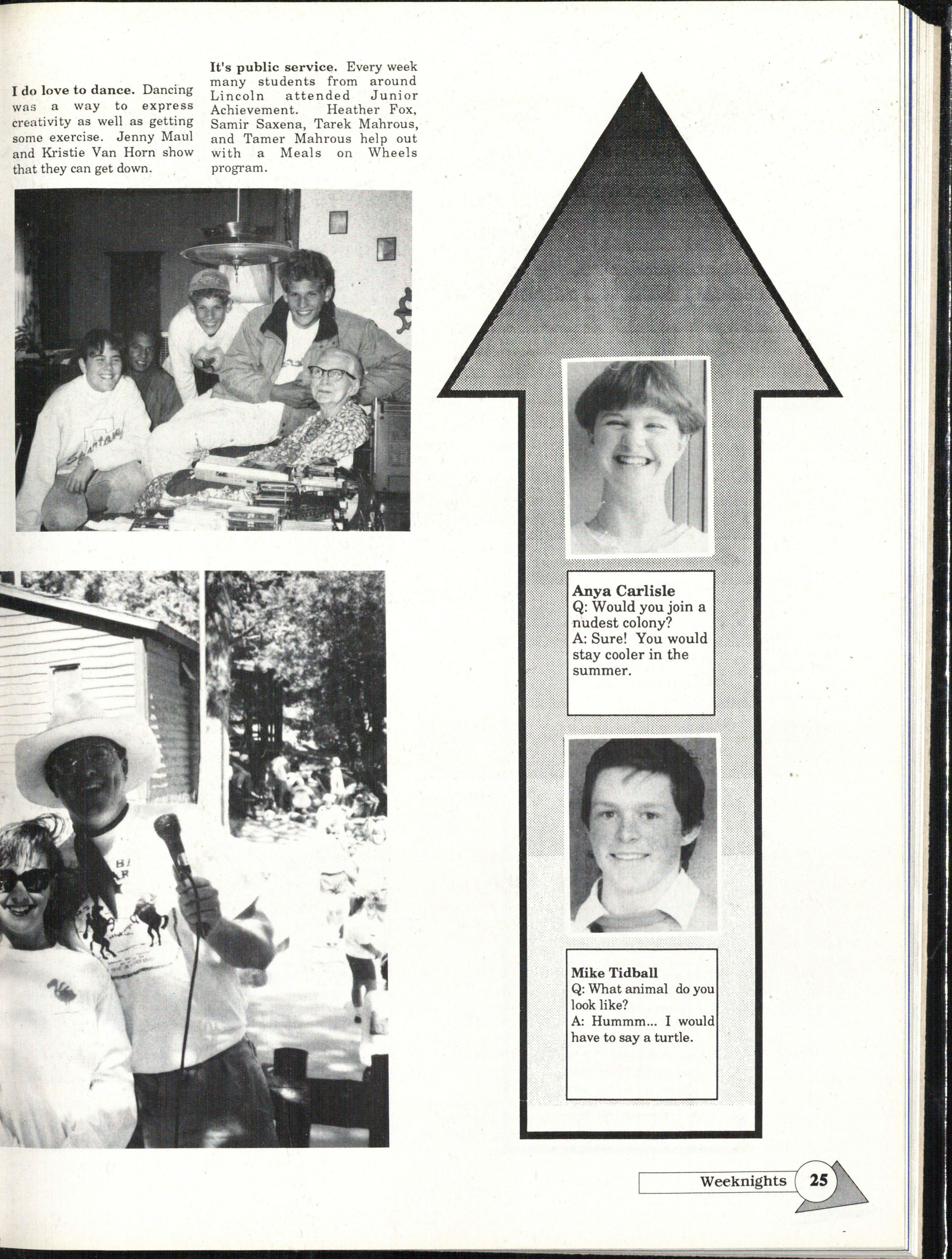 It's public service. Every week many students from around Lincoln attended Junior Achievement. Heather Fox, Samir Saxena, Tarek Mahrous, and Tamer Mahrous help out with a Meals on Wheels program.