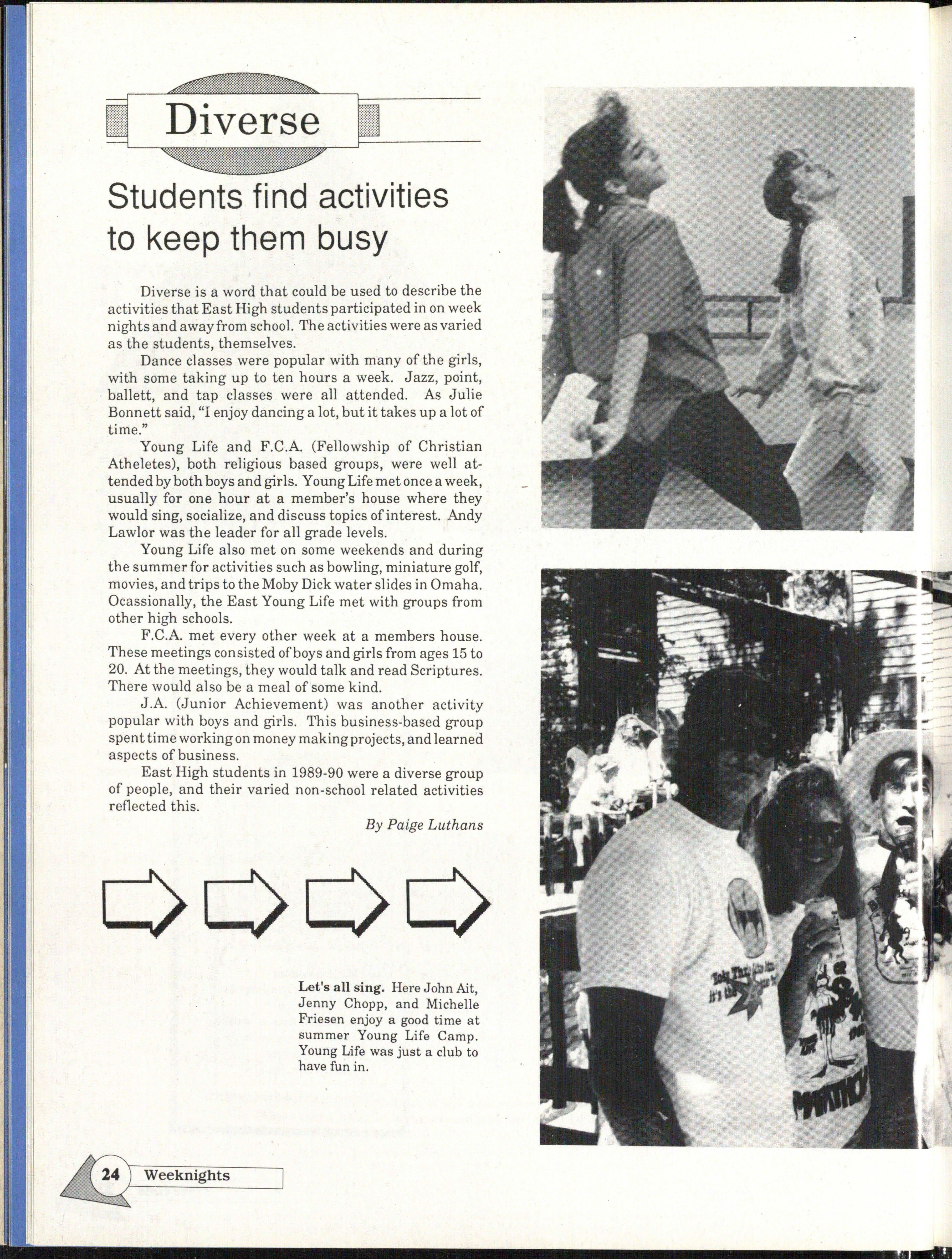 Diverse is a word that could be used to describe the activities that East High students participated in on week nights and away from school. The activities were as varied as the students, themselves.
