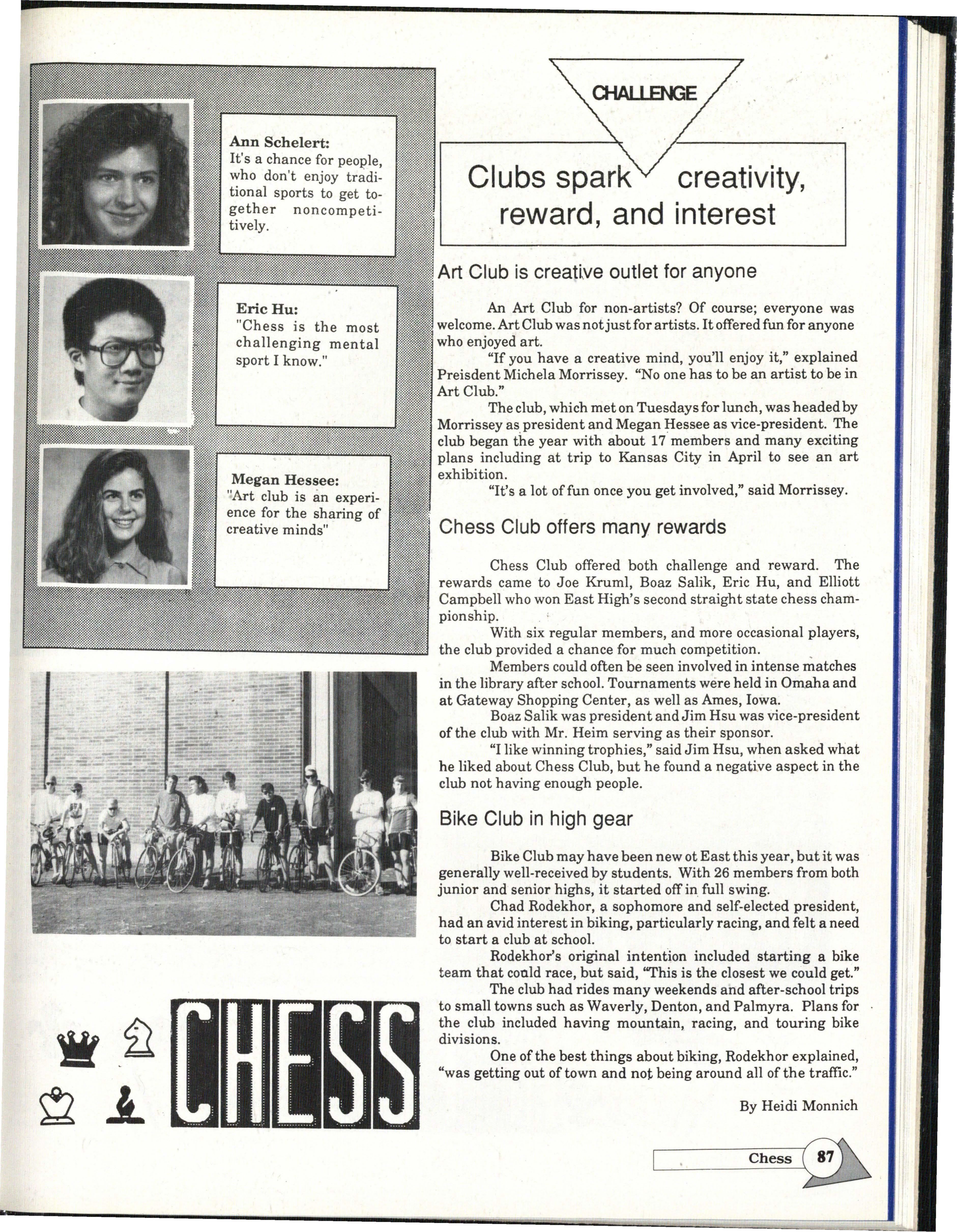 East High students in 1989-90 were a diverse group of people, and their varied non-school related activities reflected this.