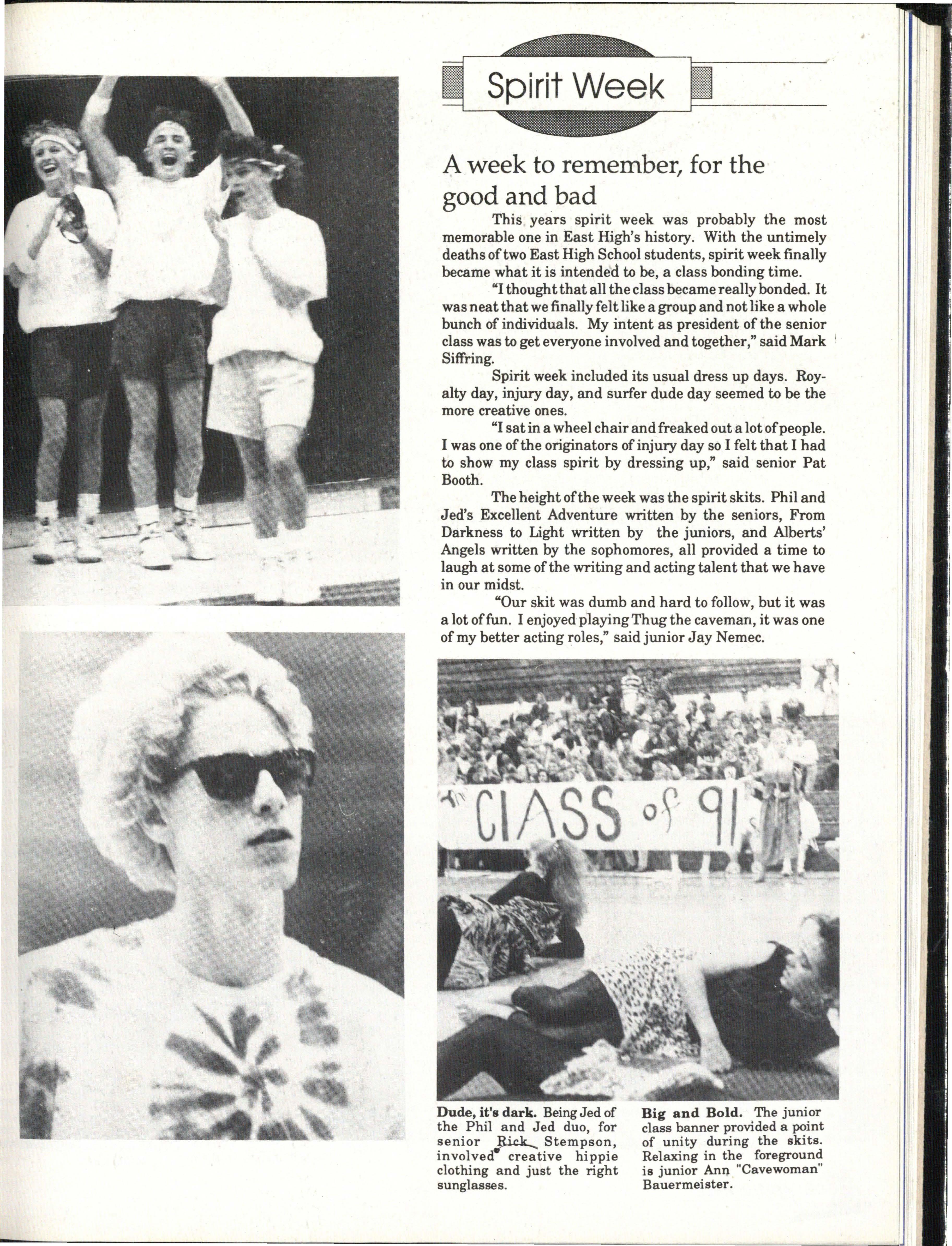 This years spirit week was probably the most memorable one in East High's history. With the untimely deaths of two East High School students, spirit week finally became what it is intended to be, a class bonding time.