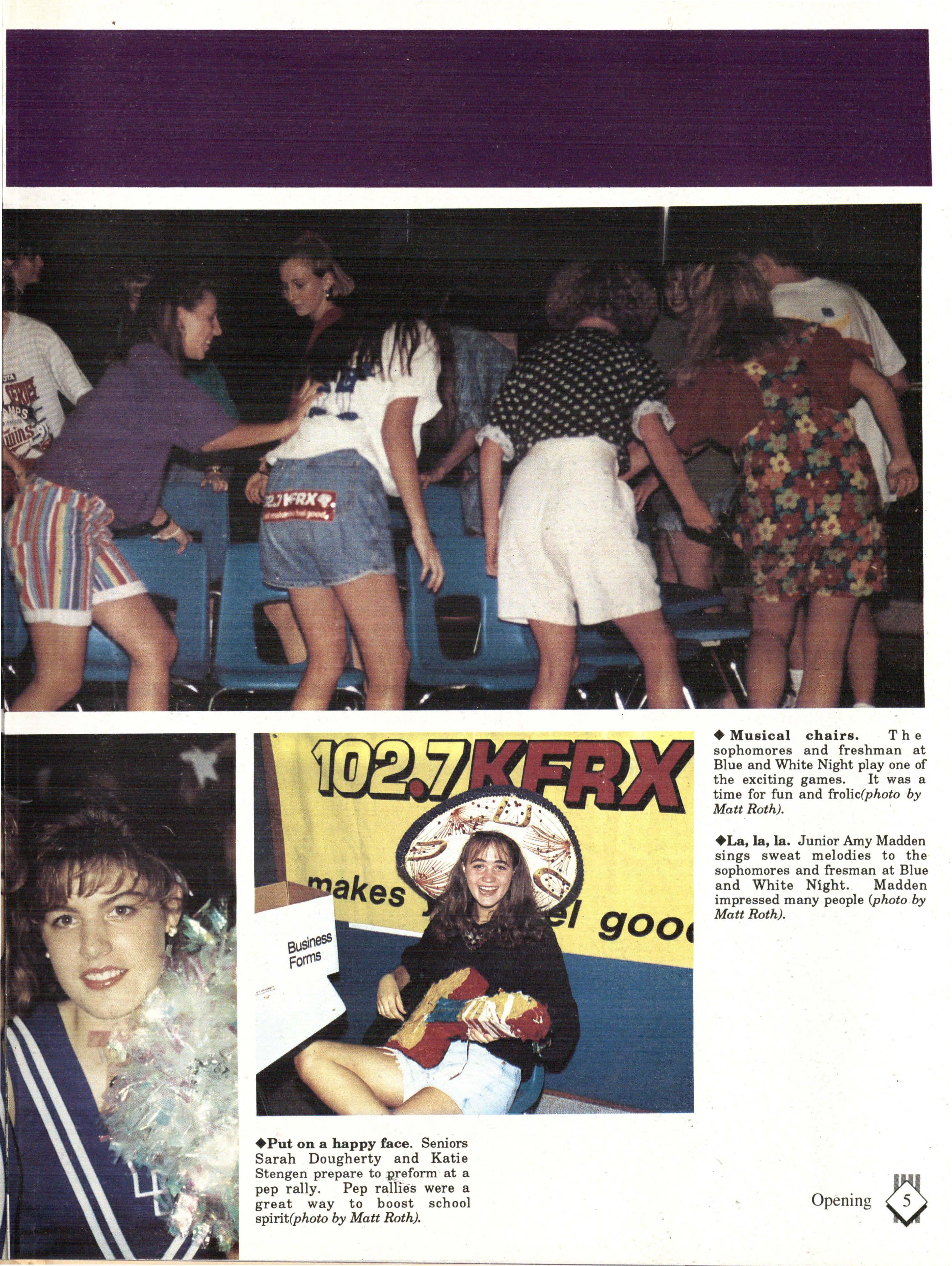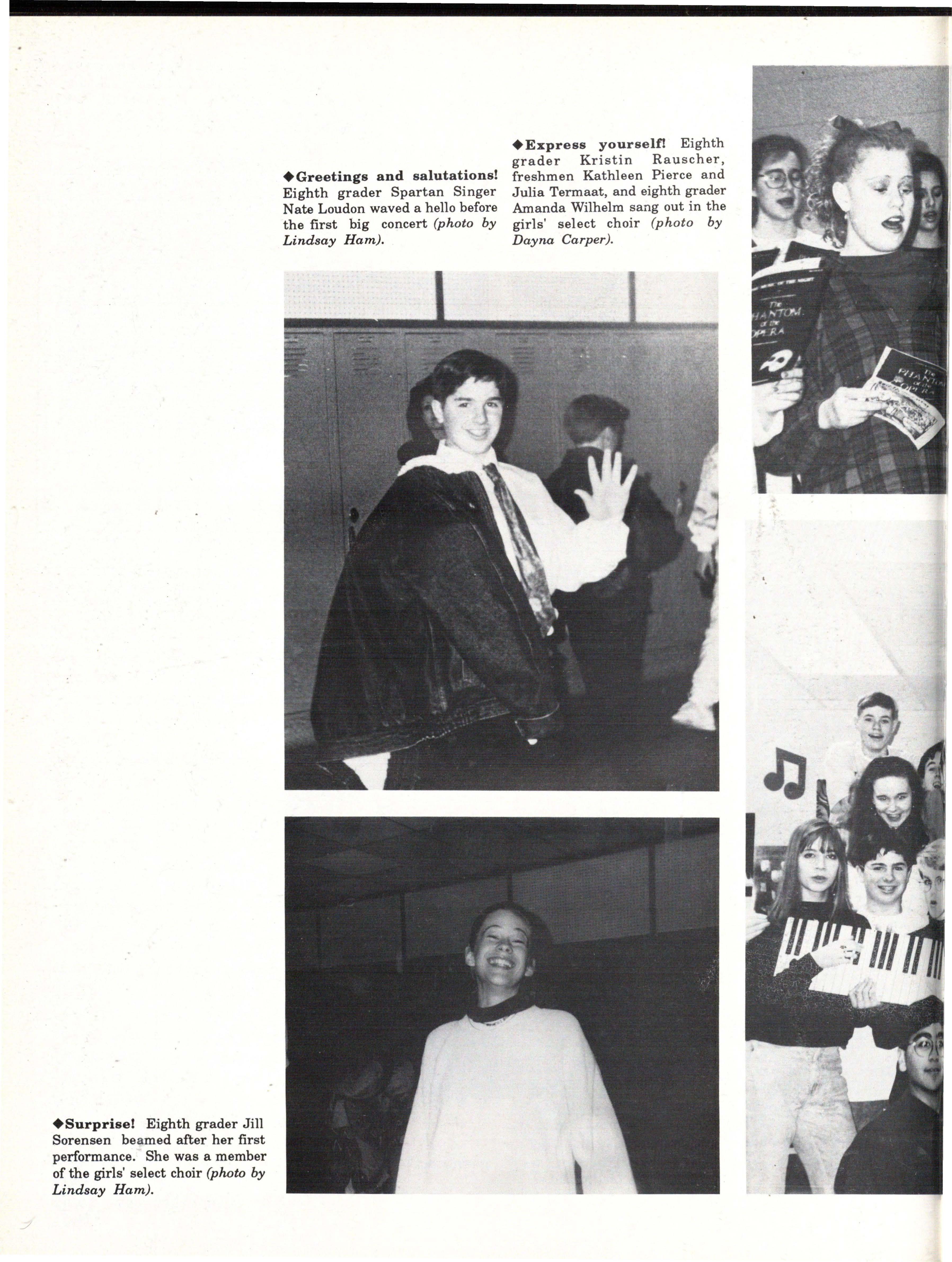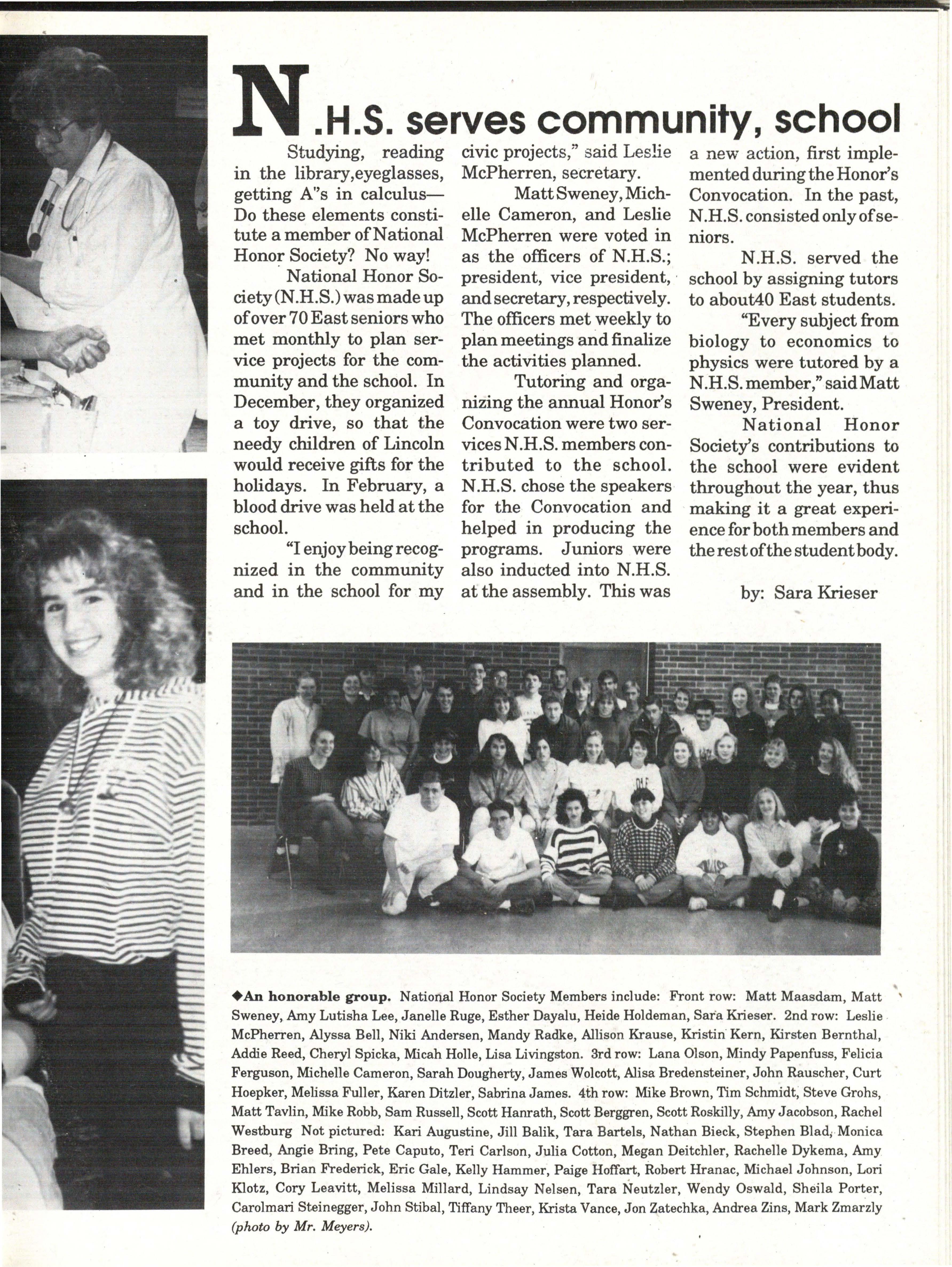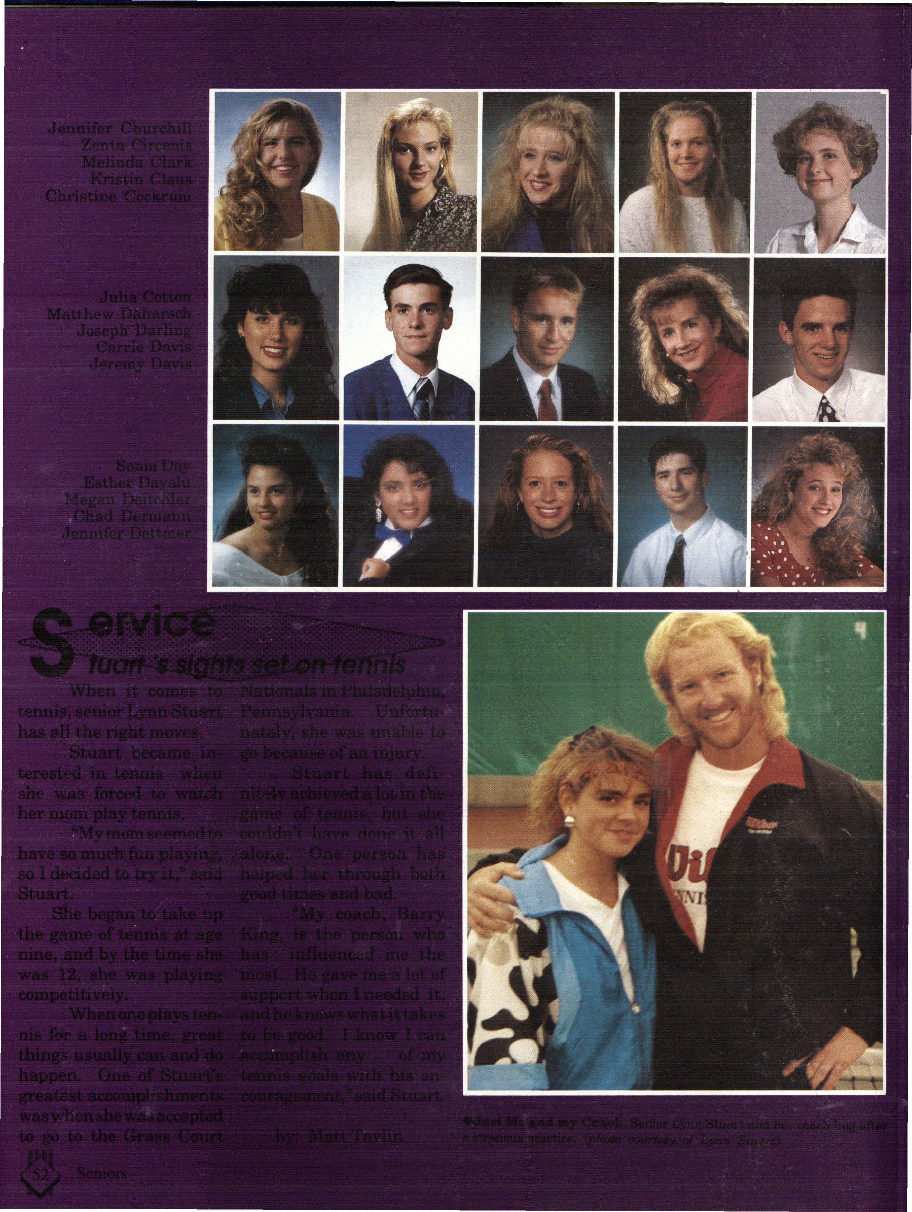 The students were very involved. Many play sports an:d are involved in clubs. Their spirit and dedication were matched bynoone. Thetennisteam won their fifth state tennis title while the varsity volleyball team won the silver pool in a national tournament. SeniorsNateBieck, Addie. Reed, Mike Robb, Erin Ann Scott; juniors Jill Loweery, Vicki Geiser, Matt Krohn and Megan Zeece made NMEA AllState Chorus.