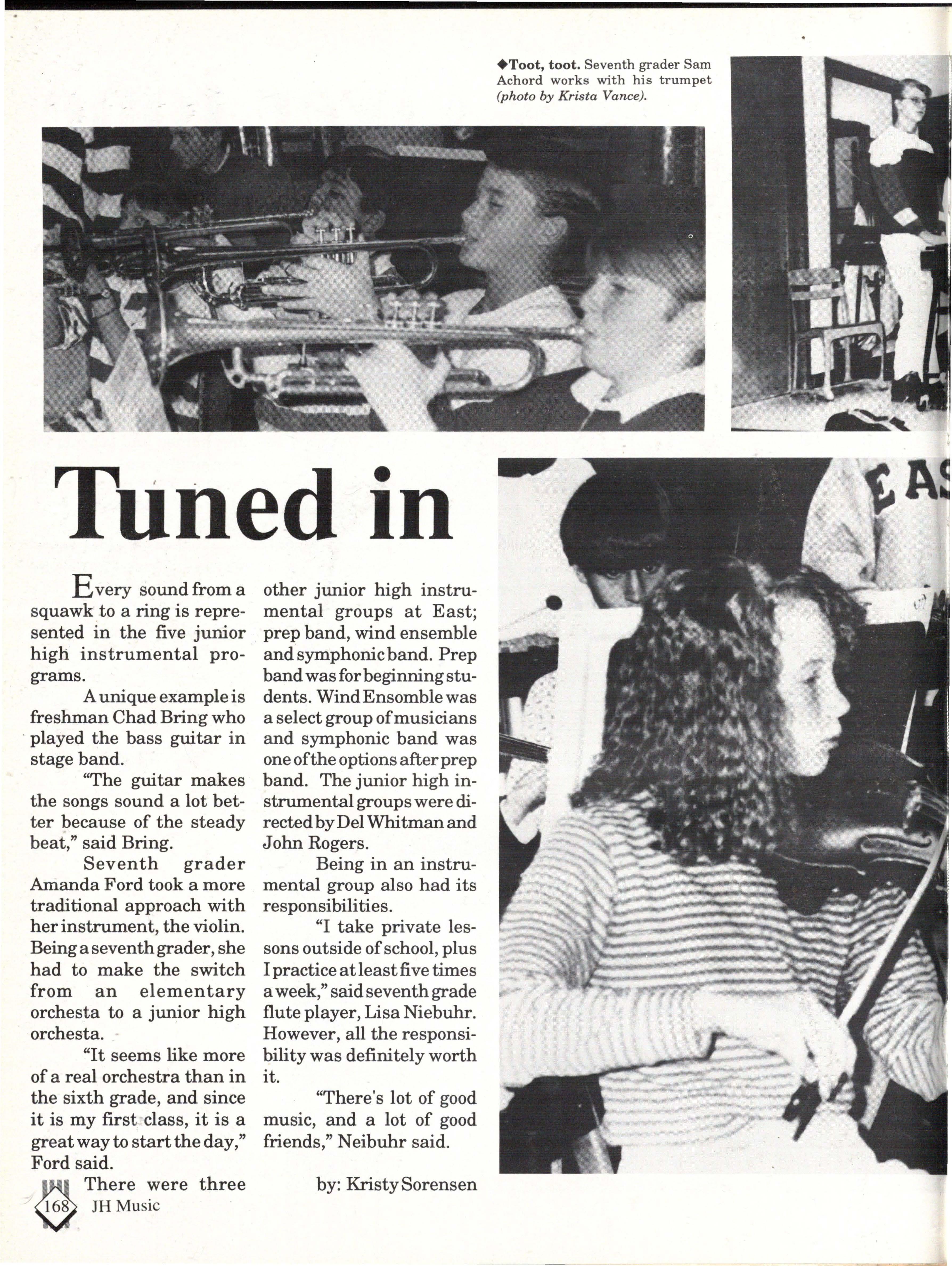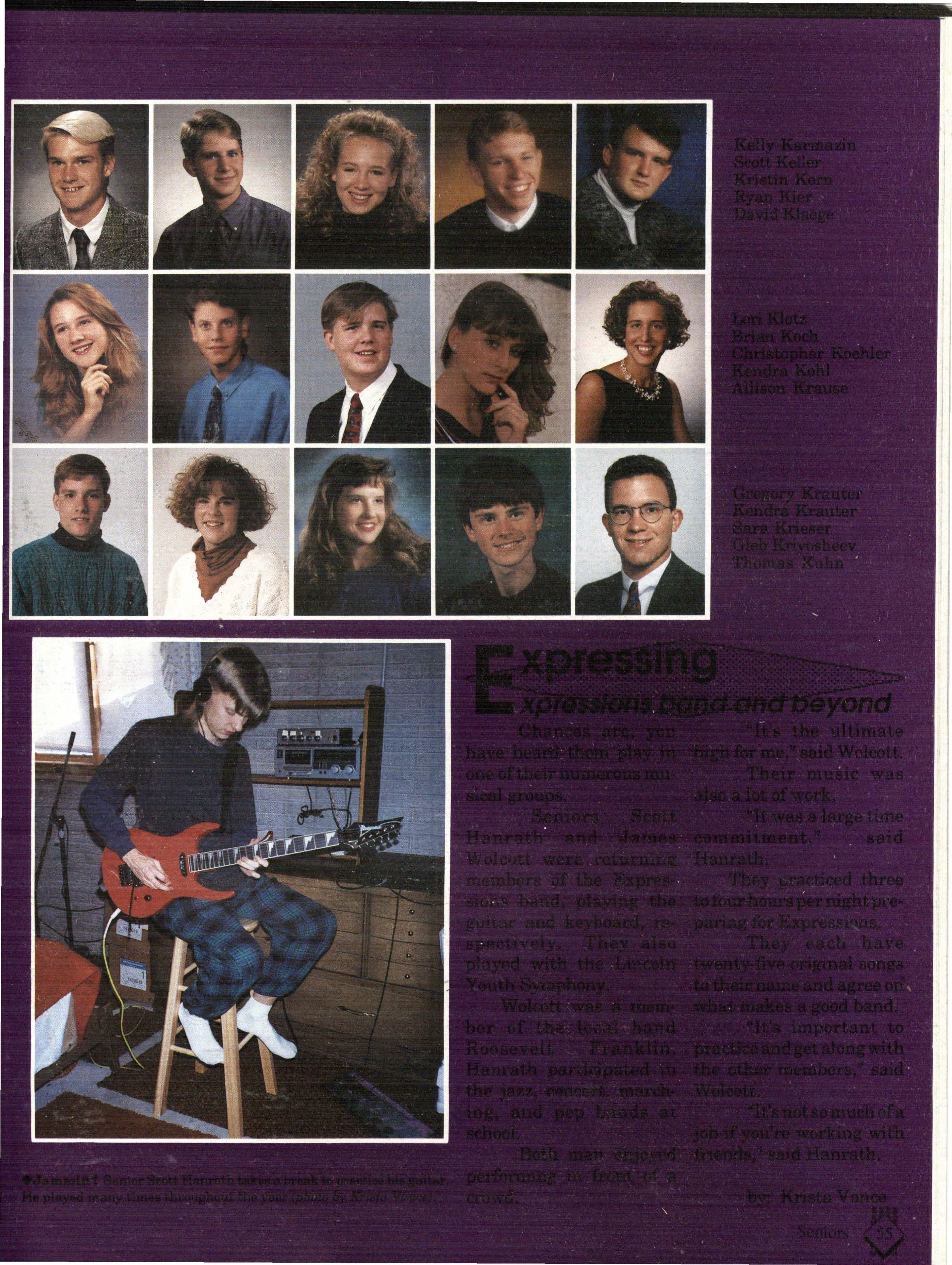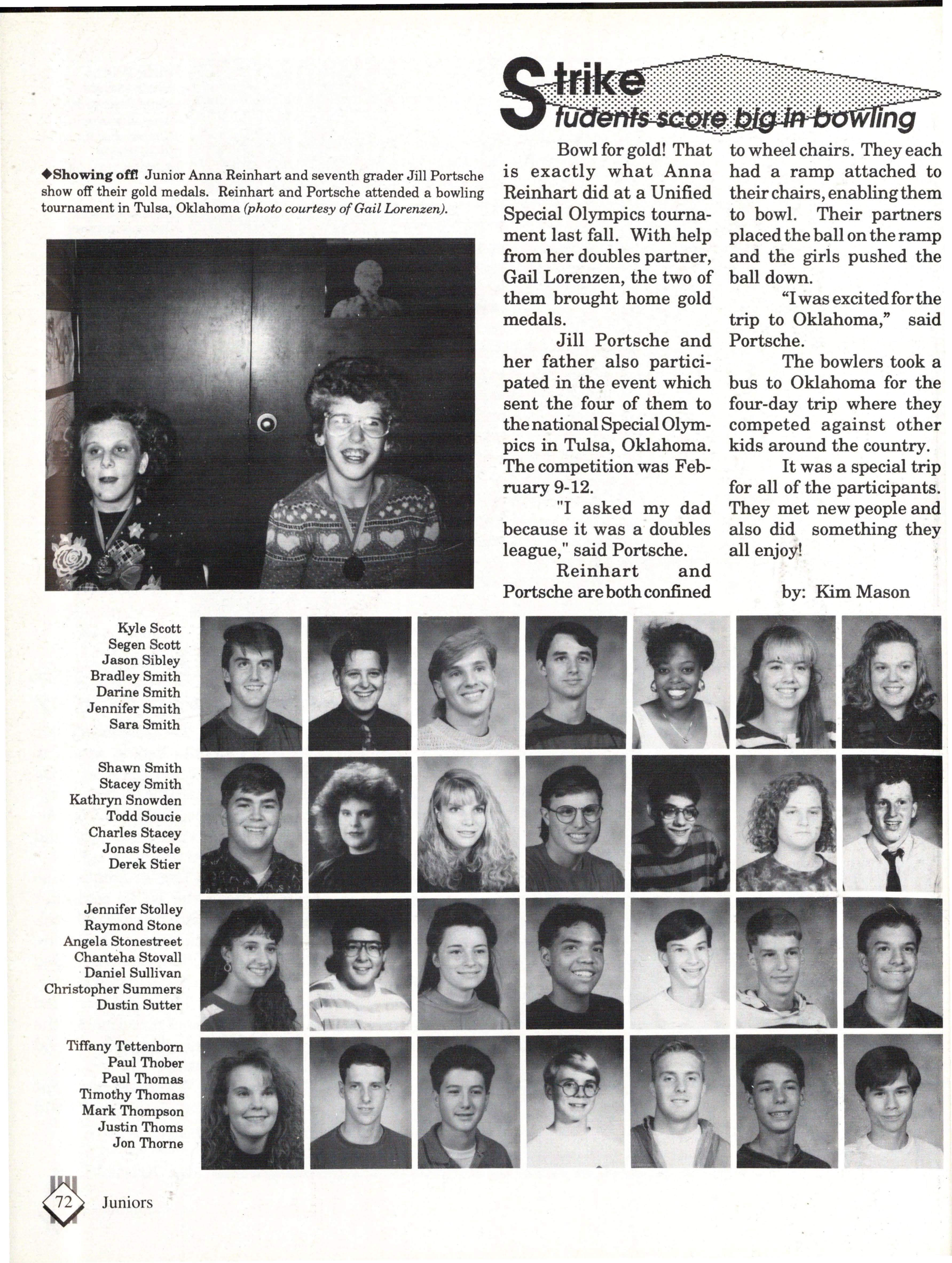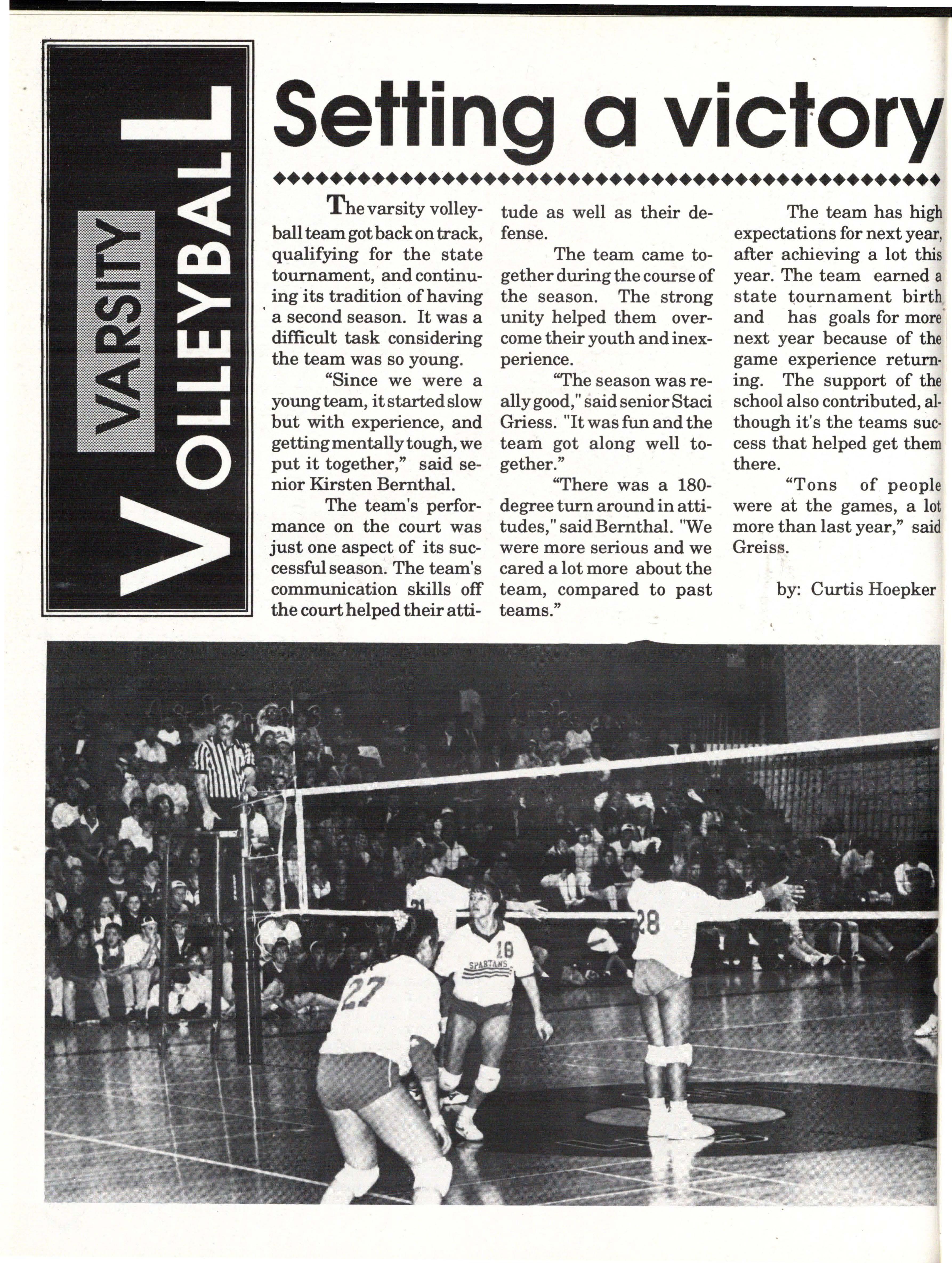 The students were very involved. Many play sports an:d are involved in clubs. Their spirit and dedication were matched bynoone. Thetennisteam won their fifth state tennis title while the varsity volleyball team won the silver pool in a national tournament. SeniorsNateBieck, Addie. Reed, Mike Robb, Erin Ann Scott; juniors Jill Loweery, Vicki Geiser, Matt Krohn and Megan Zeece made NMEA AllState Chorus.