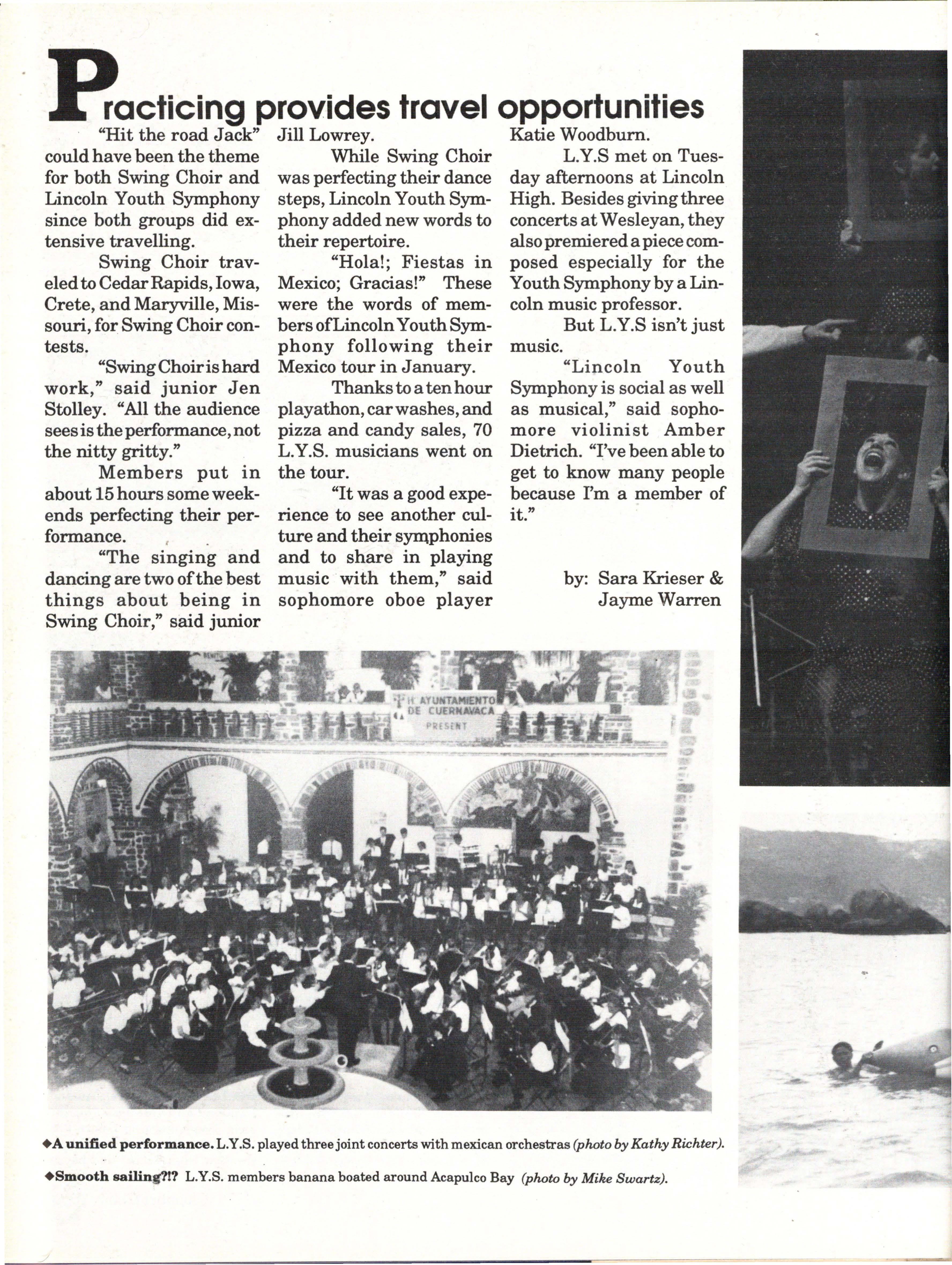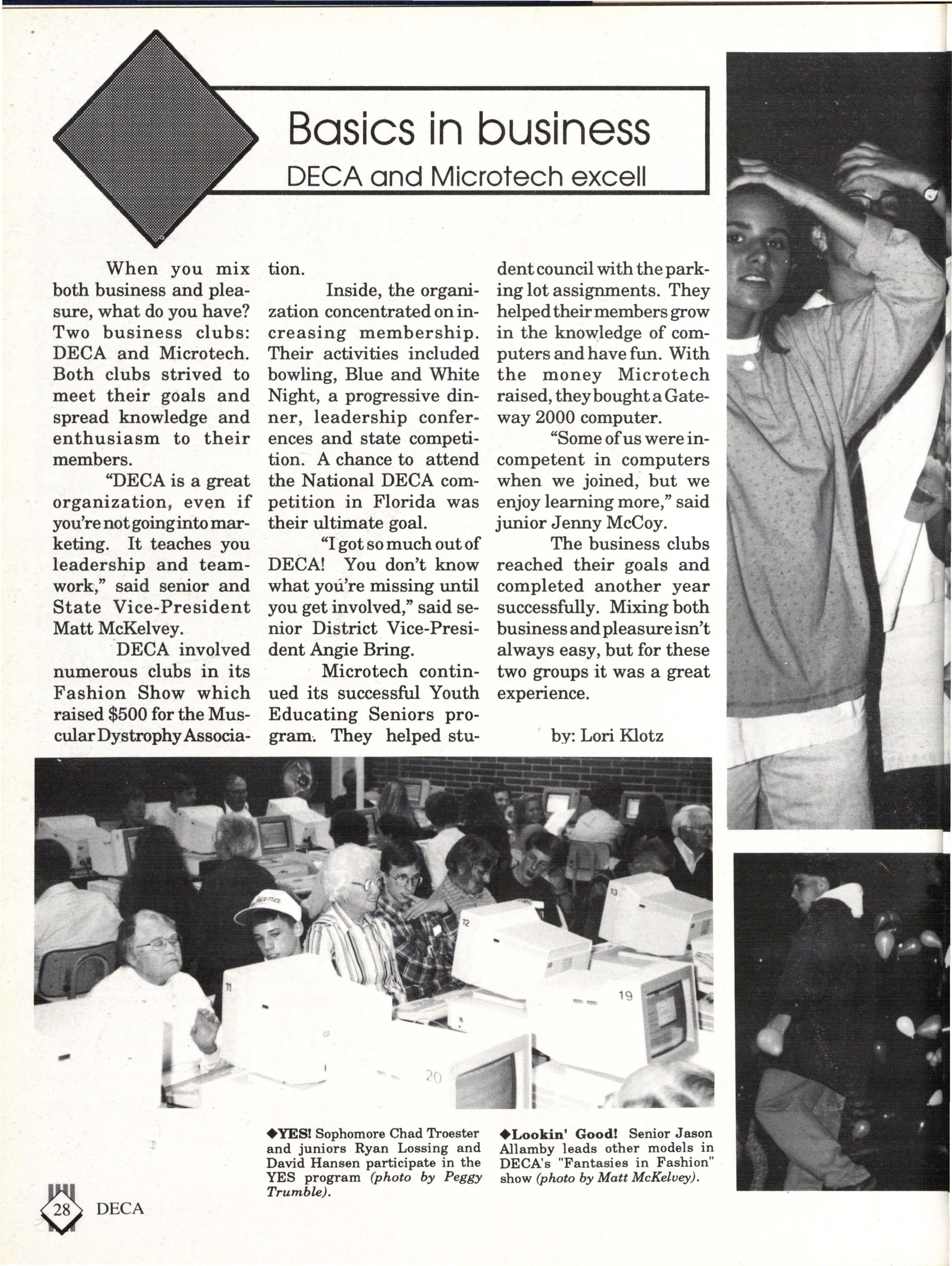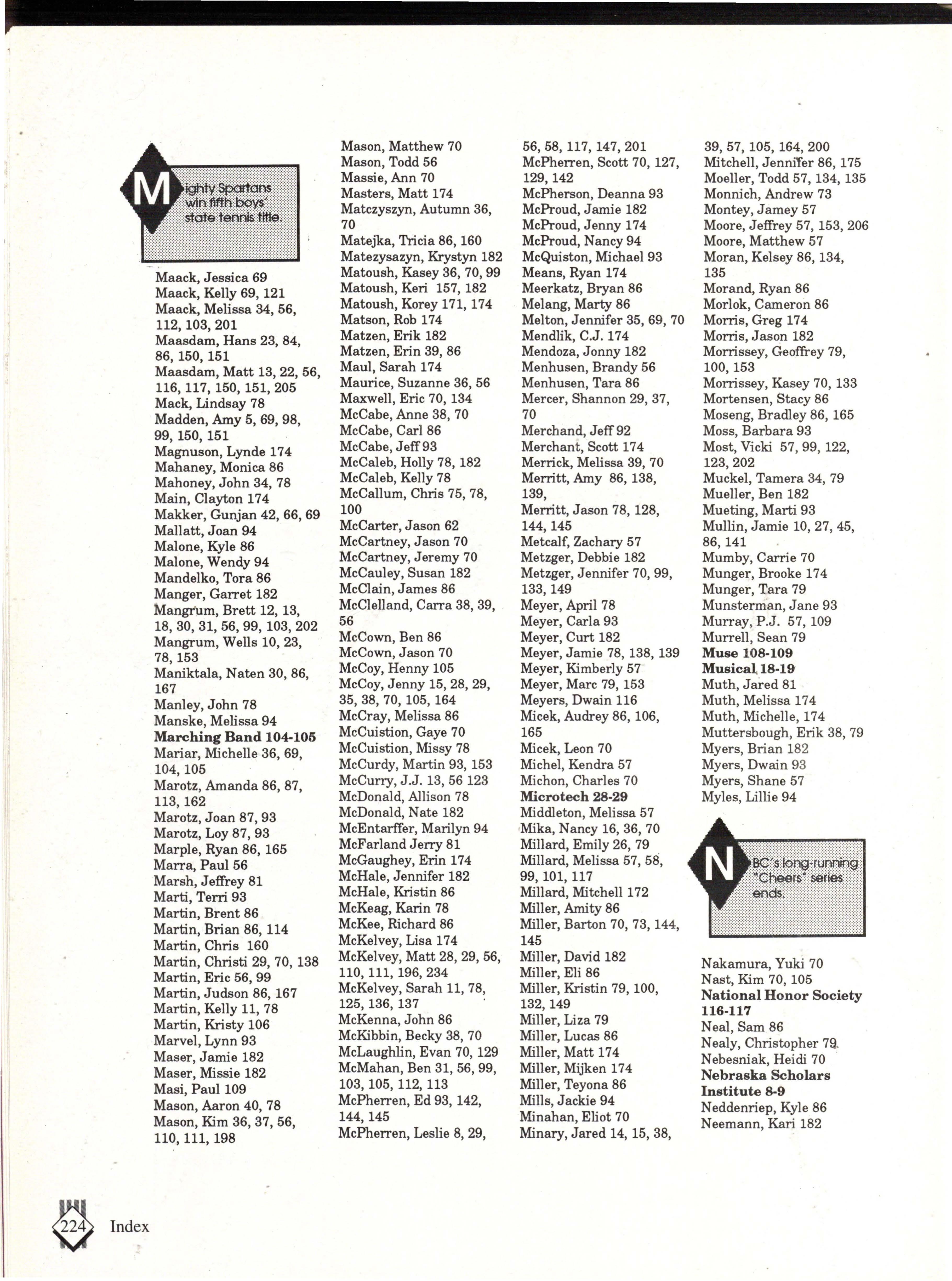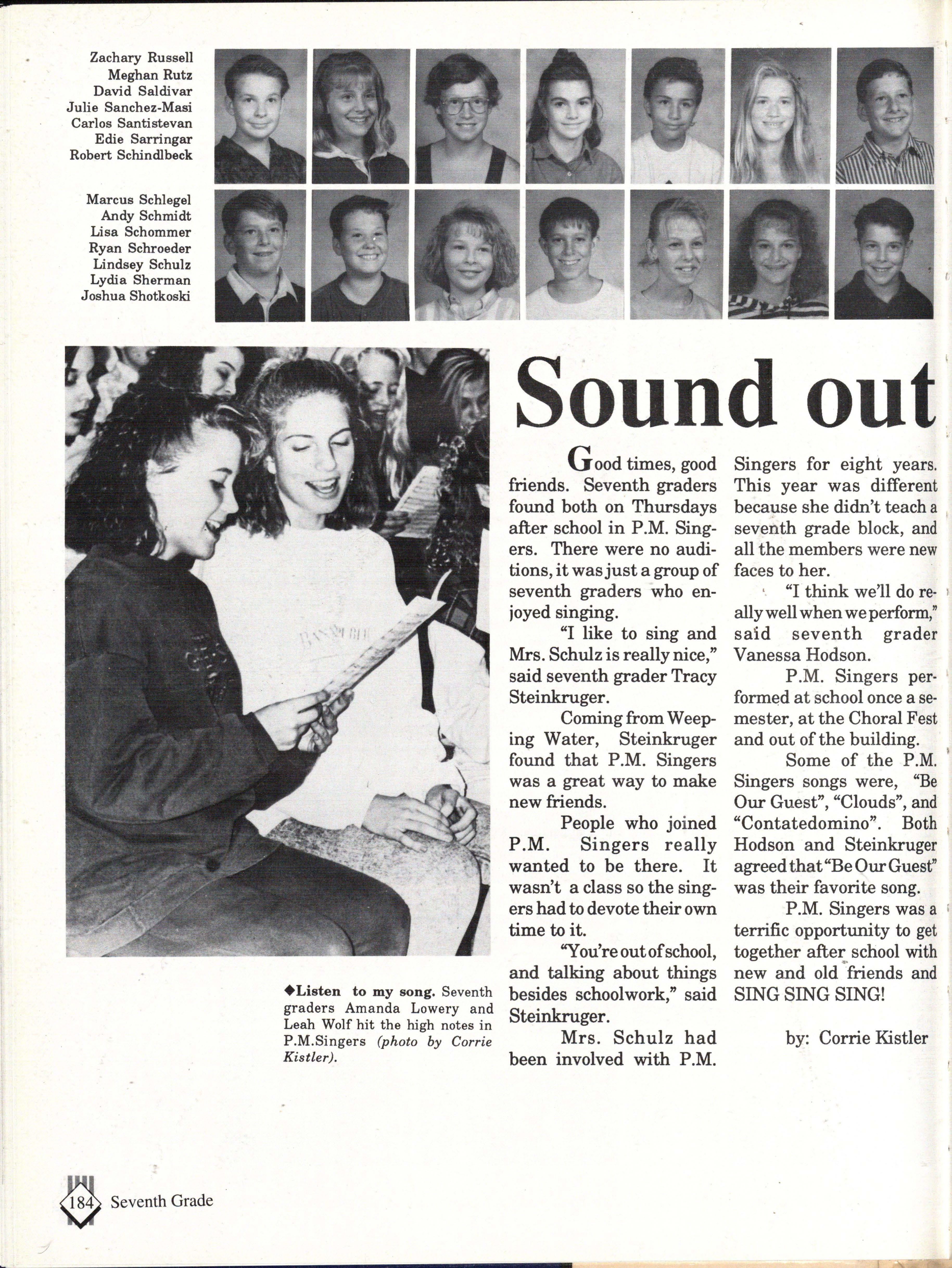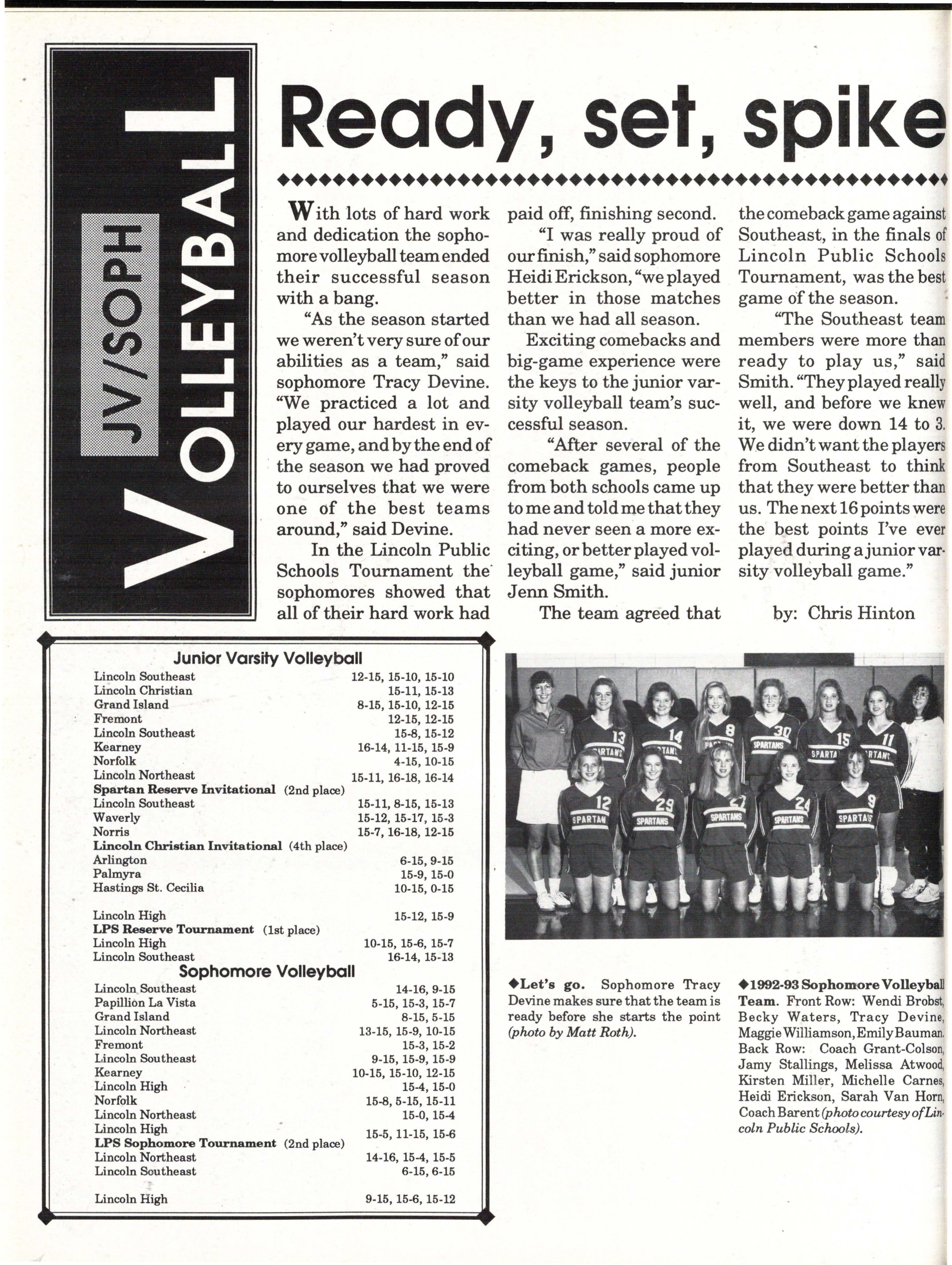 The students were very involved. Many play sports an:d are involved in clubs. Their spirit and dedication were matched bynoone. Thetennisteam won their fifth state tennis title while the varsity volleyball team won the silver pool in a national tournament. SeniorsNateBieck, Addie. Reed, Mike Robb, Erin Ann Scott; juniors Jill Loweery, Vicki Geiser, Matt Krohn and Megan Zeece made NMEA AllState Chorus.