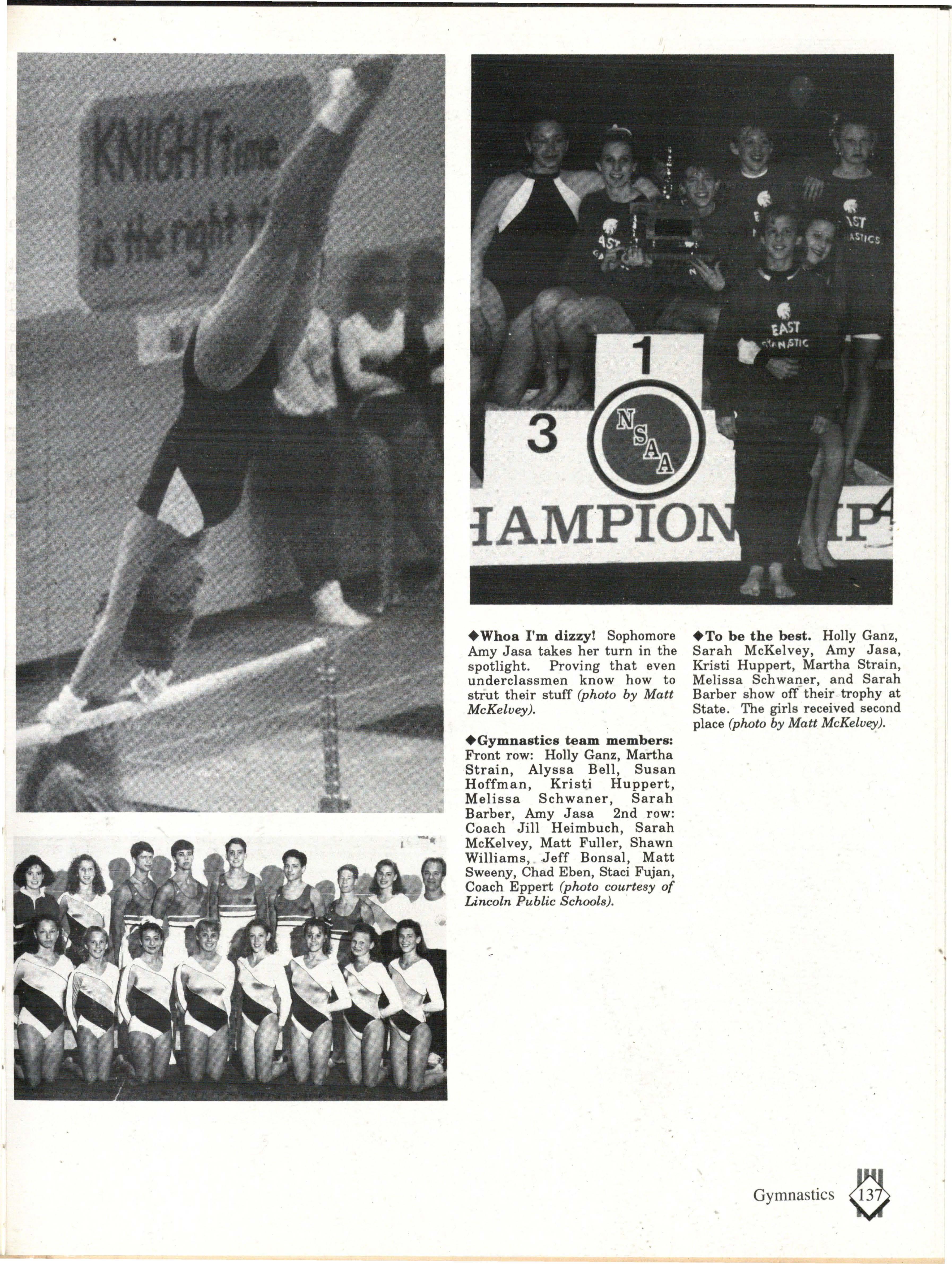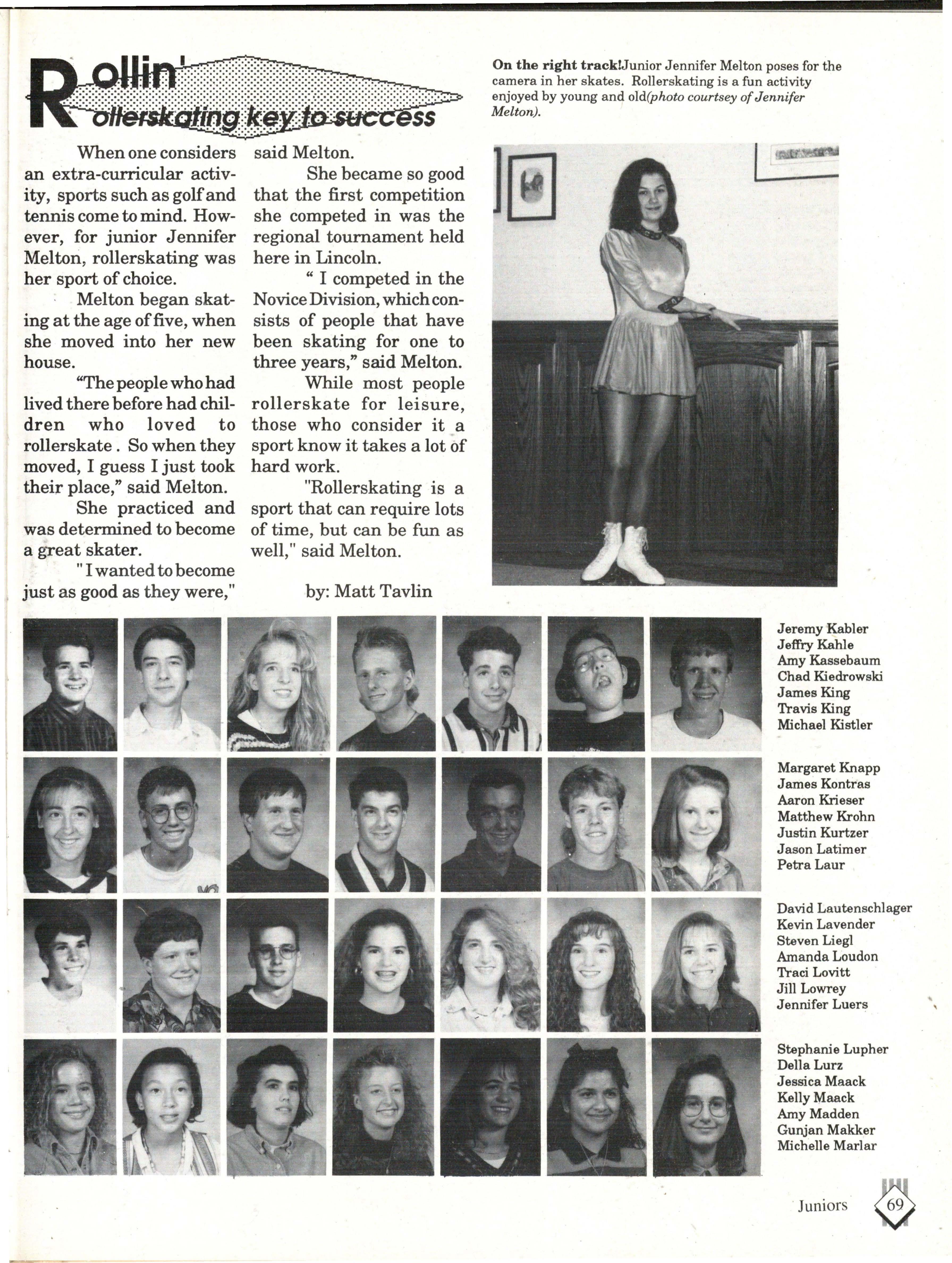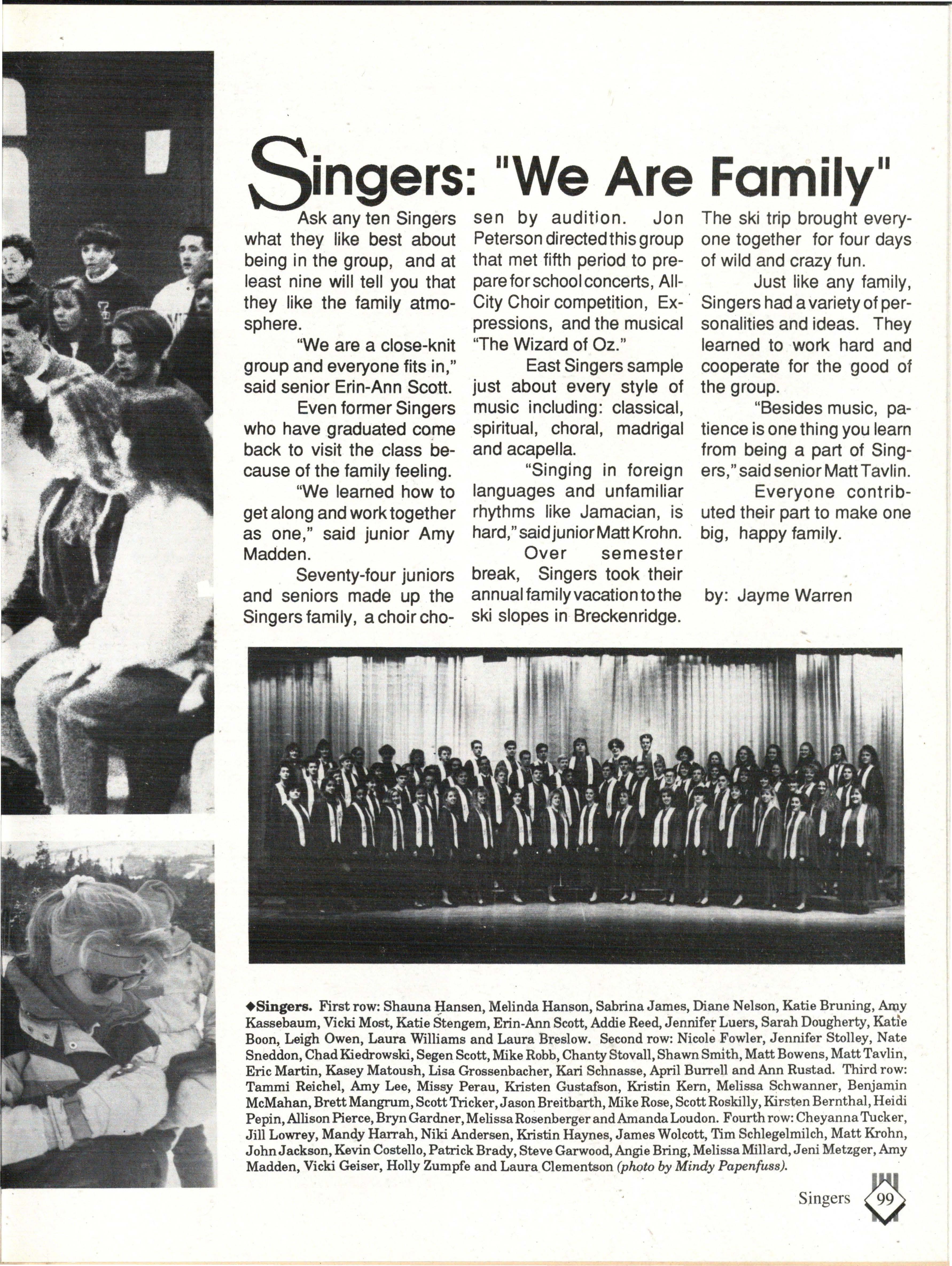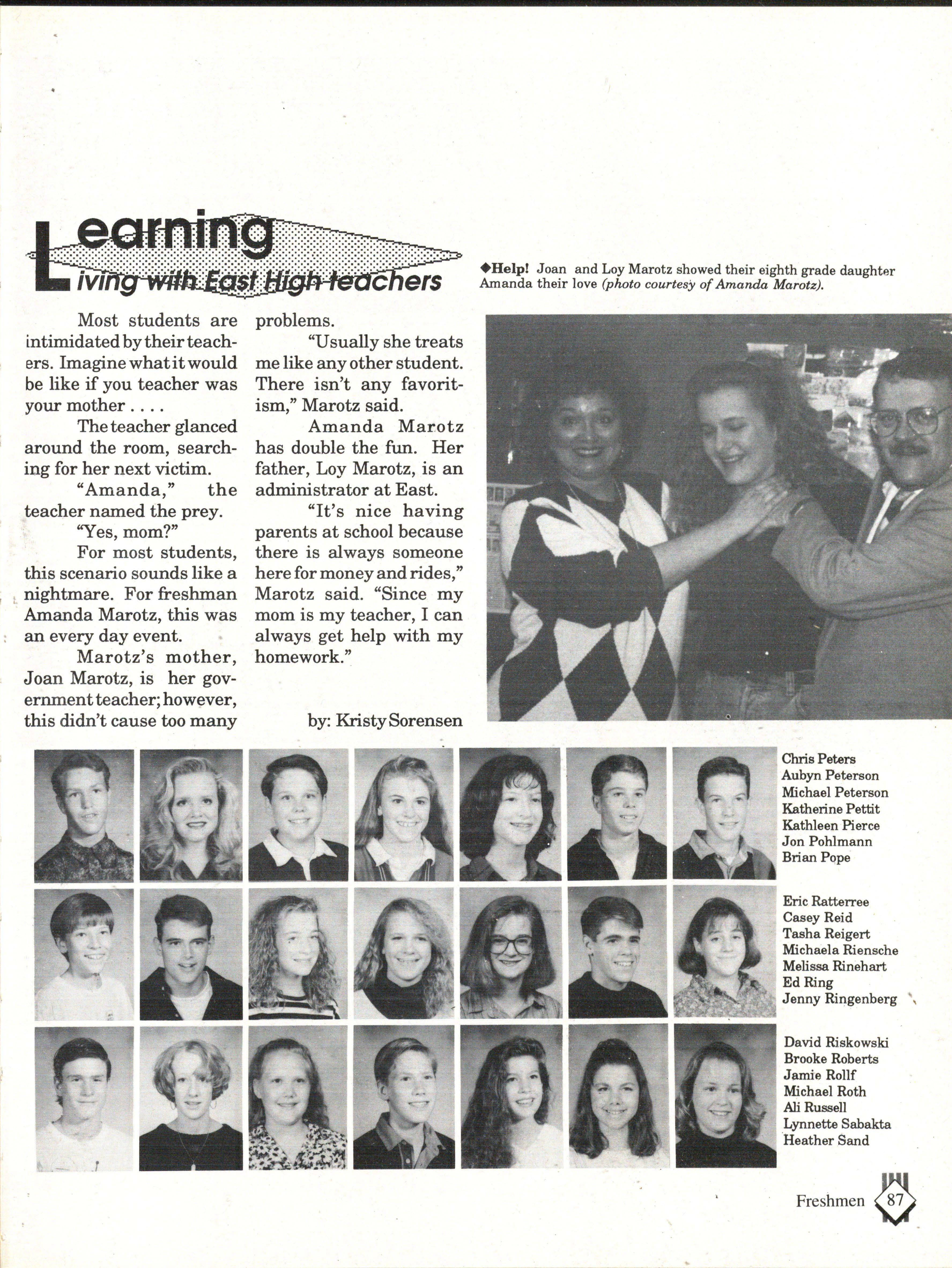 The students were very involved. Many play sports an:d are involved in clubs. Their spirit and dedication were matched bynoone. Thetennisteam won their fifth state tennis title while the varsity volleyball team won the silver pool in a national tournament. SeniorsNateBieck, Addie. Reed, Mike Robb, Erin Ann Scott; juniors Jill Loweery, Vicki Geiser, Matt Krohn and Megan Zeece made NMEA AllState Chorus.