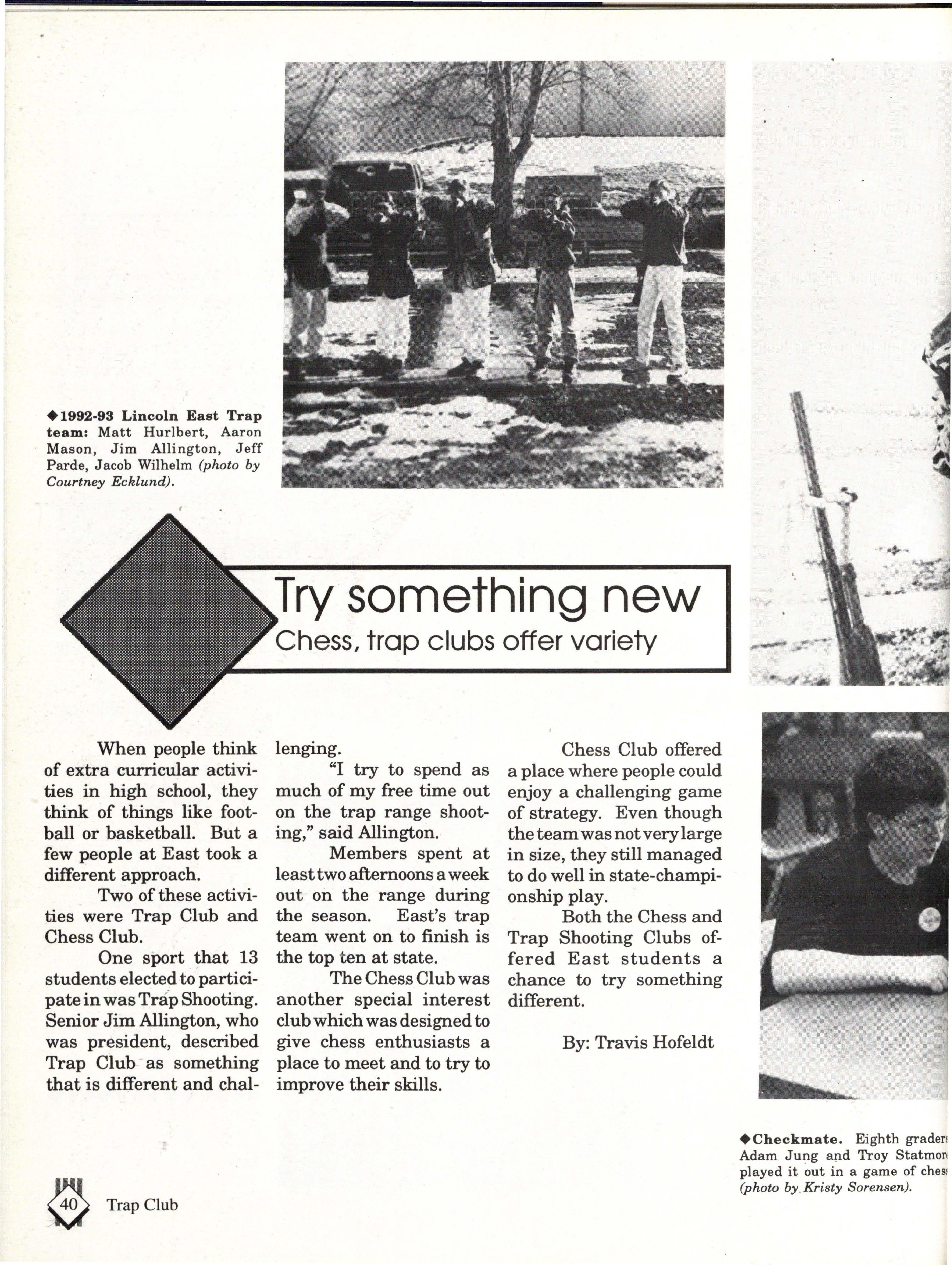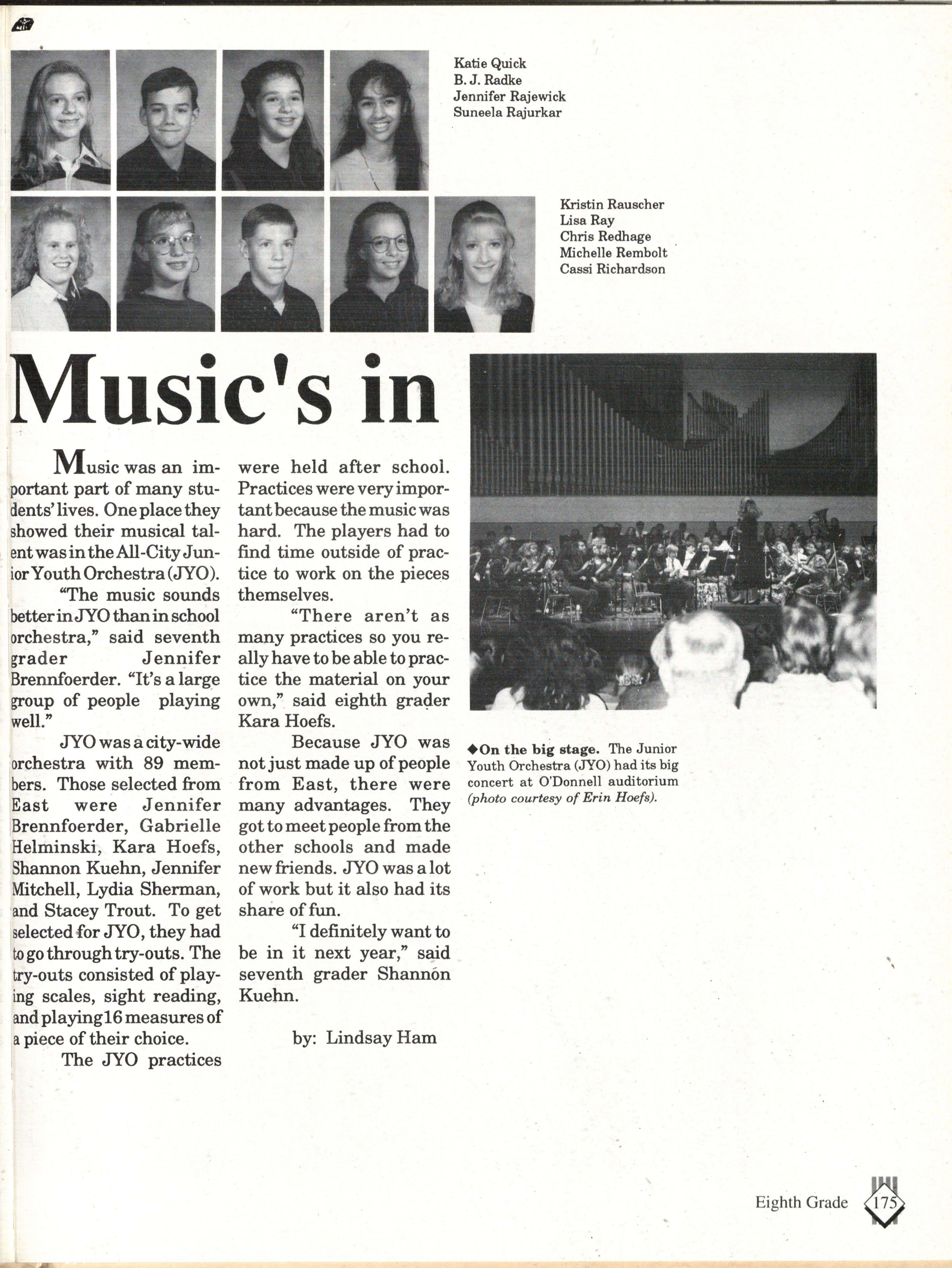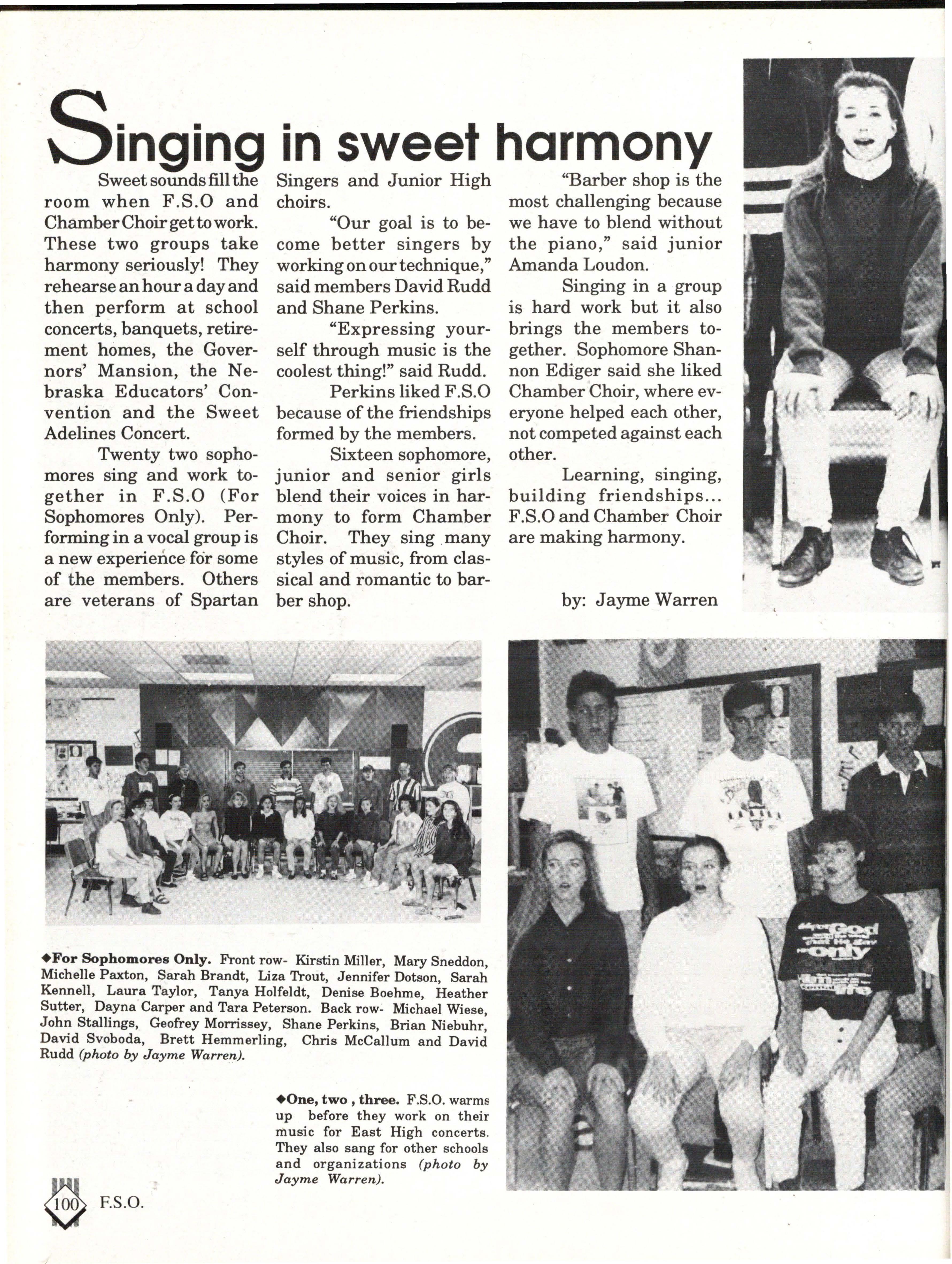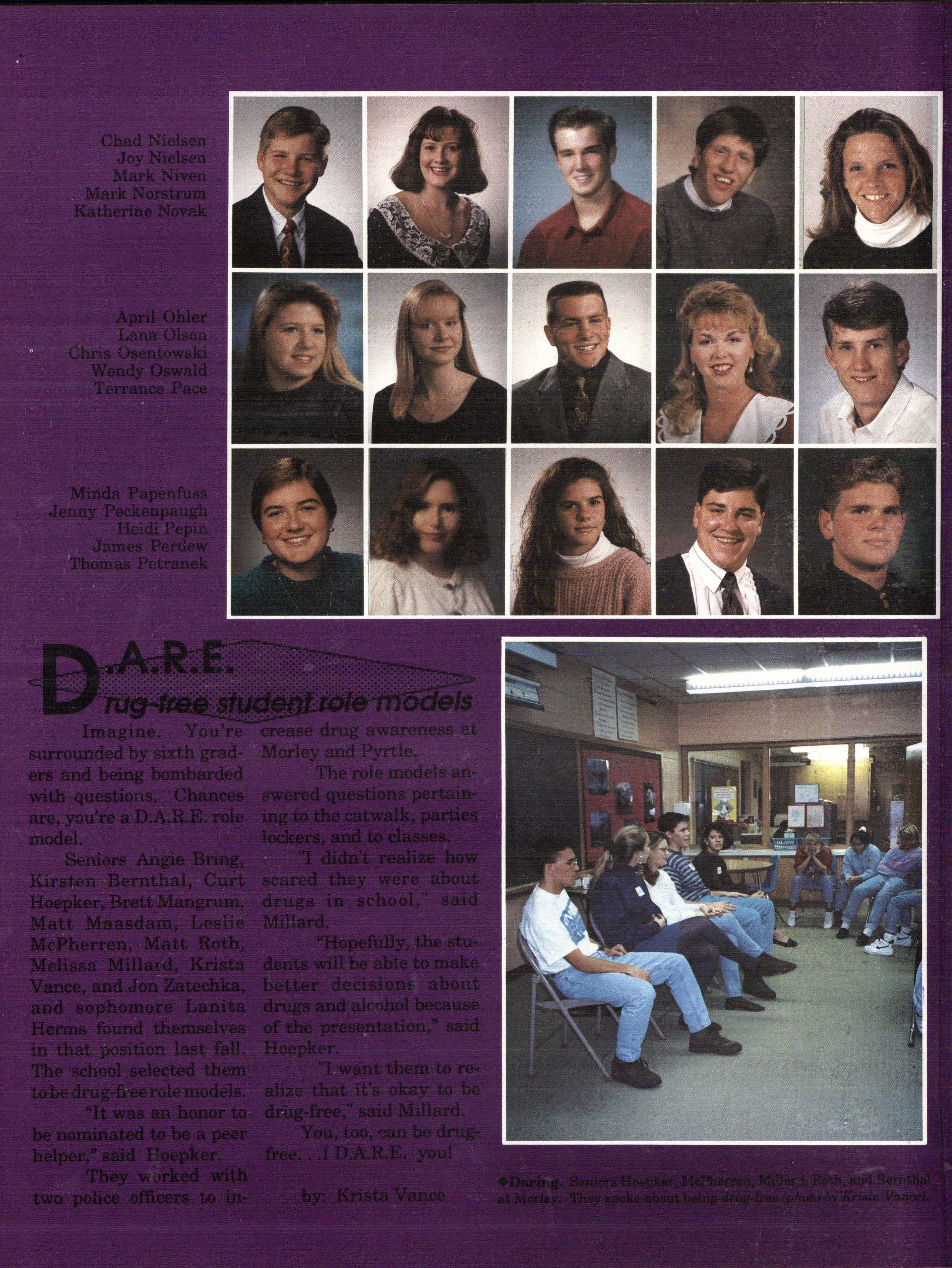 The students were very involved. Many play sports an:d are involved in clubs. Their spirit and dedication were matched bynoone. Thetennisteam won their fifth state tennis title while the varsity volleyball team won the silver pool in a national tournament. SeniorsNateBieck, Addie. Reed, Mike Robb, Erin Ann Scott; juniors Jill Loweery, Vicki Geiser, Matt Krohn and Megan Zeece made NMEA AllState Chorus.