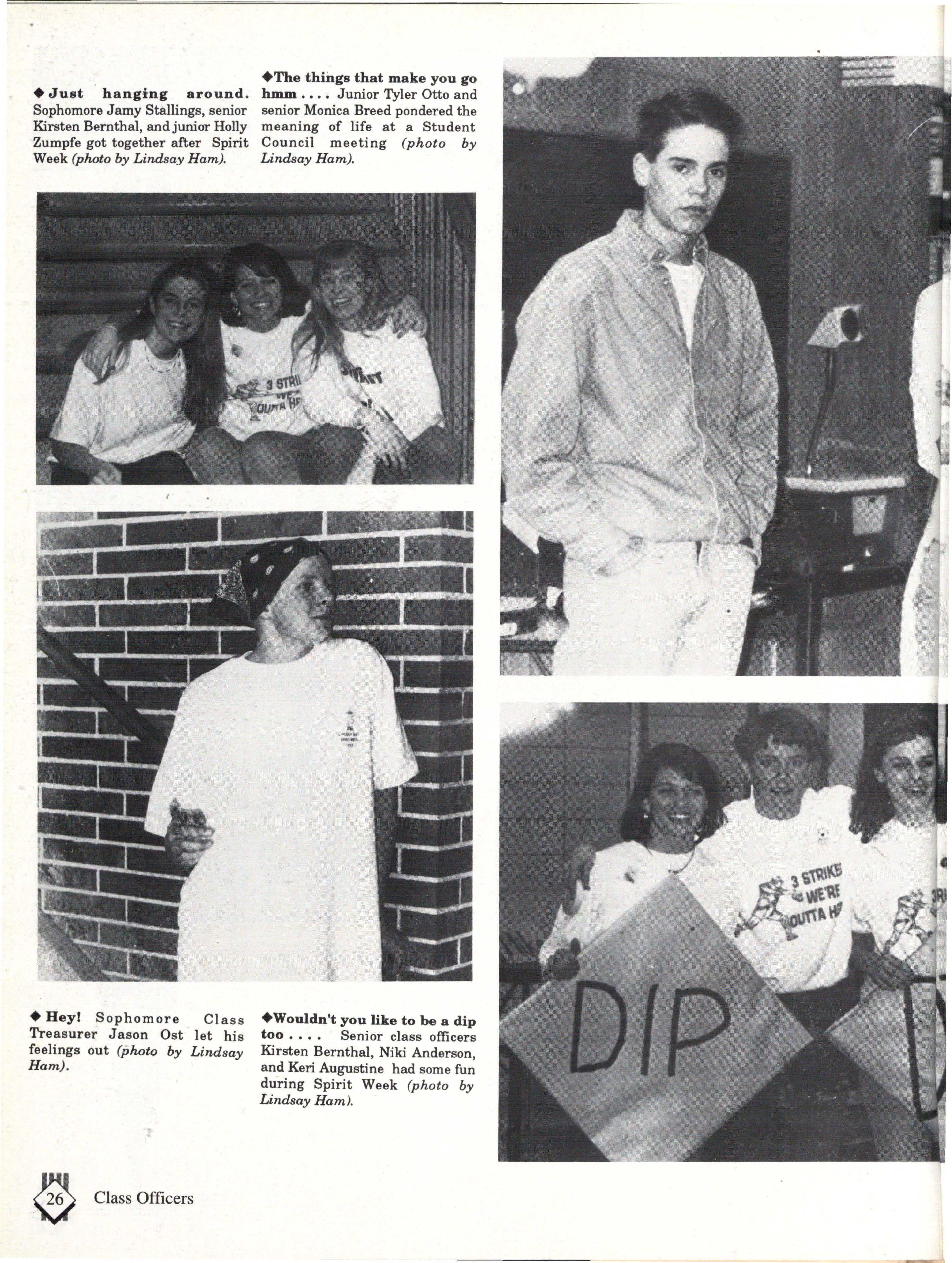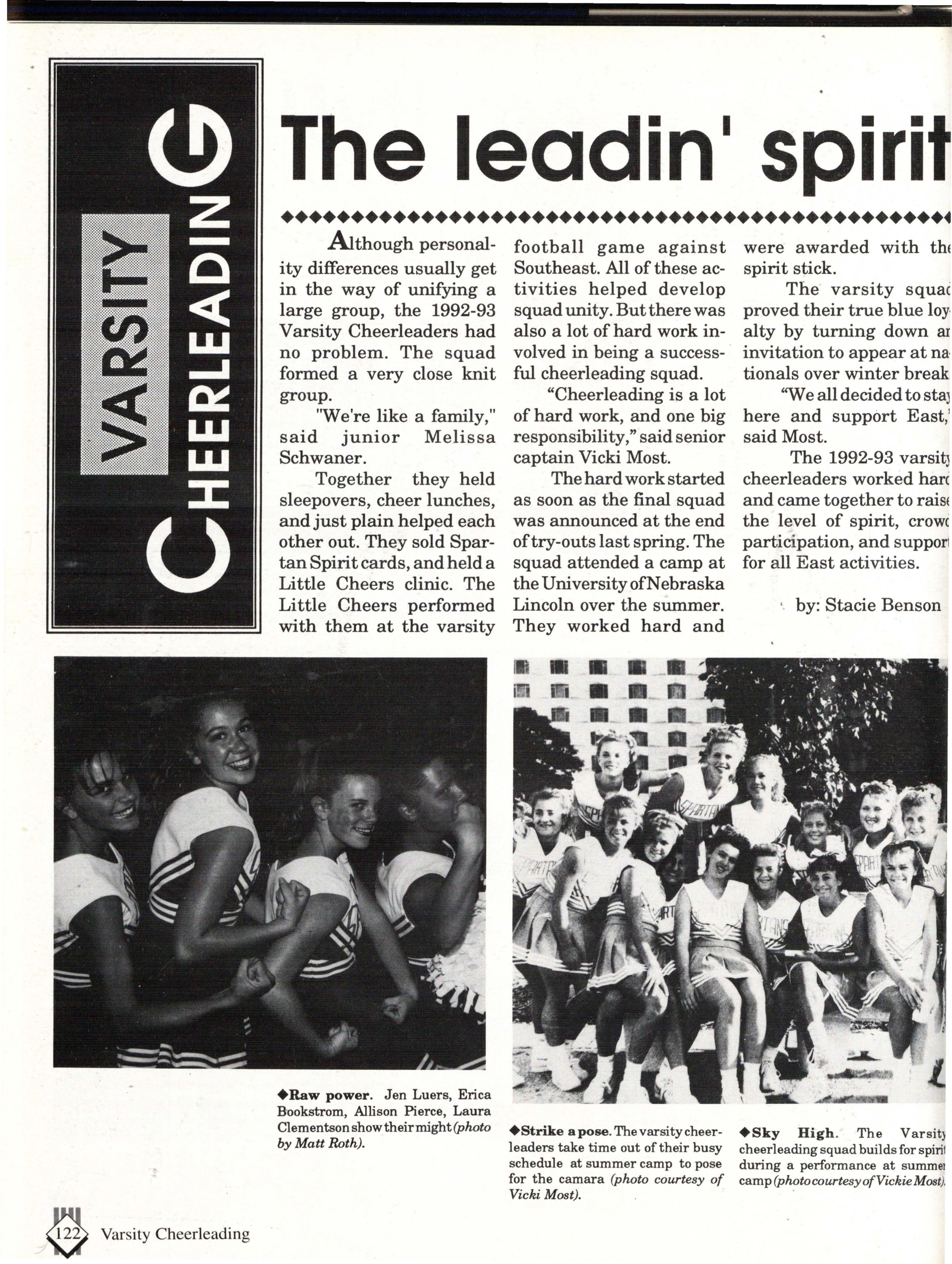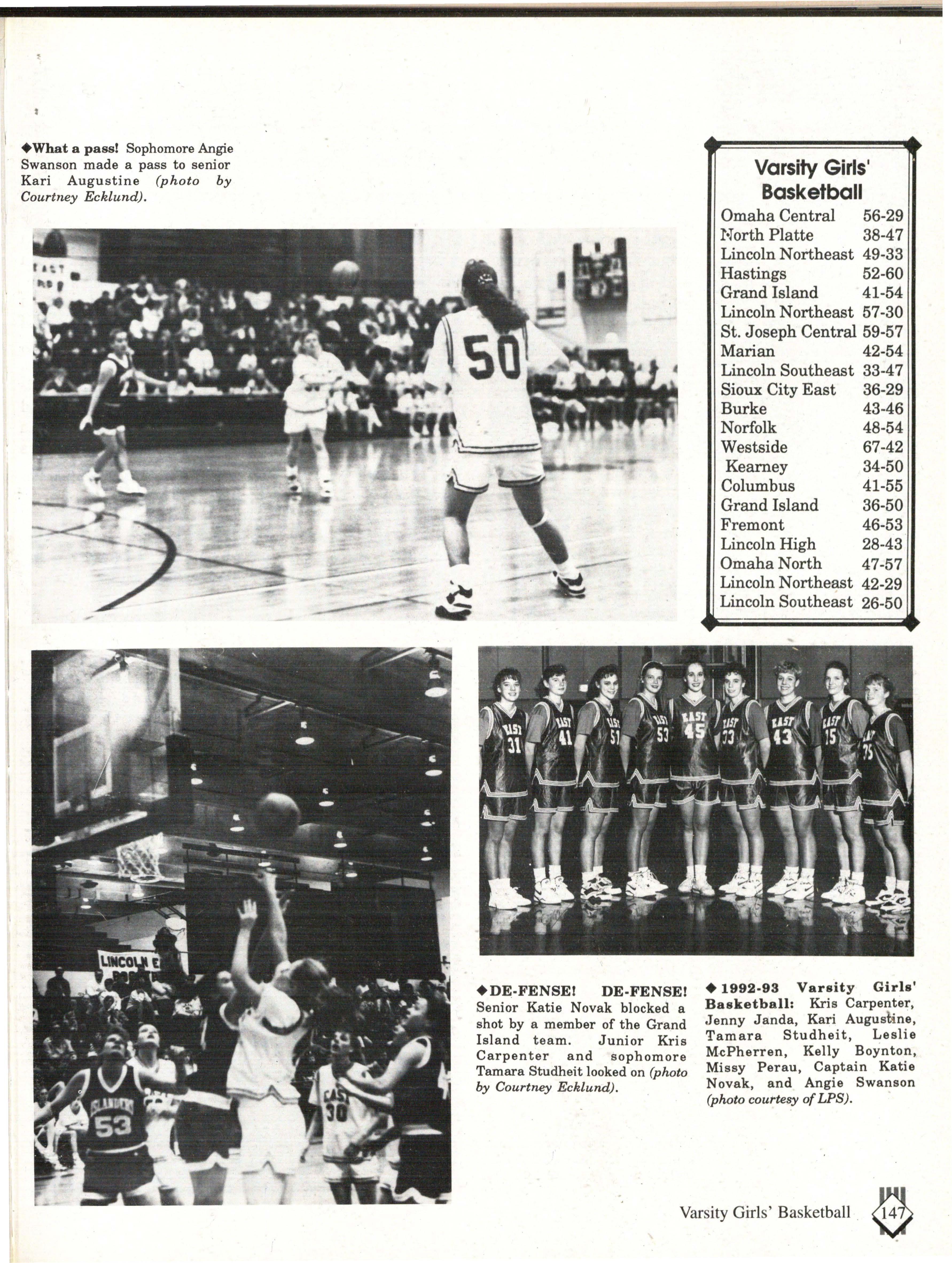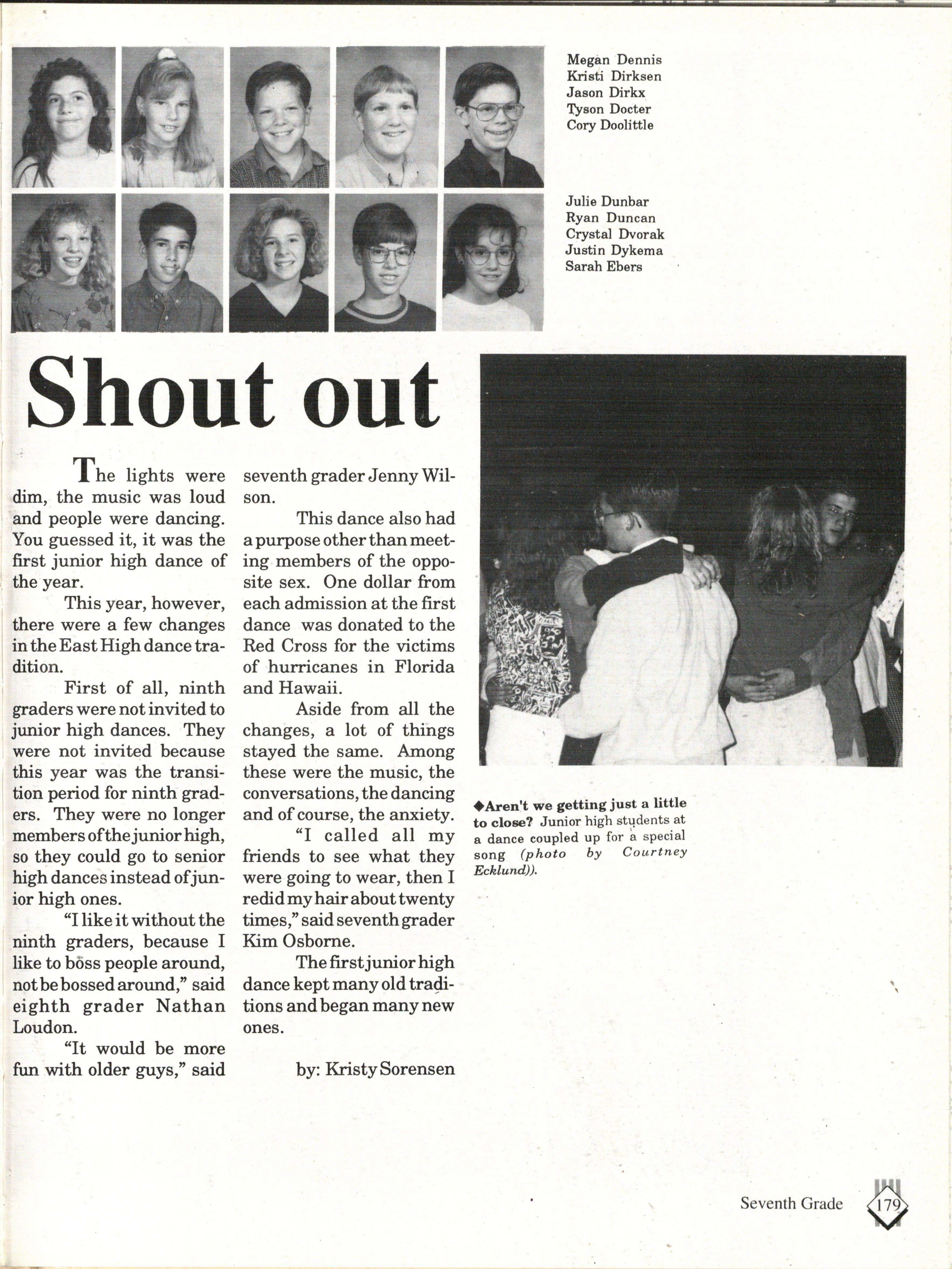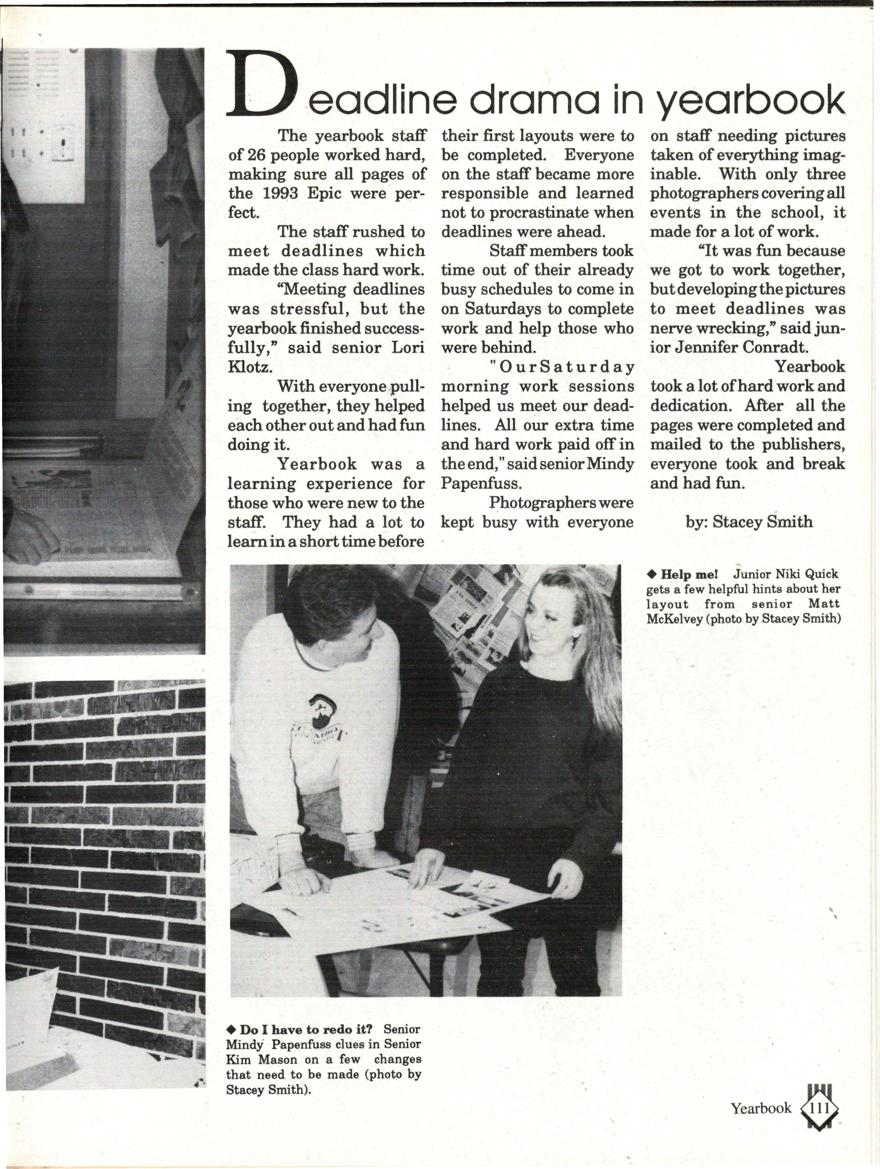From the Inside Out was the theme of the 1992-1993 Lincoln East Epic. It was chosen because the staffwanted other schools to see what East was really like instead of just relying on the rumors. The 26th Epic was published by Walsworth Publishing 1 Company of Marceline, Missouri who printed 1400 copies. The 234-page book included a spring supplement and a plastic cover. The package sold for $25 in the fall and $30 in the spring.