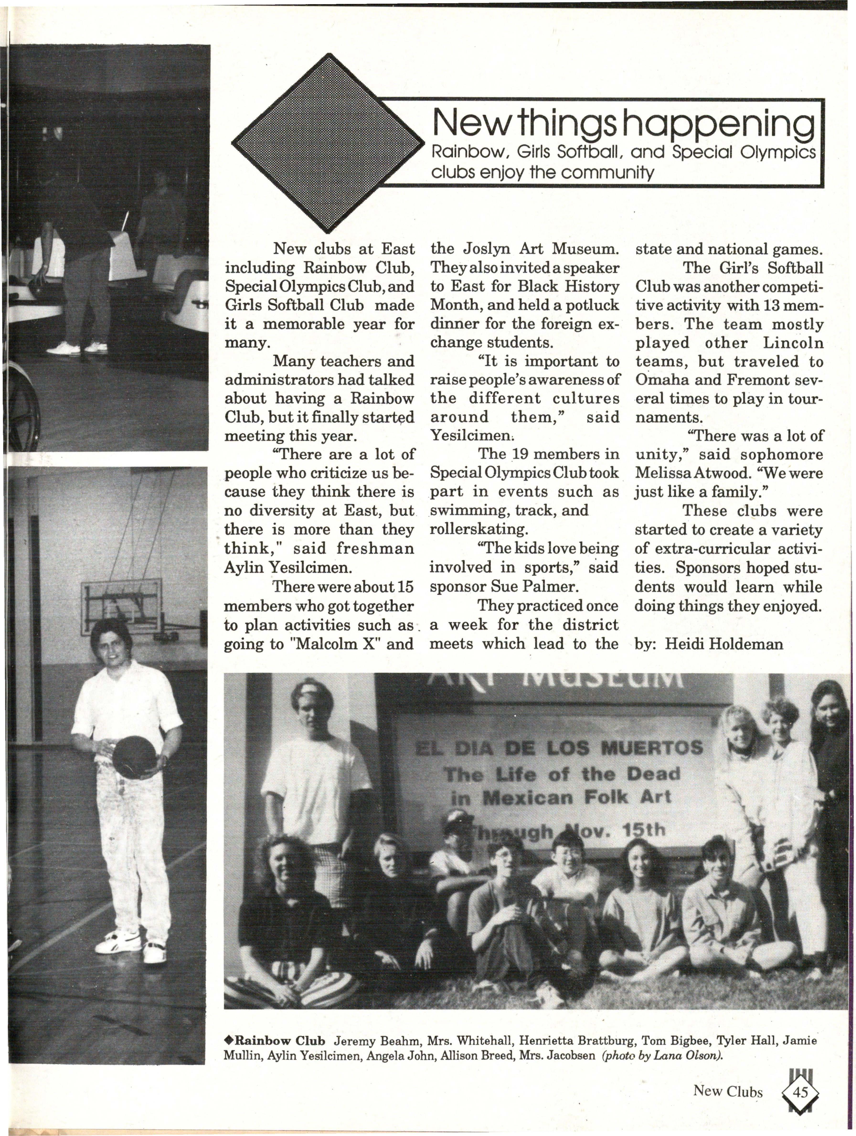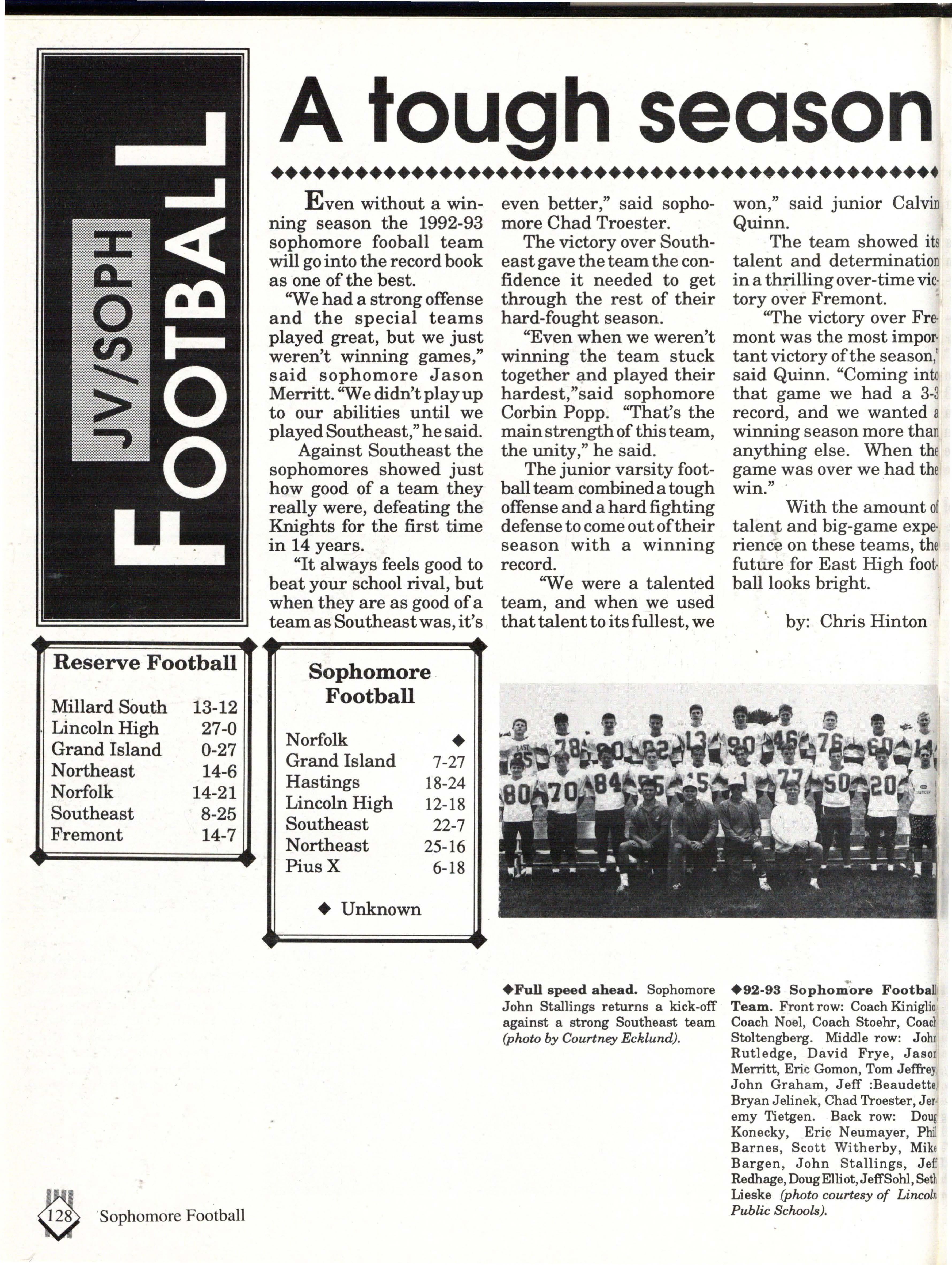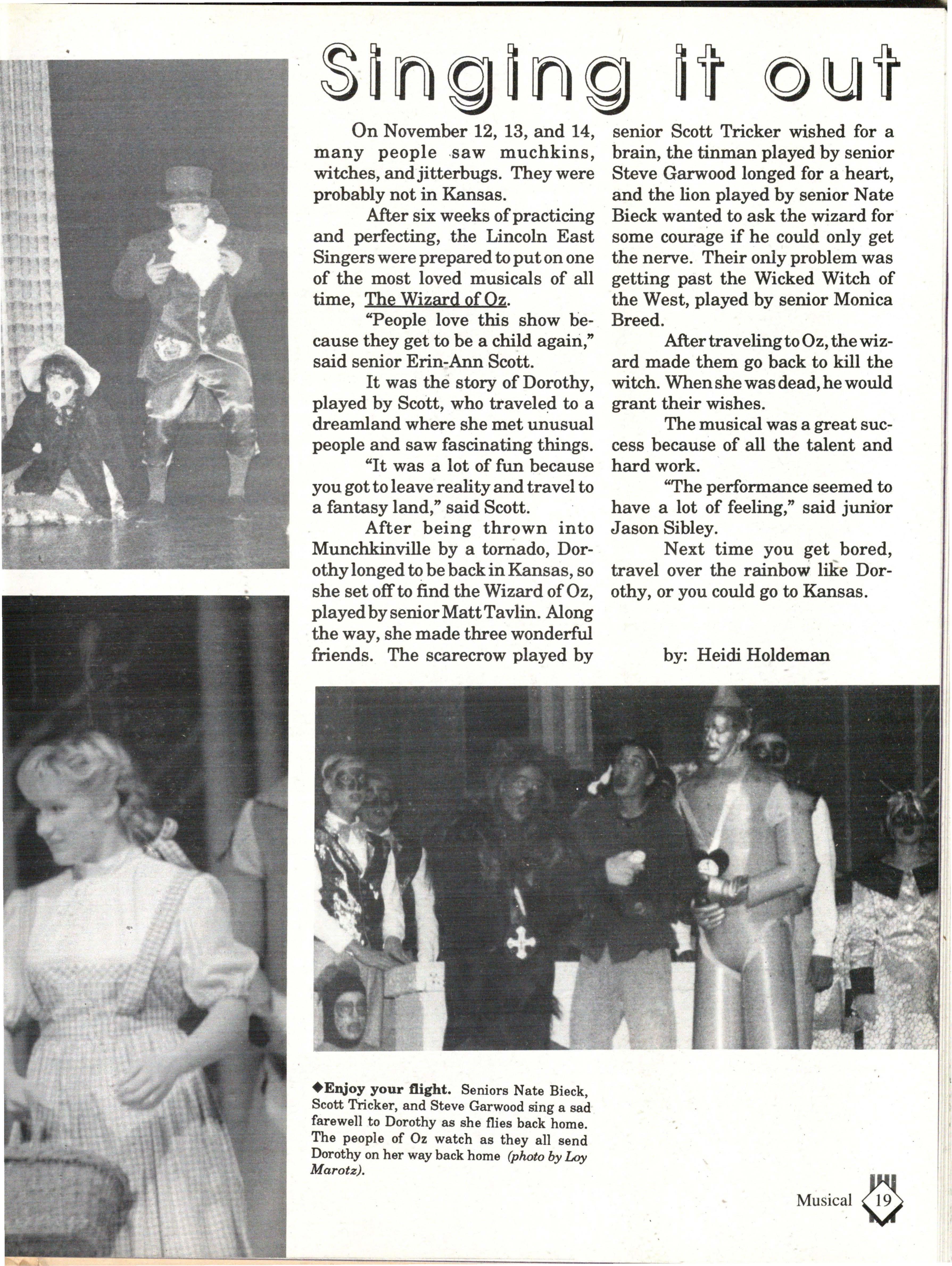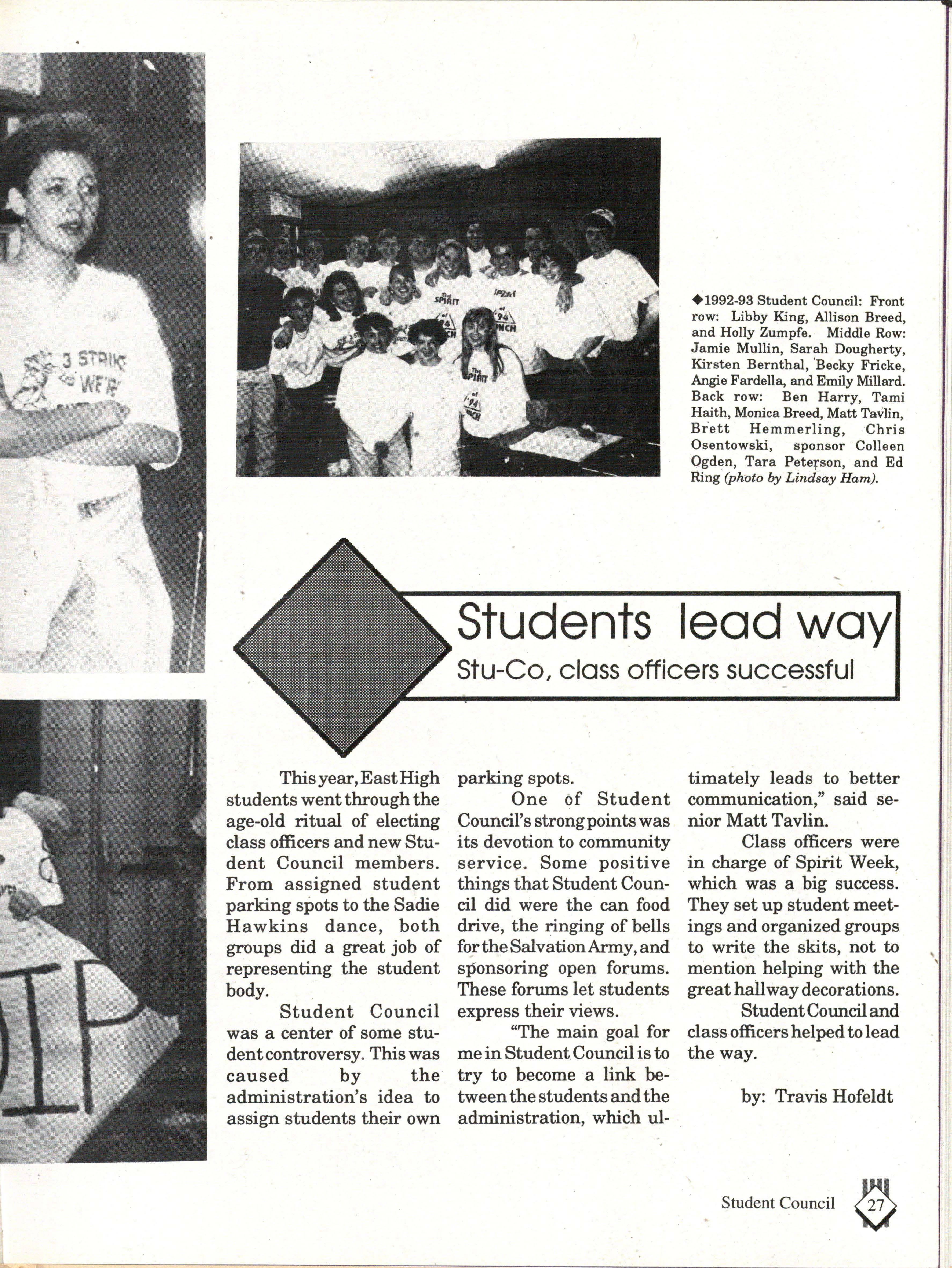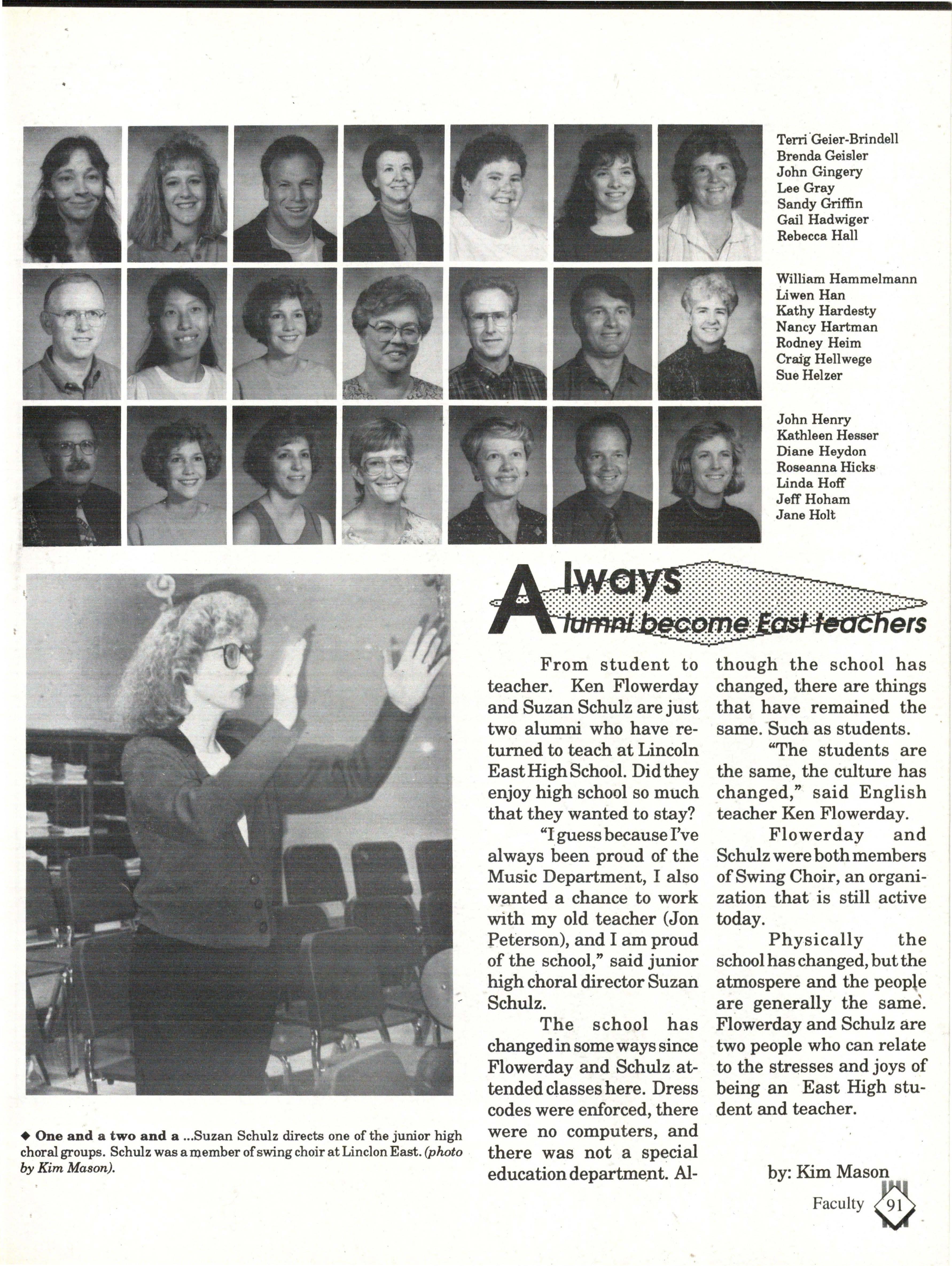 From the Inside Out was the theme of the 1992-1993 Lincoln East Epic. It was chosen because the staffwanted other schools to see what East was really like instead of just relying on the rumors. The 26th Epic was published by Walsworth Publishing 1 Company of Marceline, Missouri who printed 1400 copies. The 234-page book included a spring supplement and a plastic cover. The package sold for $25 in the fall and $30 in the spring.