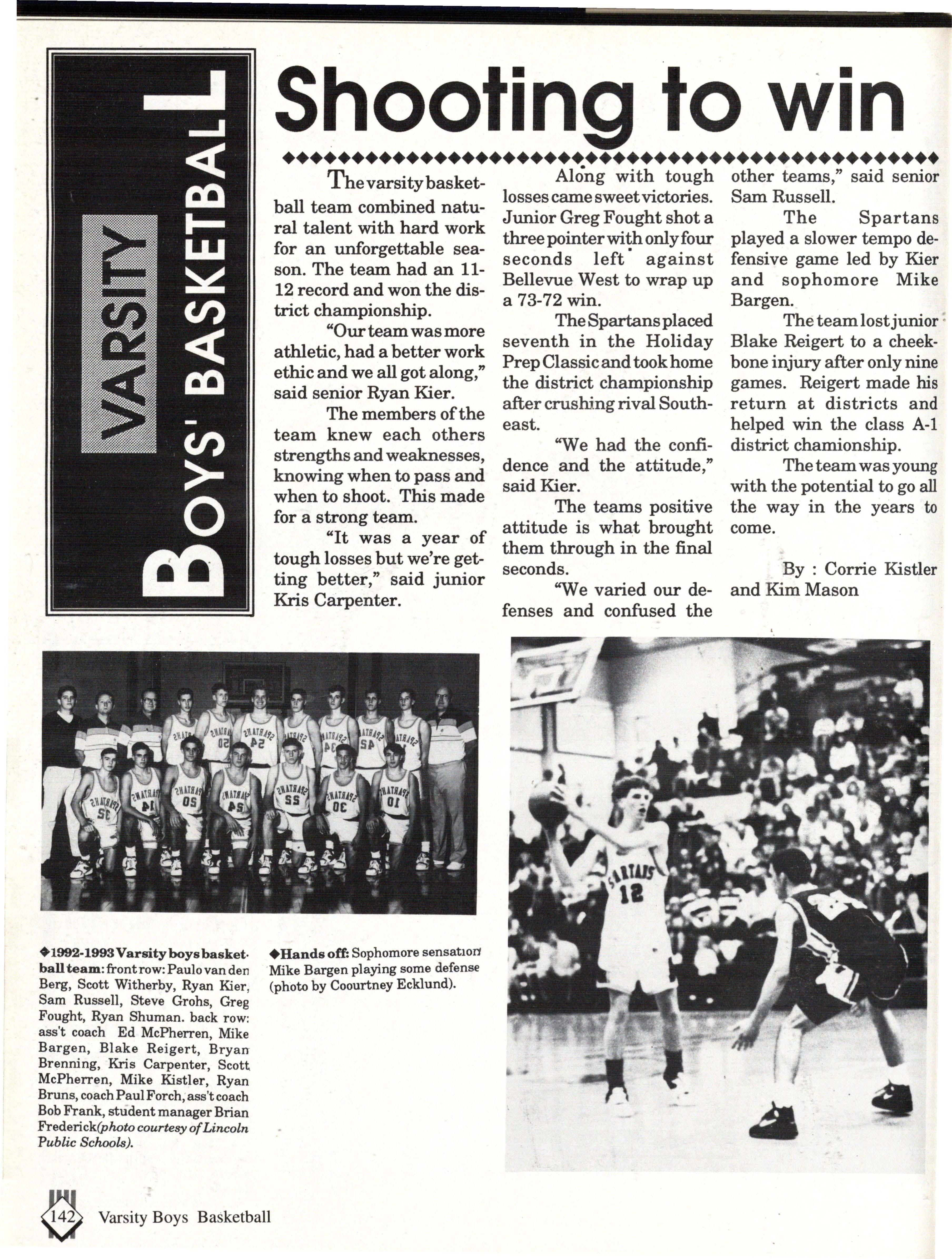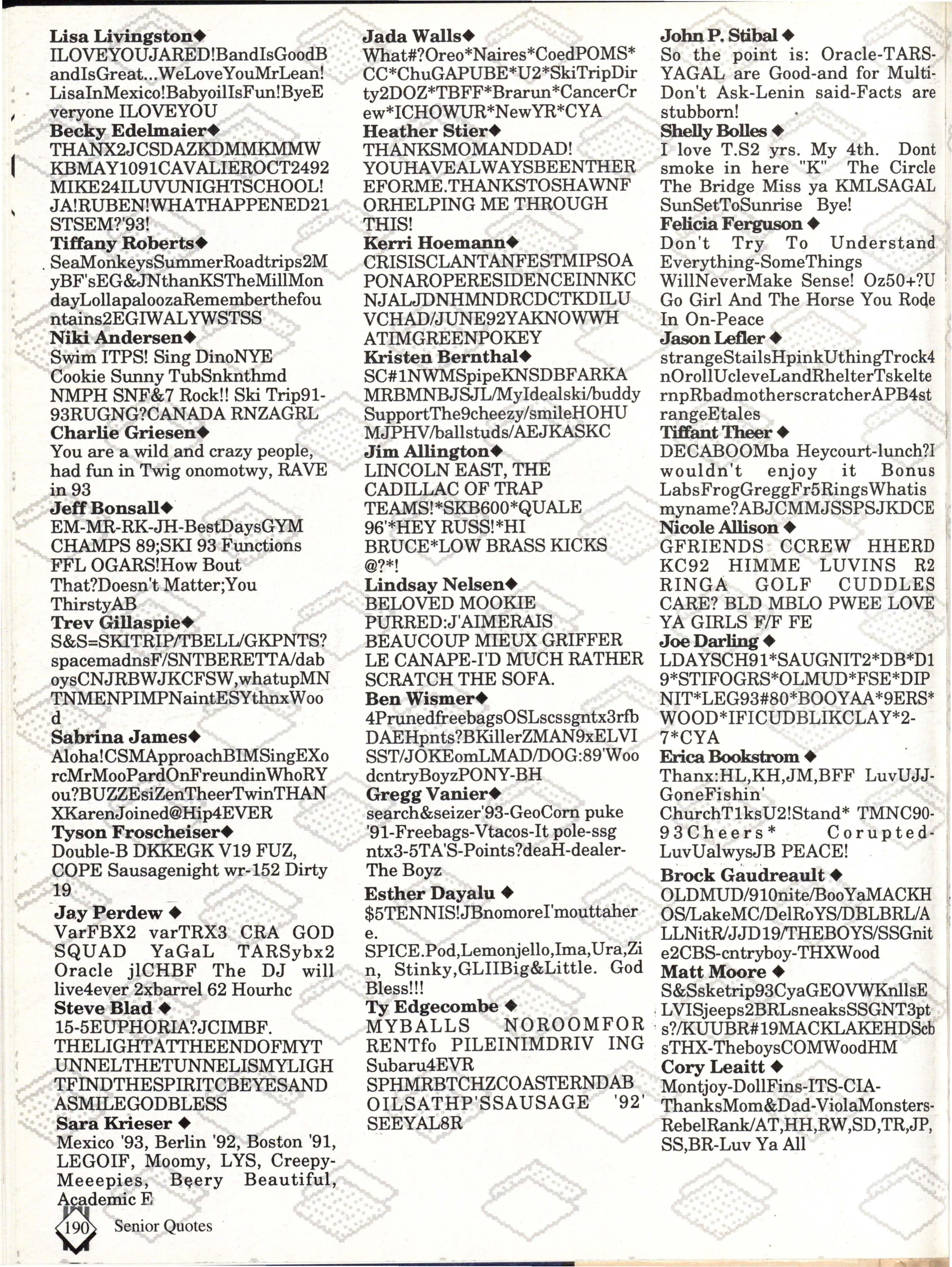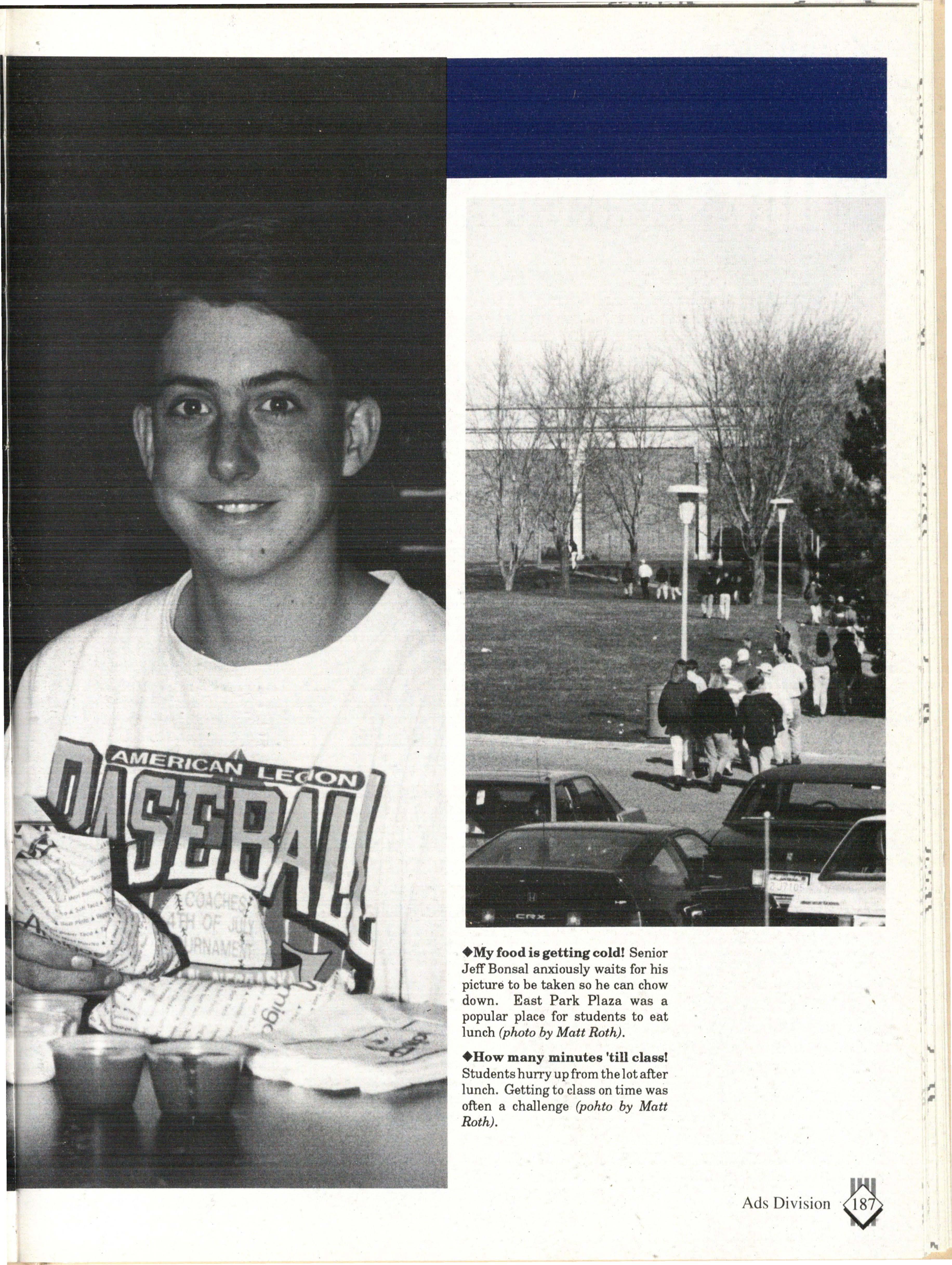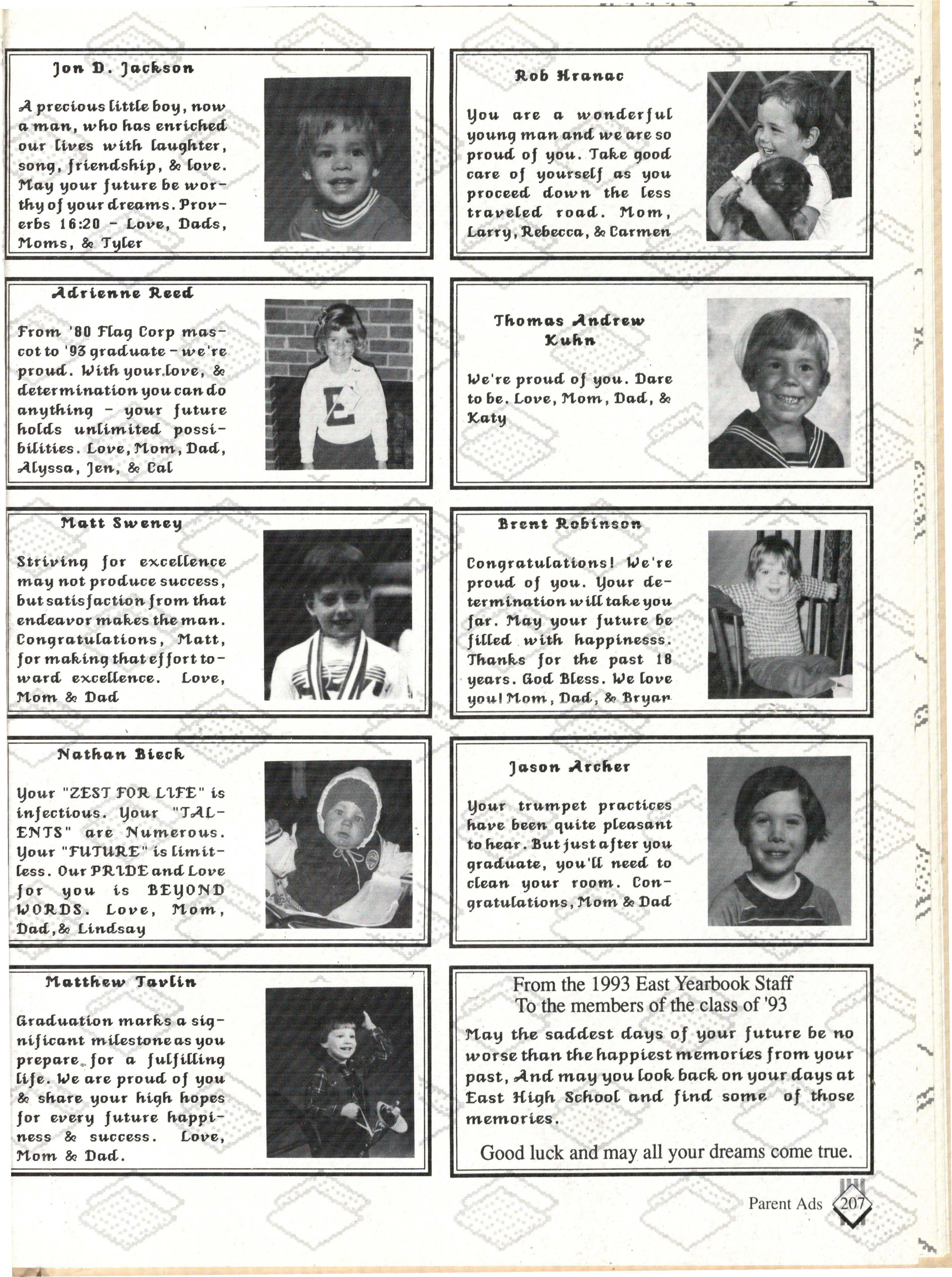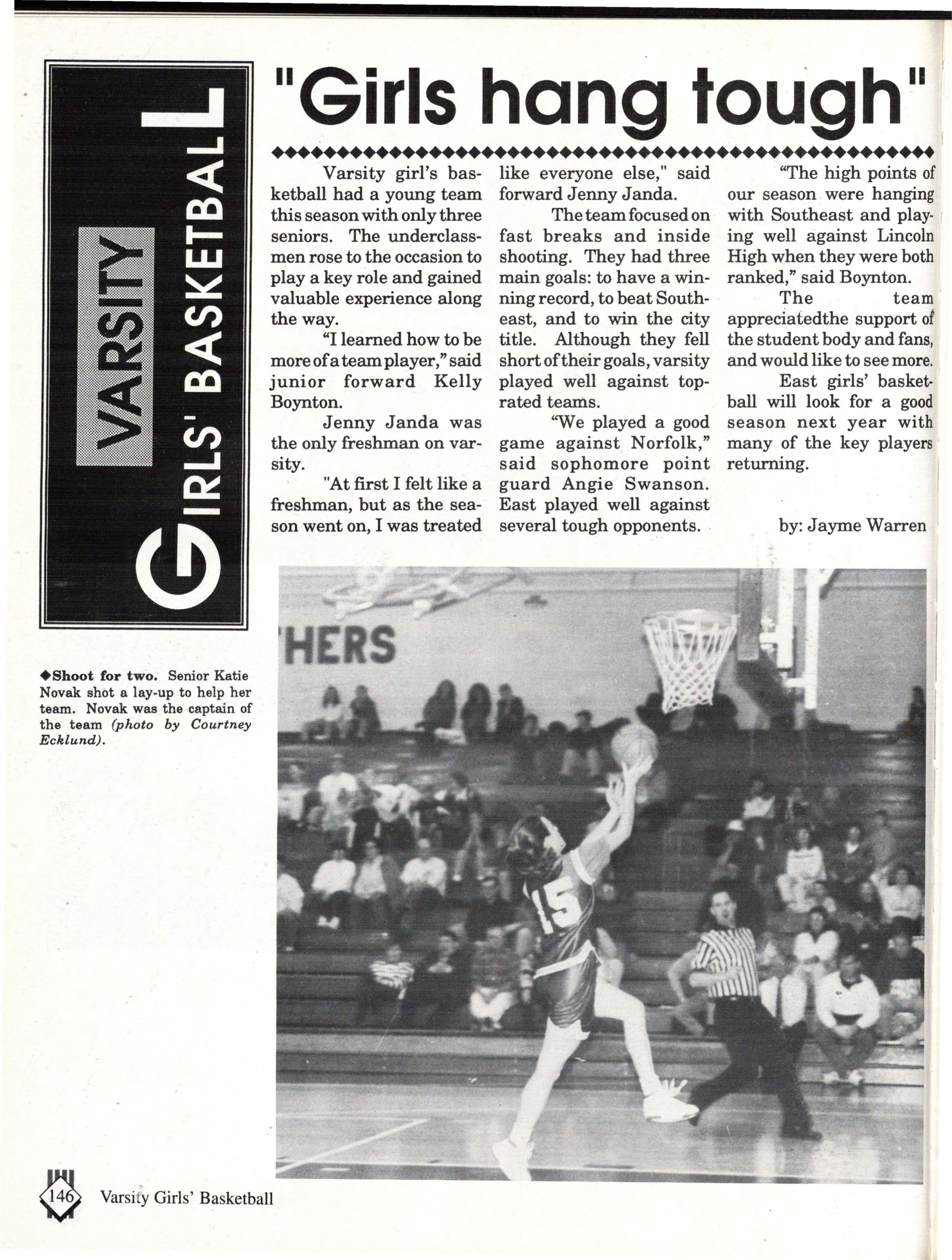 From the Inside Out was the theme of the 1992-1993 Lincoln East Epic. It was chosen because the staffwanted other schools to see what East was really like instead of just relying on the rumors. The 26th Epic was published by Walsworth Publishing 1 Company of Marceline, Missouri who printed 1400 copies. The 234-page book included a spring supplement and a plastic cover. The package sold for $25 in the fall and $30 in the spring.