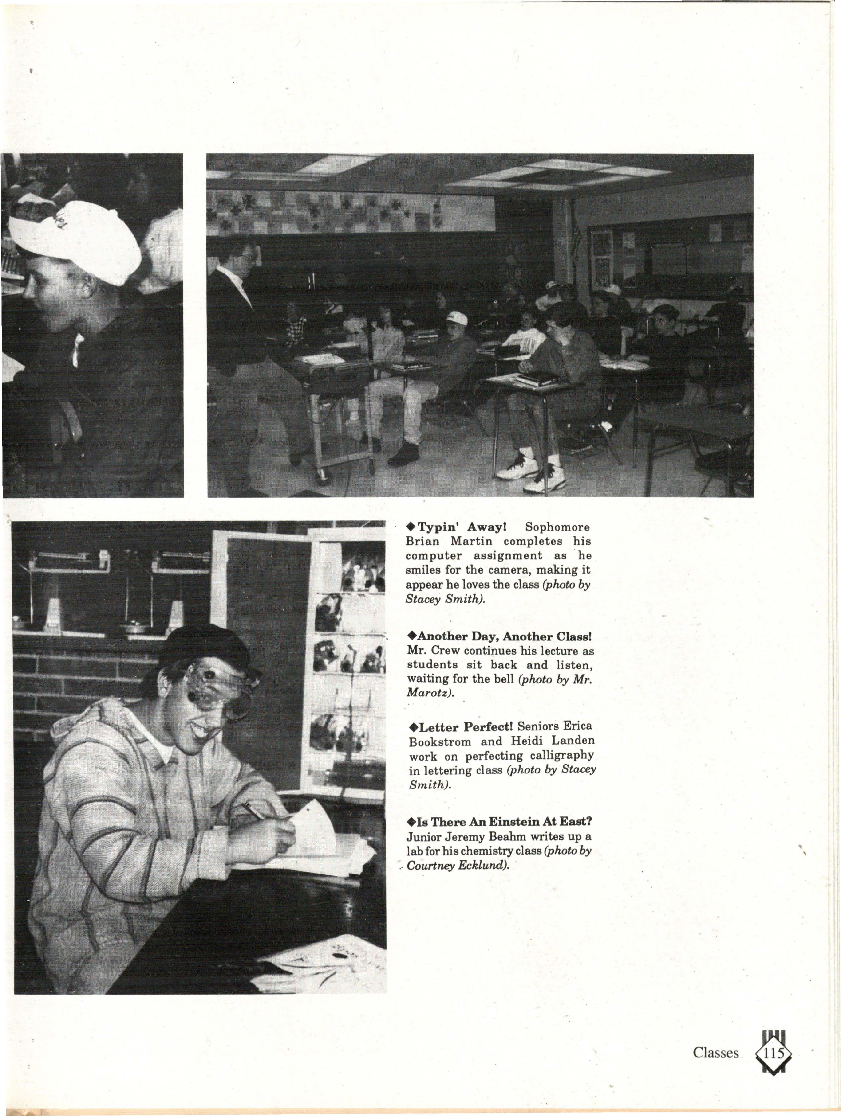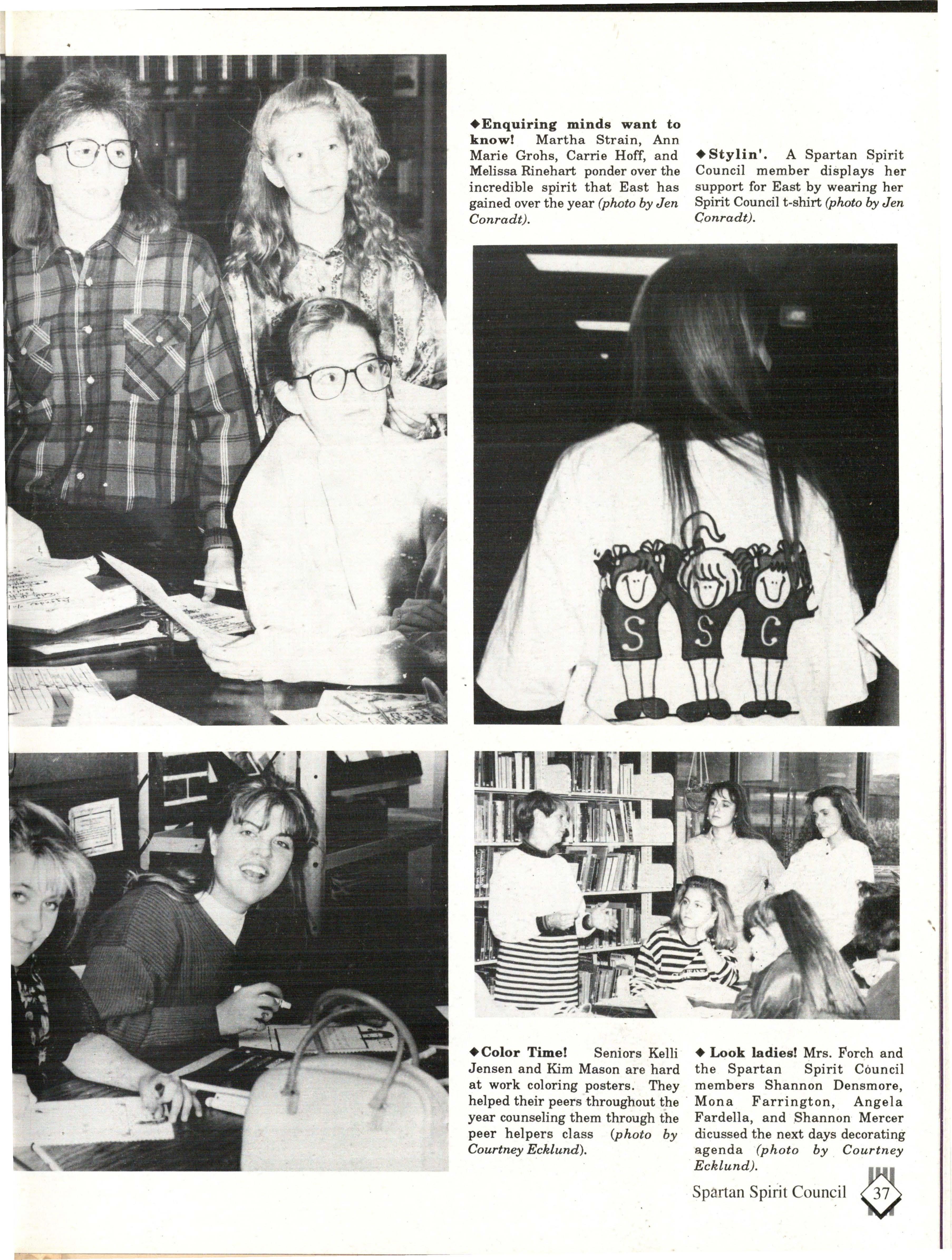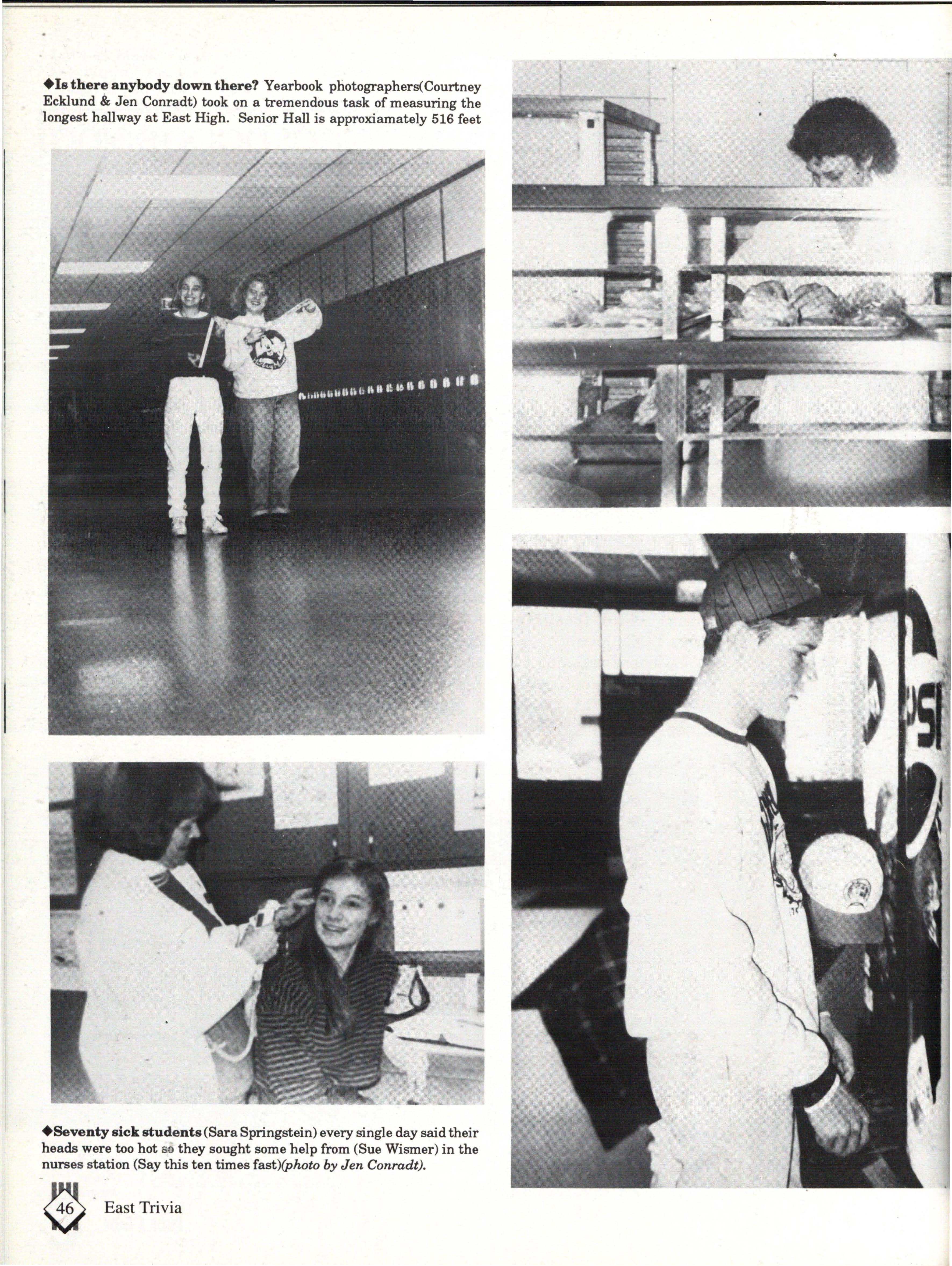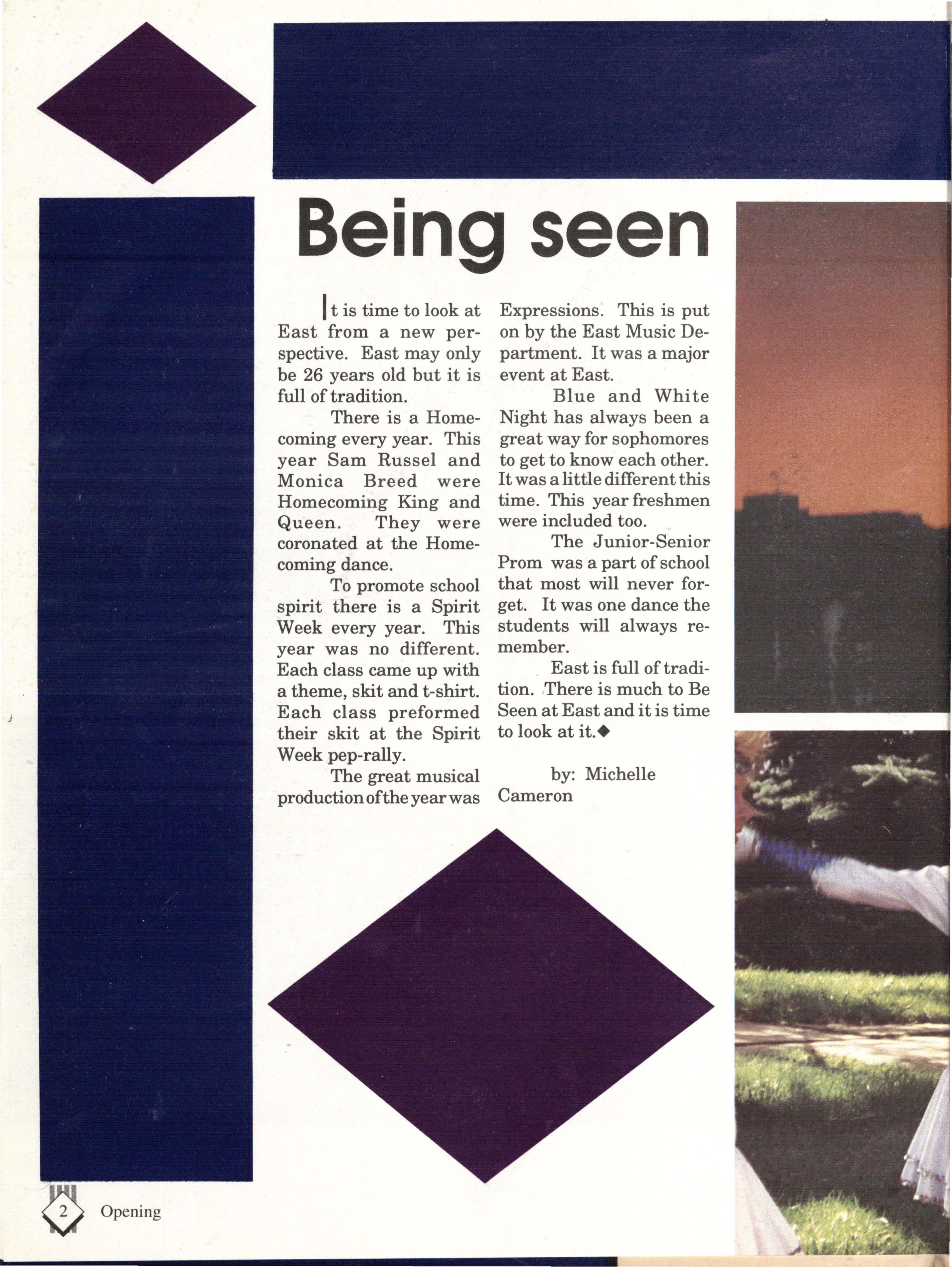 Although the appearence of East contributed to our color, the mixture of attitudes and personalities was what really made East colorful. Some have said that East is sheltered from the real world, but the students who walked East's halls on a daily basis knew otherwise. During the course of a student's life at East, you are exposed to a wide variety of people, situations and activities.