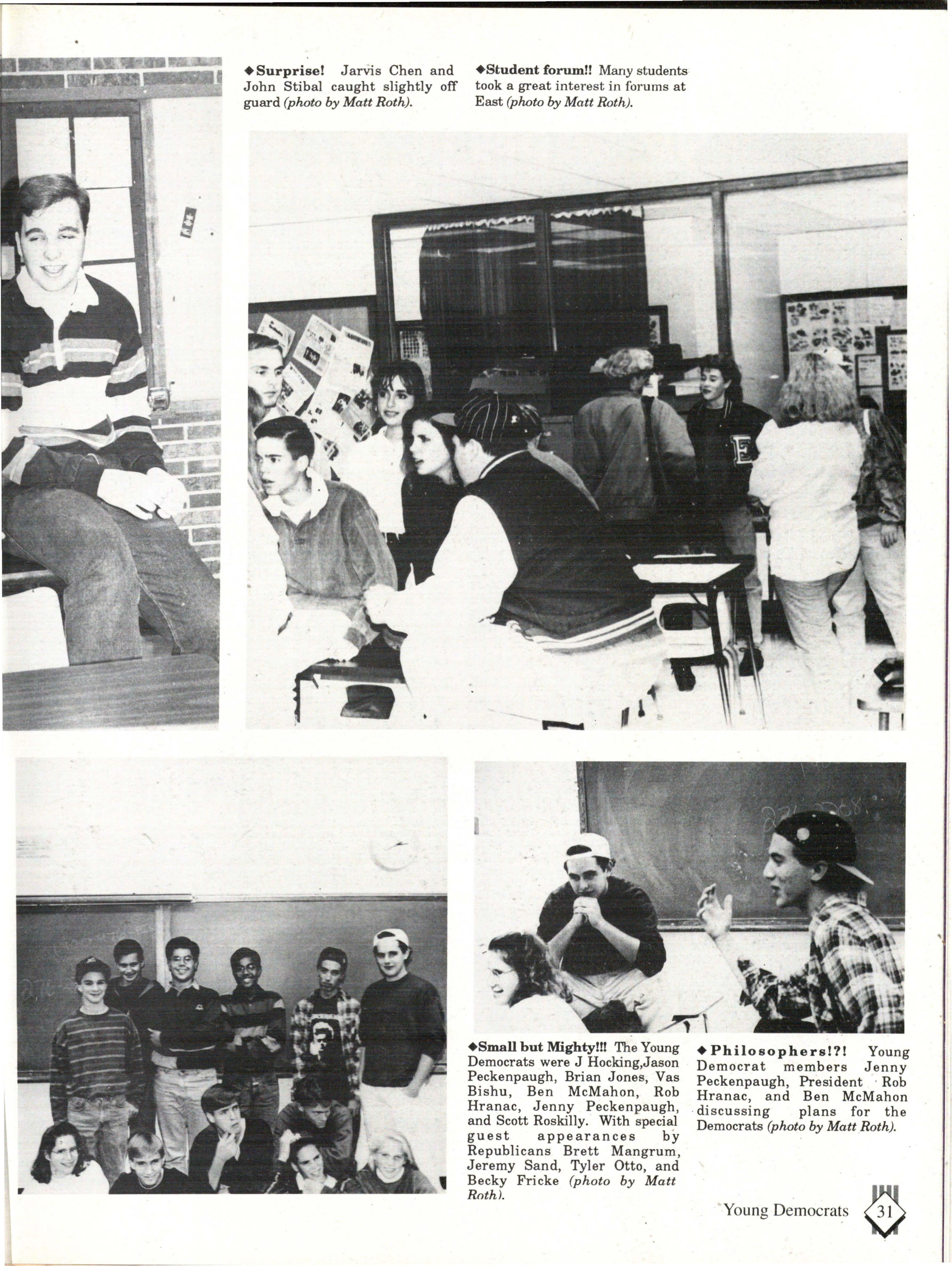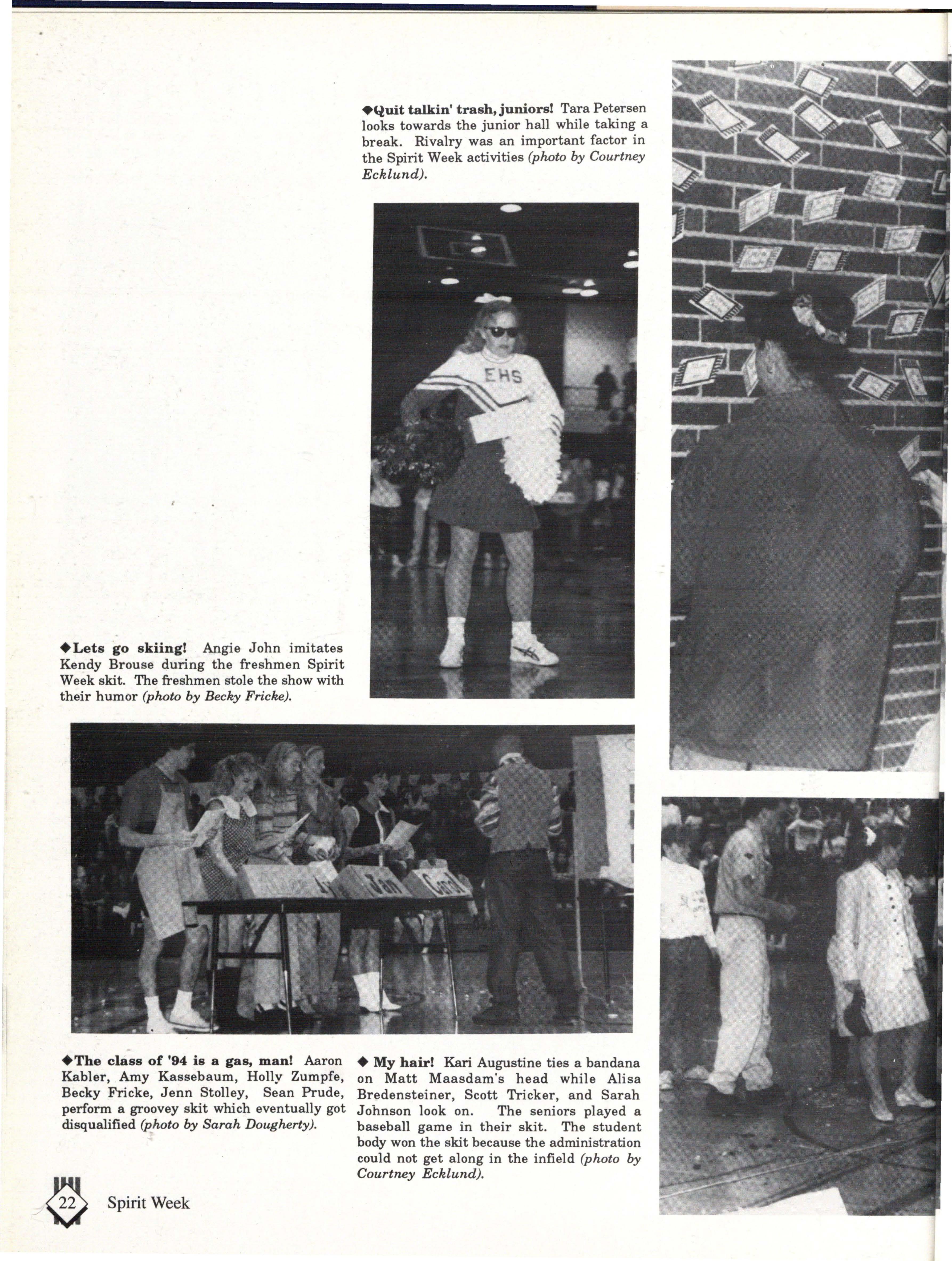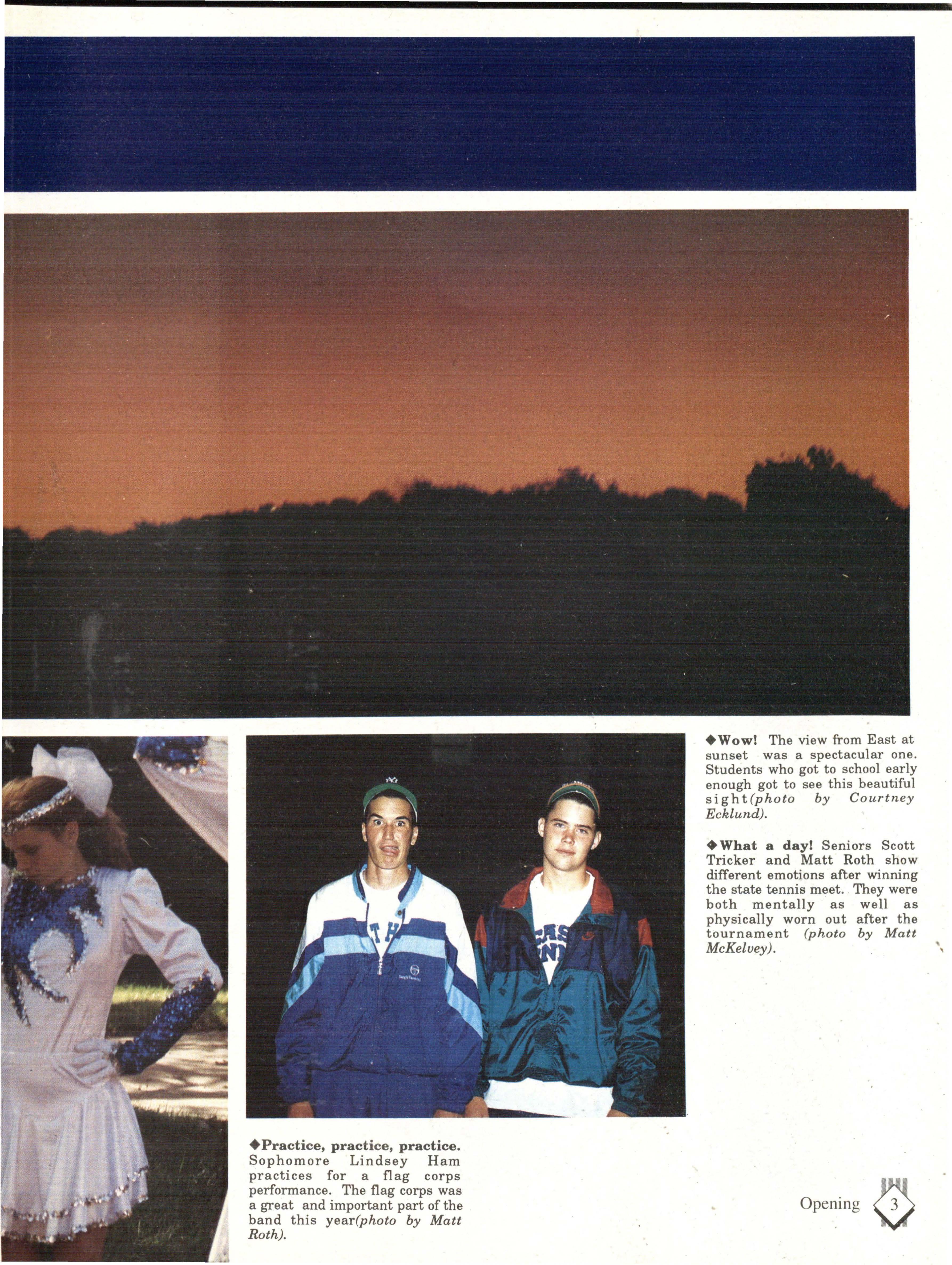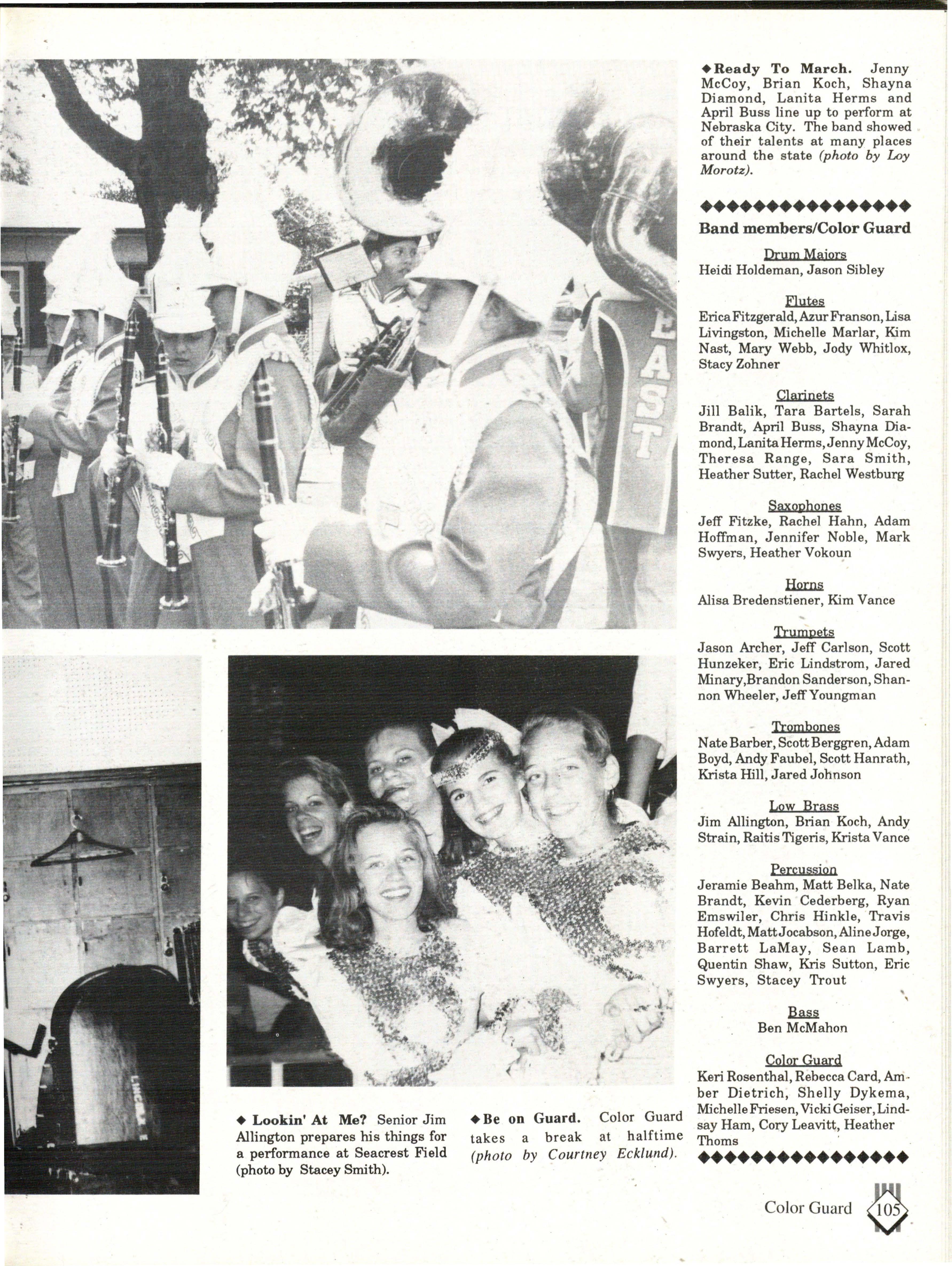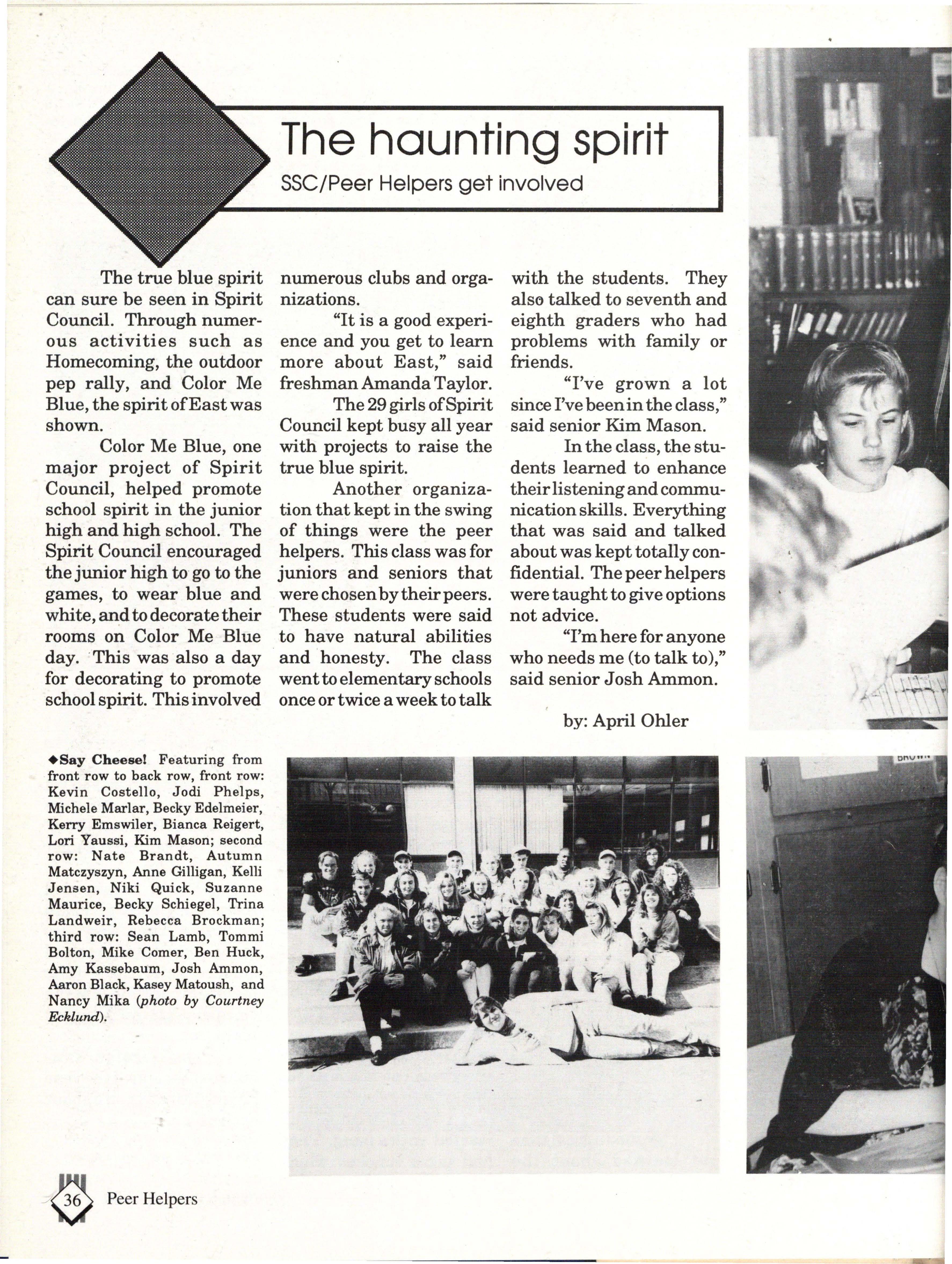 Although the appearence of East contributed to our color, the mixture of attitudes and personalities was what really made East colorful. Some have said that East is sheltered from the real world, but the students who walked East's halls on a daily basis knew otherwise. During the course of a student's life at East, you are exposed to a wide variety of people, situations and activities.