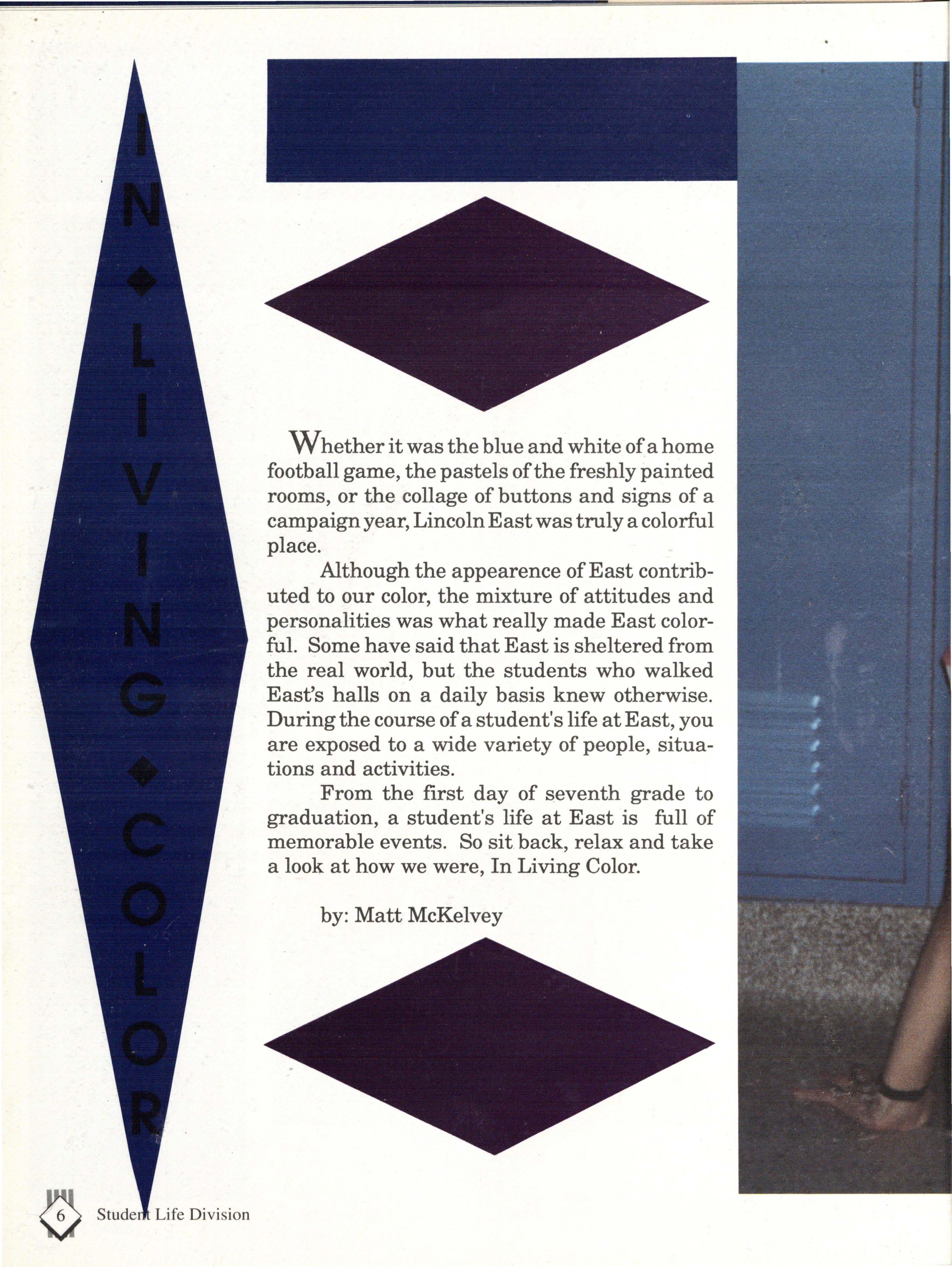 From the first day of seventh grade to graduation, a student's life at East is full of memorable events. So sit. back, relax and take a look at how we were, In Living Color.
