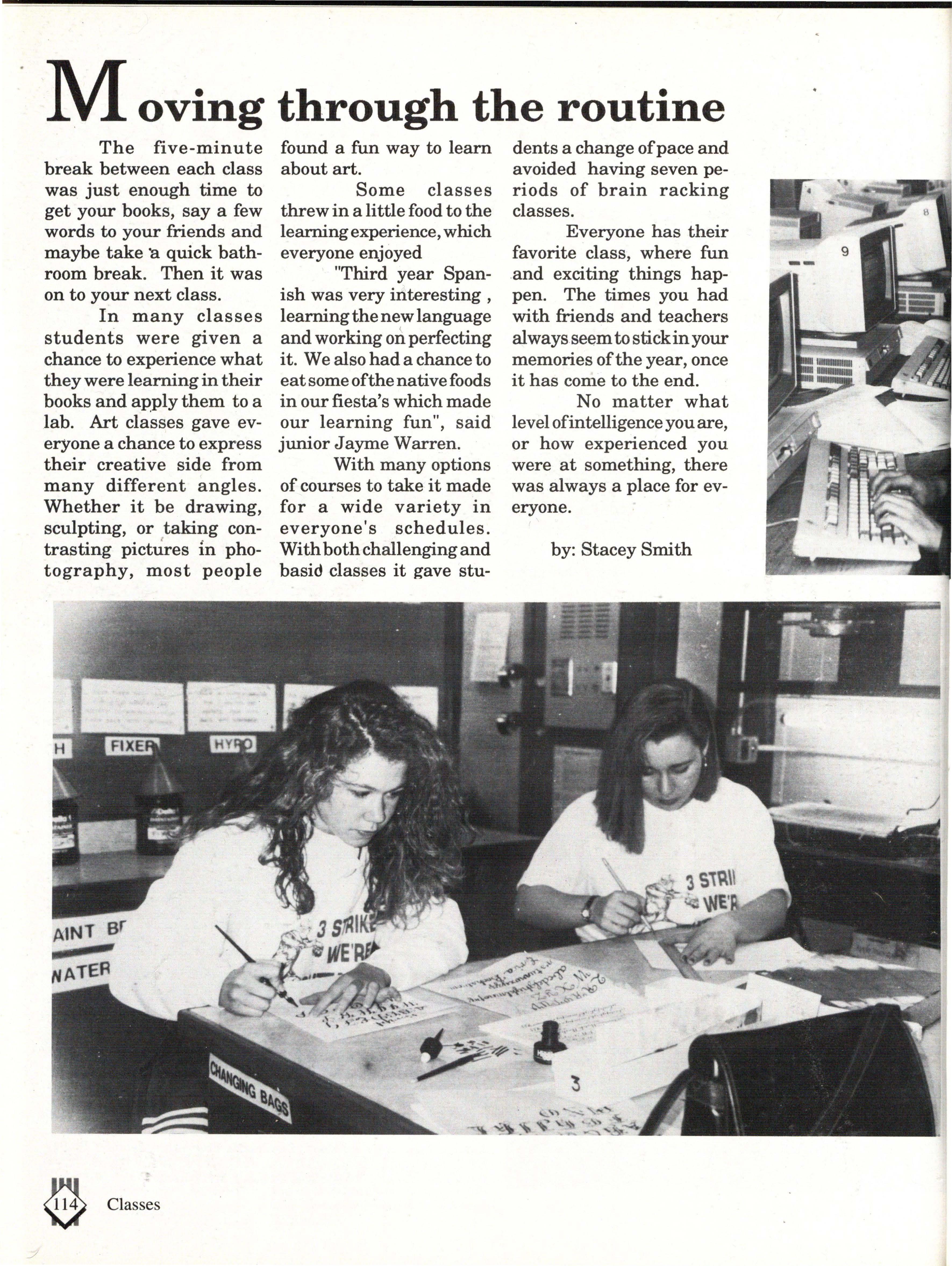The type style for the headlines was Avant Gard~ The stories and captions were in New Century Schoolbook. The headline size differed for every section while all stories were set at 12 points and the captions at