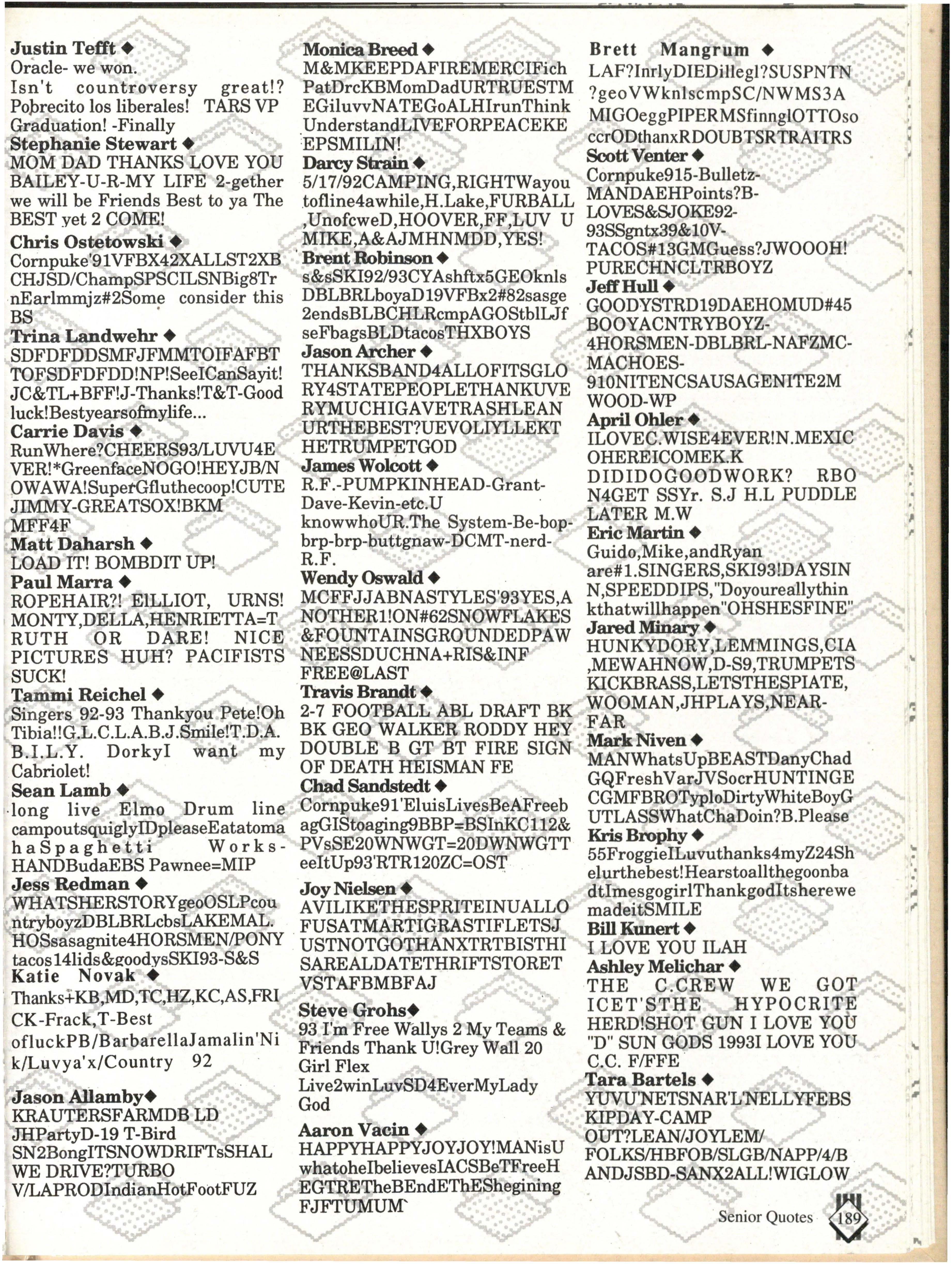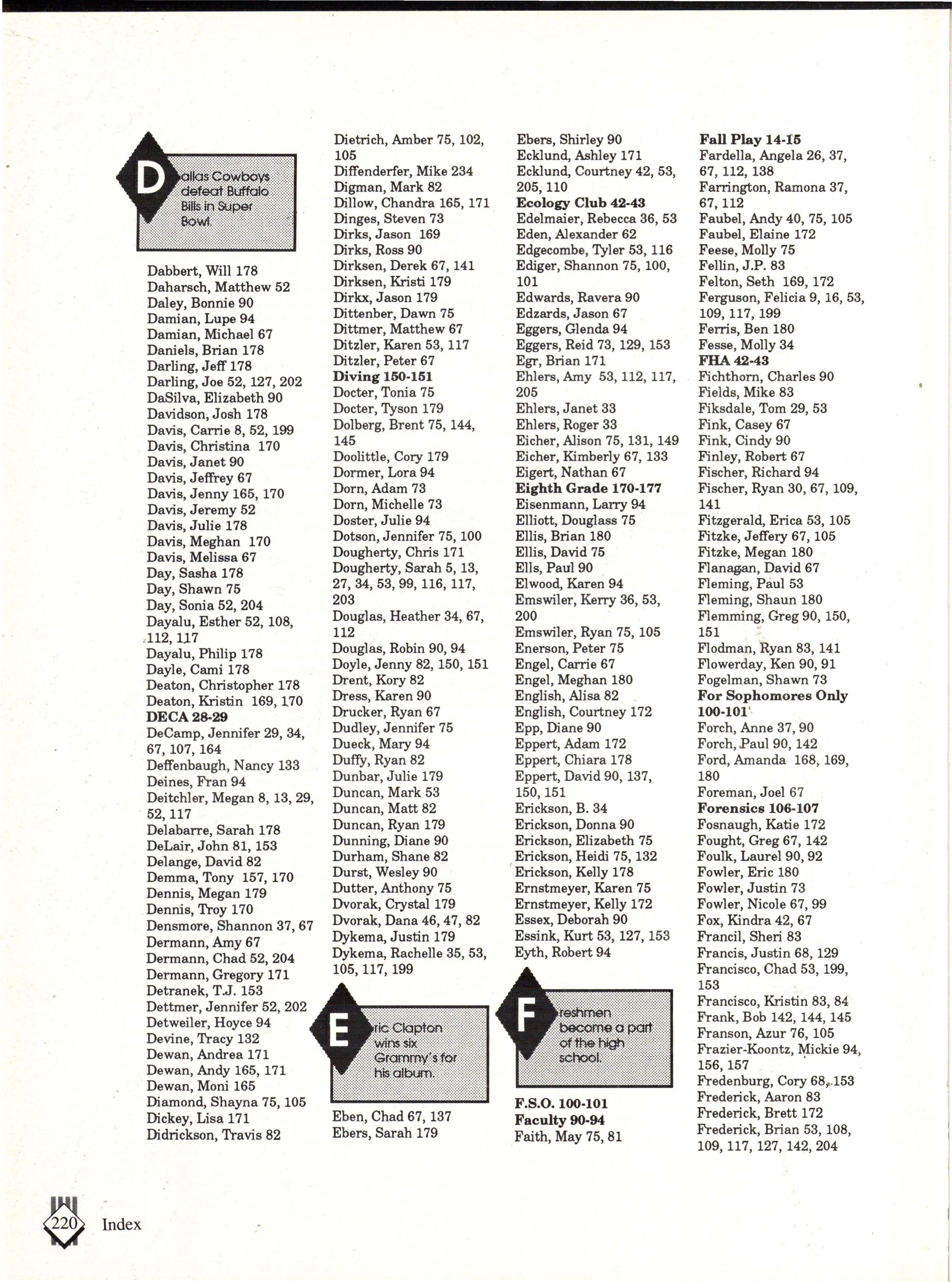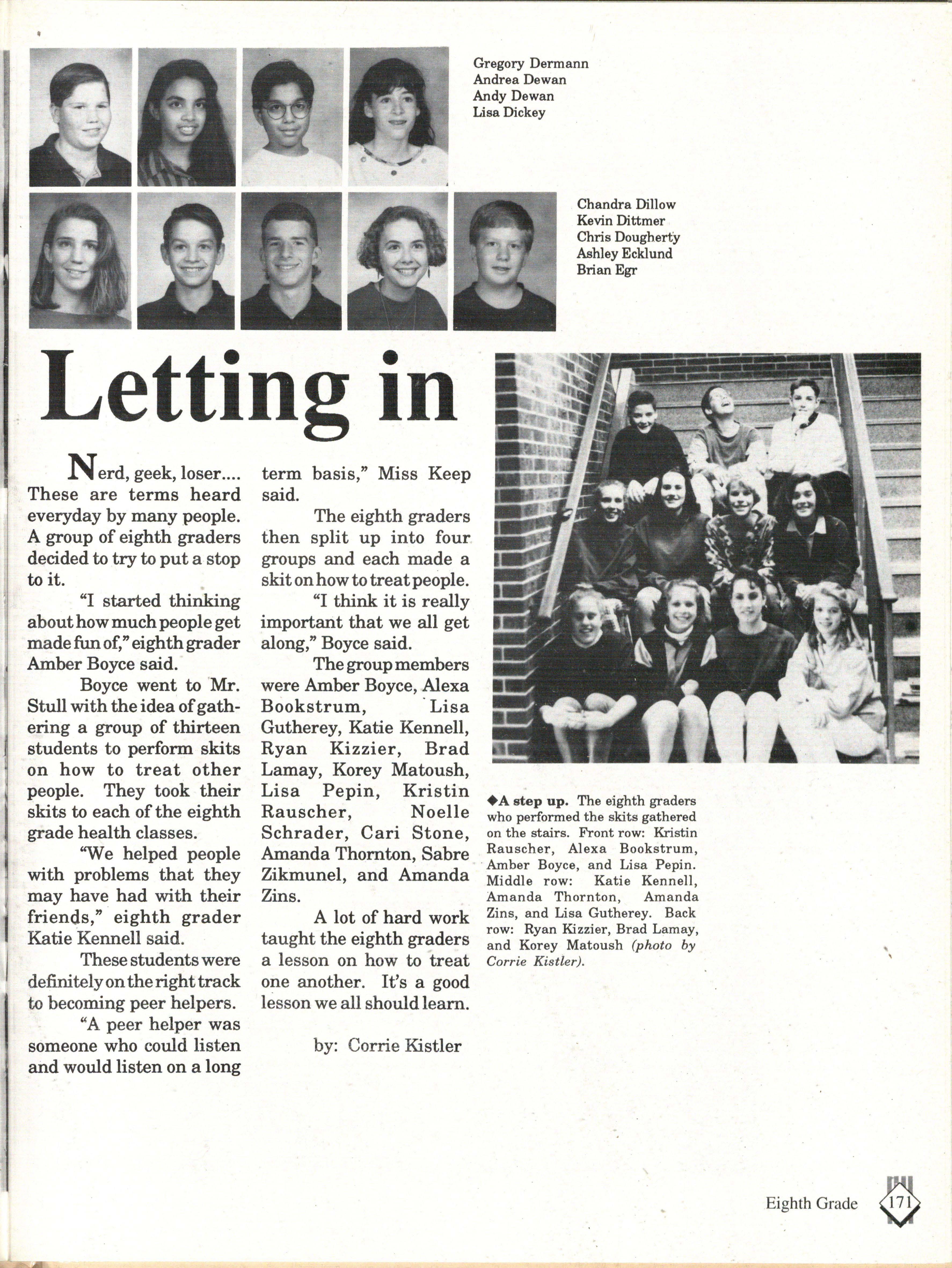 Special thanks go to Mike Diffenderfer, our Walsworth representative, Mrs. Boslau for taking the time, effort, and patience to work with us in our advisor's absence, and to our advisor Mrs. Jane Holt for her support and enthusiasm.