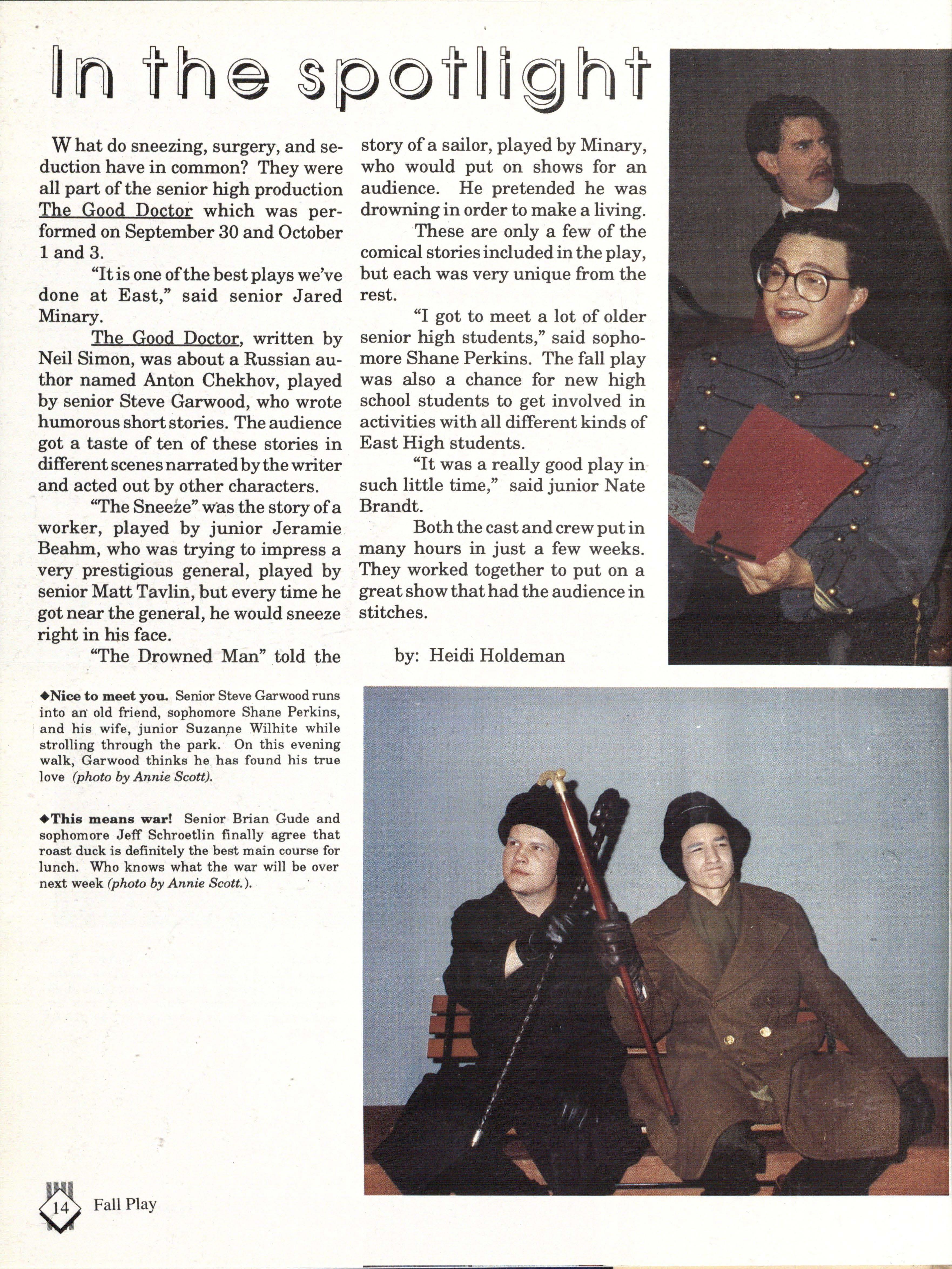 The Good Doctor, written by Neil Simon, was about a Russian author named Anton Chekhov, played by senior Steve Garwood, who wrote humorous short stories. The audience got a taste of ten of these stories in different scenes narrated by the writer and acted out by other characters.