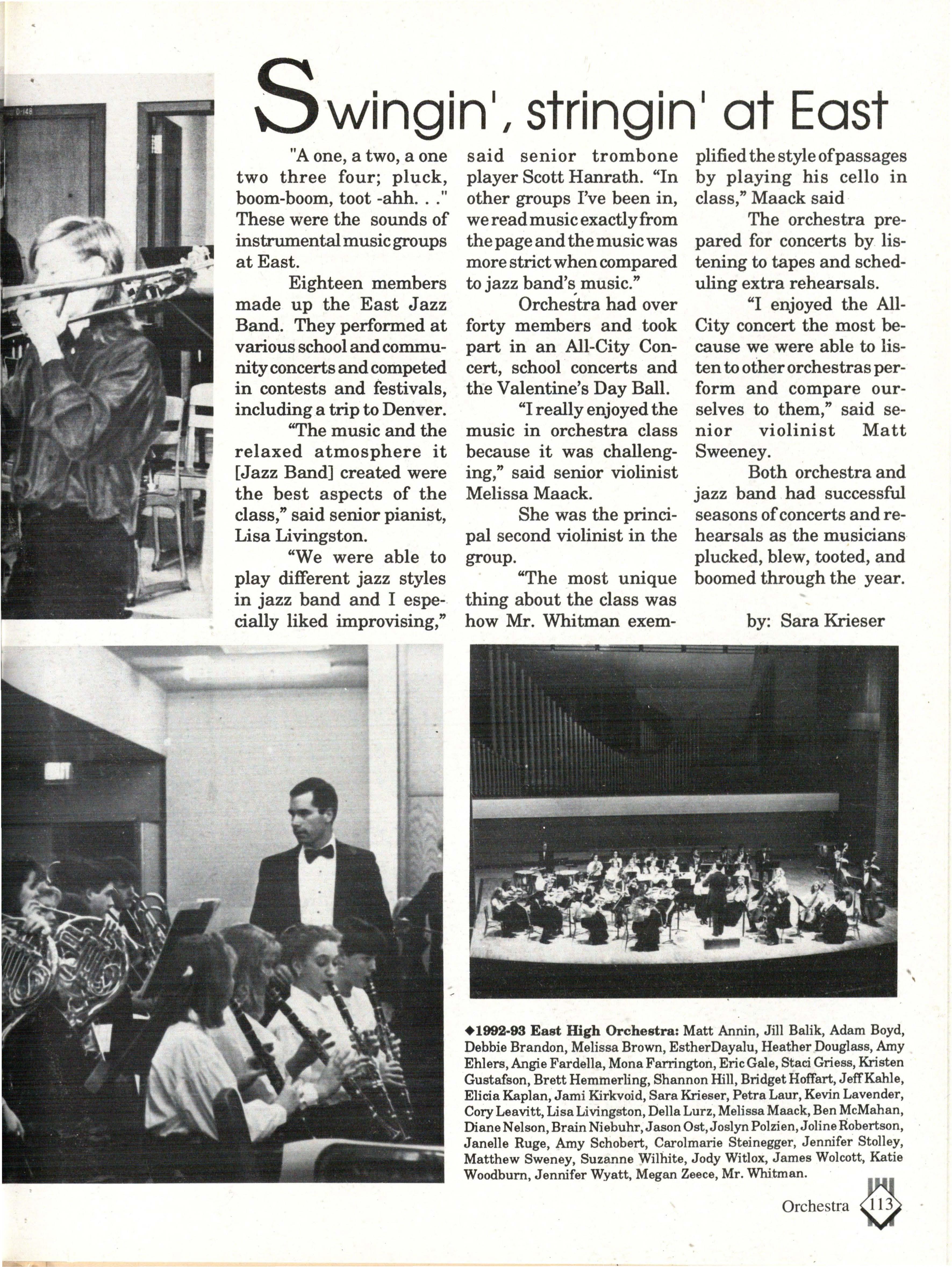 Expressions . This is put on by the East Music Department. It was a major event at East.