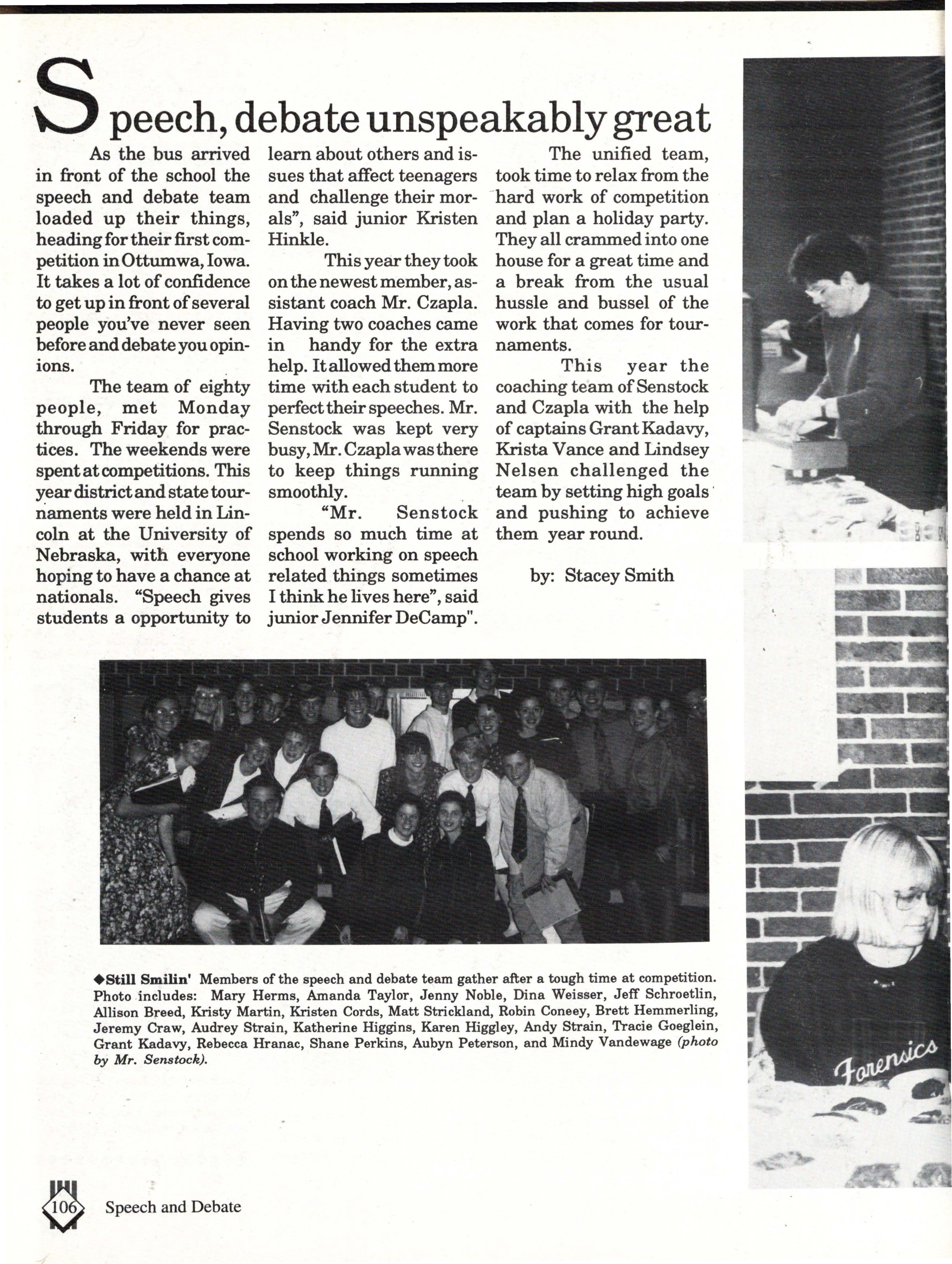 There was also excellence in the academic field at East. There were 73 seniors on National Honor Society and the Debate team was bigger than the football team.