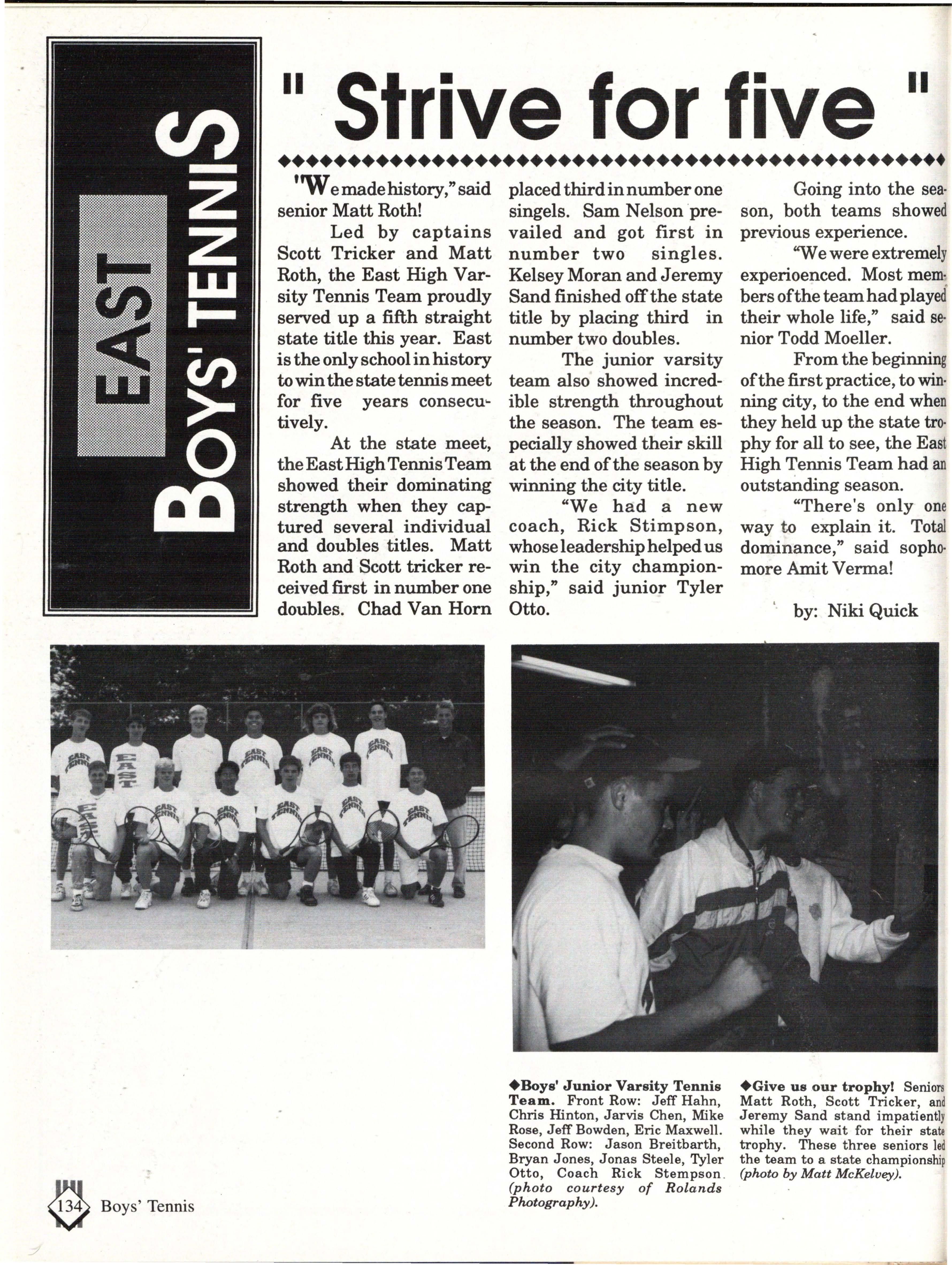 title, the boys' 5th state tennis title in a row and