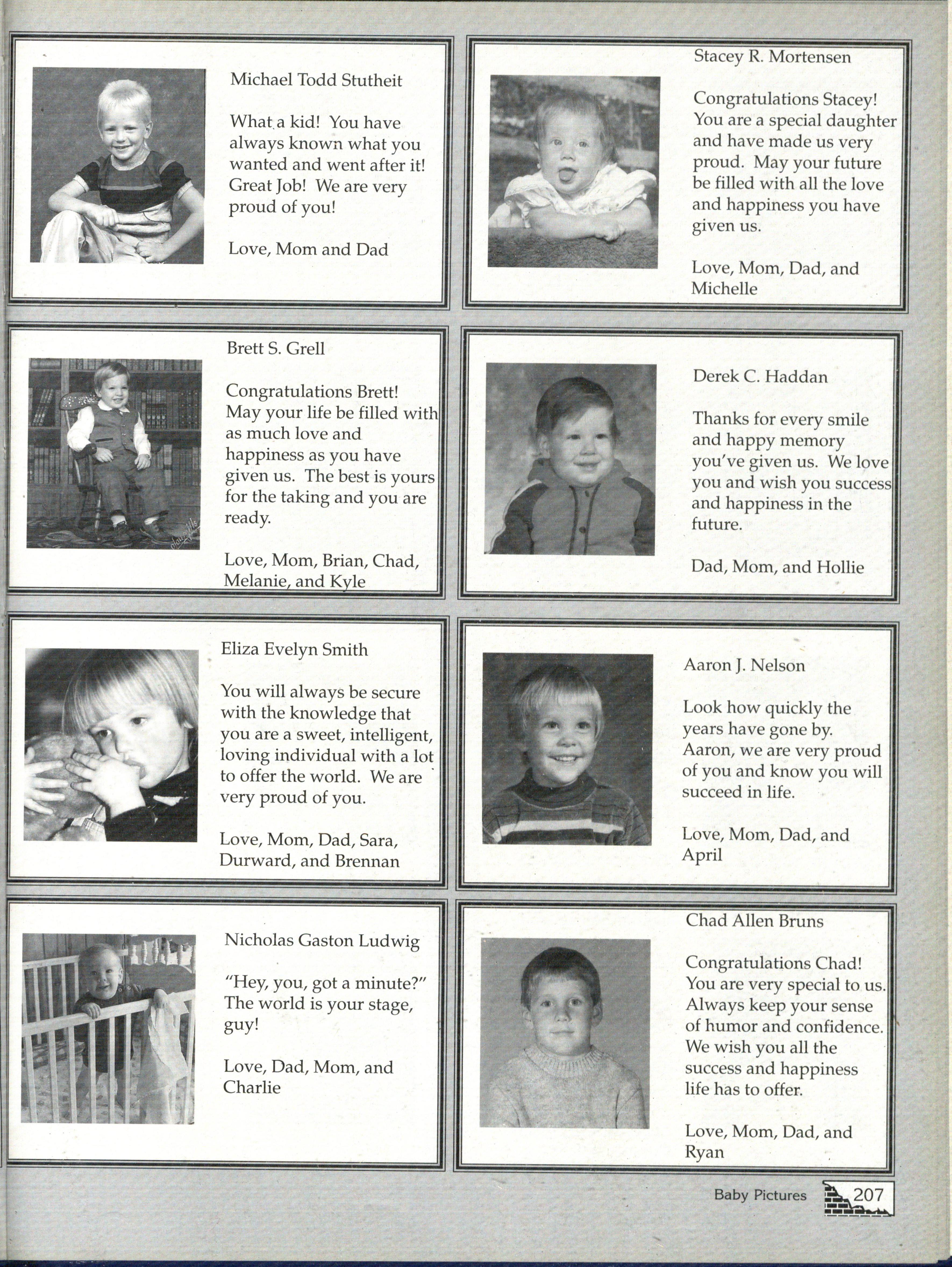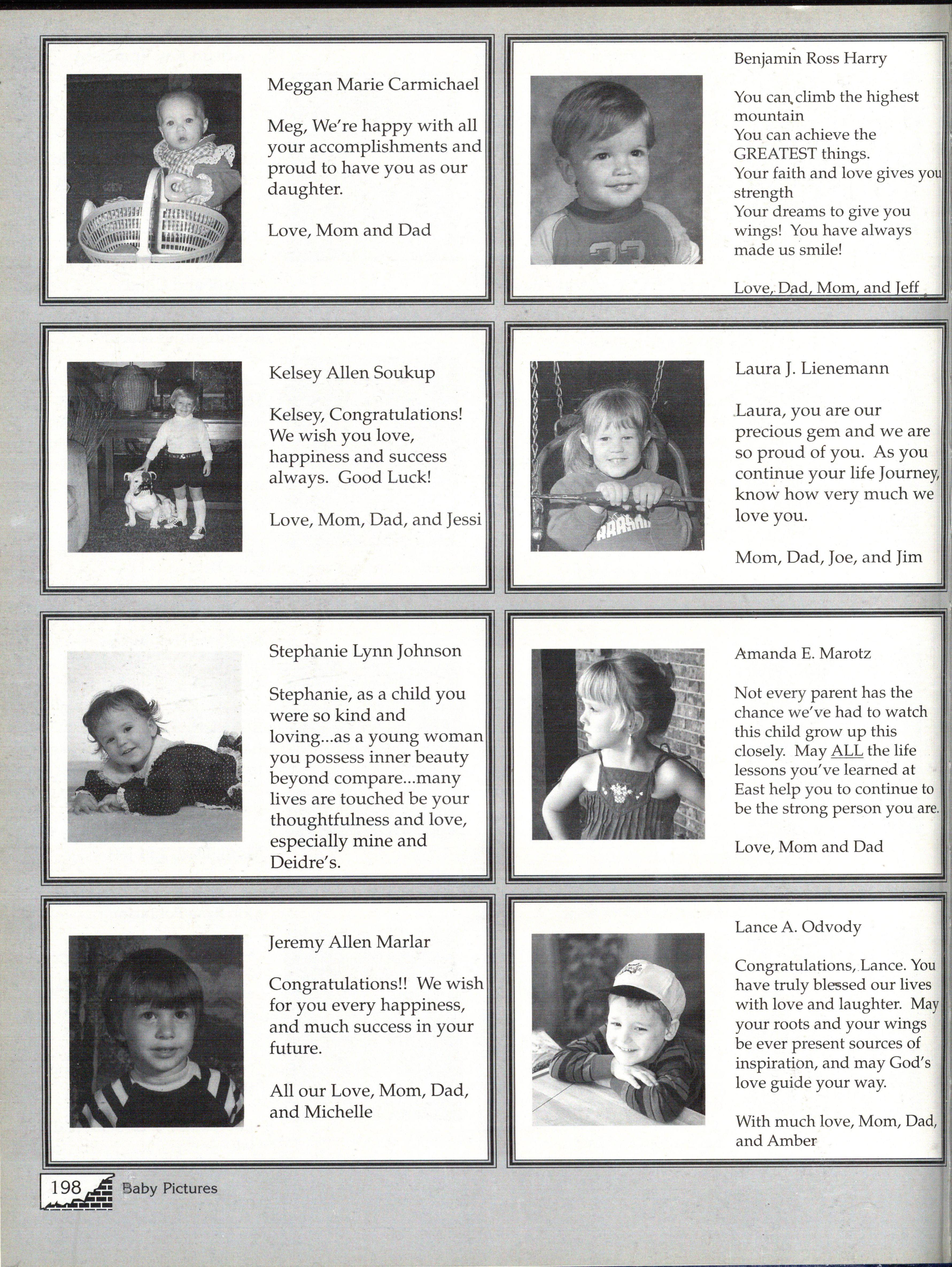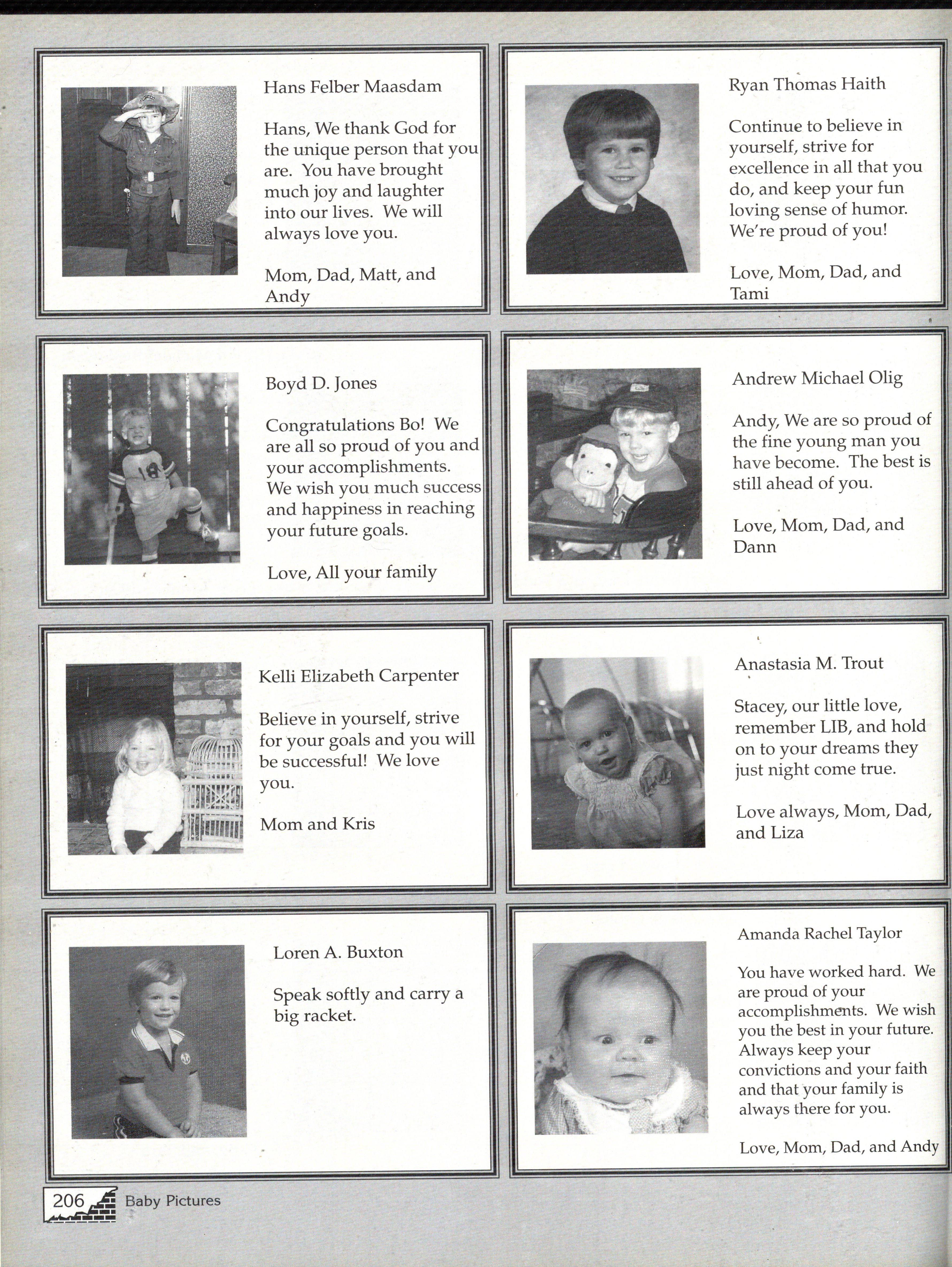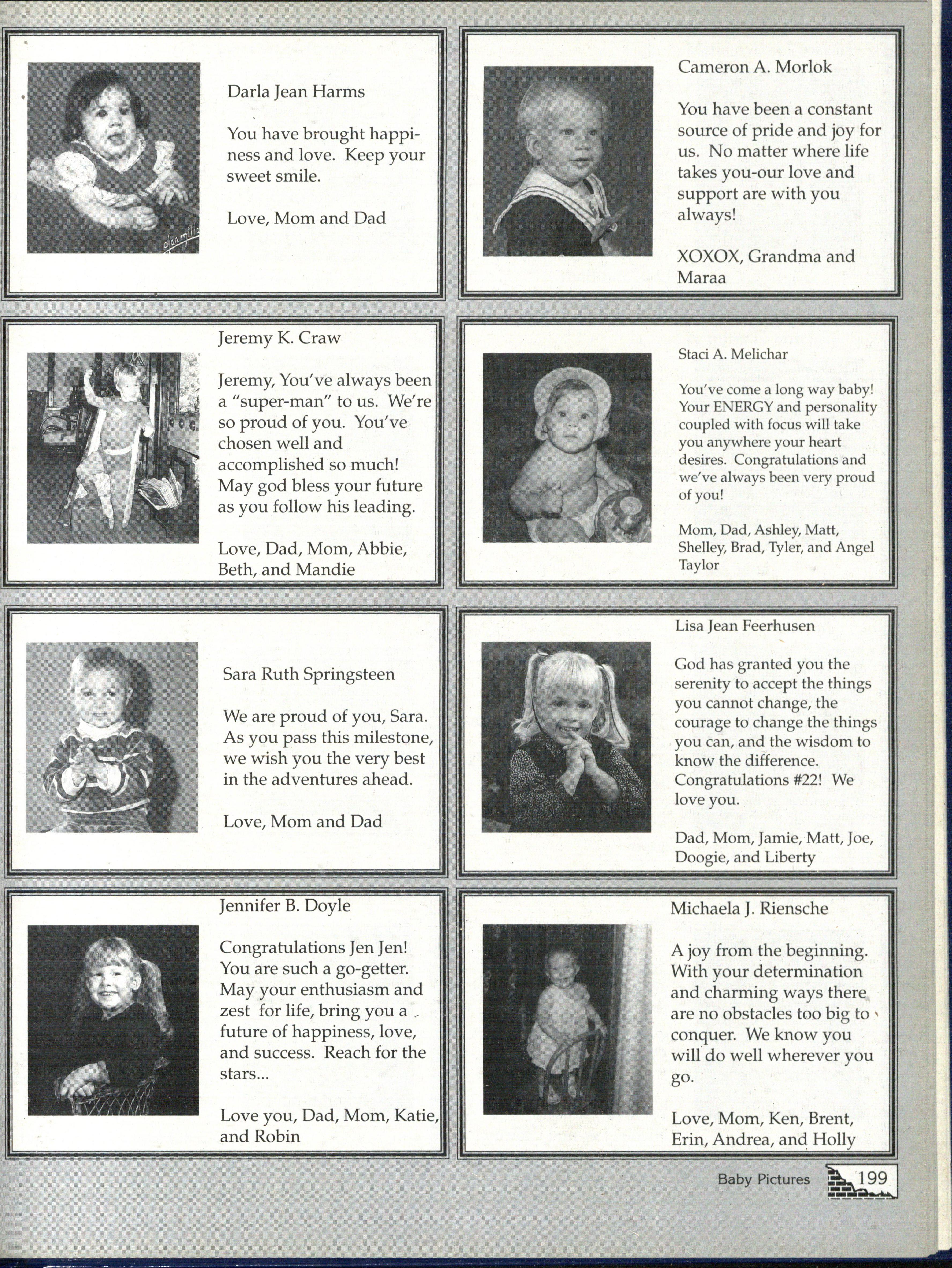 Taylor, Eliza Smith, and Eileen Chalupa. The Baby Ad layouts were compiled by Debra Metzger and Amanda Taylor with help fro m Abbie Johansen Ad pages were done by Amanda Taylor and Debra Metzger with contacts done by Abb ie Johansen. Senior Quotes layouts were complied by Eliza Smith. The photographers, An n Ma rie Grohs, Jenny Blake, and Jeremy Marlar took all of the sports pictures and a few others. The rest of the staff wrote the stories, helped with a few layouts at the beginning of the year, and did everyt hing else that needed doing.