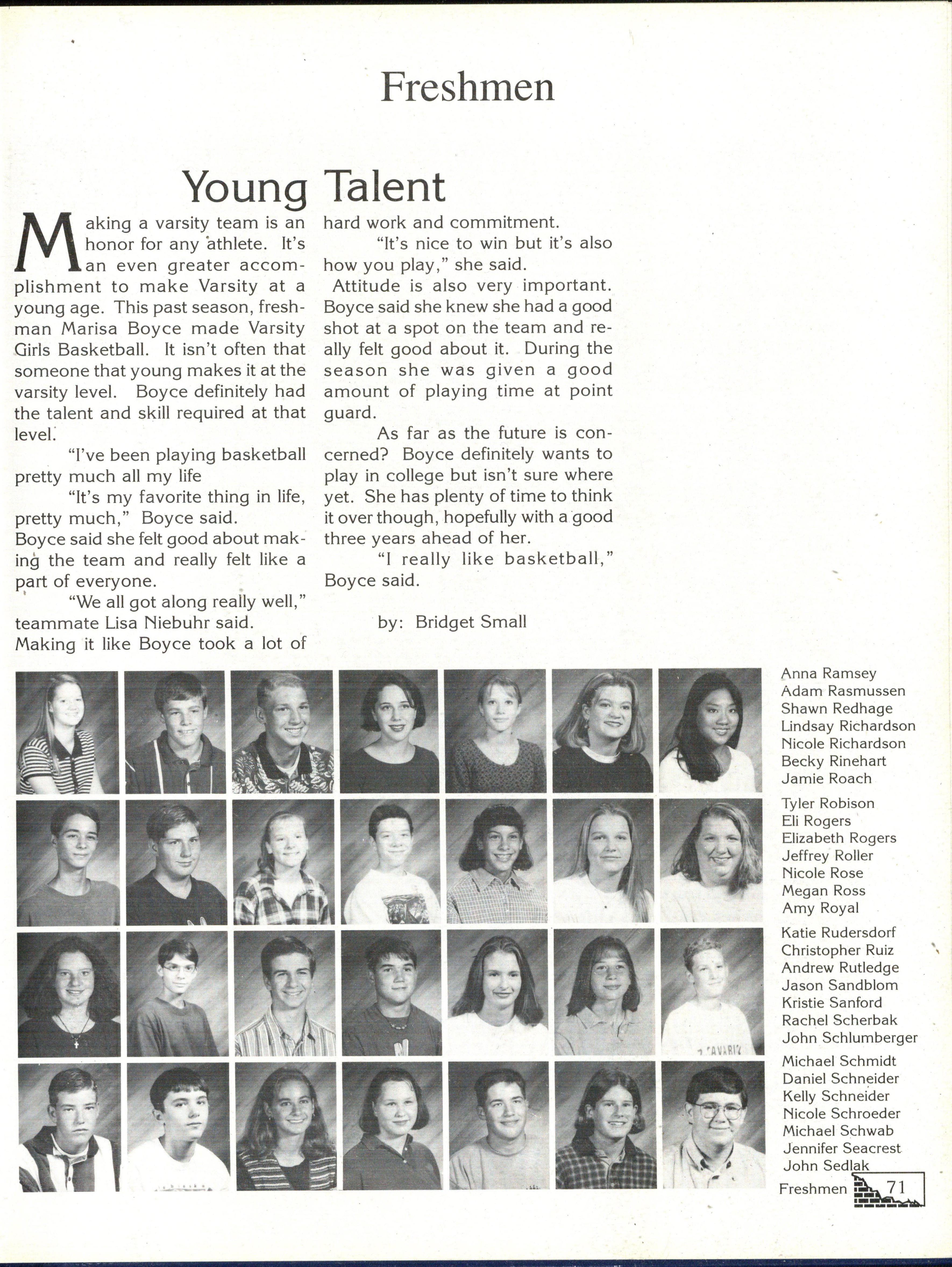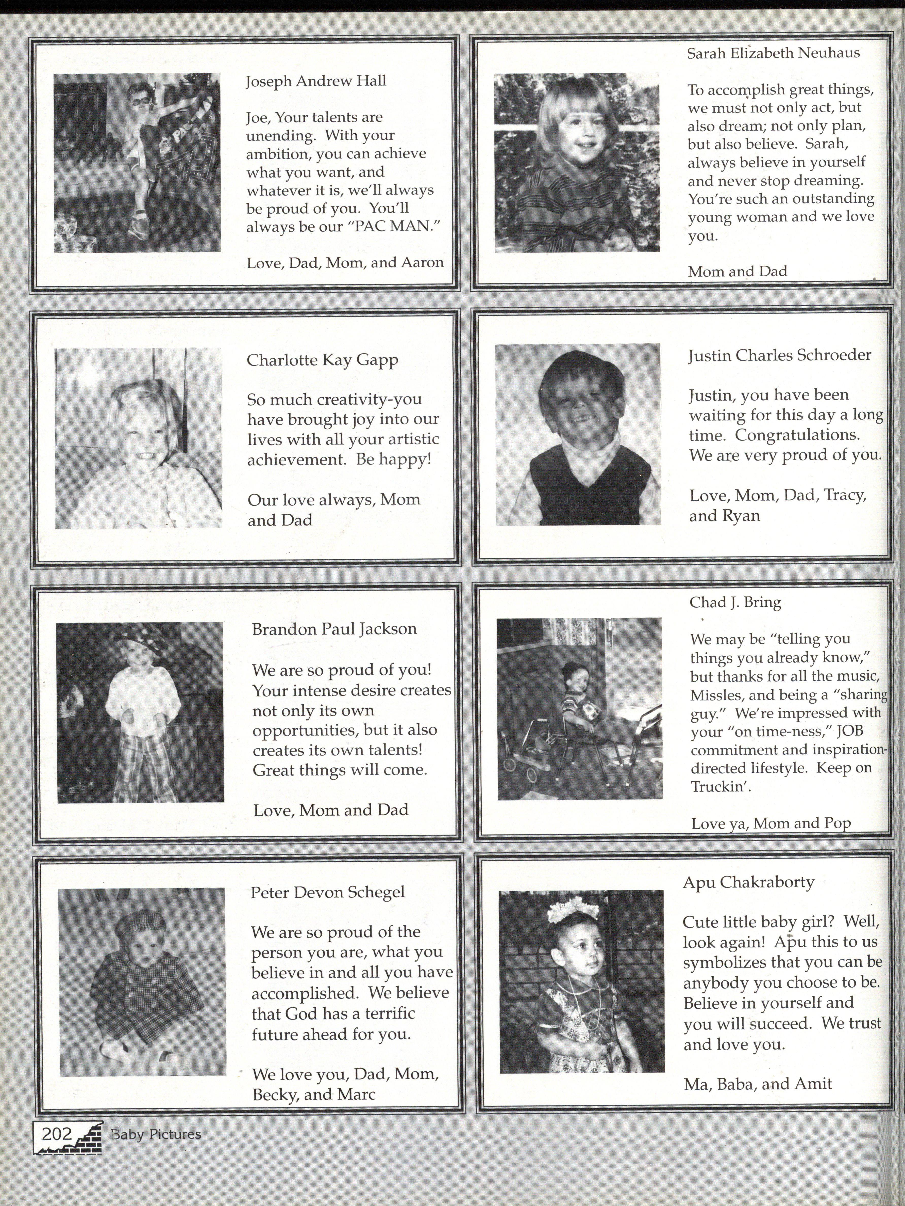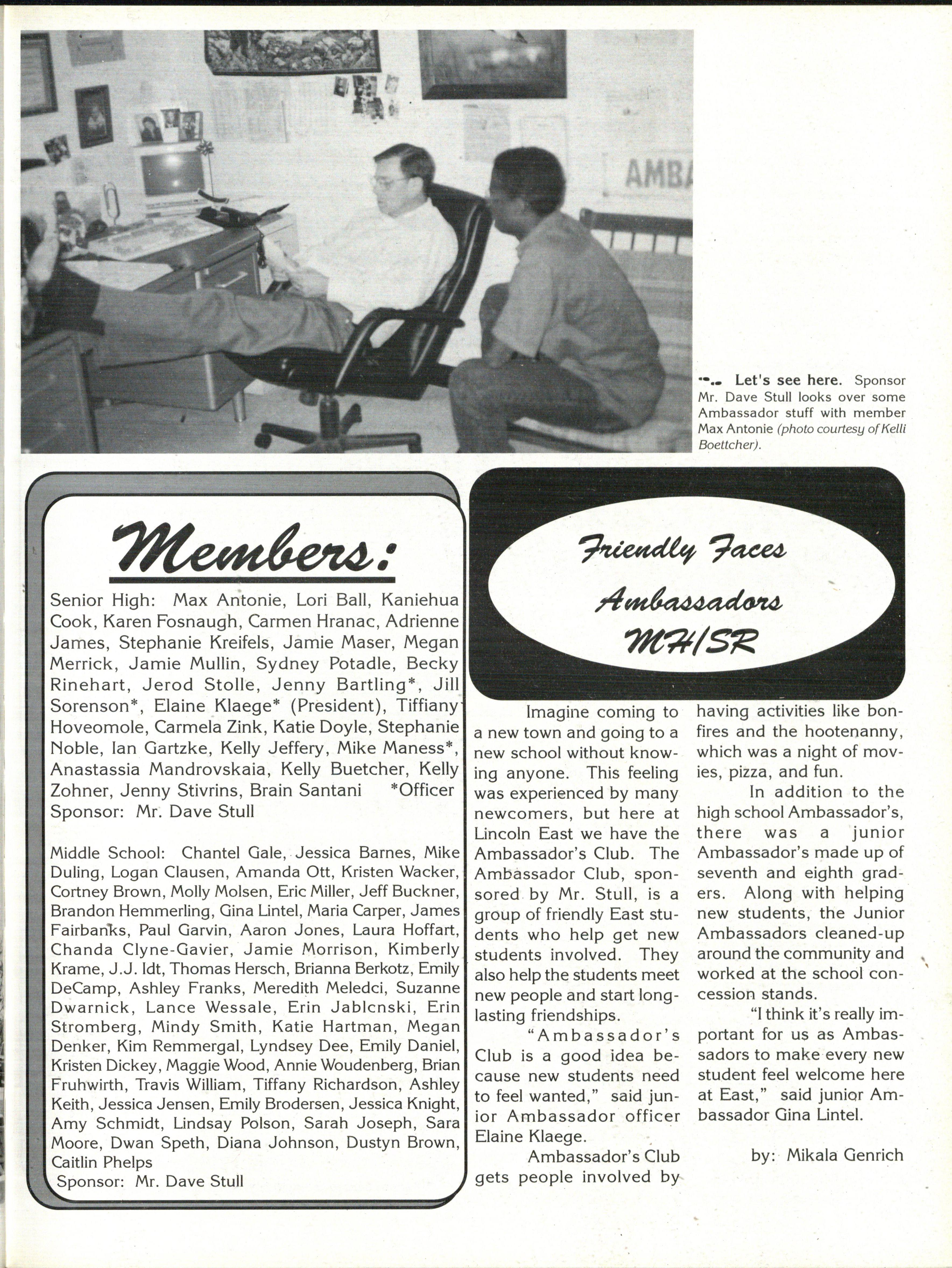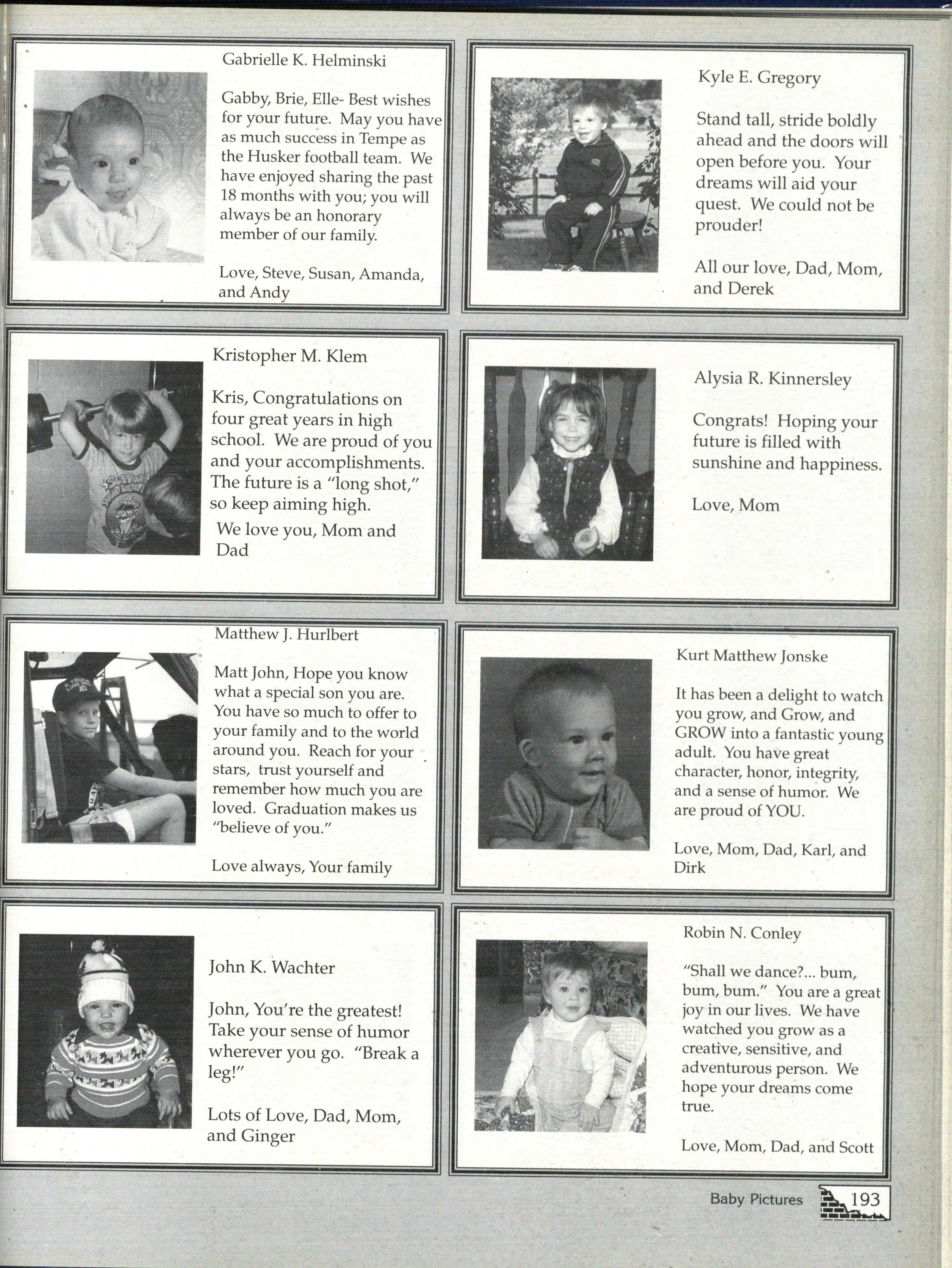 Taylor, Eliza Smith, and Eileen Chalupa. The Baby Ad layouts were compiled by Debra Metzger and Amanda Taylor with help fro m Abbie Johansen Ad pages were done by Amanda Taylor and Debra Metzger with contacts done by Abb ie Johansen. Senior Quotes layouts were complied by Eliza Smith. The photographers, An n Ma rie Grohs, Jenny Blake, and Jeremy Marlar took all of the sports pictures and a few others. The rest of the staff wrote the stories, helped with a few layouts at the beginning of the year, and did everyt hing else that needed doing.