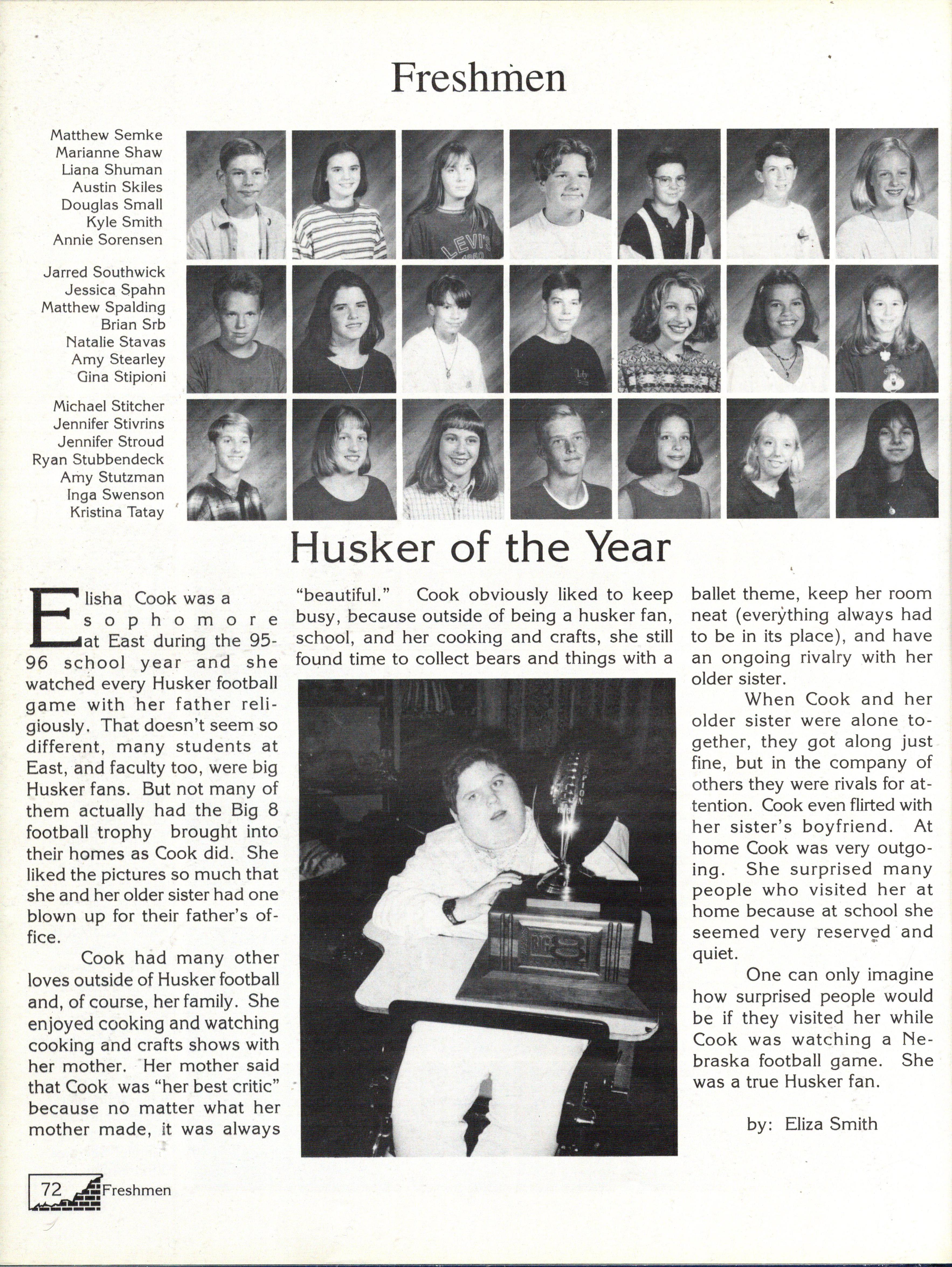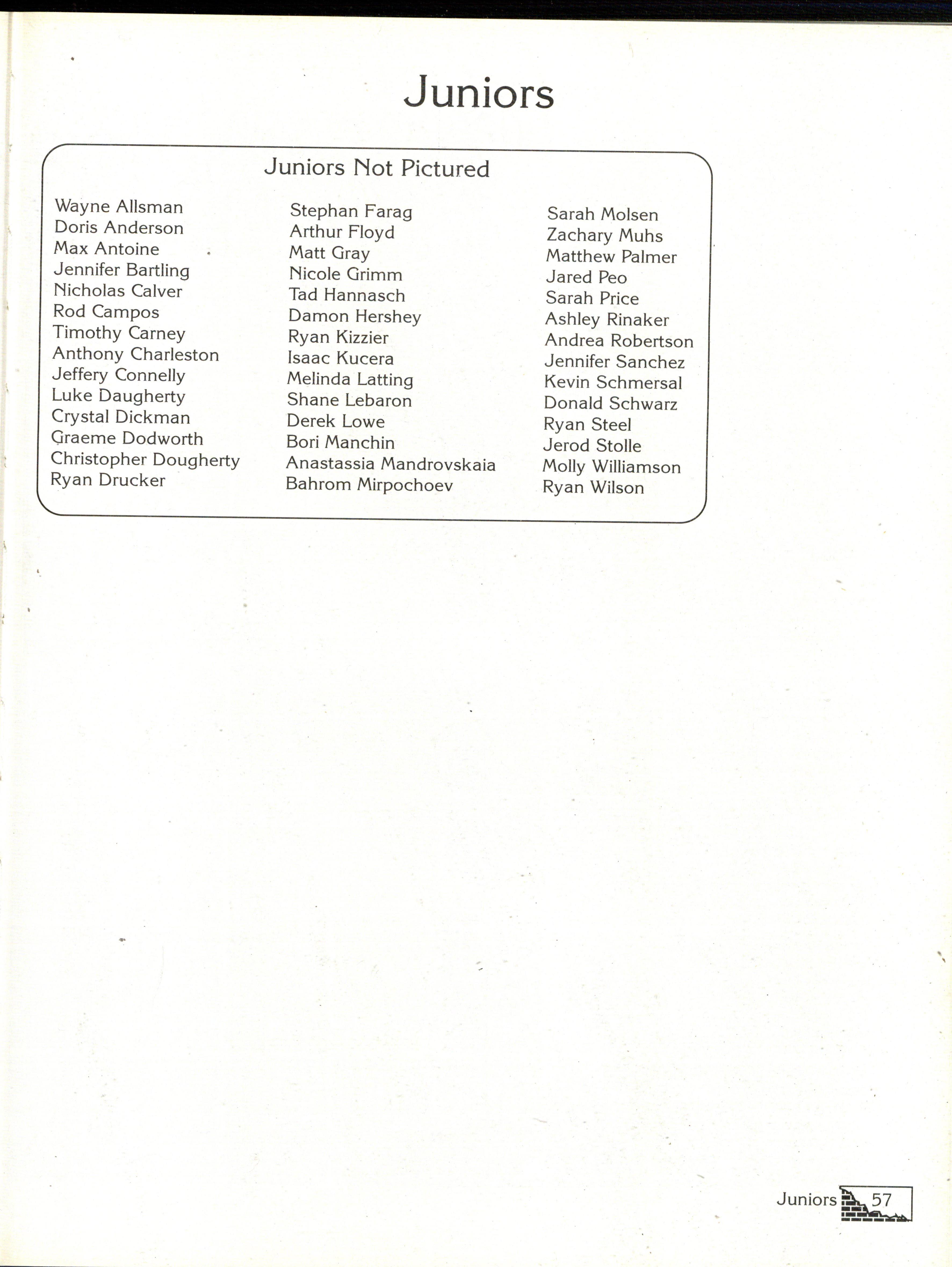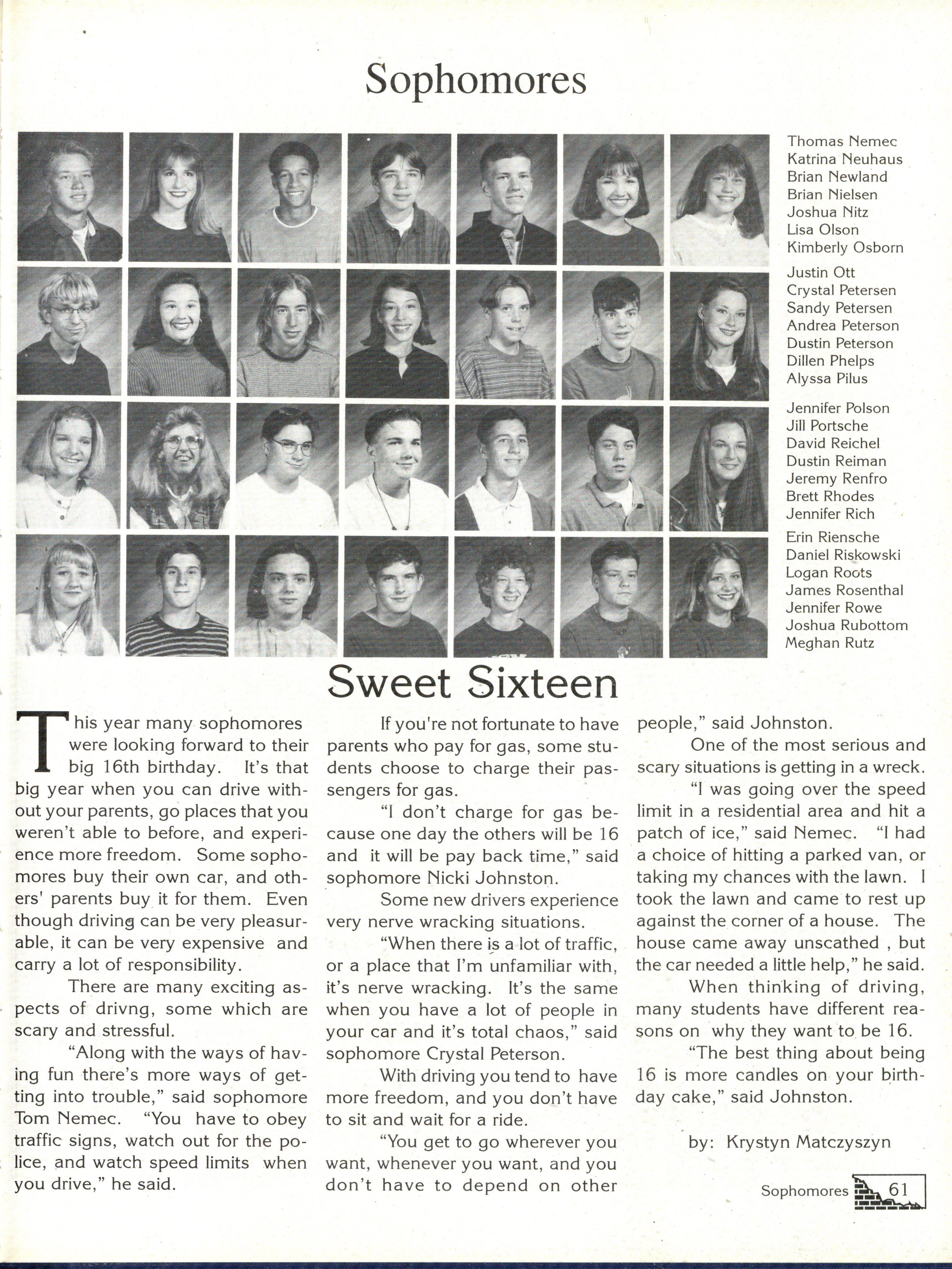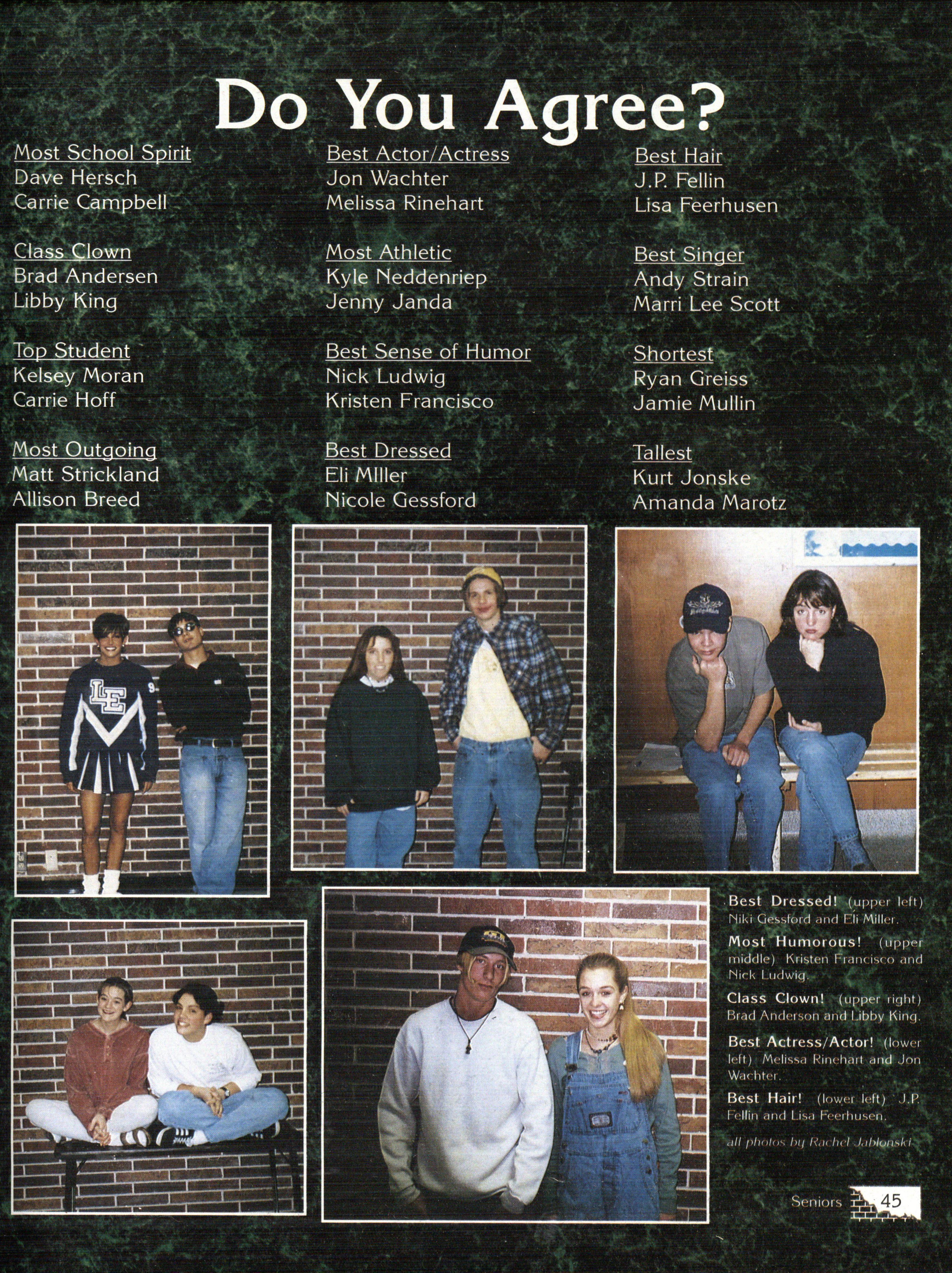 Taylor, Eliza Smith, and Eileen Chalupa. The Baby Ad layouts were compiled by Debra Metzger and Amanda Taylor with help fro m Abbie Johansen Ad pages were done by Amanda Taylor and Debra Metzger with contacts done by Abb ie Johansen. Senior Quotes layouts were complied by Eliza Smith. The photographers, An n Ma rie Grohs, Jenny Blake, and Jeremy Marlar took all of the sports pictures and a few others. The rest of the staff wrote the stories, helped with a few layouts at the beginning of the year, and did everyt hing else that needed doing.