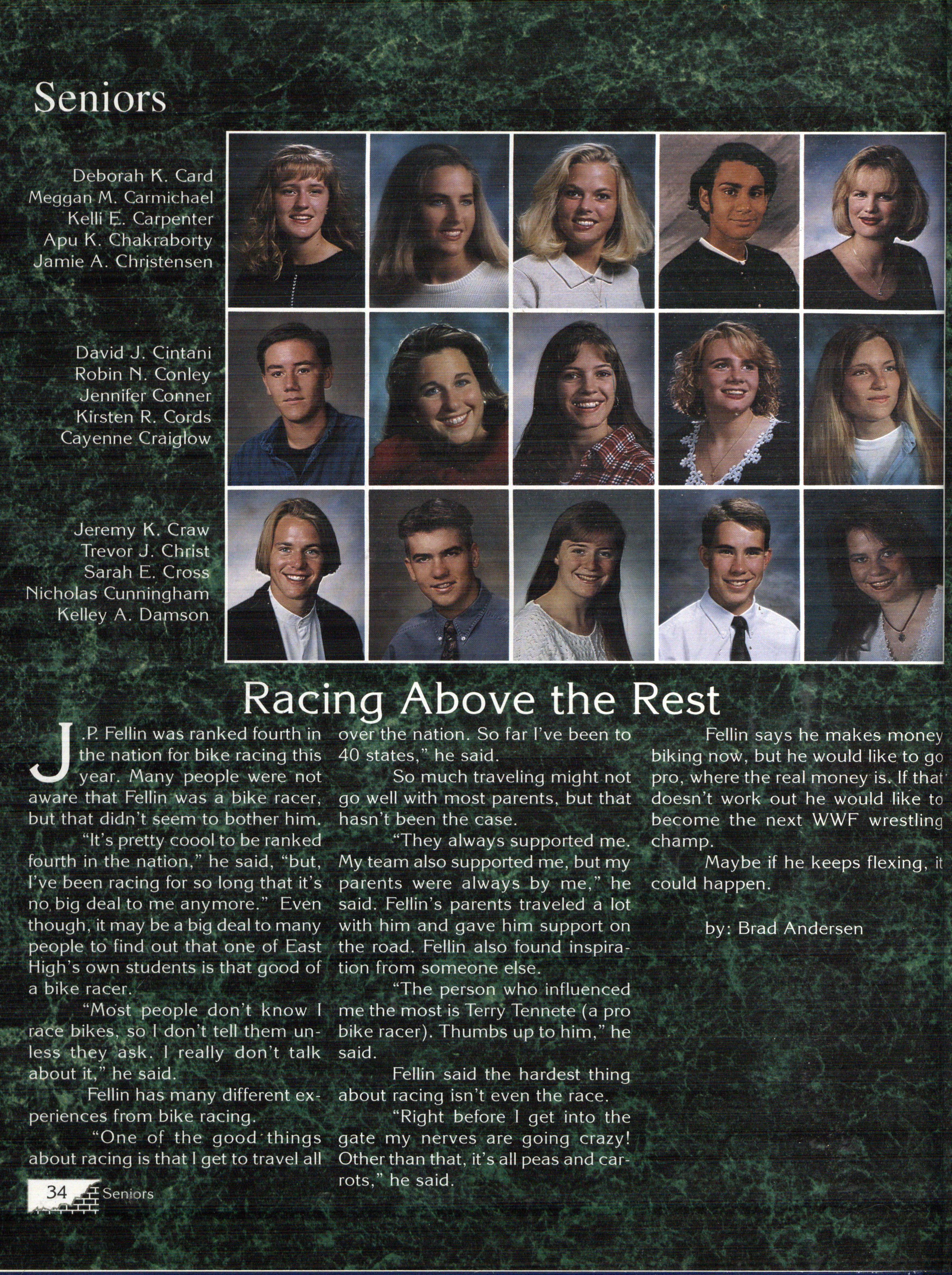 Kurt Jonske: Sara Bernick: I can boogie! Senior Libby King dances on a bed. Many seniors were embarrassed when friends Michael Peterson: I SFTB94- brought up things that they did when they were younger ALTAIAGFFA , • 95JV# lSHOM (photo courtesy of East Nigh Senior). IHTECR 95BSKBLSTATECHAMP -~~--~ NHSKRS •Kelly UHYEAHPHAT5JJCCLKA