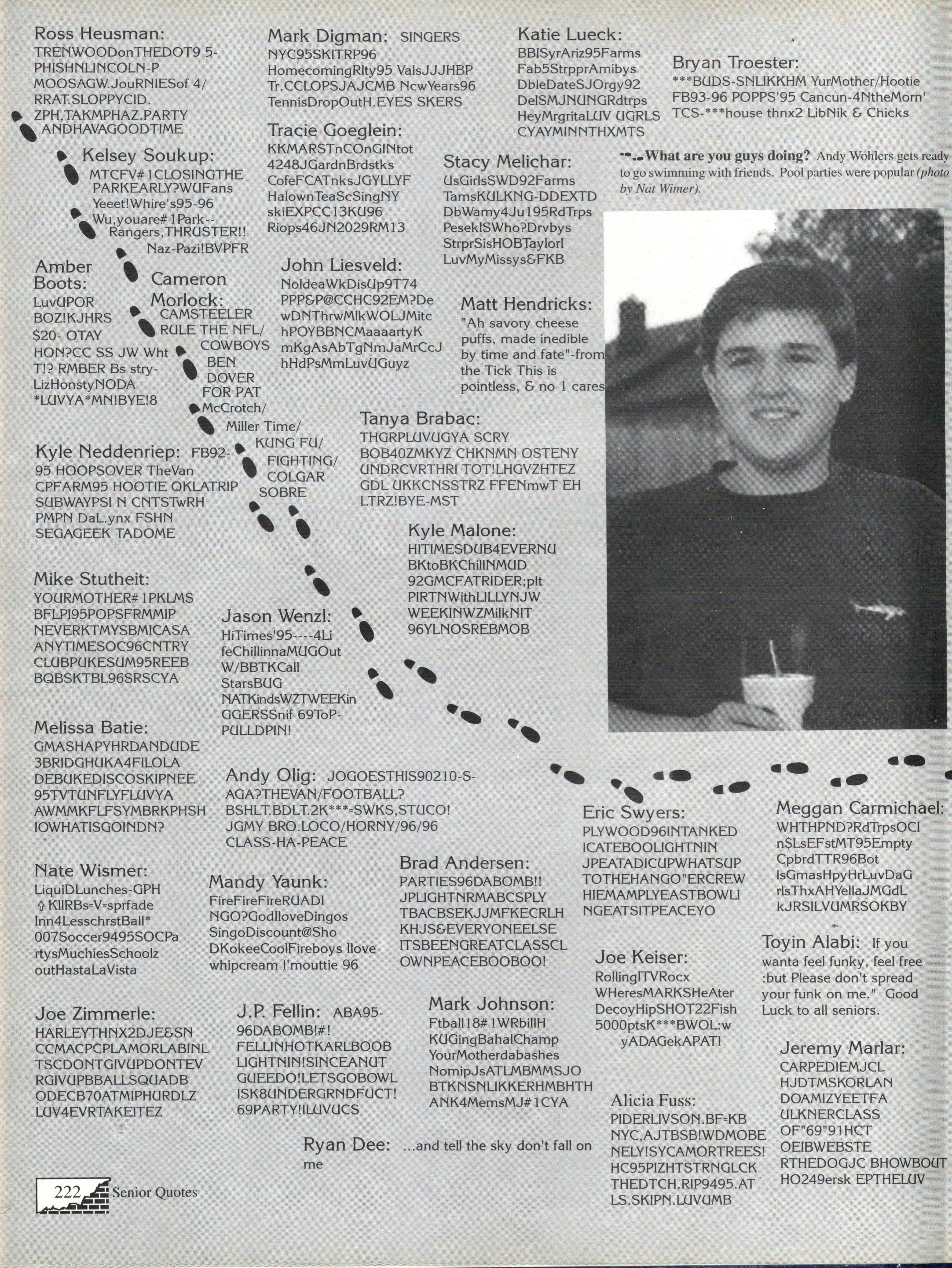 ' • Ryan Burr: CLASS OF Melissa Koehler: NO? WAIT 96!EVERYBODYMUST WE CAN'T BE SENIORS YET!!! GET#!*&@% CHEVELLESS THERE'S SOMETHING REALLY AUTO4yr BIG 10ZOMBIEDD WRONG HERE MPRIGHT ONKEEPONTRUCK!N
