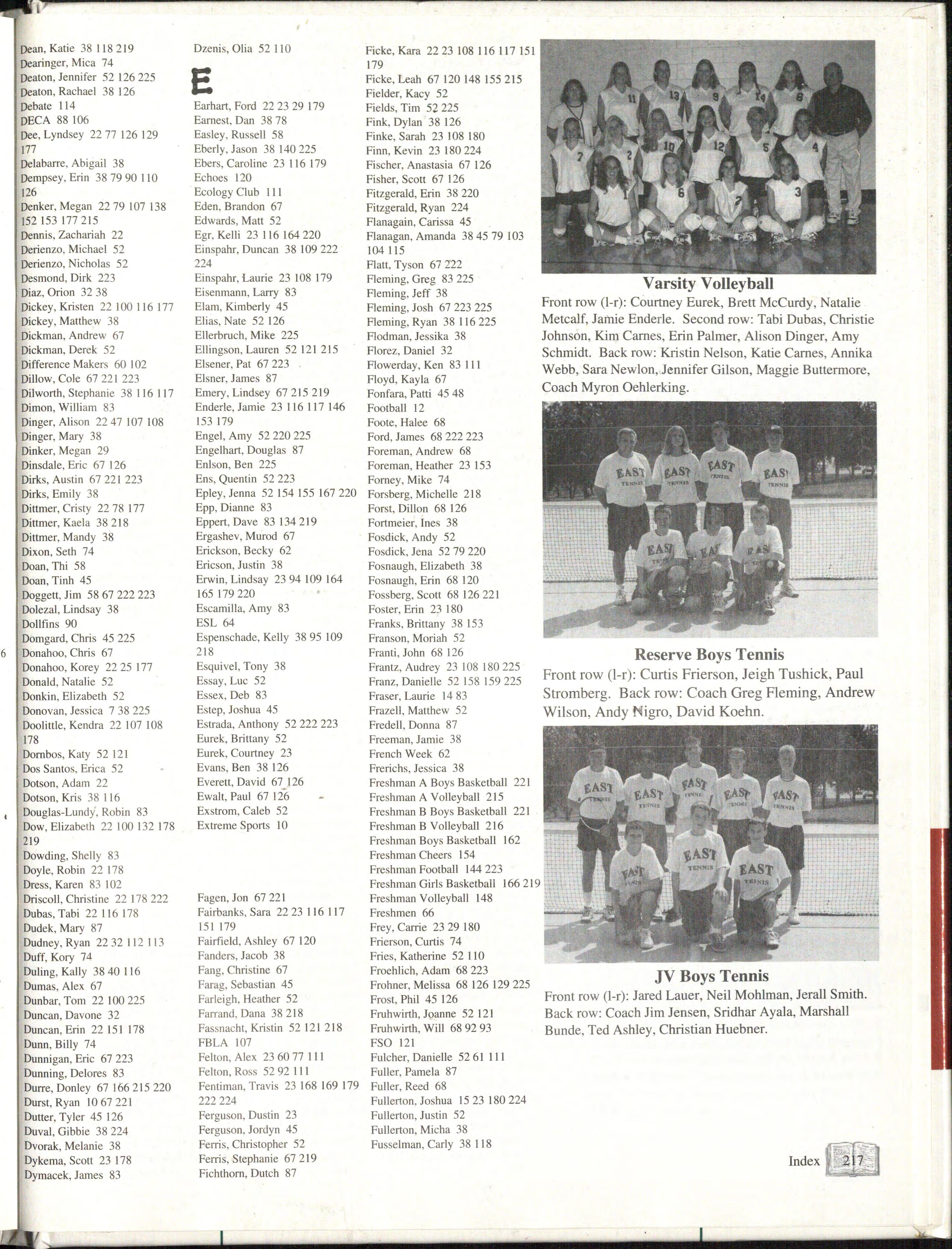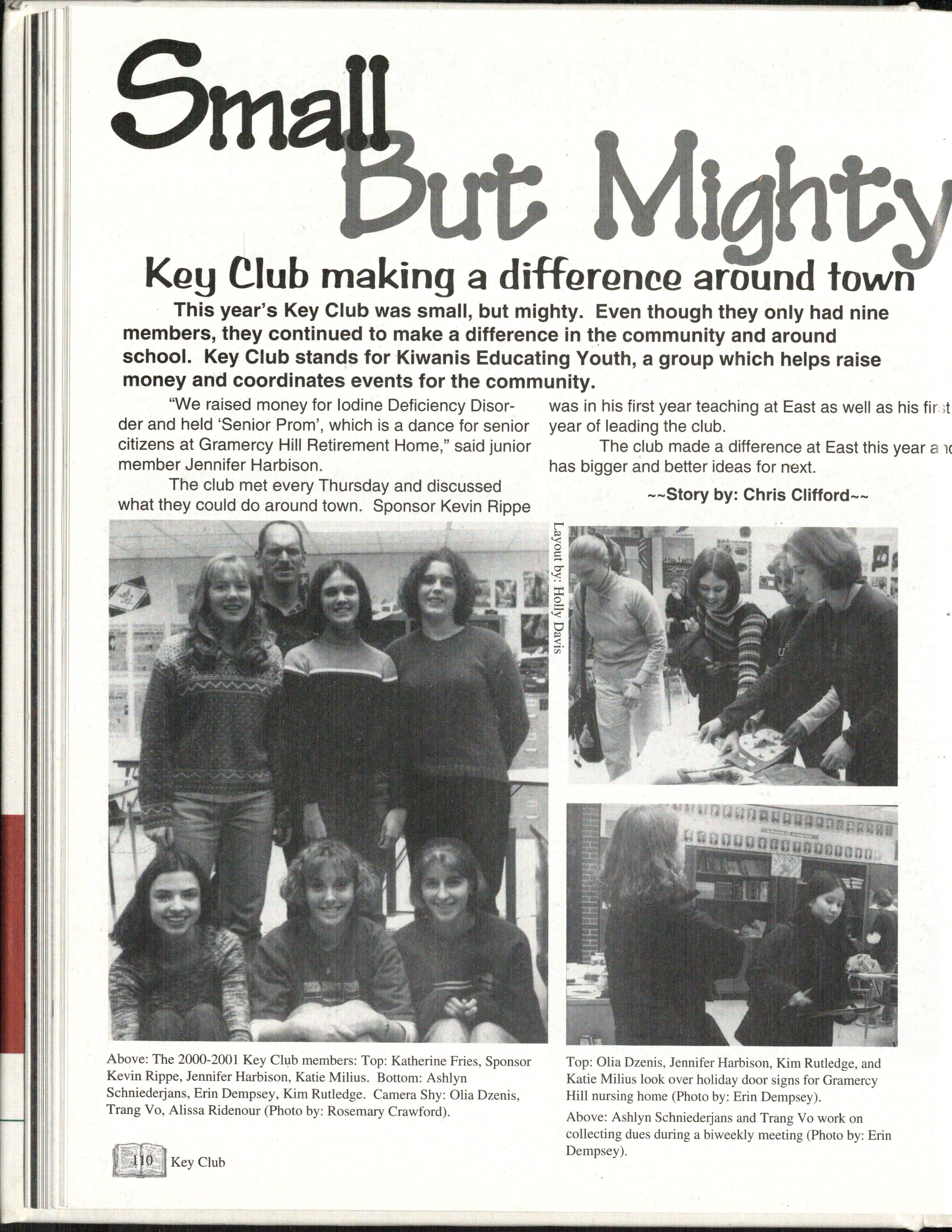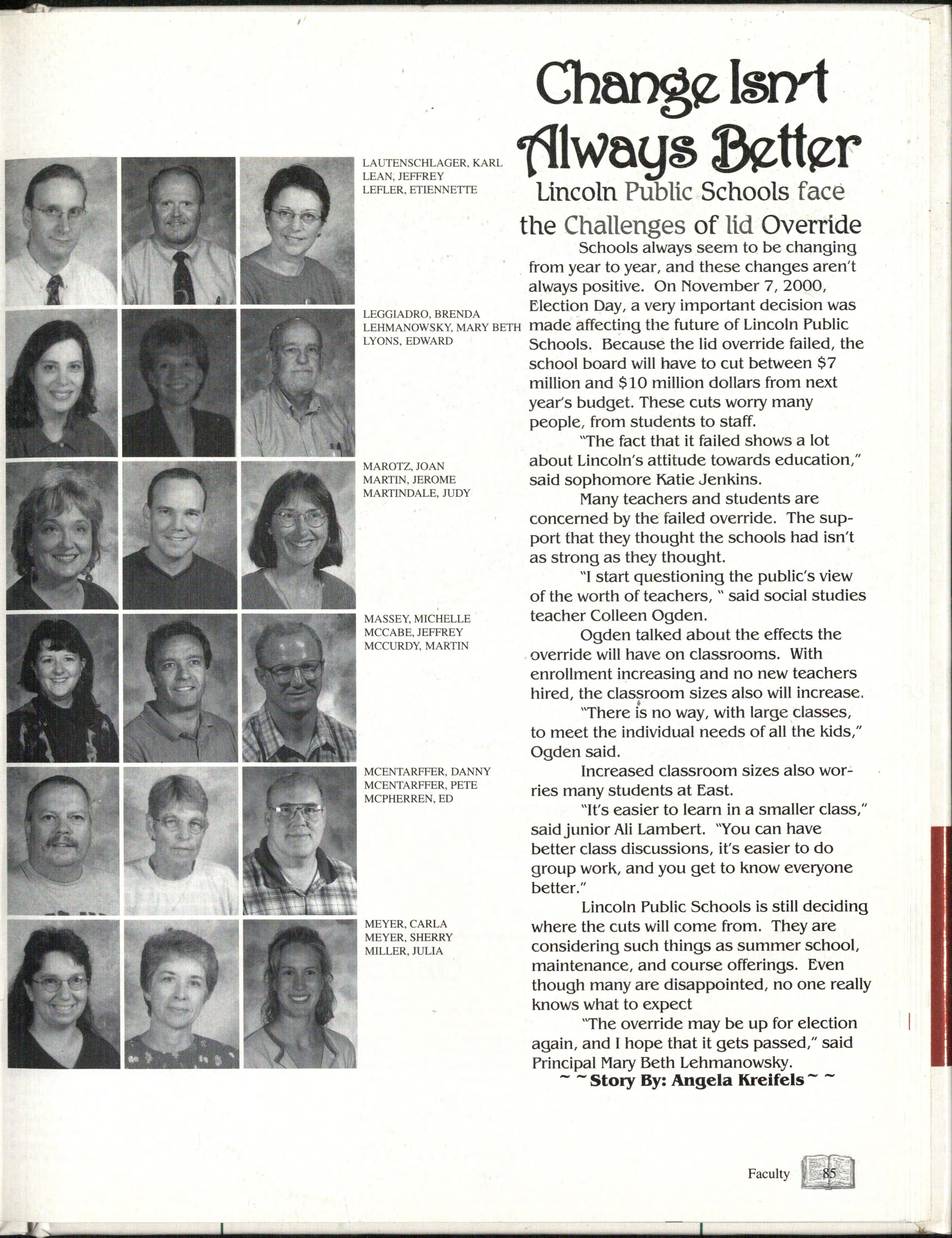 The 2001 yearbook staff would like to thank Jane Holt for all of her hard work and dedication to help us to be successful in making this yearbook. We would also like to thank our Walsworth representative, Mike Diffendeifer, for his willingness to help us and all of his patience this year. We would also like to thank Holly Switzer who always had answers for · us whenever we had a question. We appreciate the East Administrations' support, along with all the parents,