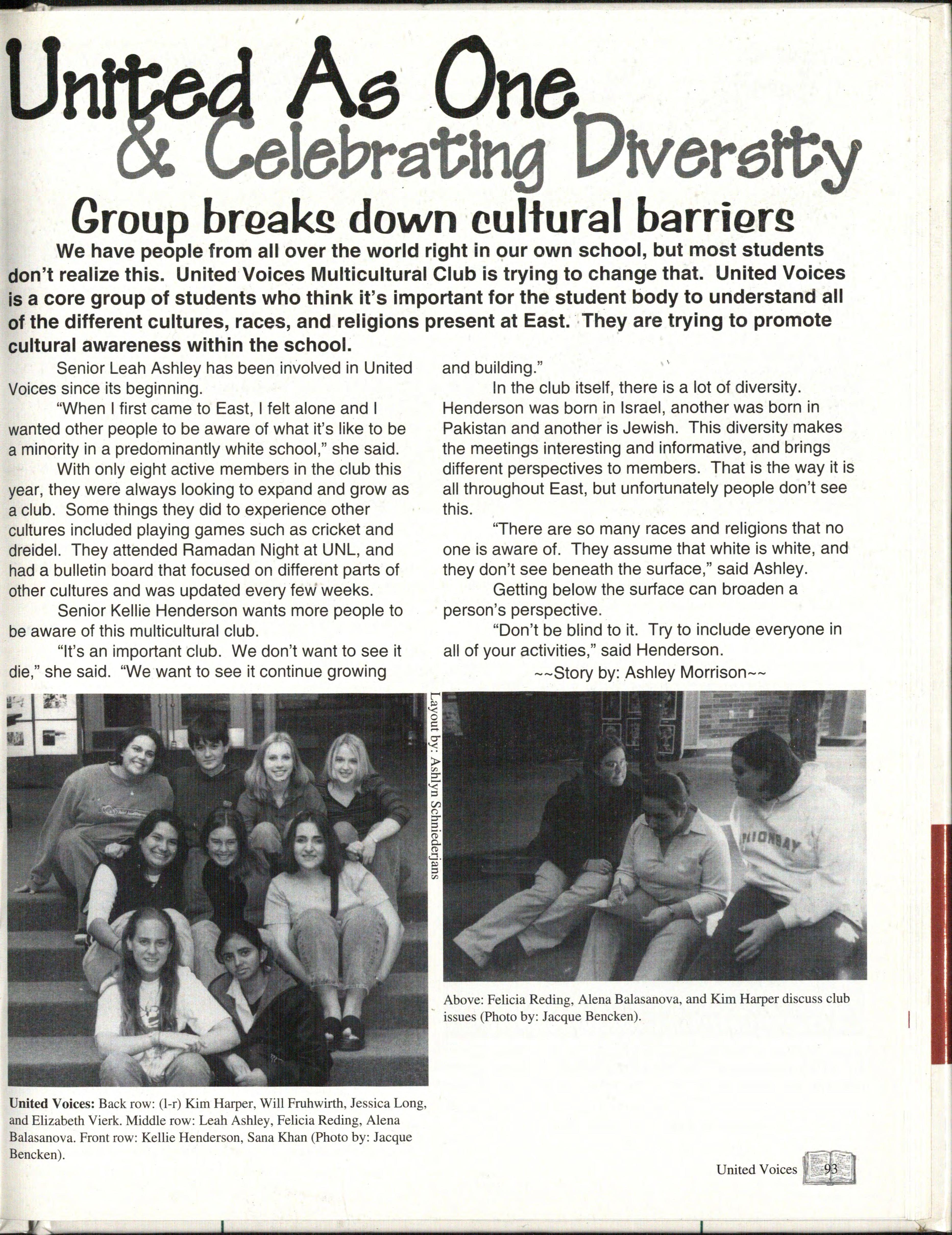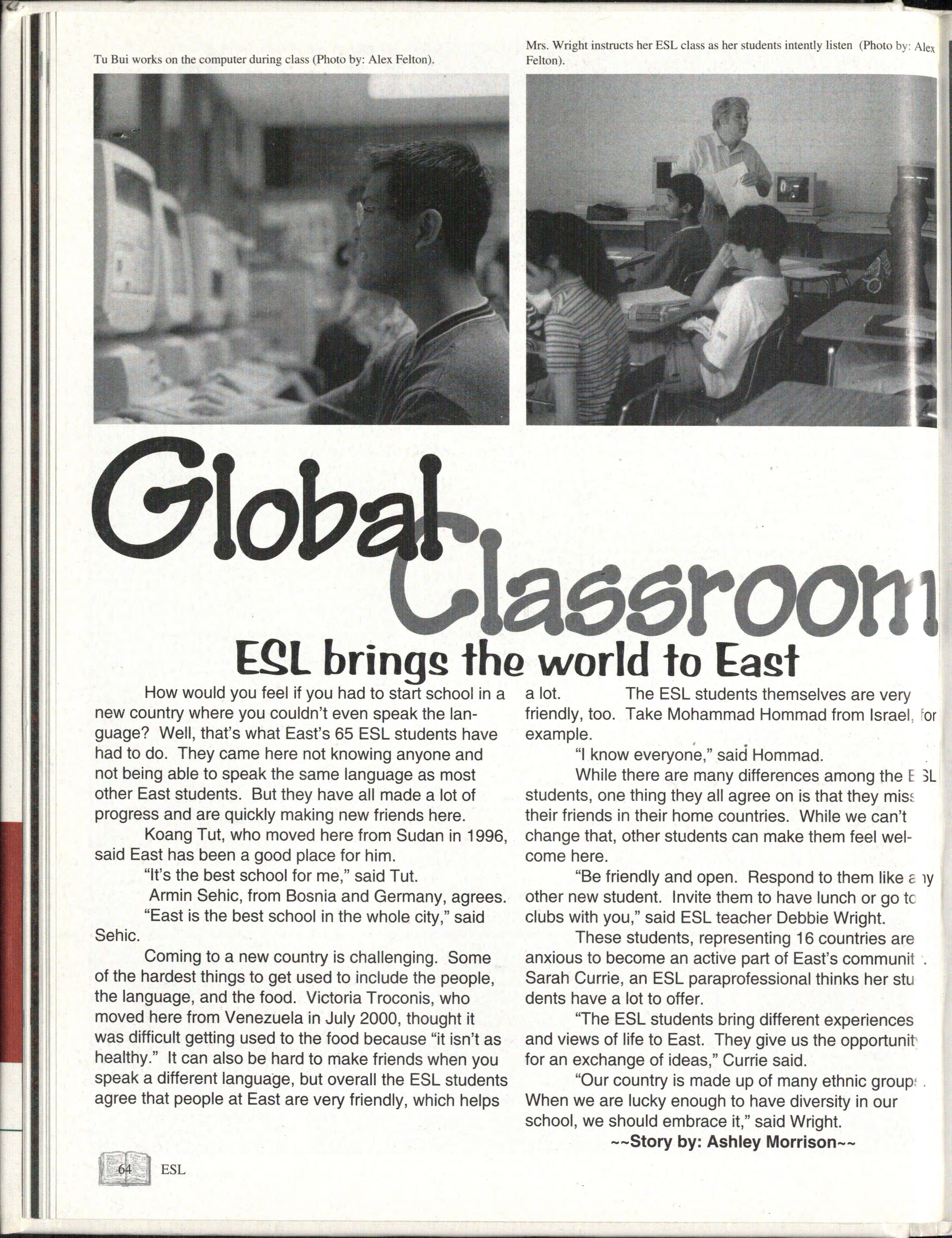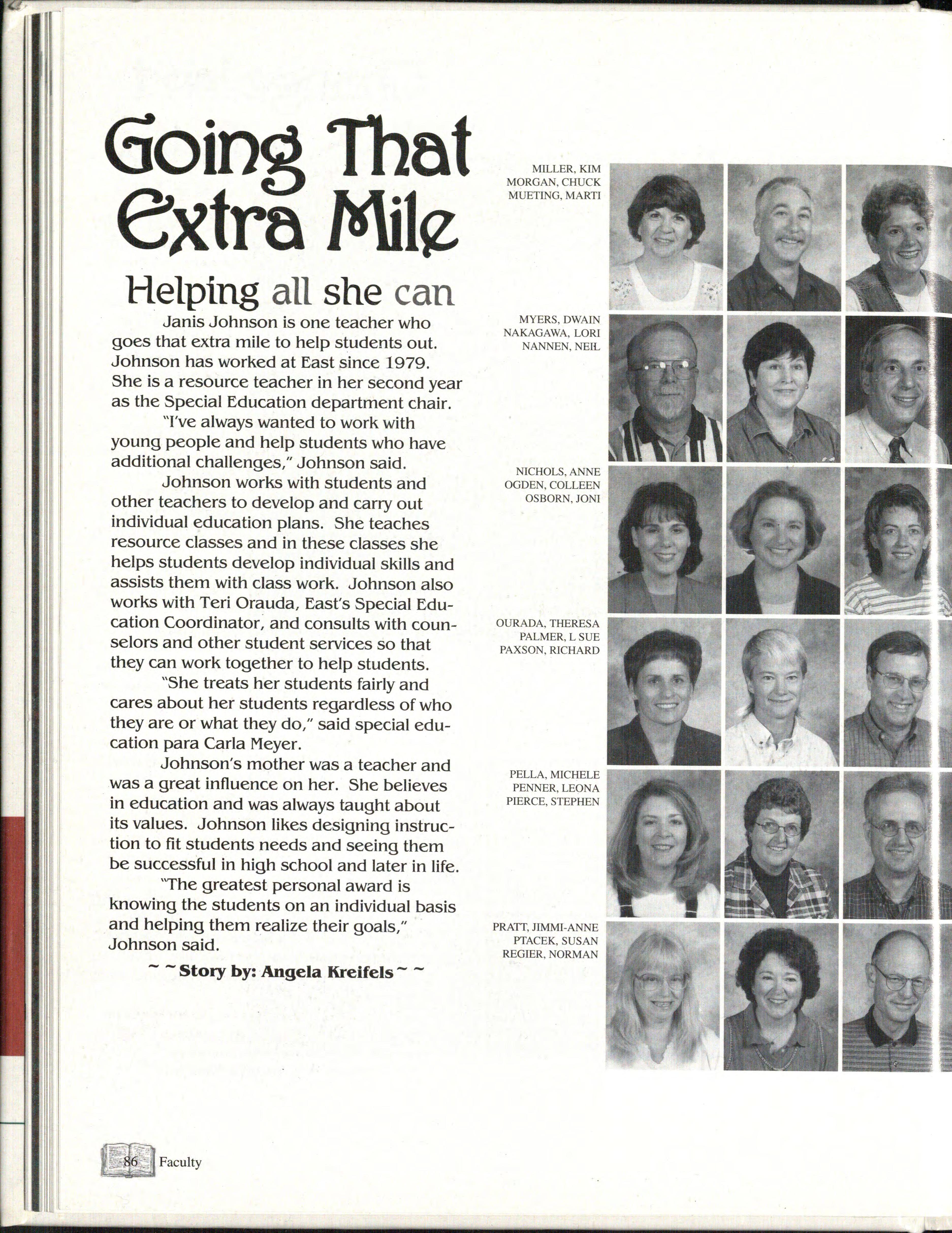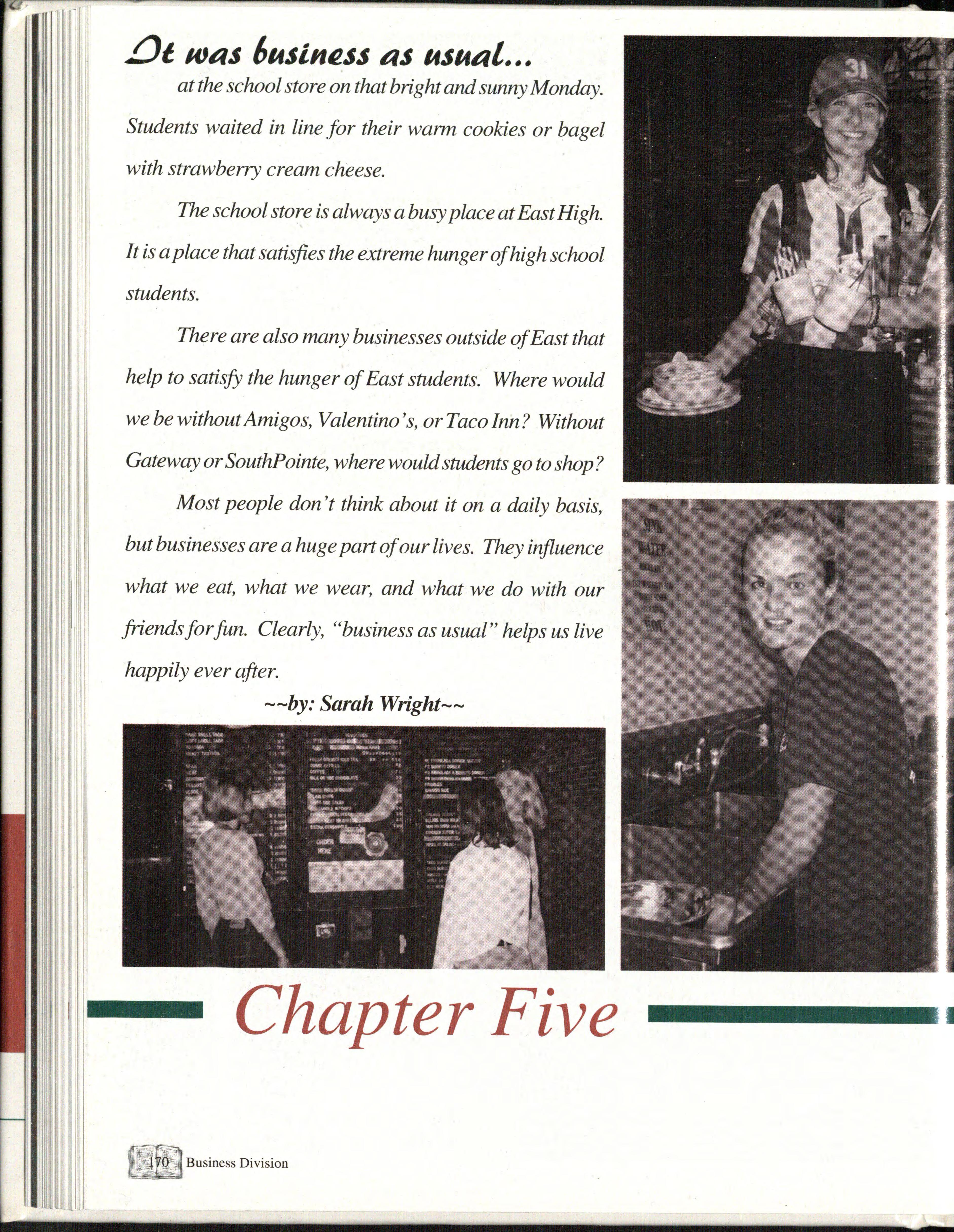 Each of us has our own story to tell, but we are all part of the same East High family. We shared one moment in time that will never be forgotten. We saw the ending of one era and the beginning of a new millennium, and we experienced one of the most controversial presidential elections ever held.