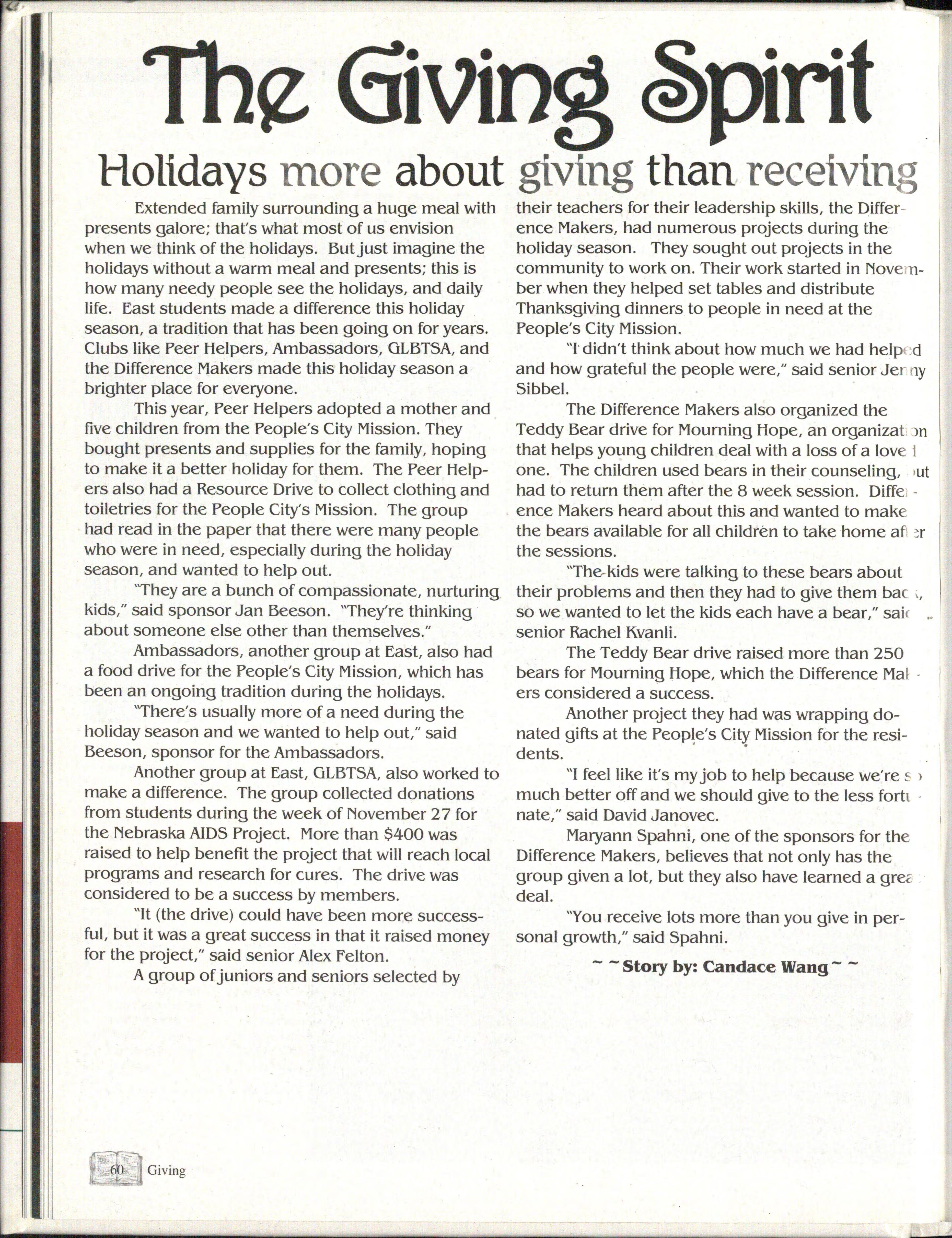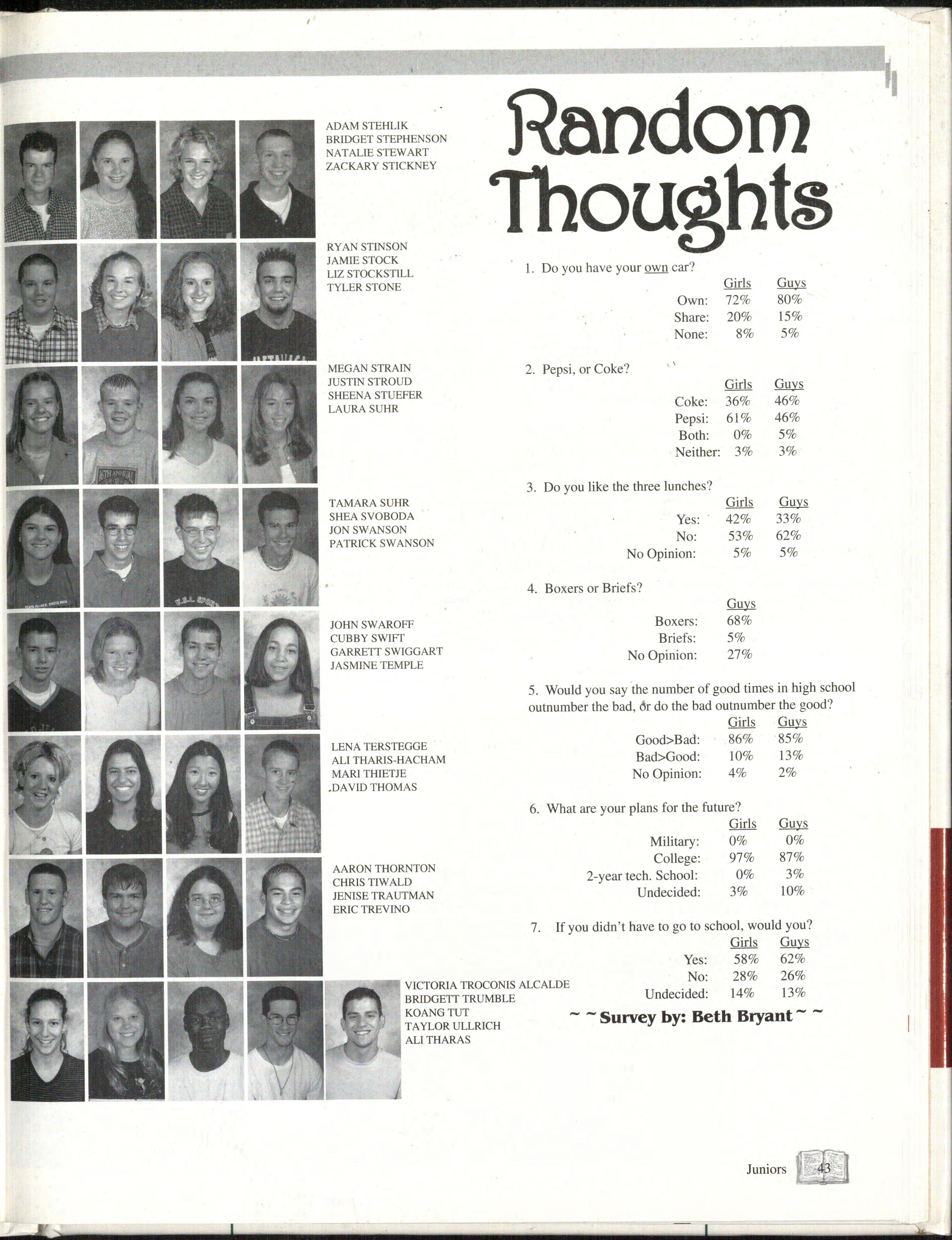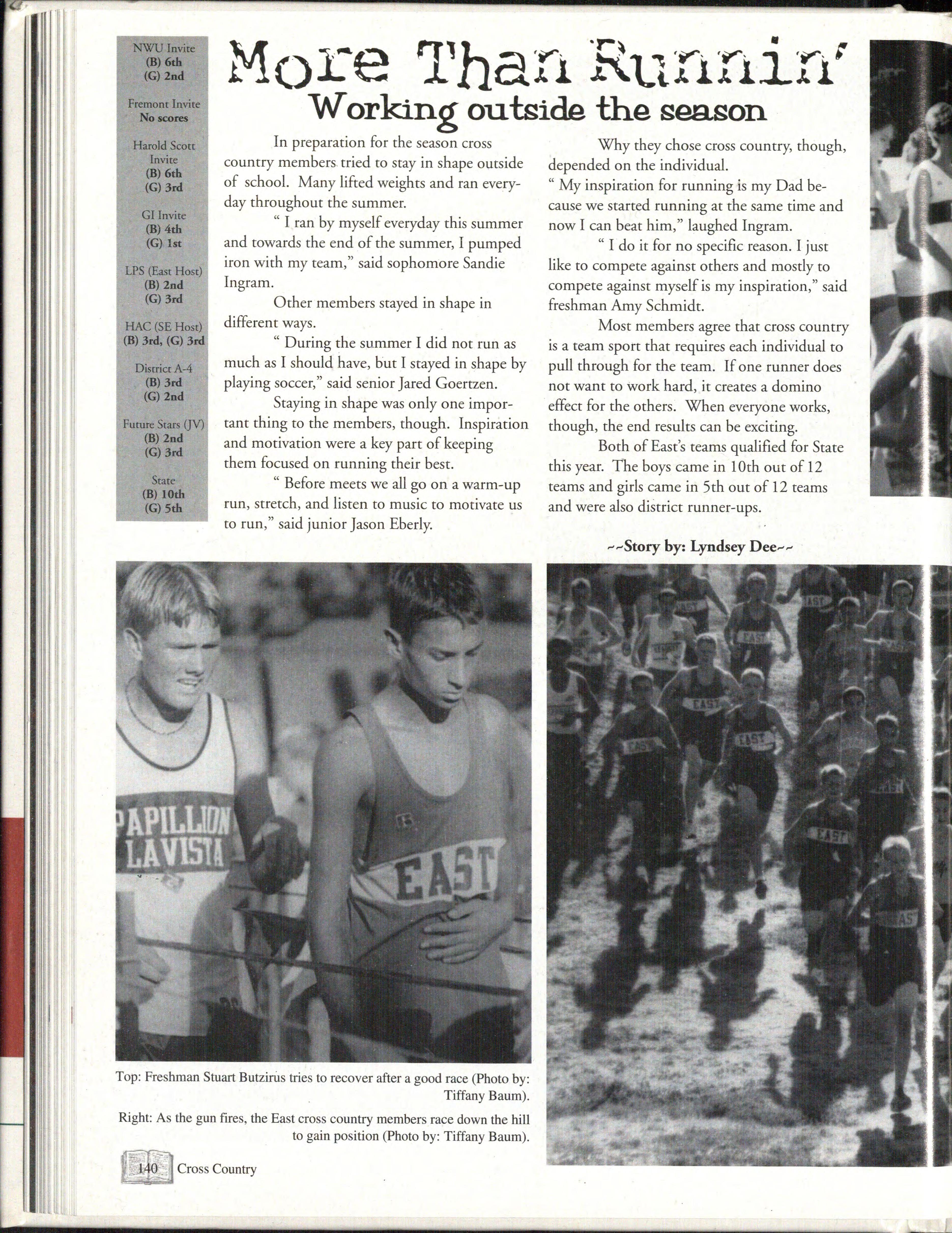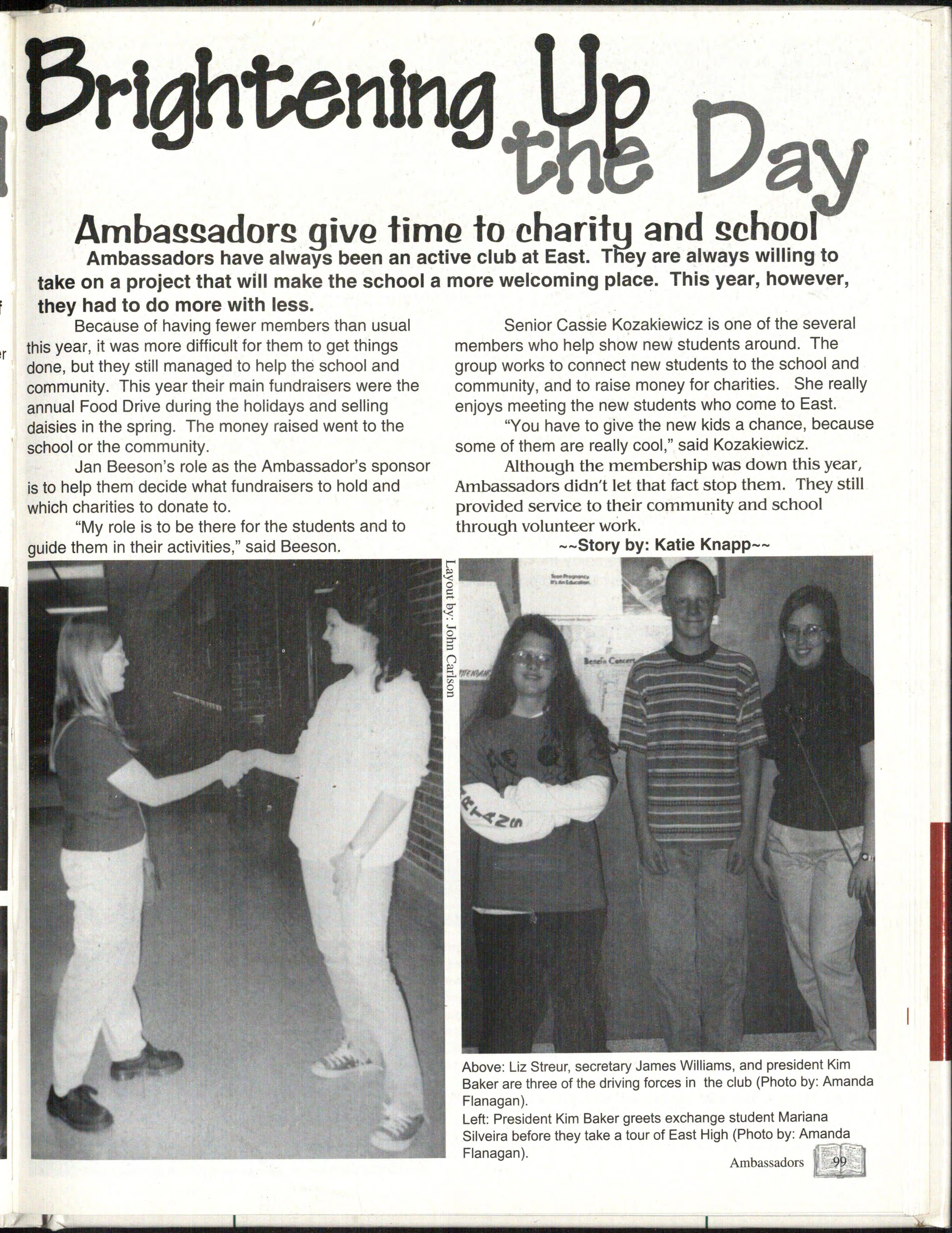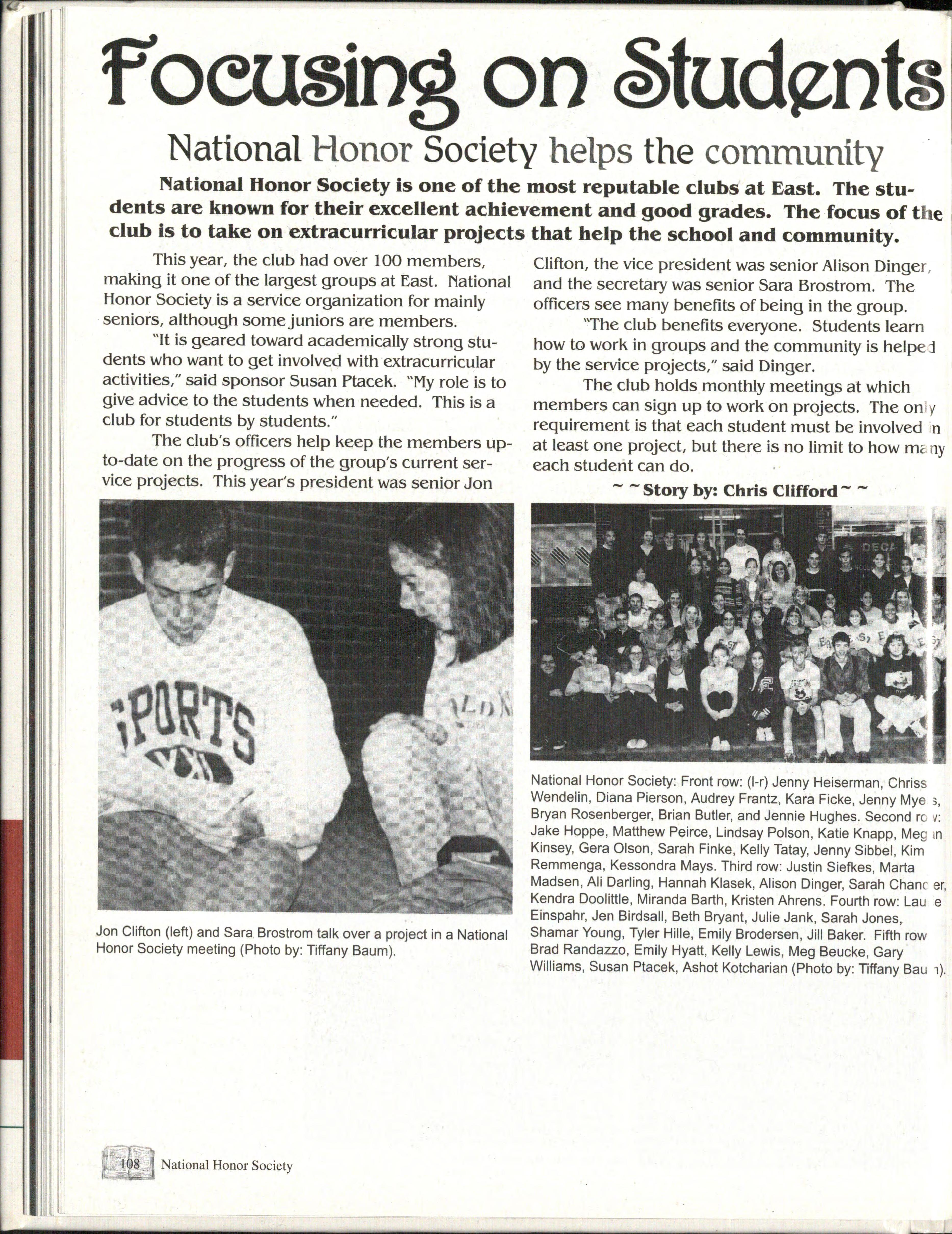 Each of us has our own story to tell, but we are all part of the same East High family. We shared one moment in time that will never be forgotten. We saw the ending of one era and the beginning of a new millennium, and we experienced one of the most controversial presidential elections ever held.