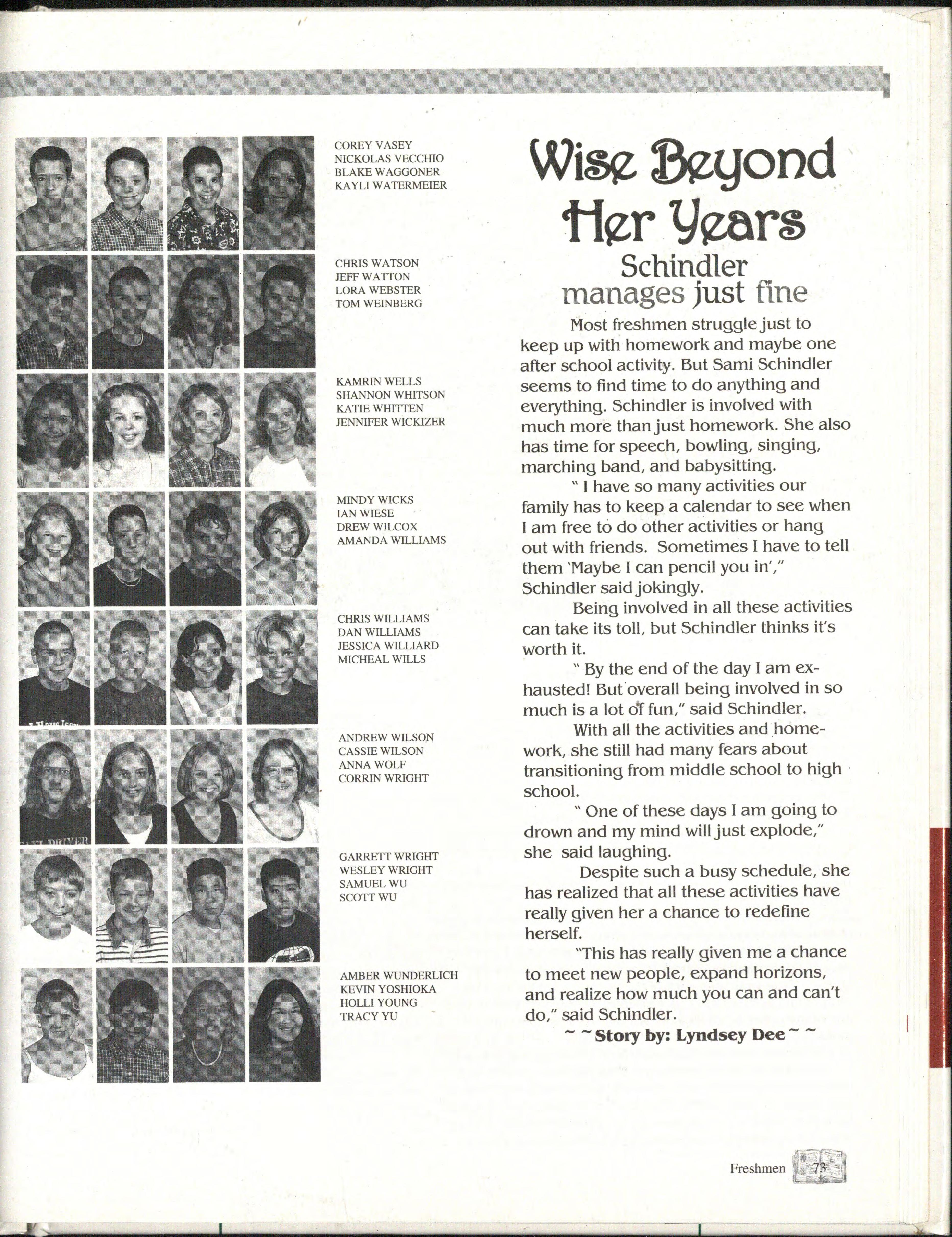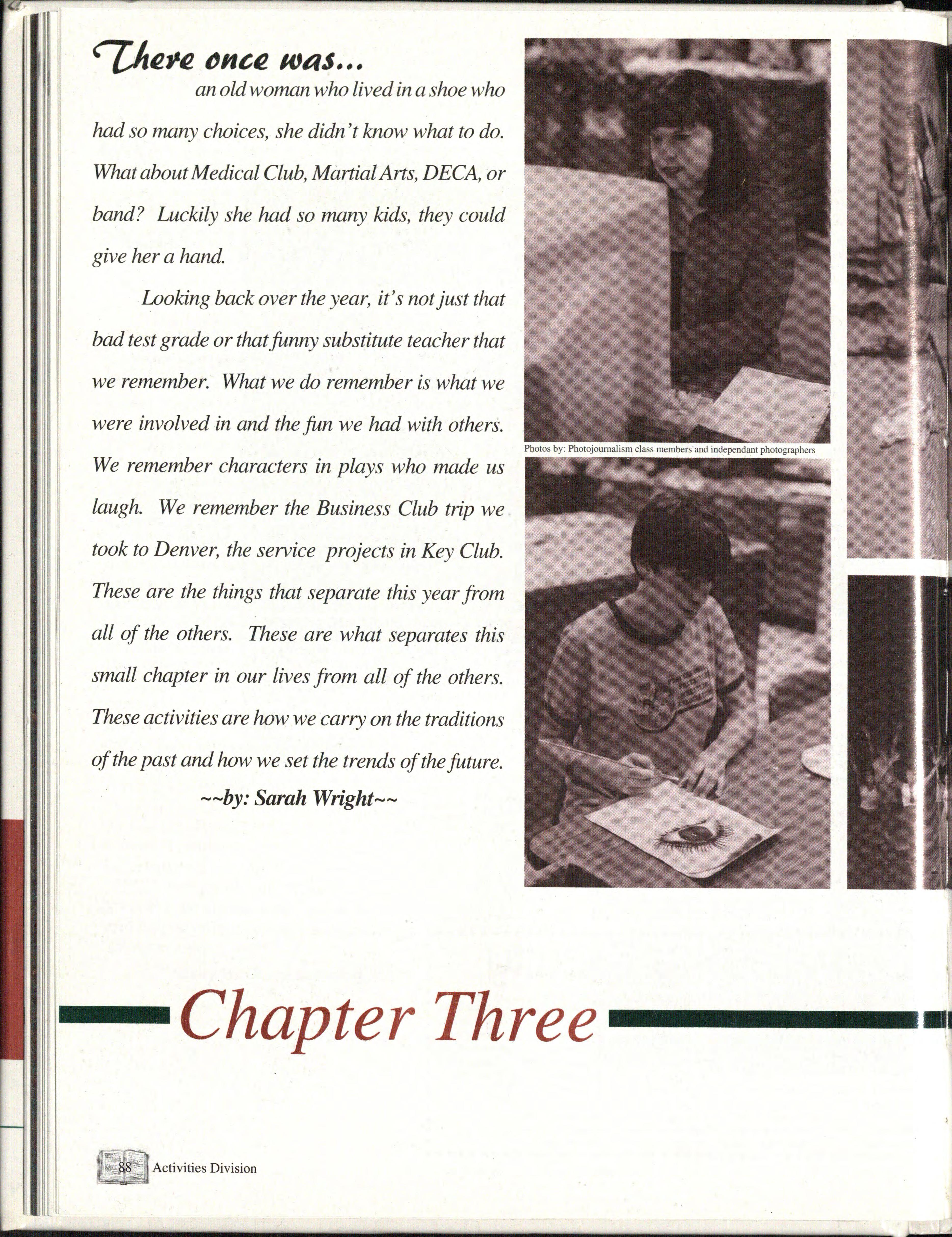 A s you go through this book, relive the history that we have made this year. Read the stories that you wrote and look at the pictures that you created. This year is a continuation of ~ what was and a beginning of what will be.