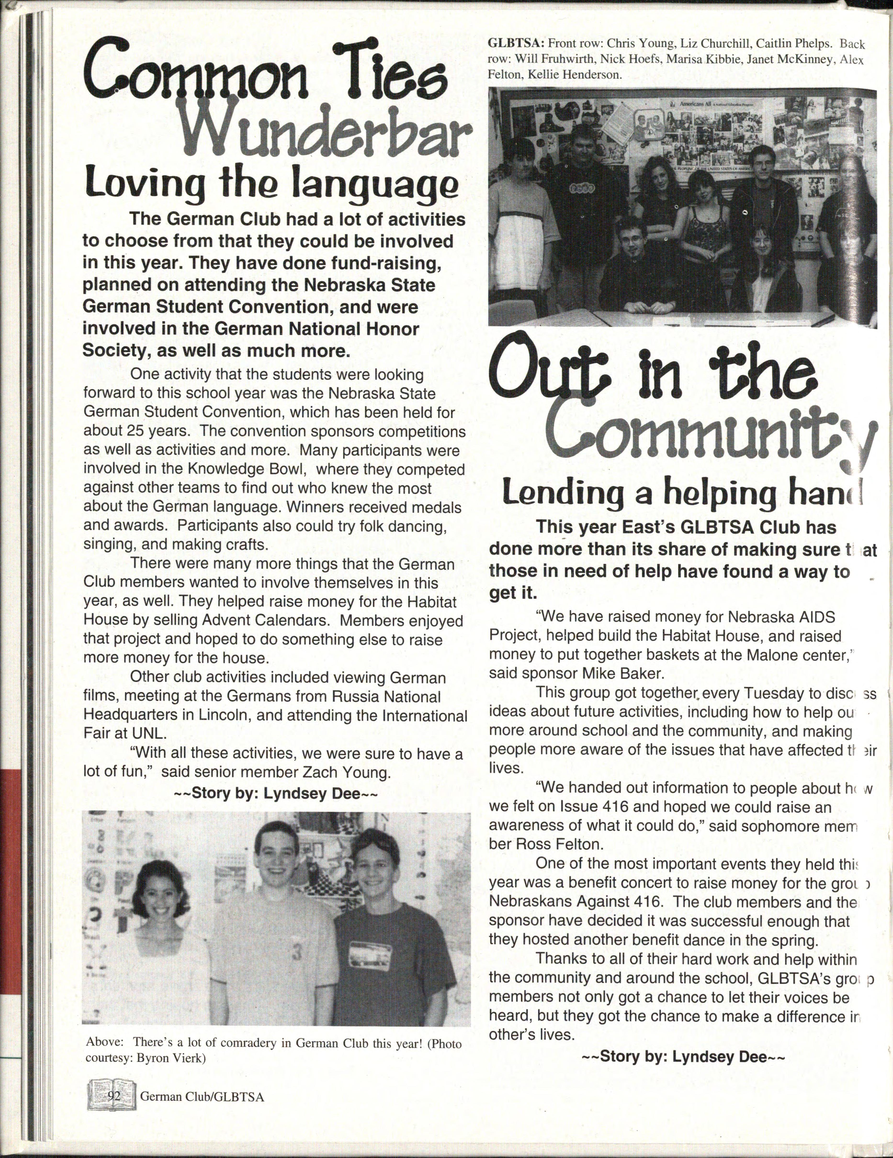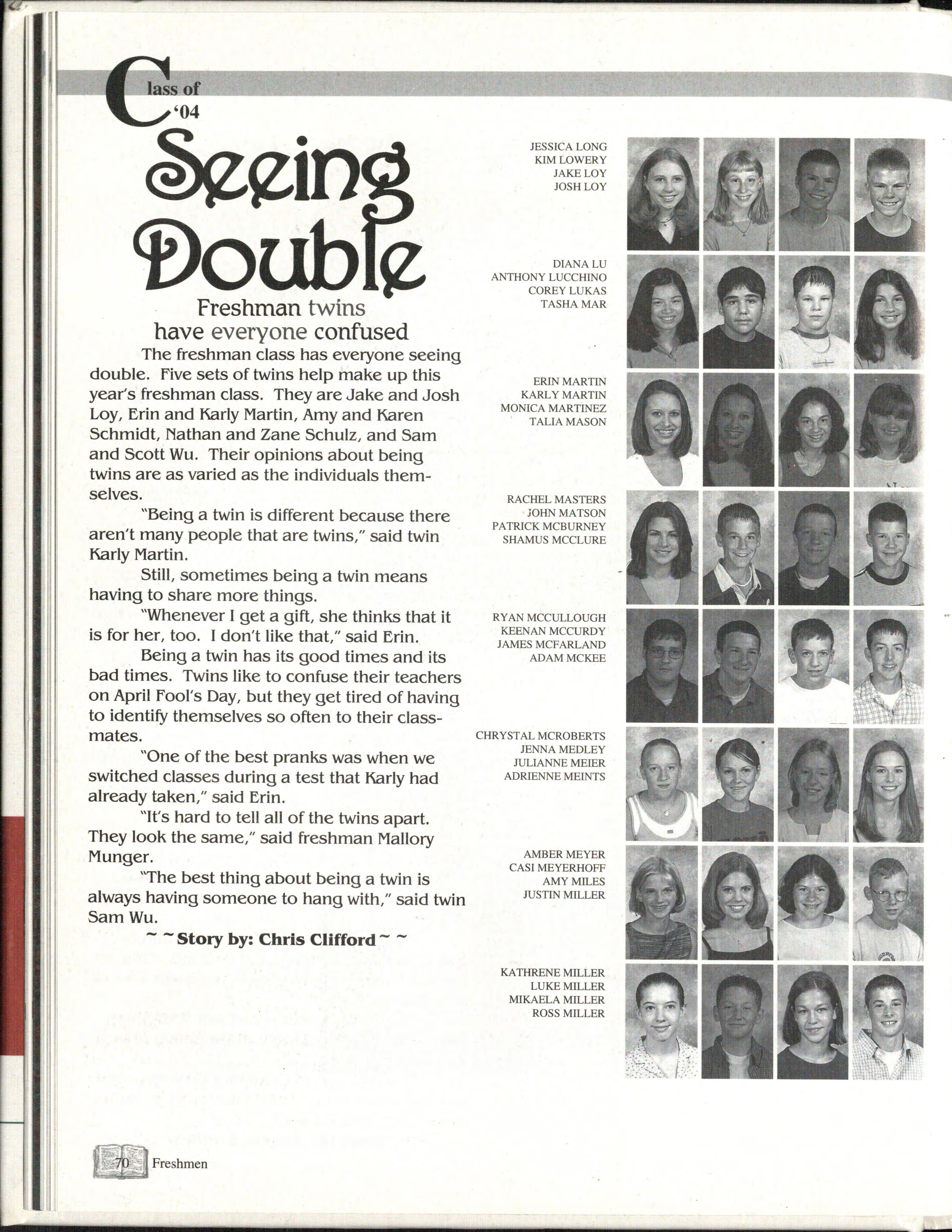 Faith also brought freshmen Jenna Knapp and Anna Wolf together. They learned a lot about each other when they attended Youth Quake, a Christian youth gathering in Omaha, in the summer of 2000. Kenny, a member of the Christian singing group Captive Free, helped the girls in their own faith journeys.