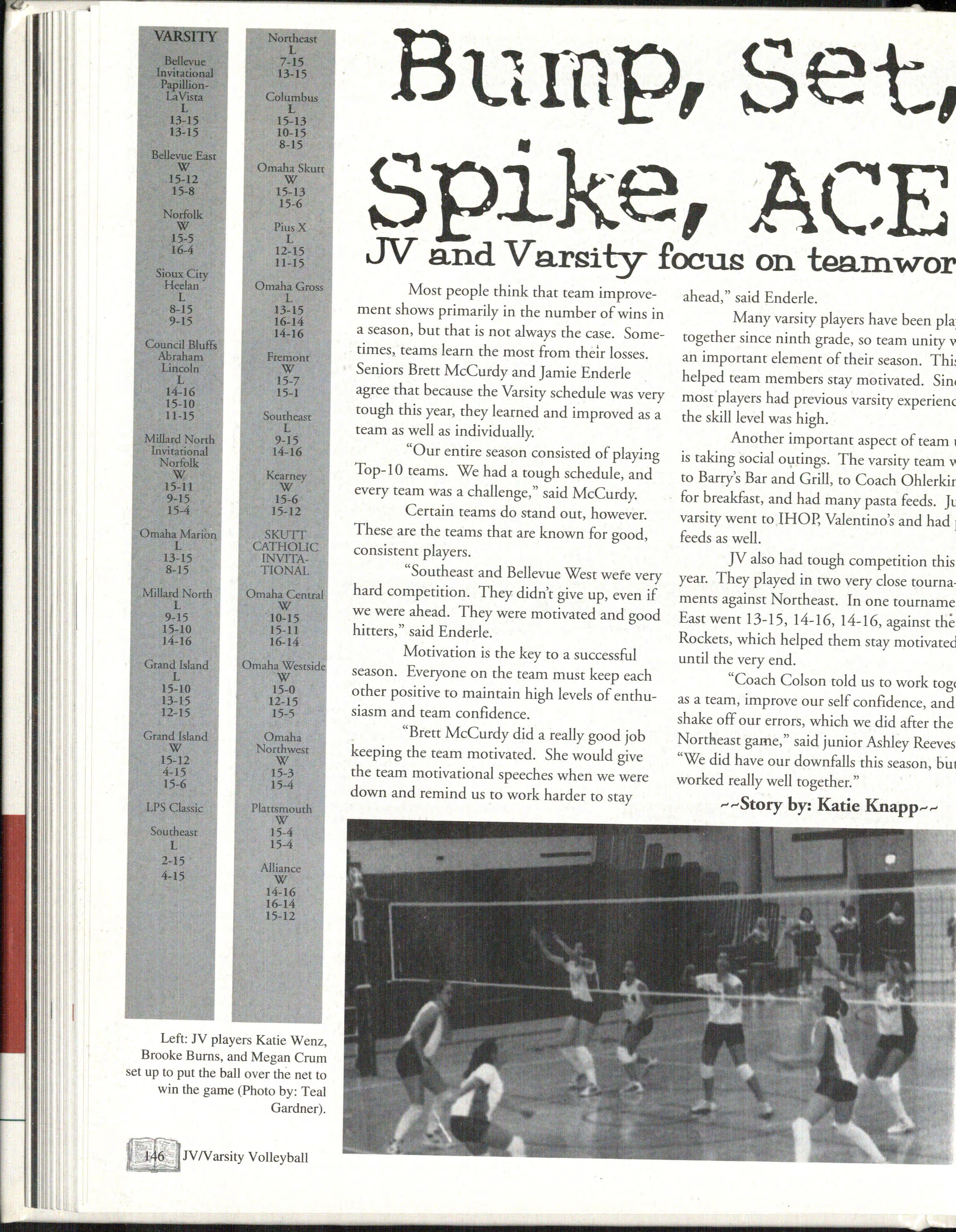 Front row (1-r): Kenzie Lillie, Amy Engel, Joy Boardman, Ashley Sabin, Leah Marr, Jill Baker , Katy Stenberg Second row: Heidi Varney, Sandie Ingram, Natalie Stewart, Kristi Broughton , Rachel Manijak, Liz Kaspar, Anna Wellsfry, Leah Breitbarth, Angela Kreifels, Jessica Donovan. Third row: Nicole Gillespie, Tara Neddenriep , Diana Pierson , Audrey Frantz, Brittany Stohl , Abby Poppe, Erica Poppe, Jeanne Slieter, Jamie Morrison. Fourth row: Kelly Peo, Erica Hanks, Emily Hiatt, • aela Miller, Jenny Deaton, Amber Meyer, Amy Schmidt, Anna Owomoyela, Emily Brodersen. Back row: Coach Andrea Baker, Coach Peter Schlegel, Coach Kevin Hubbell, Coach Kirk Skiles , Coach Brian Kabourek.