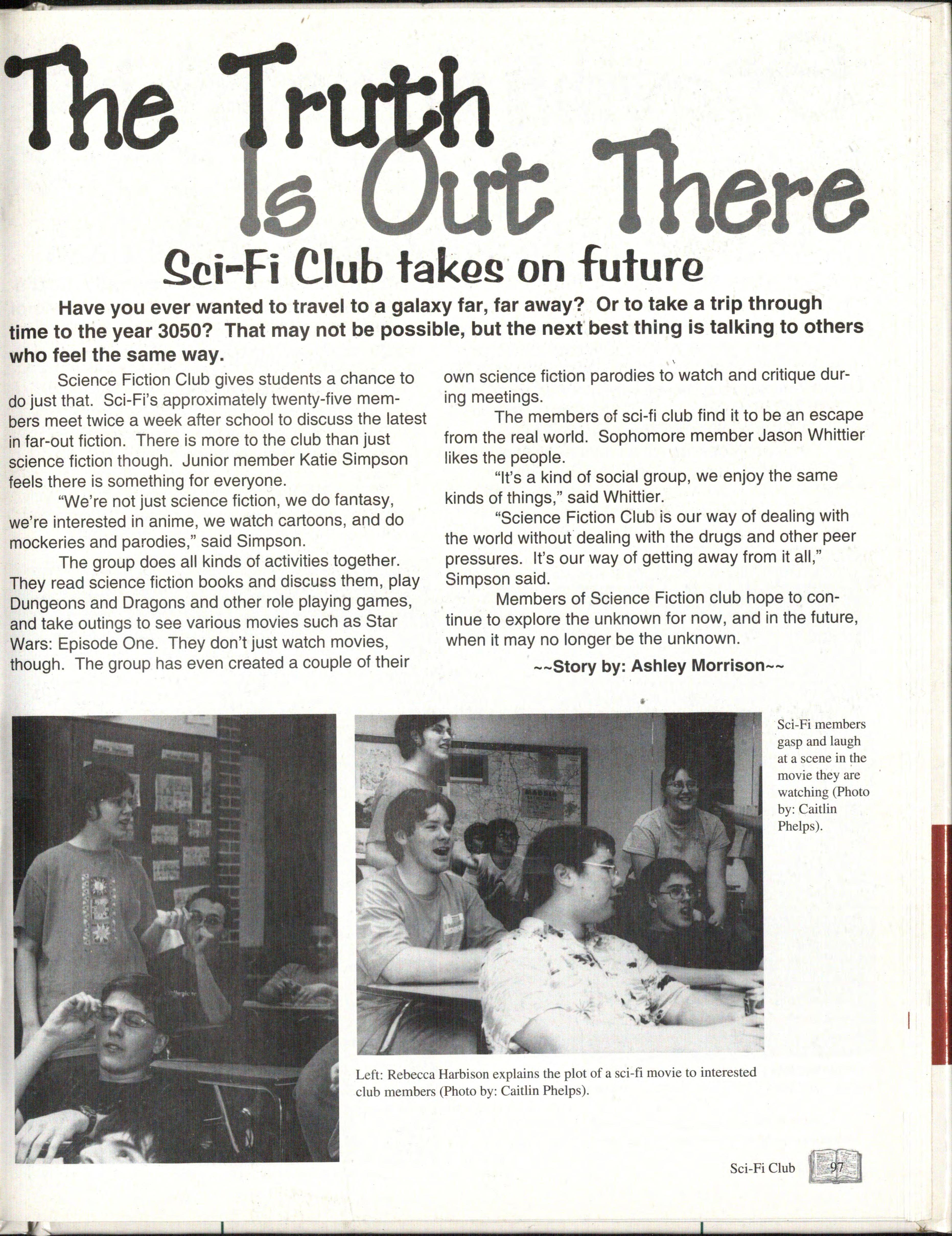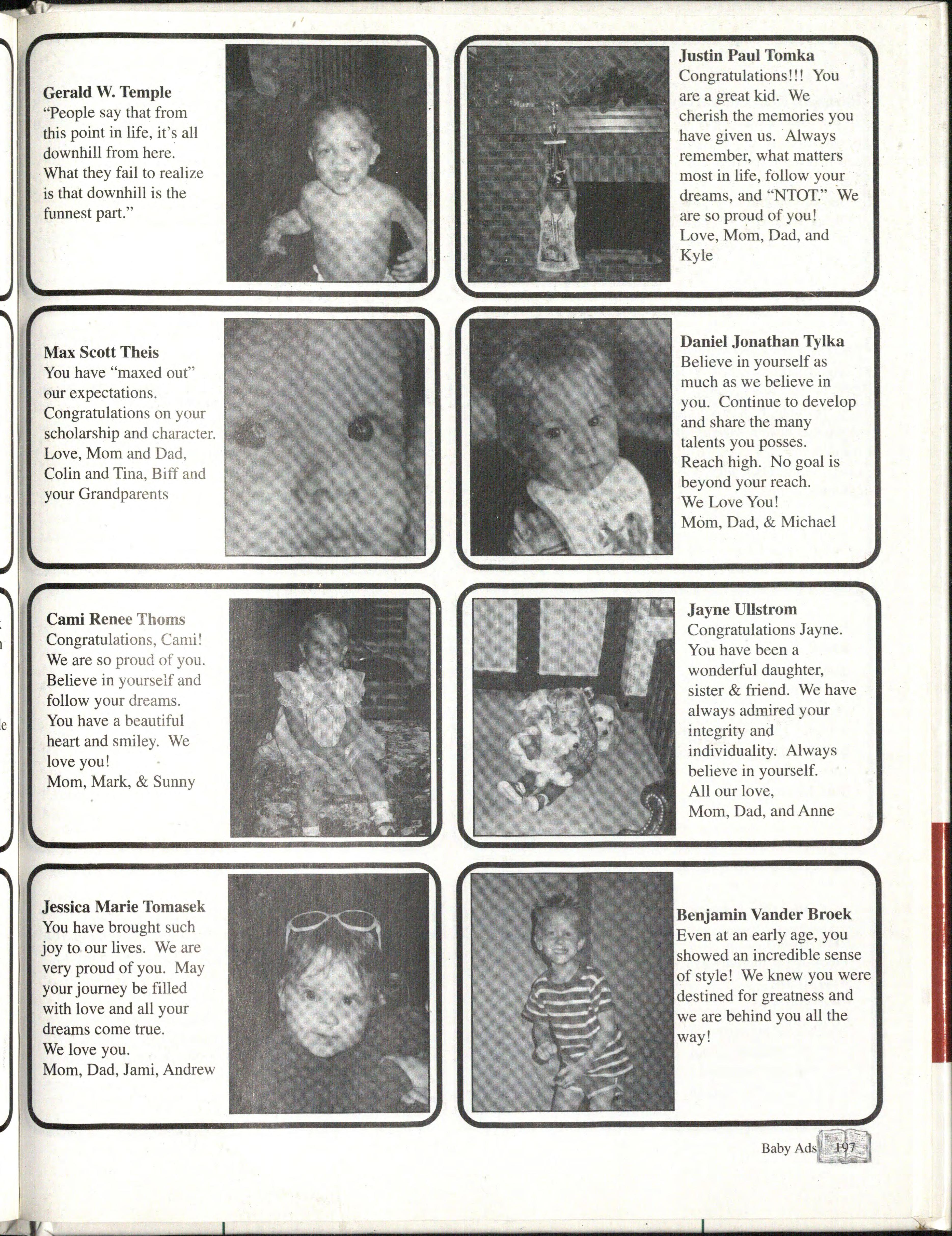 When you are old and gray the pages of this book will become your best memories of what used to be. This is a reference book and a history book. It is the story of your life that you and your friends created. What you do in these four years of high school will