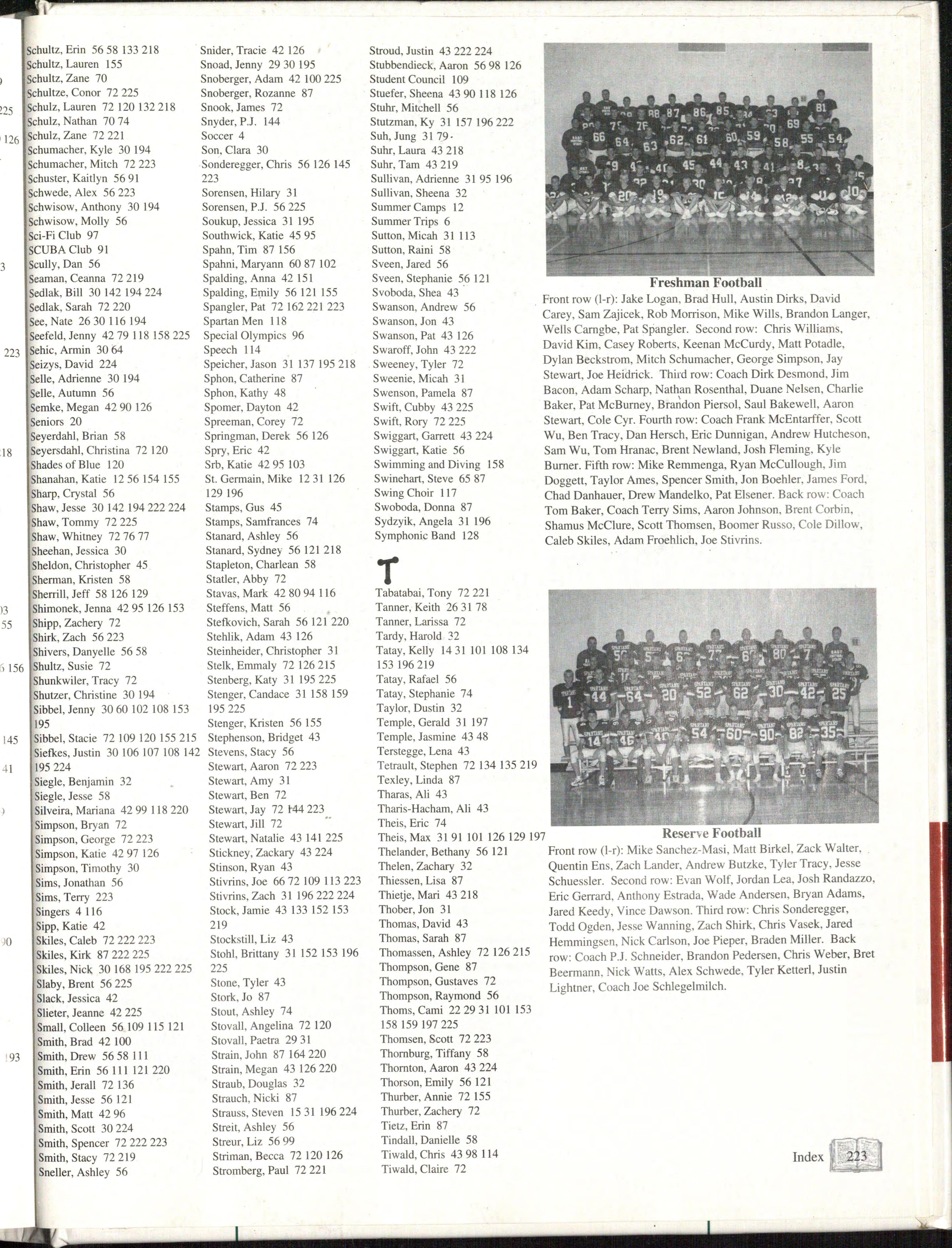 Front row (1-r): Mark Petro, Mark Buckner, Kyle Clouston , Stuart Butzirus, John Matson, Stephen Anthony, Car so n Bohlmann, Josh Olson. Second row: Conor Schult ze, Tom Dunbar, Adam Snoberger, Jeff Rutledge , Philip Voigt, Chris Ayriss, Brandon Poppert, Tim Adams , Tim Fields, Jake Becwar. Third row: Tommy Shaw, Nate Carlson , Steve Maltarich, Tyler Hille, Nick Skiles, C.J. Wells, Tyler Barry , Jeff My ers, Brent Slaby, T.J. Jones, James McFarland. Fourth row: Jared Carlson, Eric Heyl, Josh Philson, Byron Vierk , Ryan Knight, Jared Goertzen, Ben Enlson, Jeff Pankake, Alex Wright , Eric Johnson, Jason Eberly, Chris Domgard. B ack row: Coach Andrea Baker , Coach Peter Schlegel, Coach Brian Kabourek , Coach Kevin Hubbell, Coach Kirk Skiles.