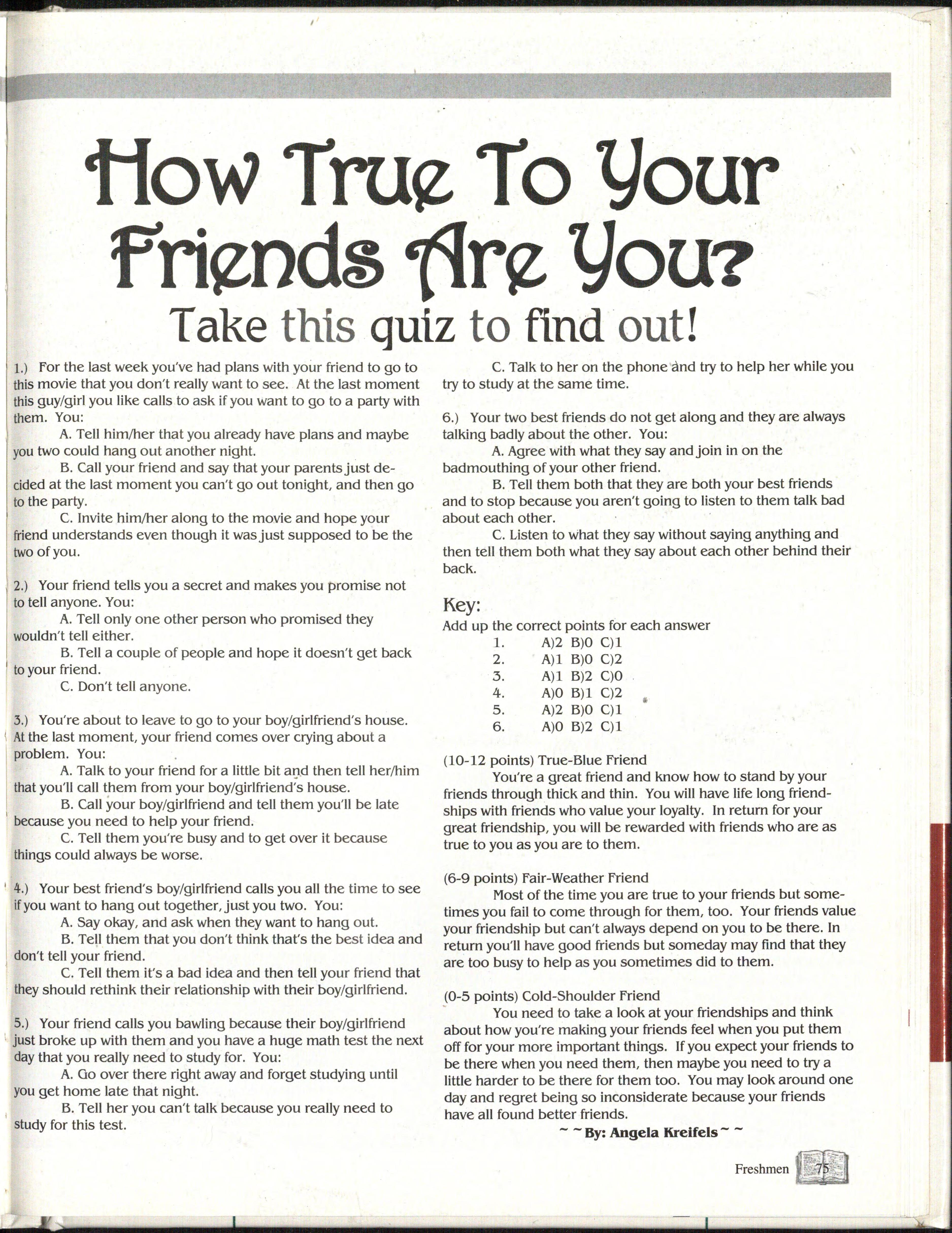 Although many friends have had their small differences, these friends have stood by each other through the good times and the bad. Through their friendships, these students are role models to us all.