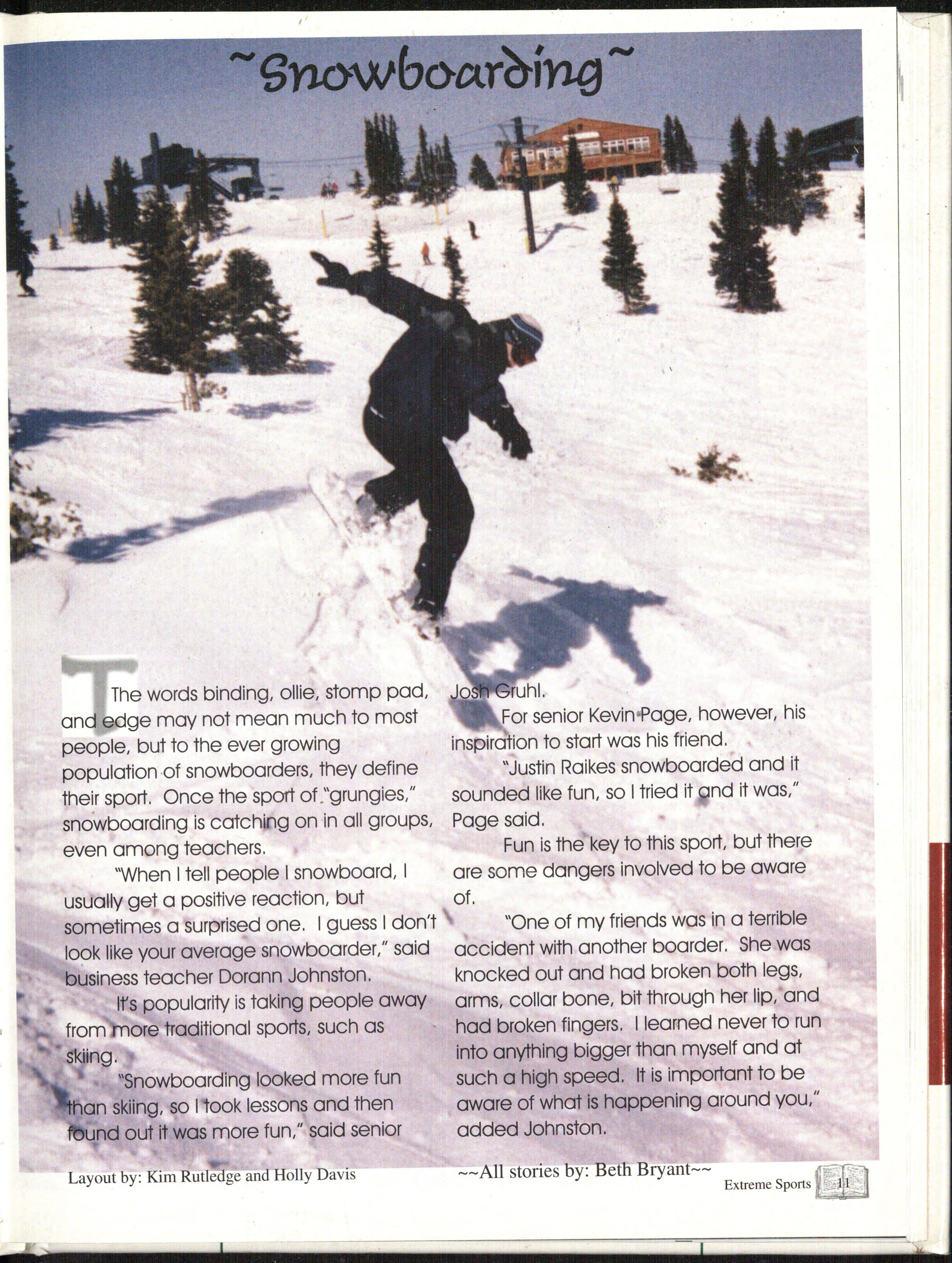 The words binding, ollie, stomp pad, and dge may not mean much to most people, but to the ever growing population -of snowboarders, they define their sport. Once the sport of ."grungies," snowboarding is catching on in all groups, even among teachers.