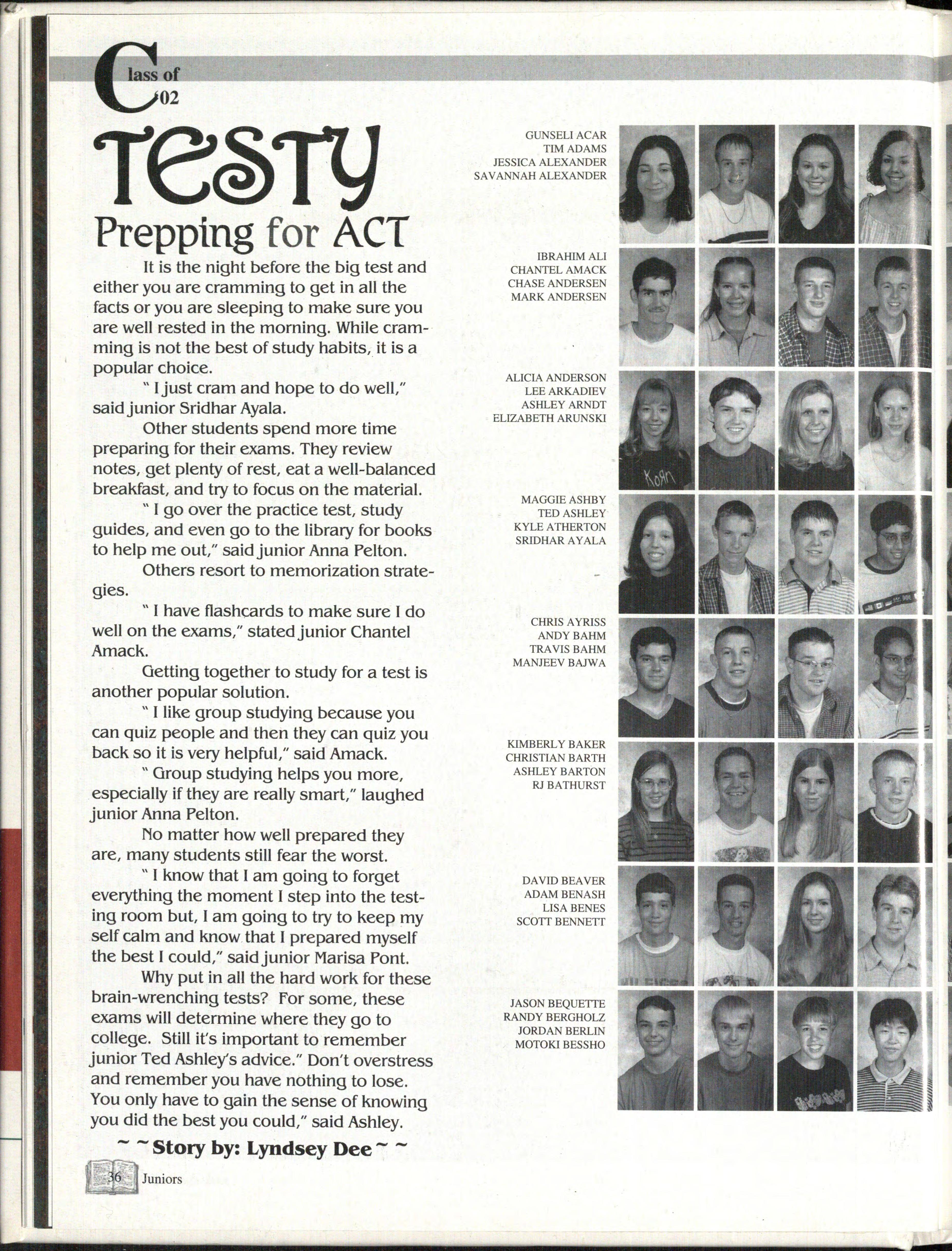 One thousand,four hundred, and fifty copies of the 2001 Epic were printed by Walsworth Publishing Company in Marceline, Missouri. The 34 th edition of the Epic was created with Pagemaker 6.5. Body copy fonts used in this yearbook were Times , lfelvetica, Benguiat, Garamand, and Avant Guard. Headline and subheadlinefonts included: Feltpoint, GenXCrumble, Snooze Bold, Oblique , Berkley, Braddon, Alice, Iron Maiden, and Comic Sans MS.